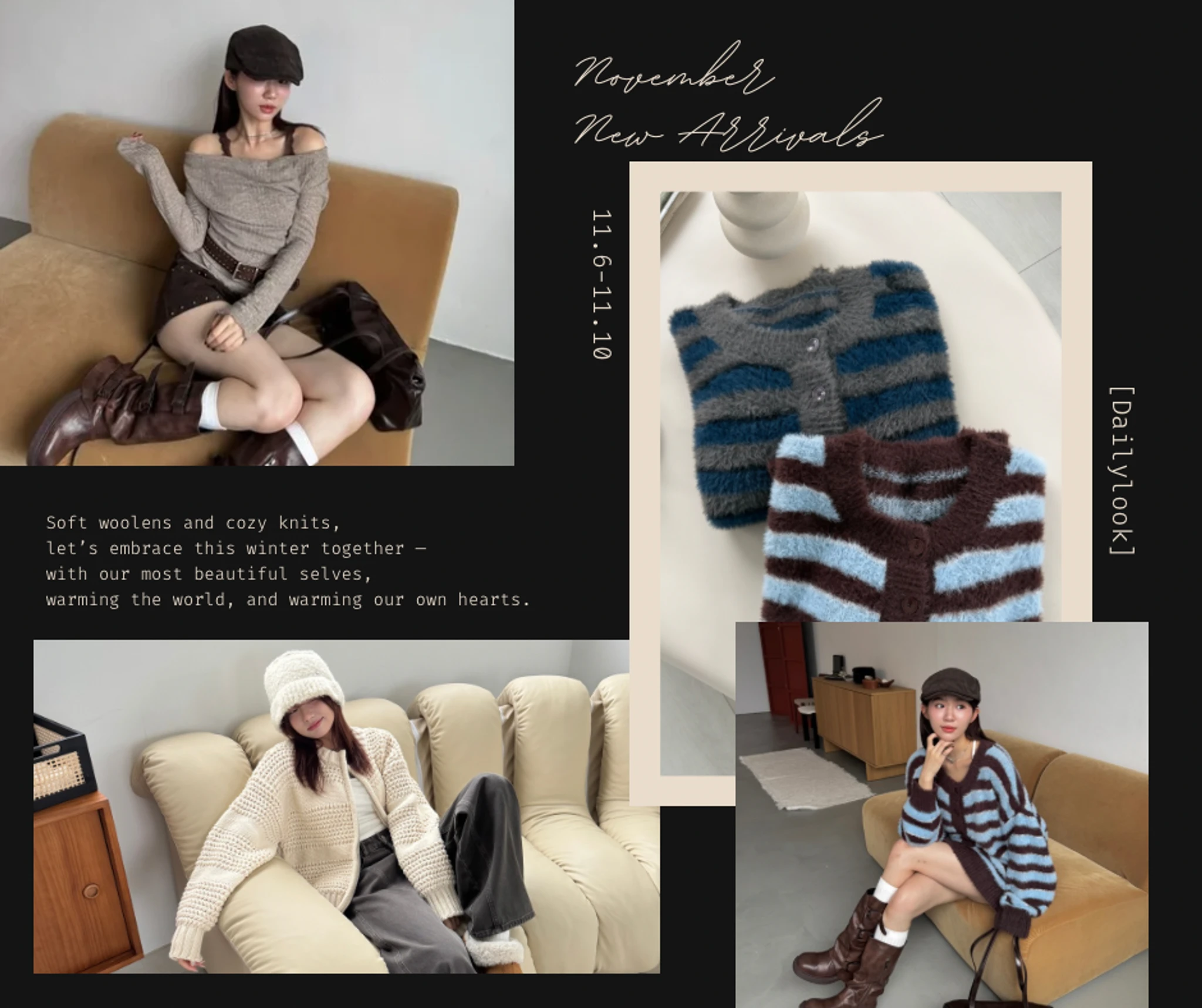 毛料撞色毛衣+圍巾/3colors