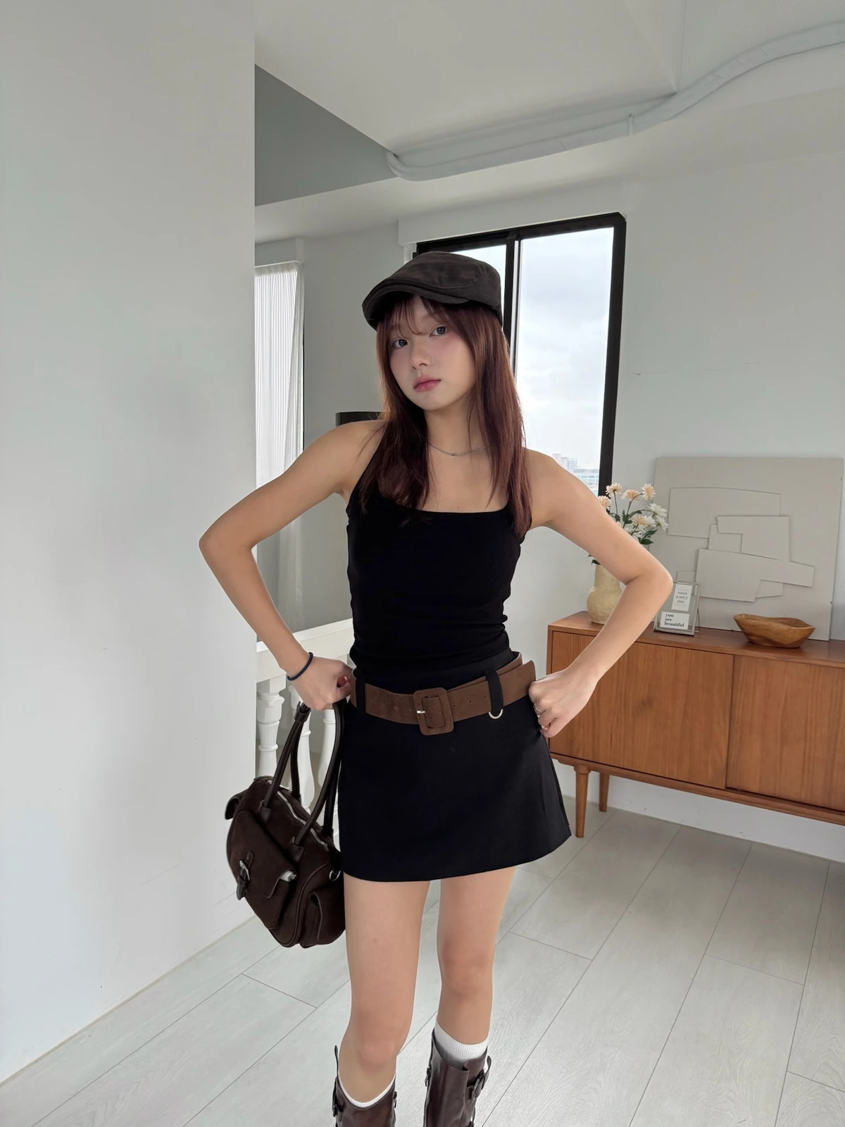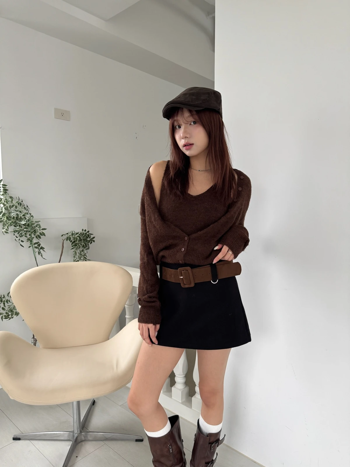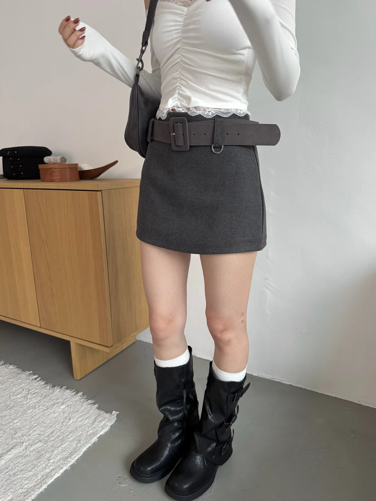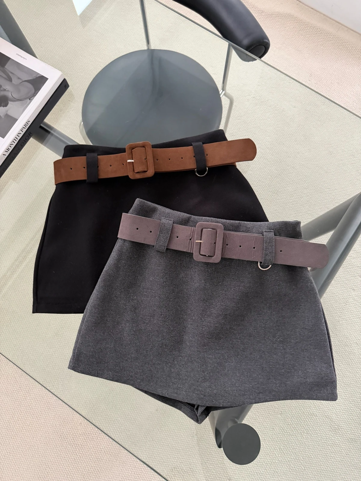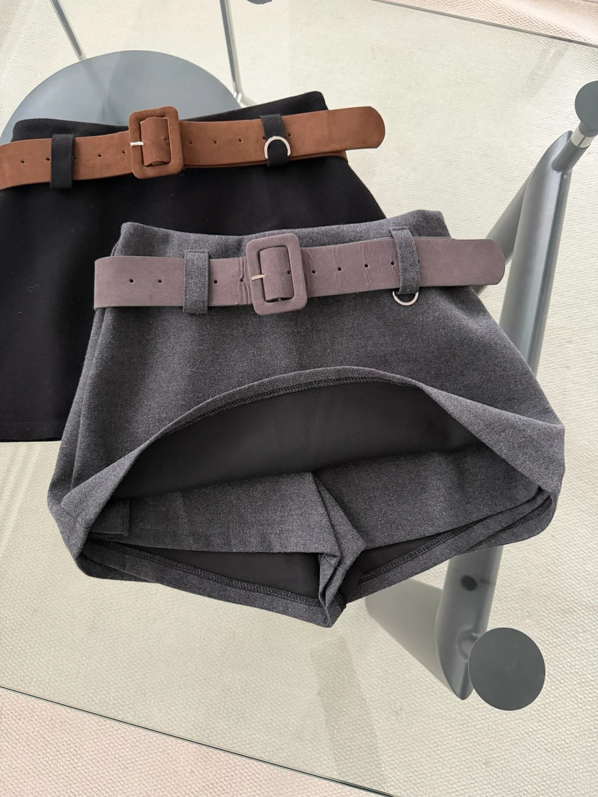 推薦!毛呢A字短褲裙-附皮帶/2colors