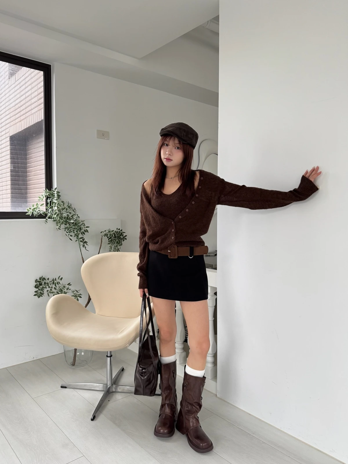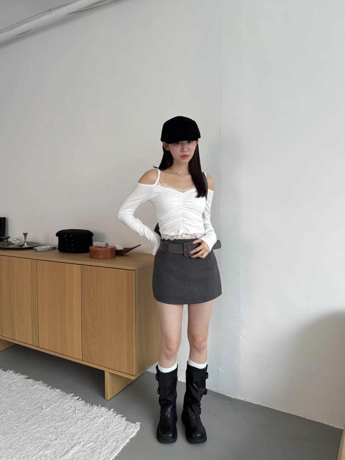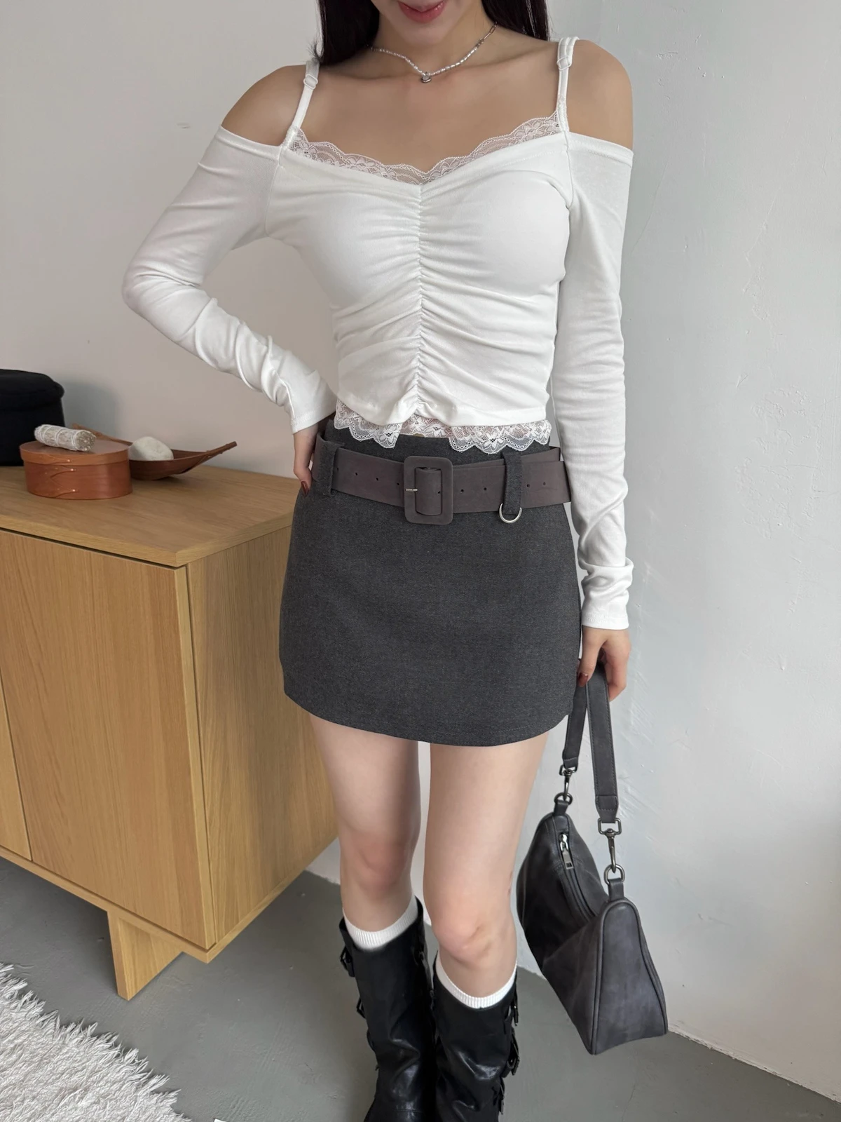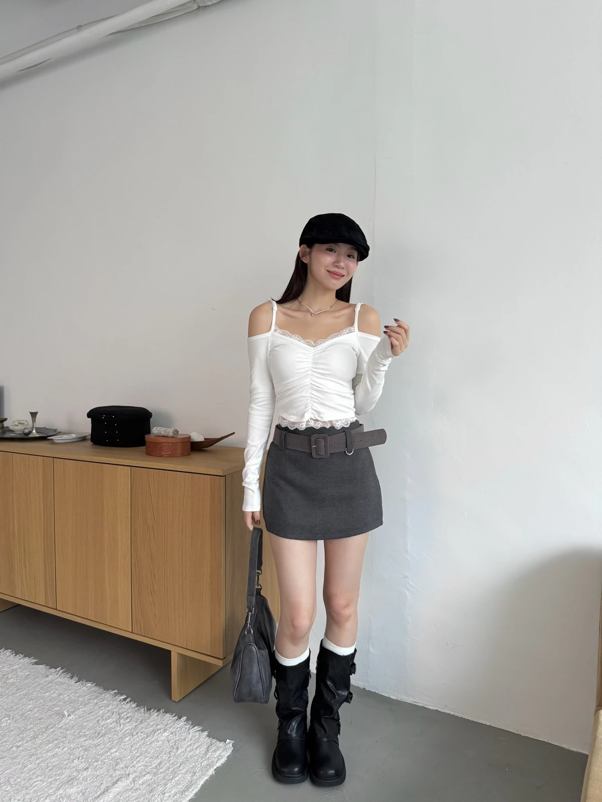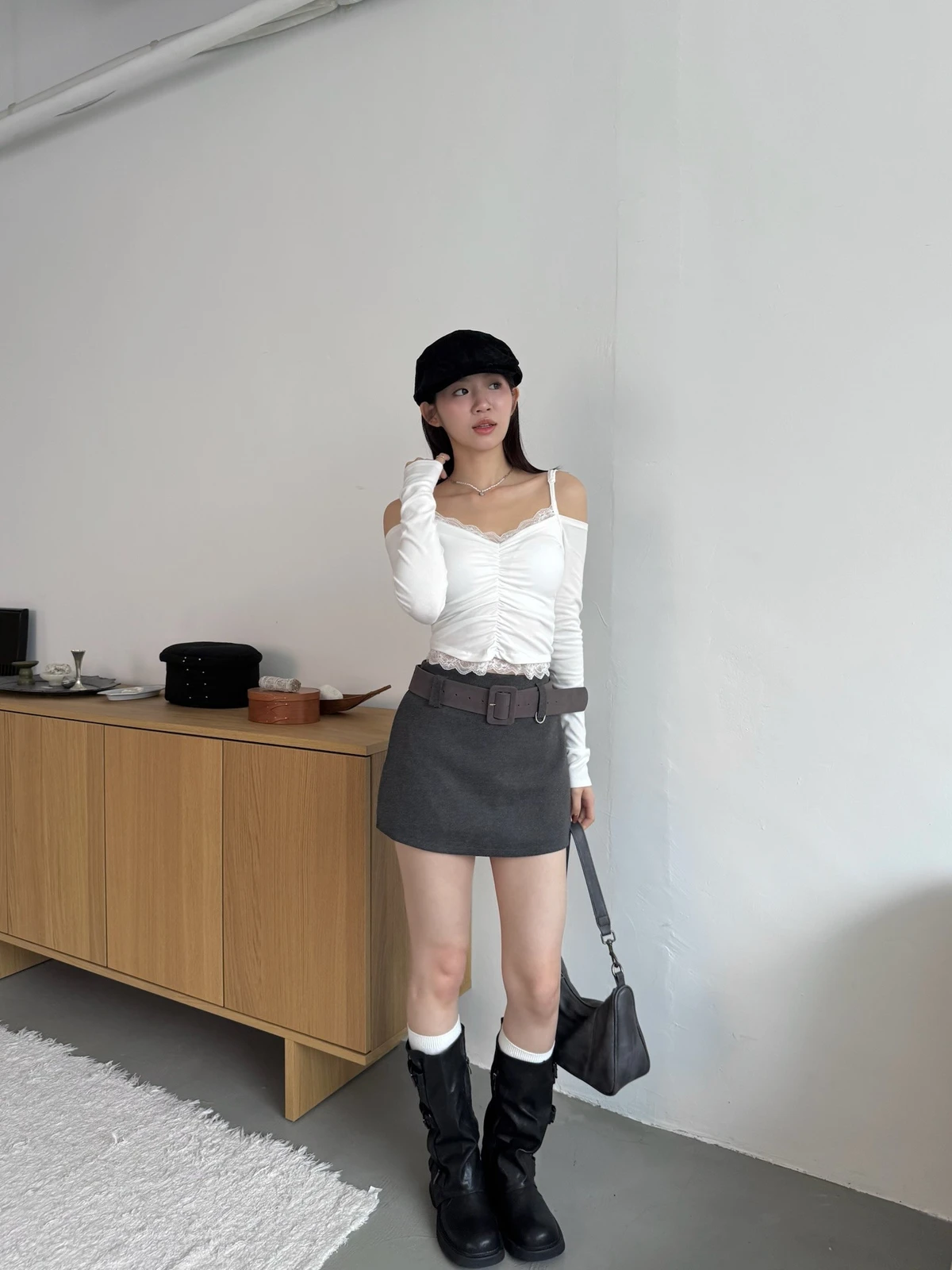 推薦!毛呢A字短褲裙-附皮帶/2colors