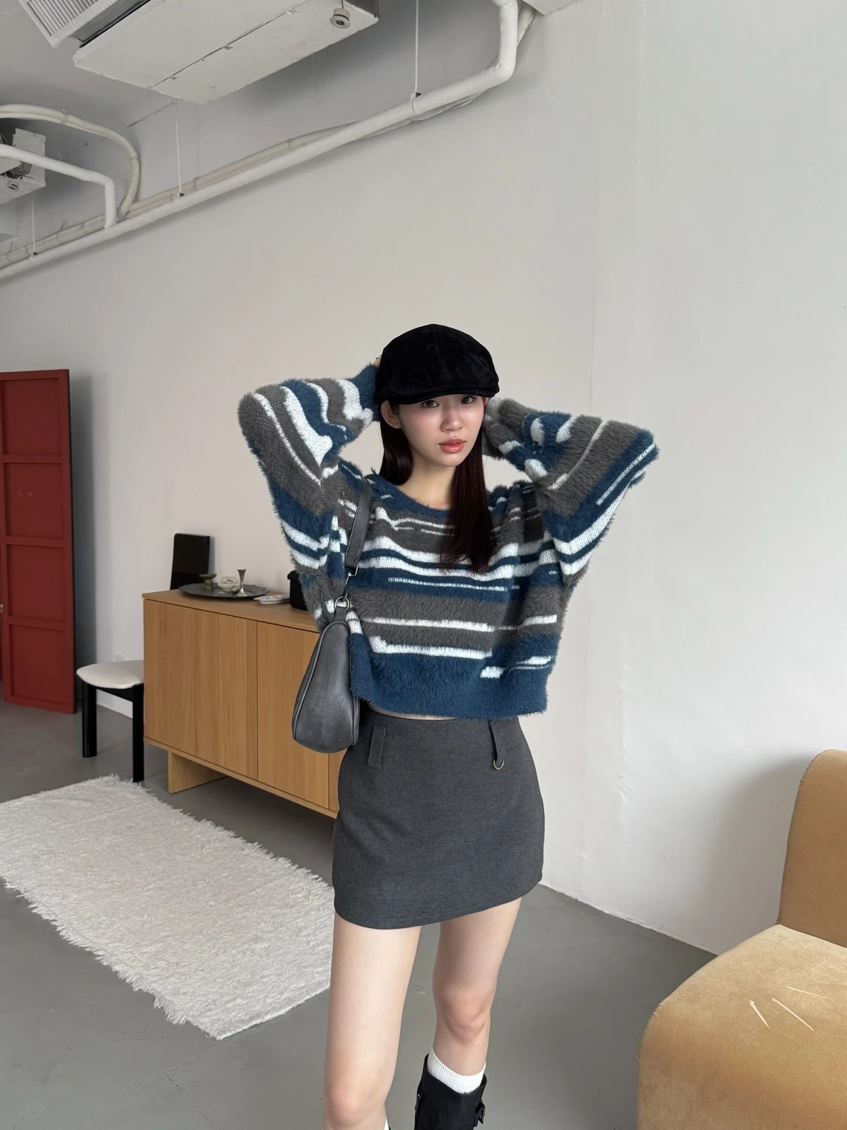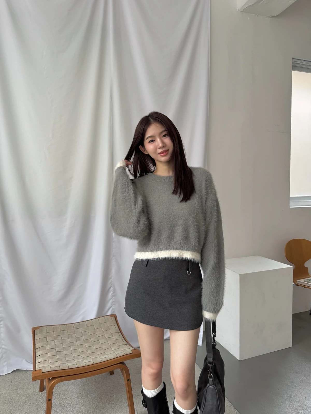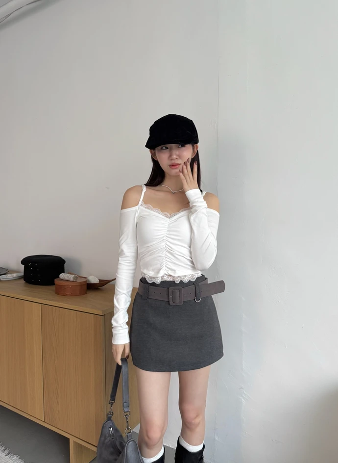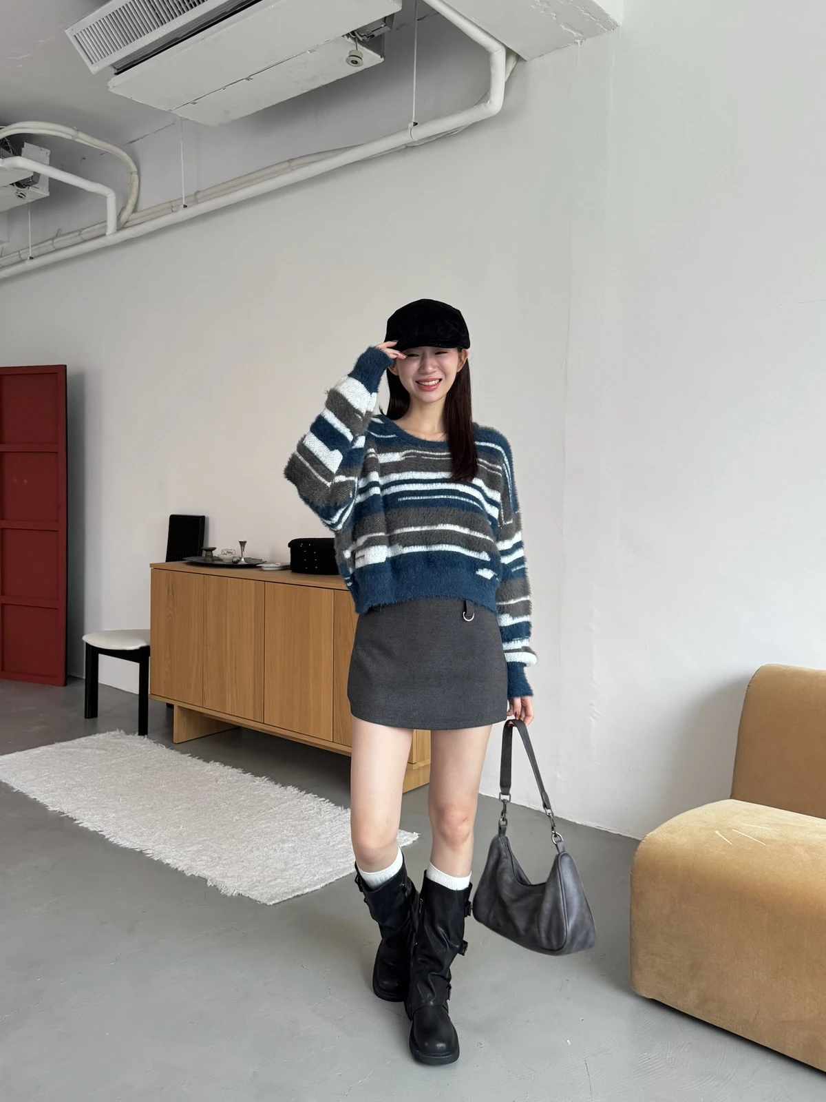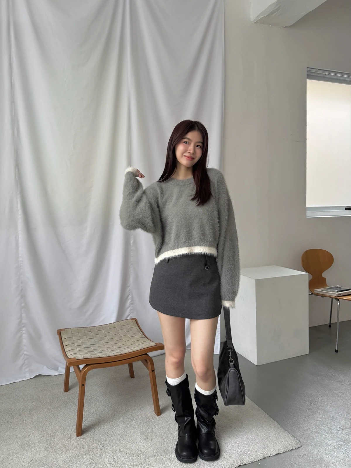 推薦!毛呢A字短褲裙-附皮帶/2colors