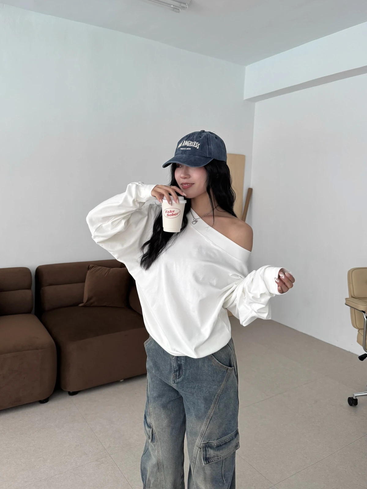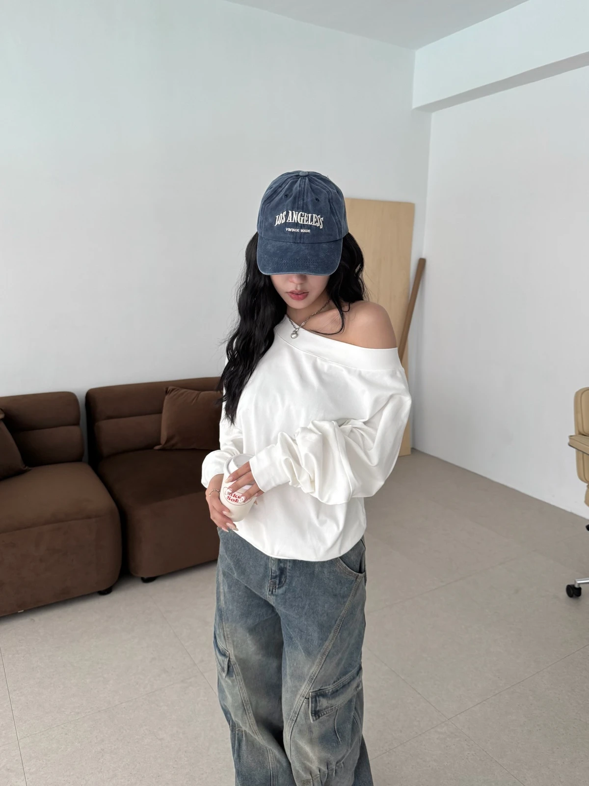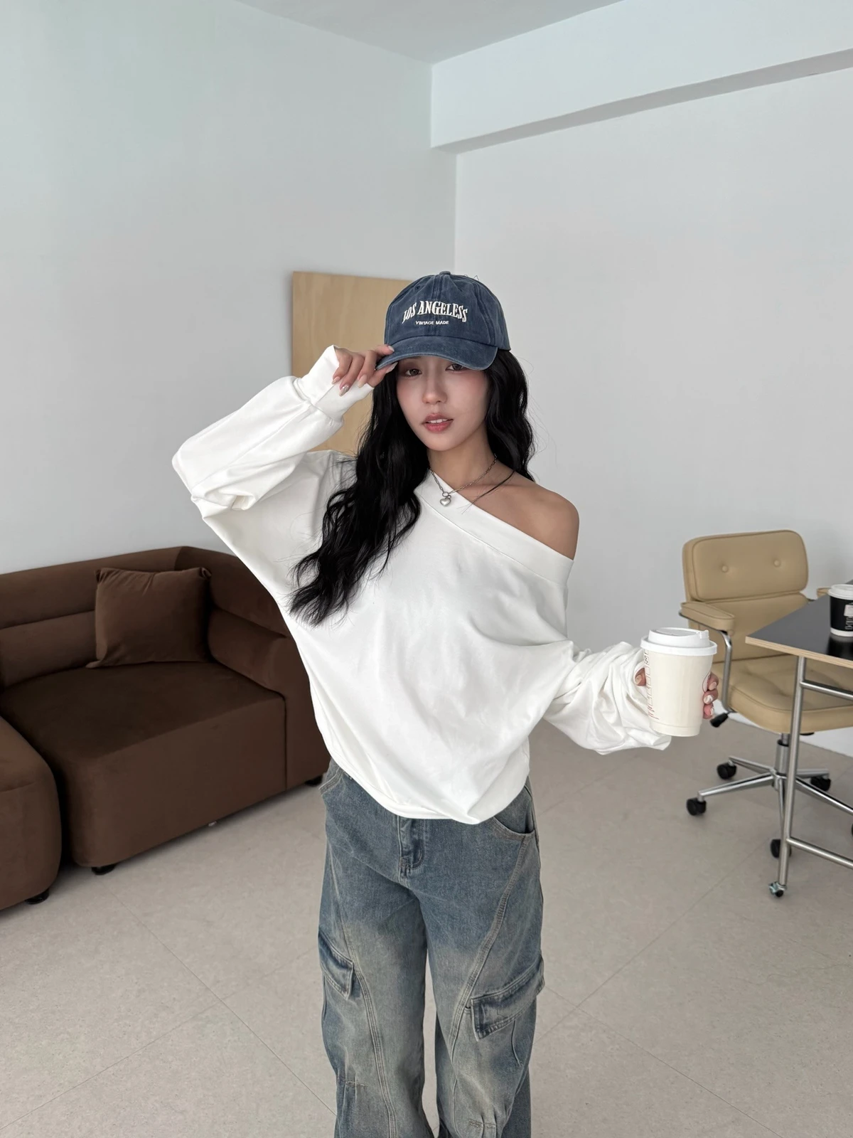 寬領斜肩大學T/3colors