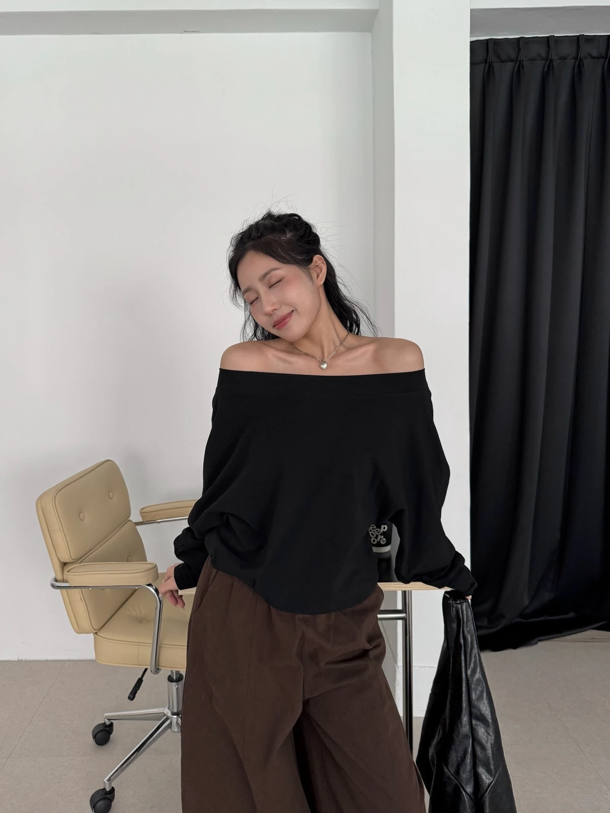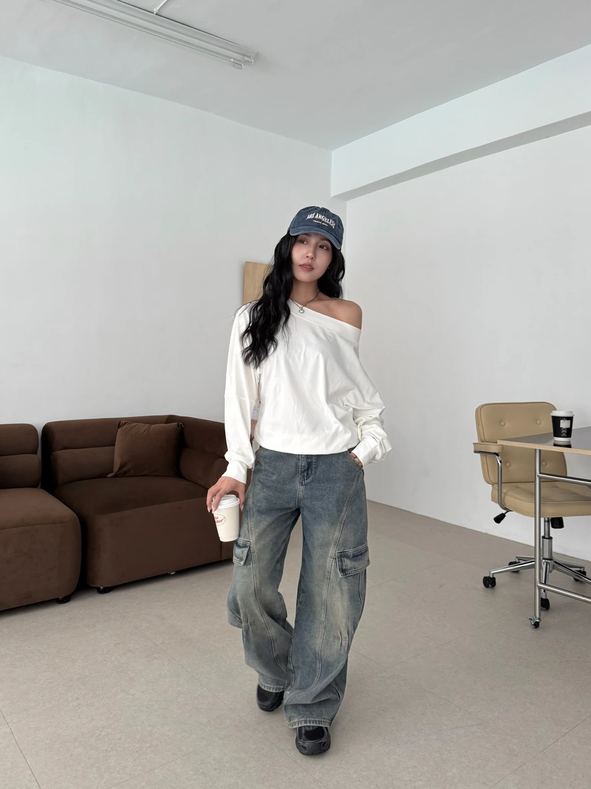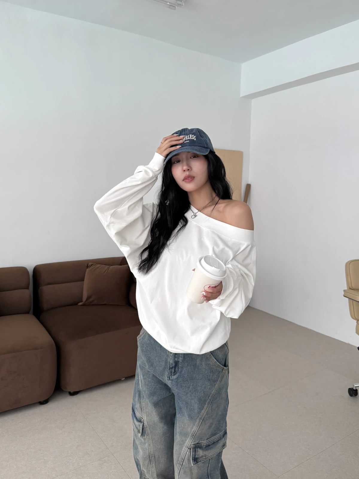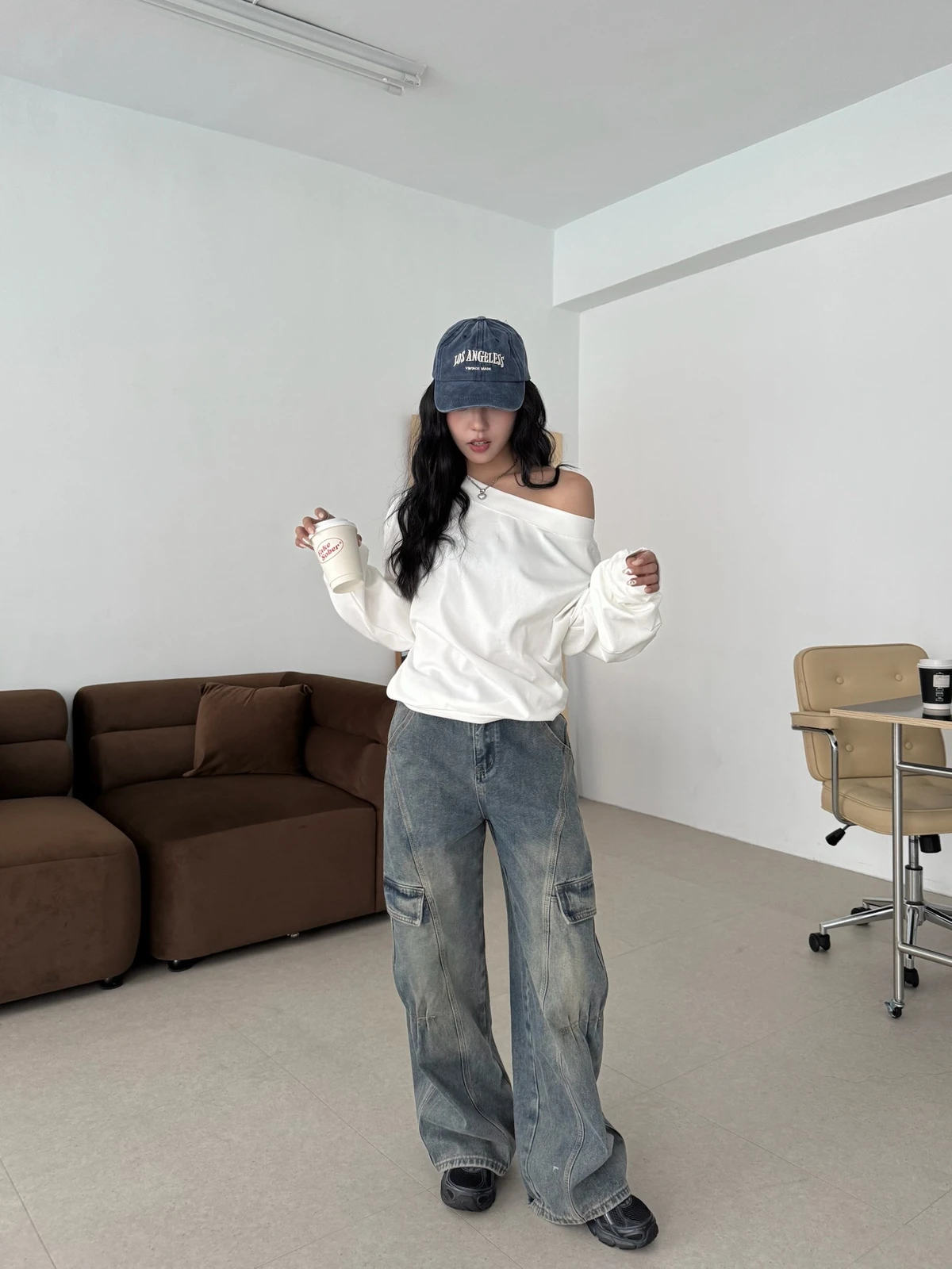 寬領斜肩大學T/3colors