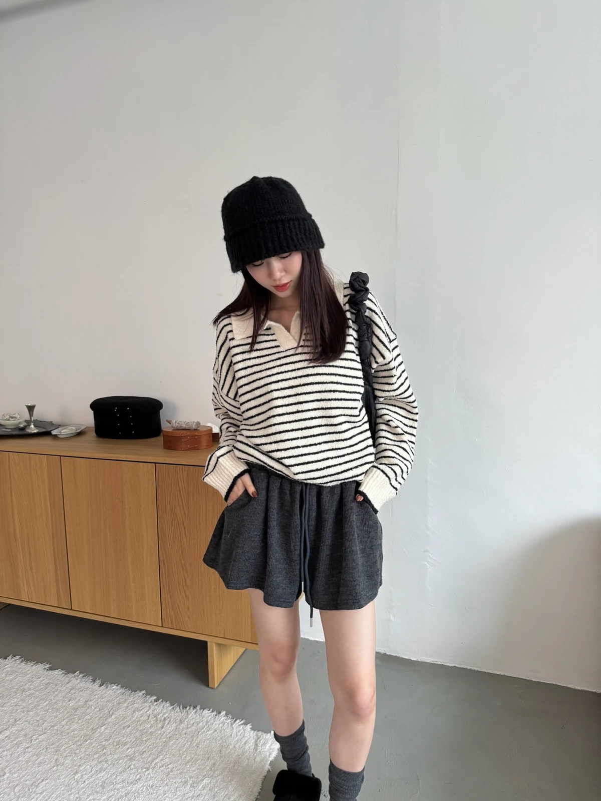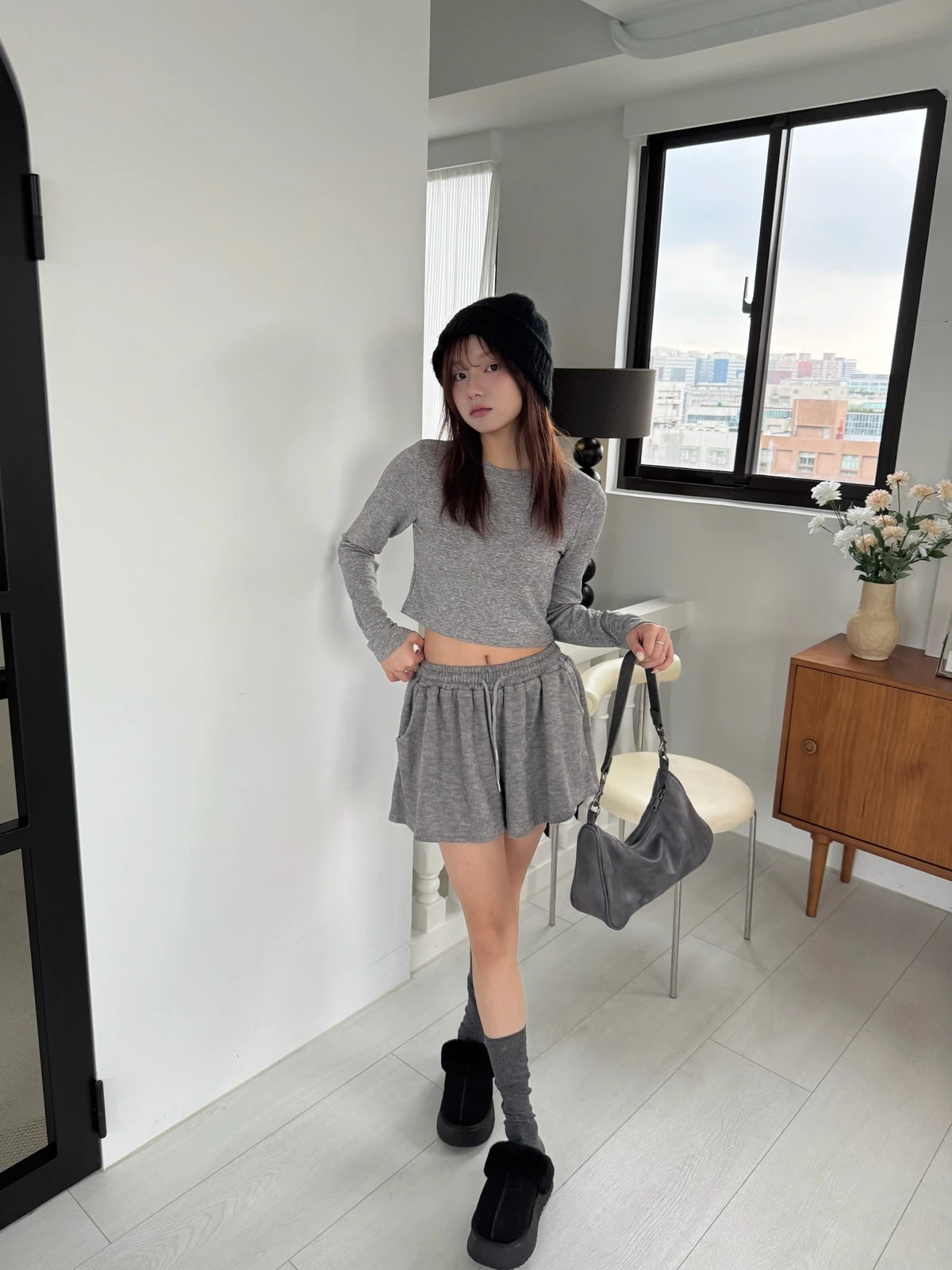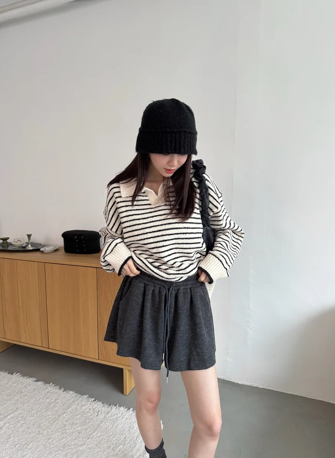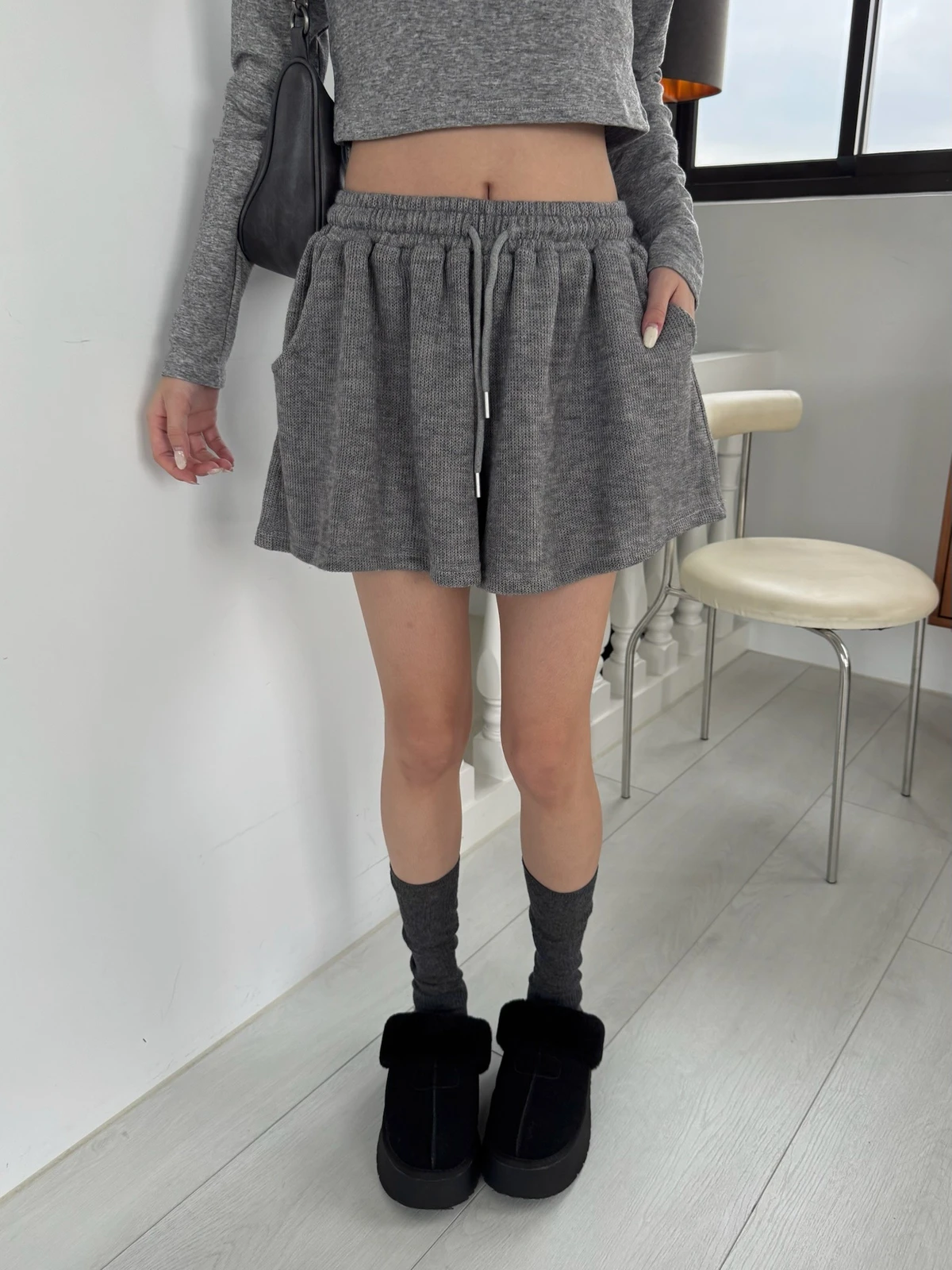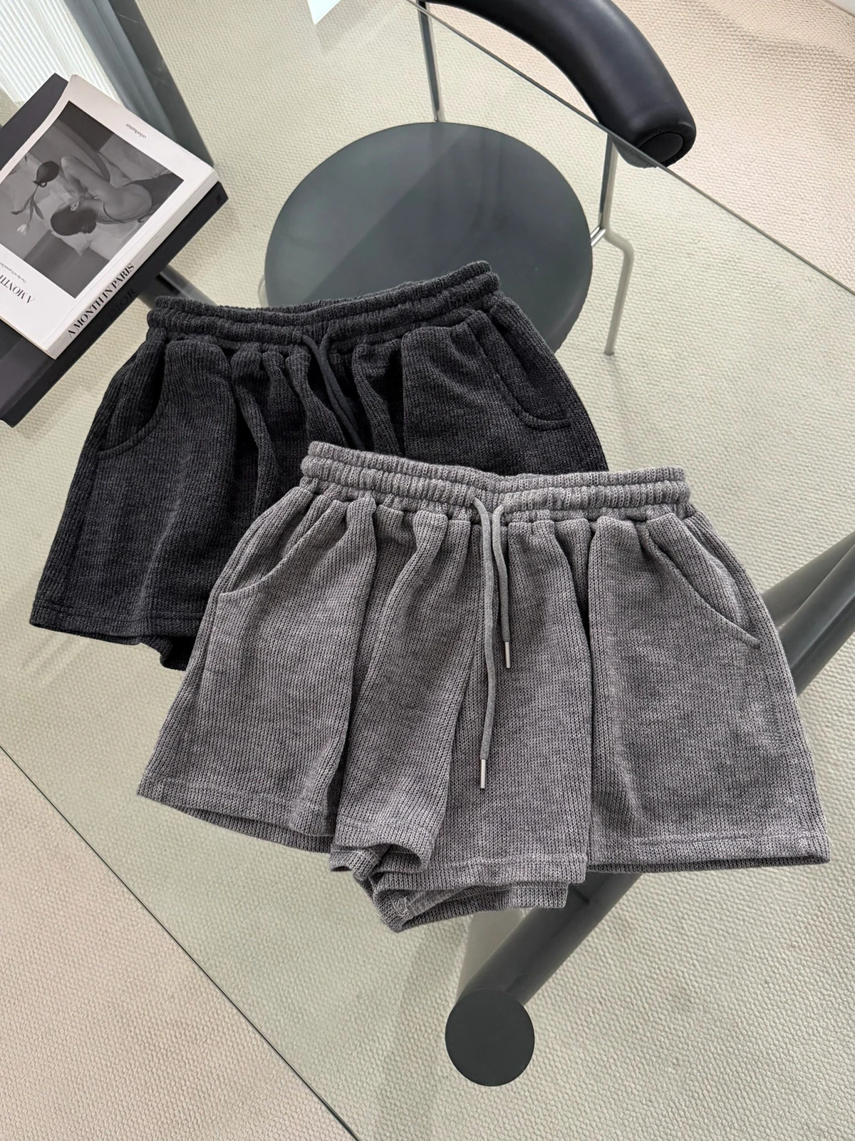 舒服鬆緊抽繩花苞針織短褲/2colors