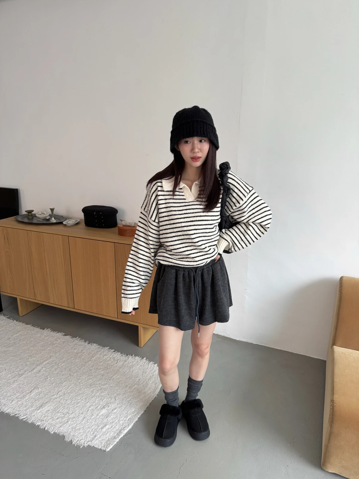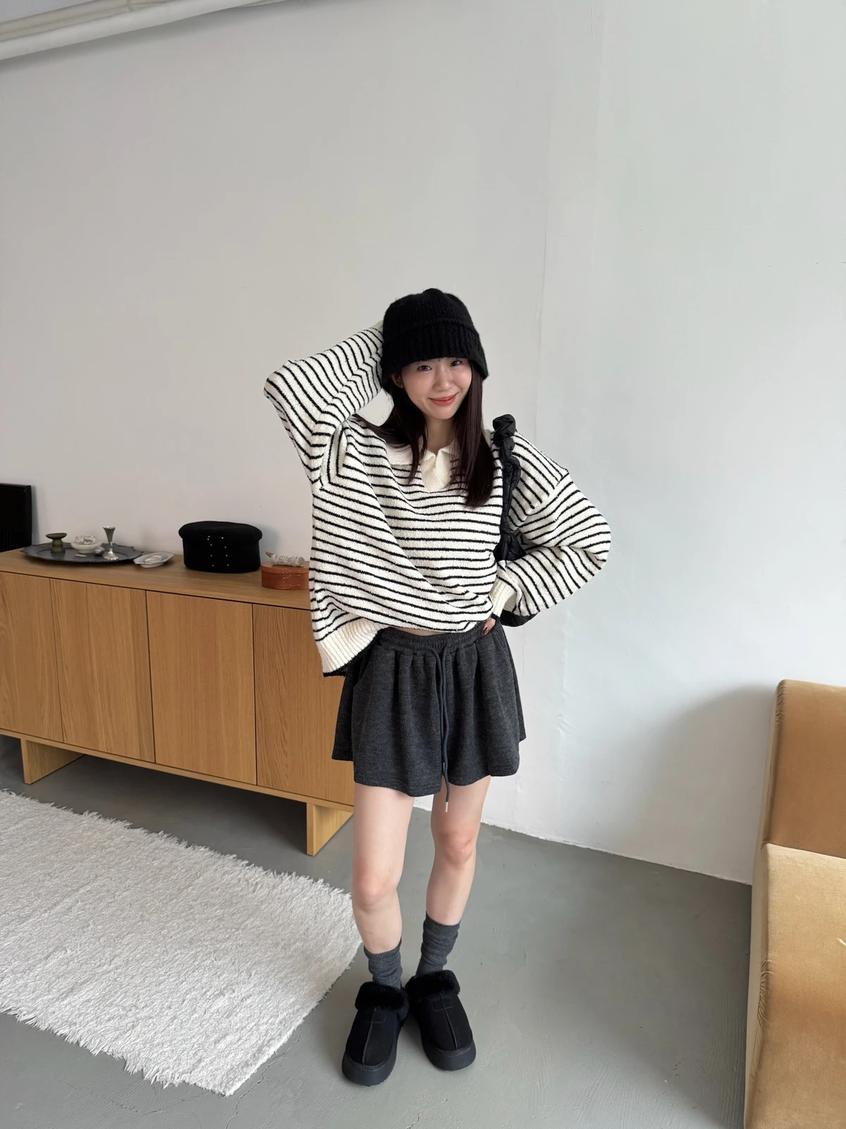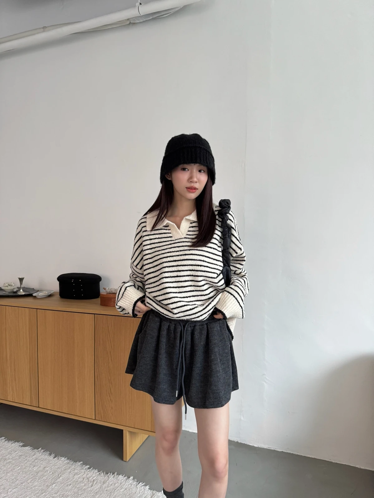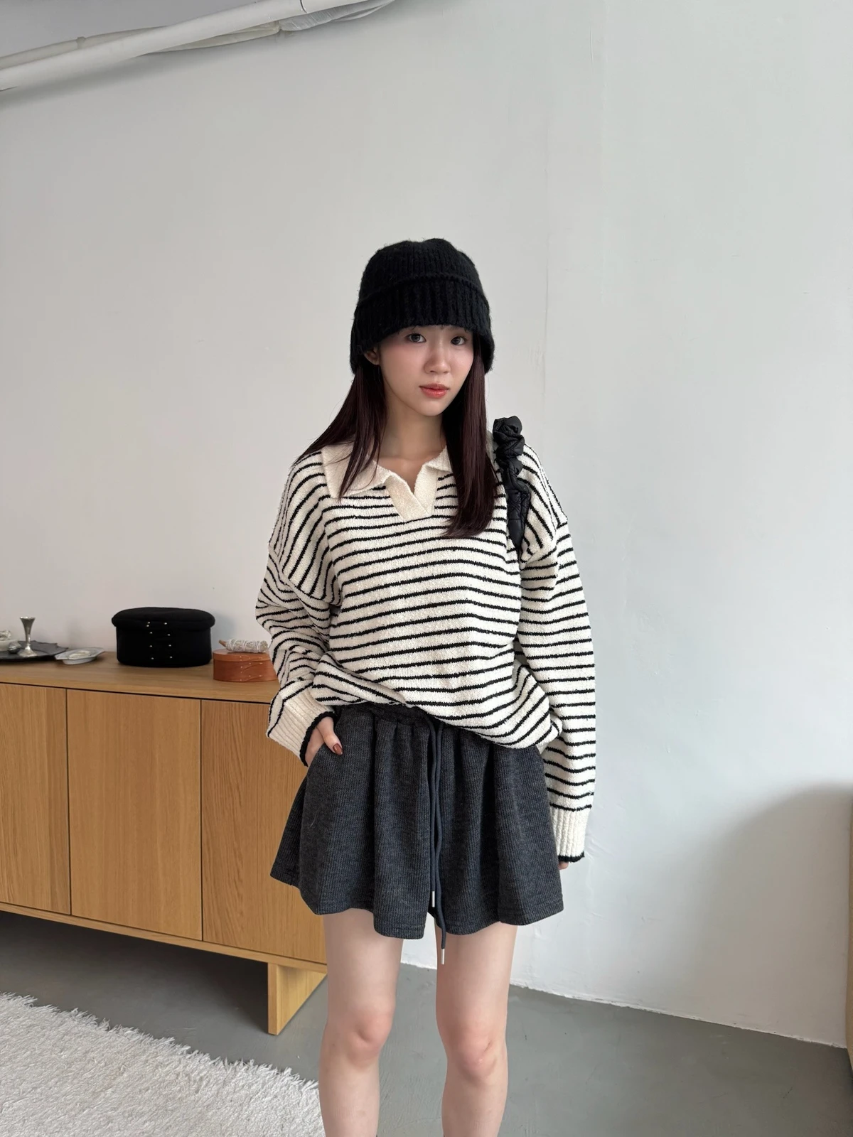 舒服鬆緊抽繩花苞針織短褲/2colors
