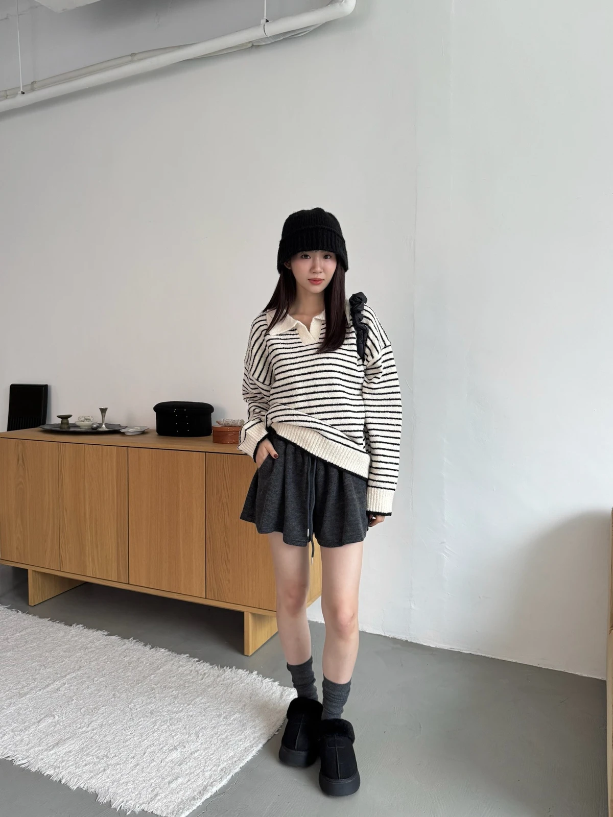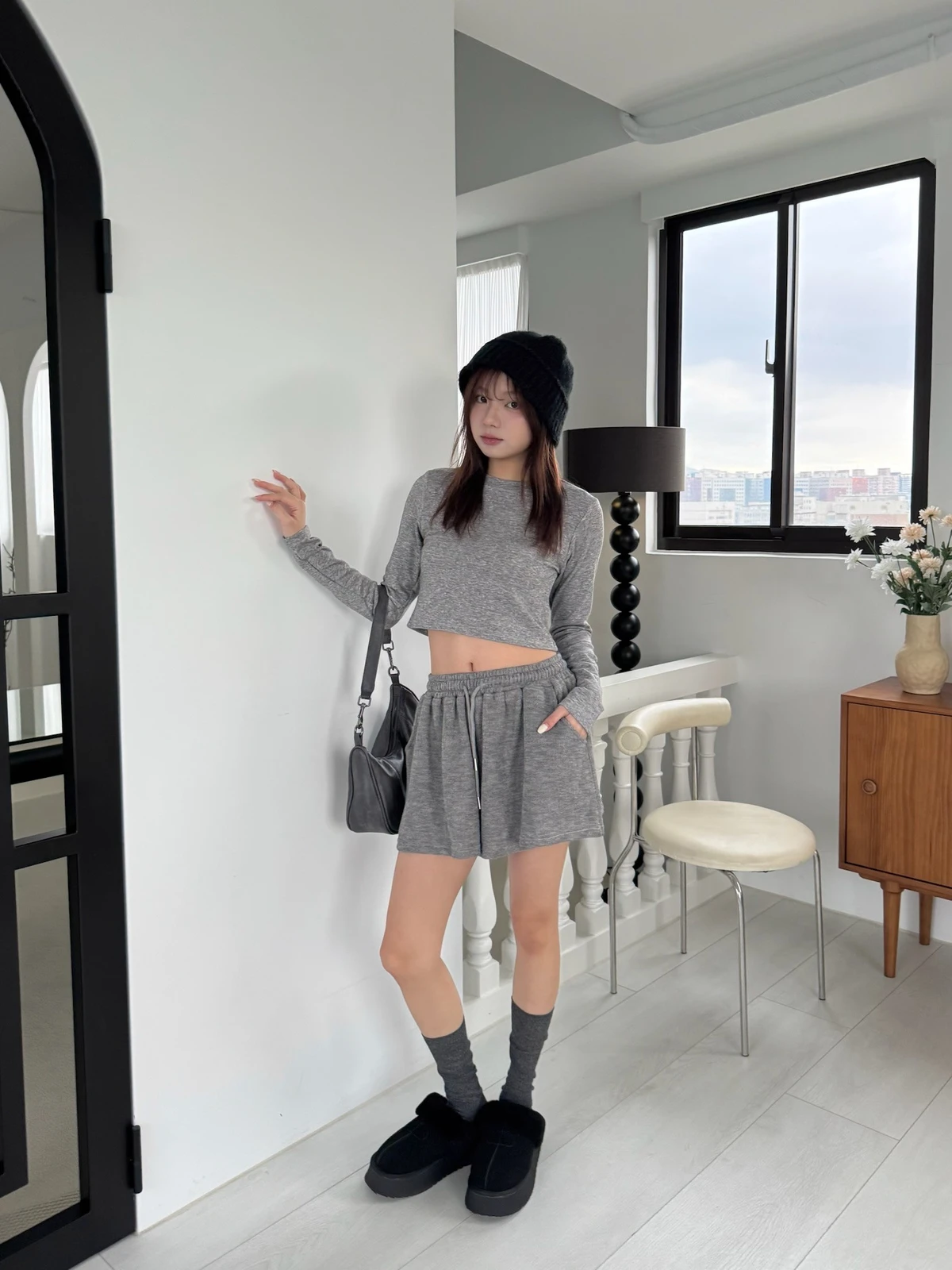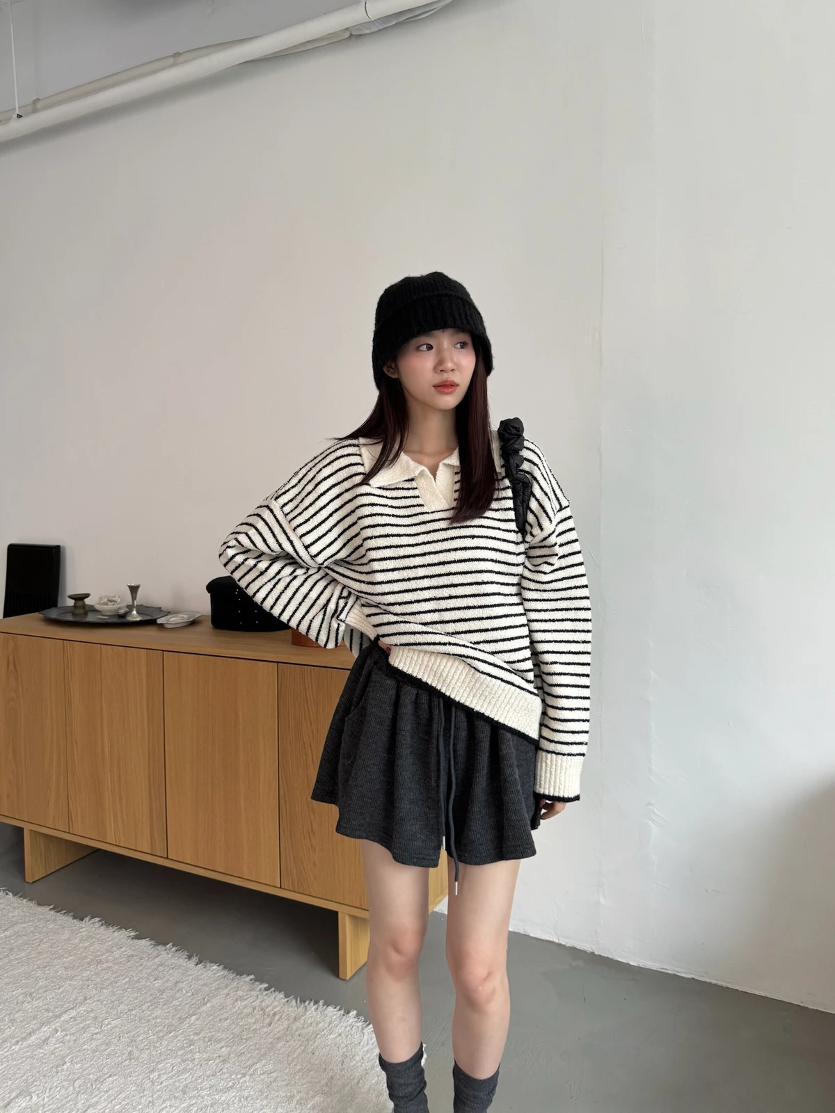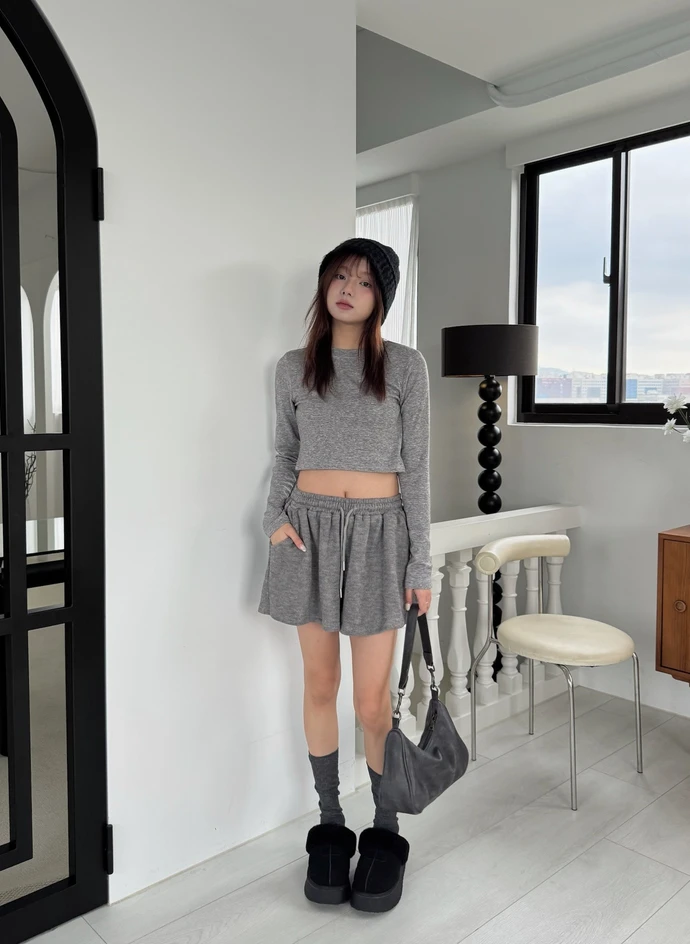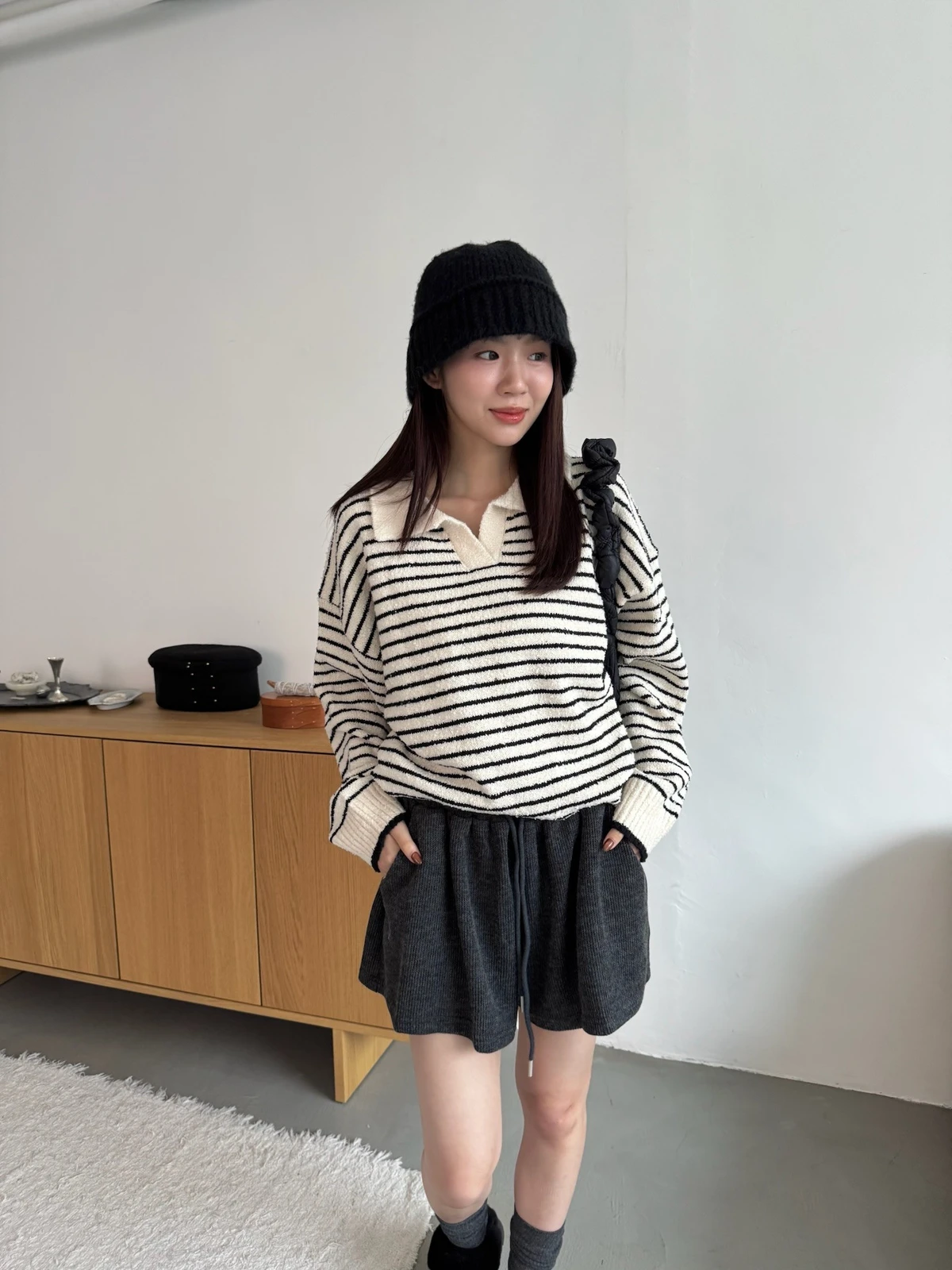 舒服鬆緊抽繩花苞針織短褲/2colors