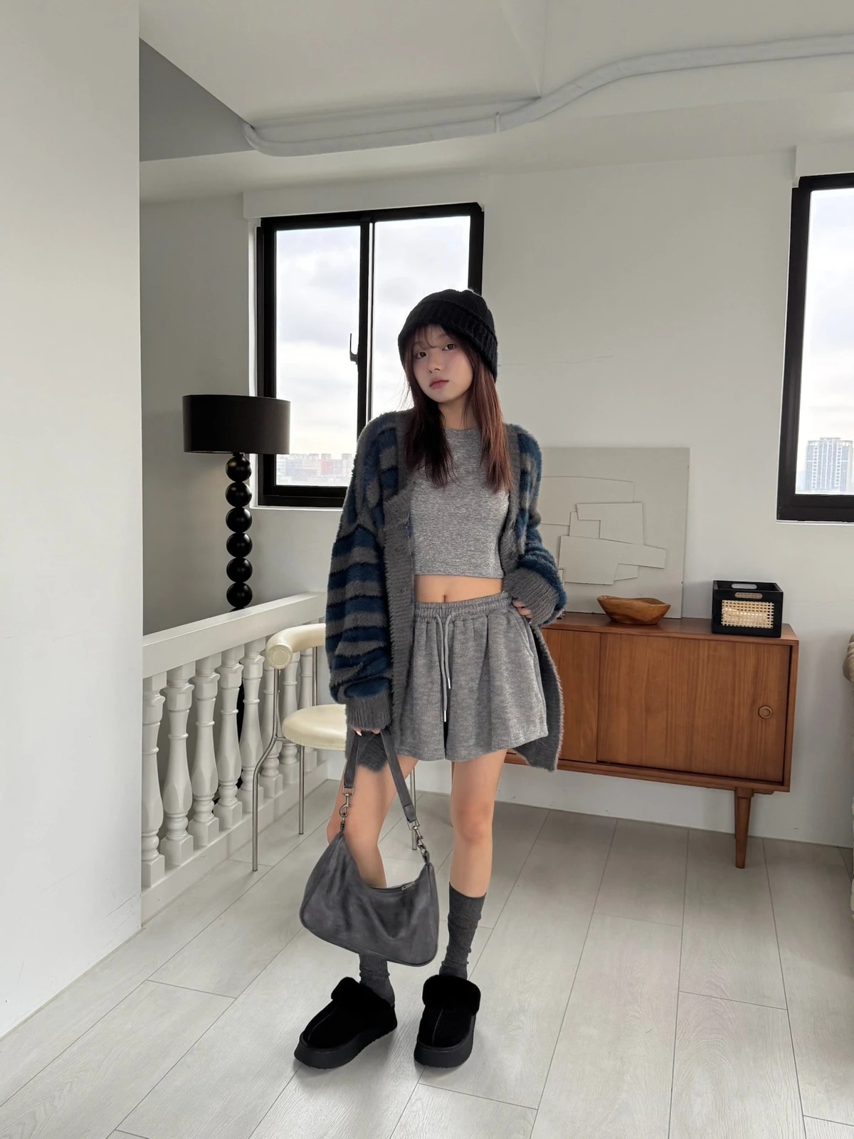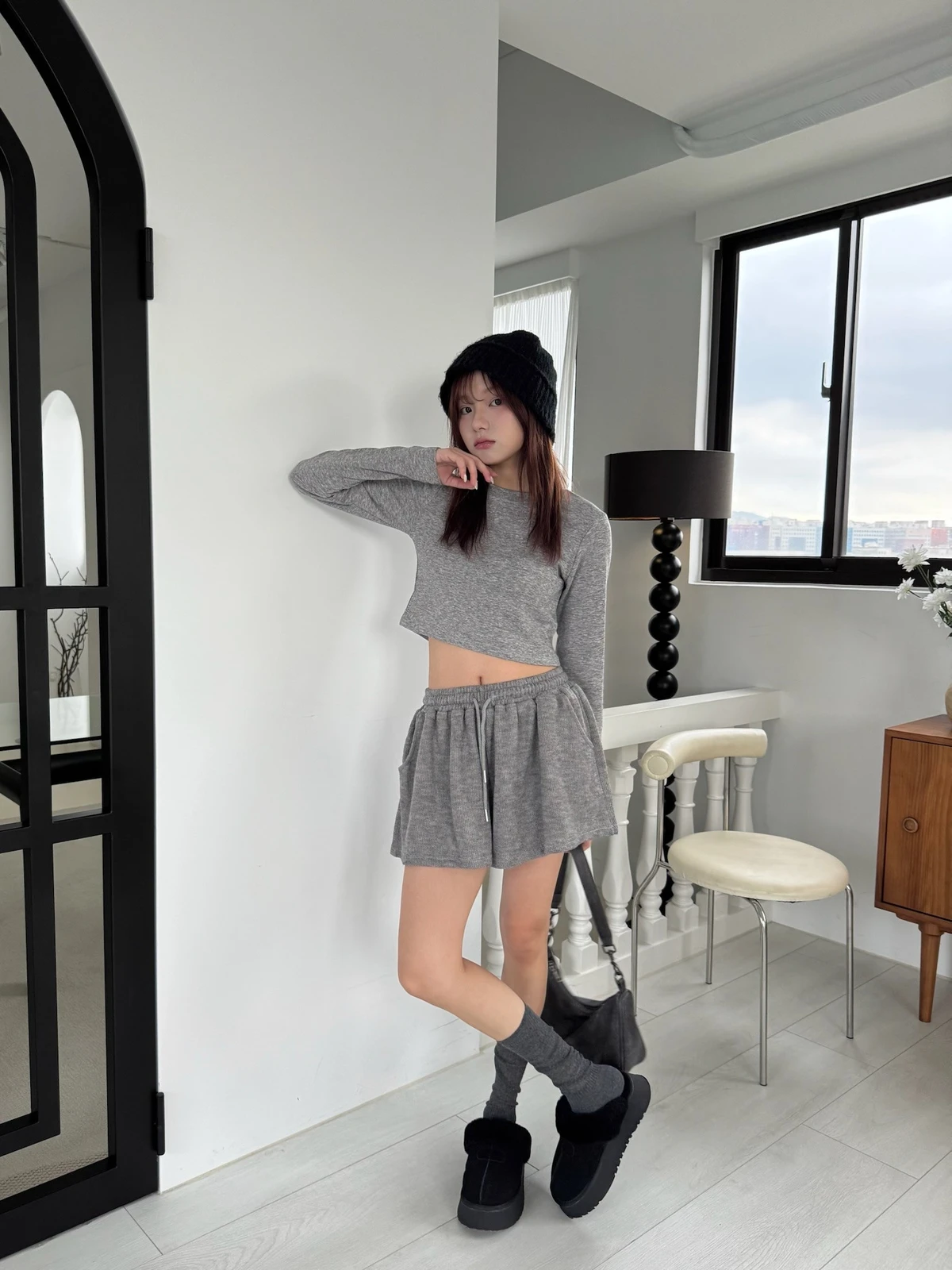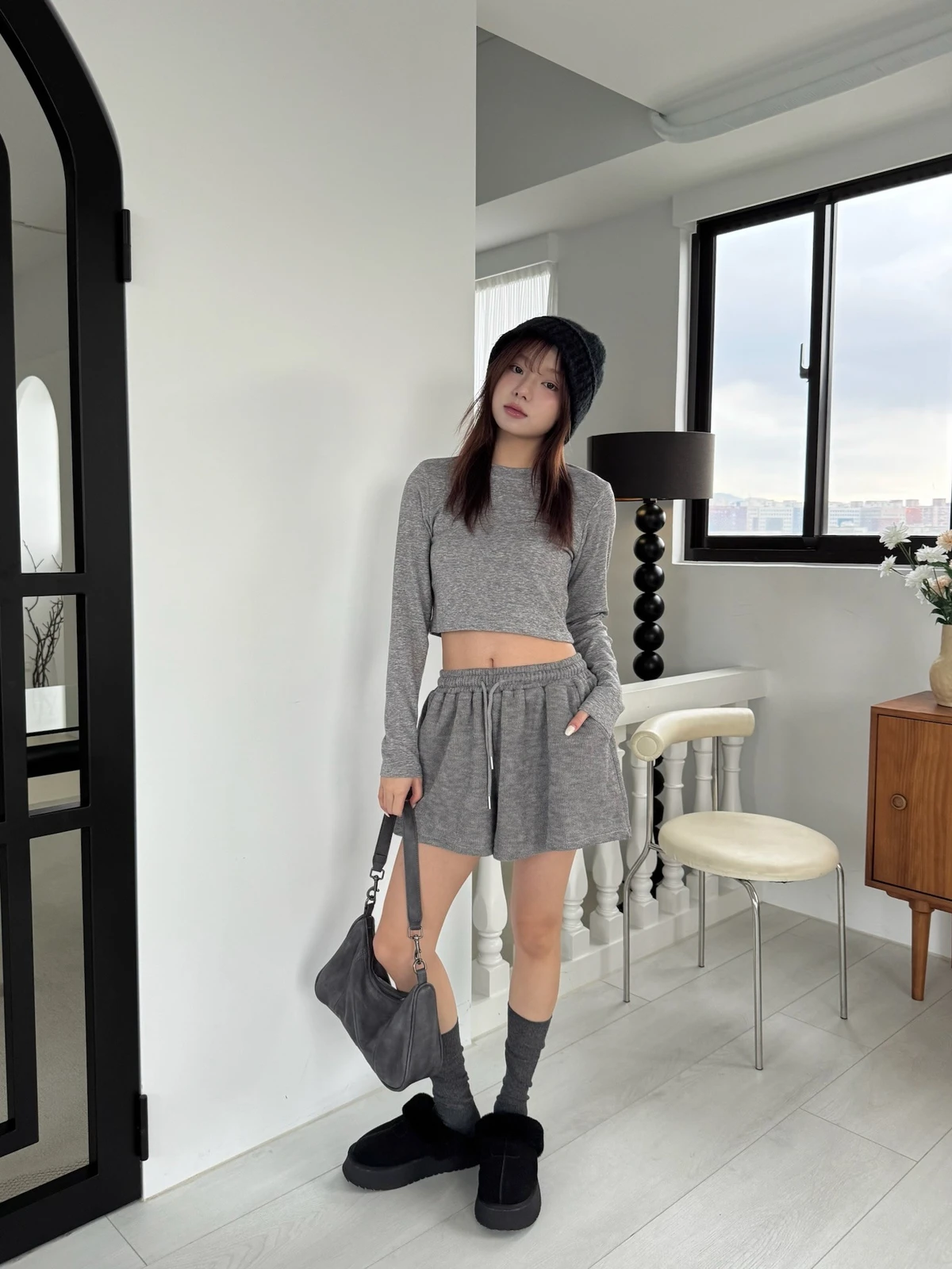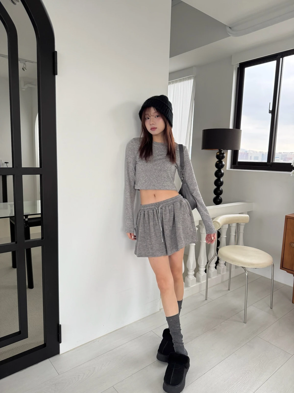 舒服鬆緊抽繩花苞針織短褲/2colors