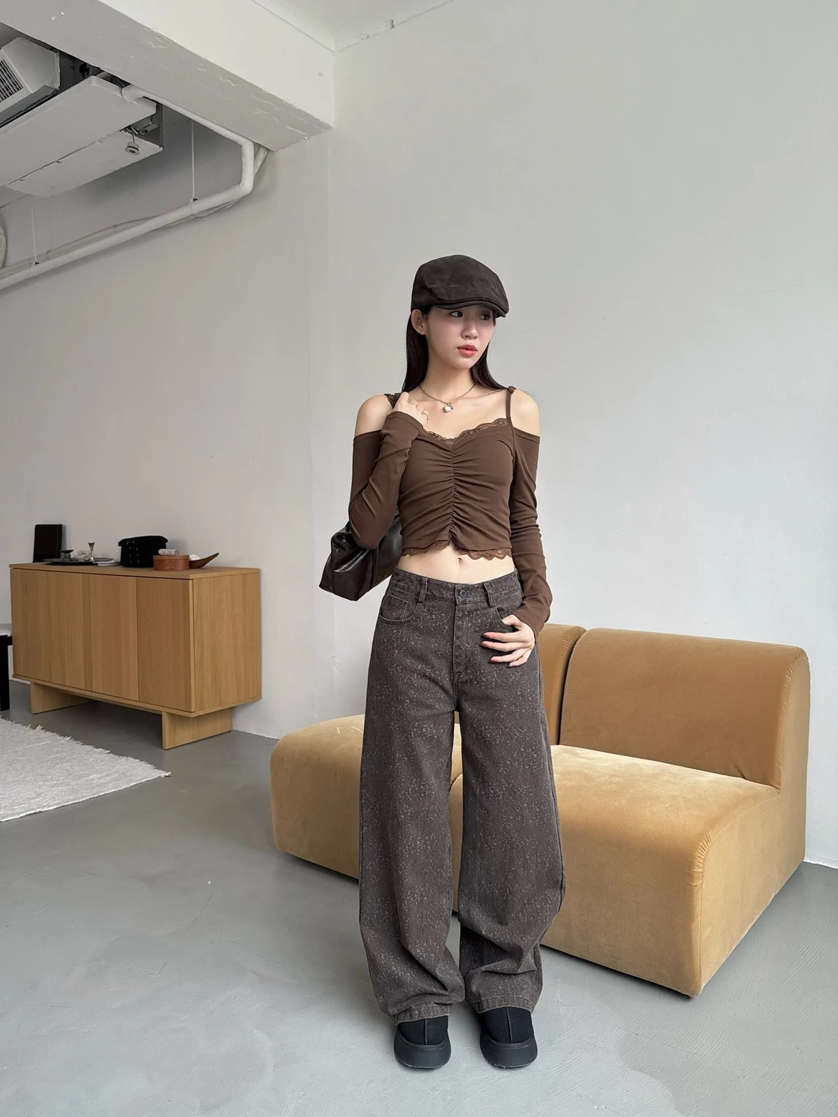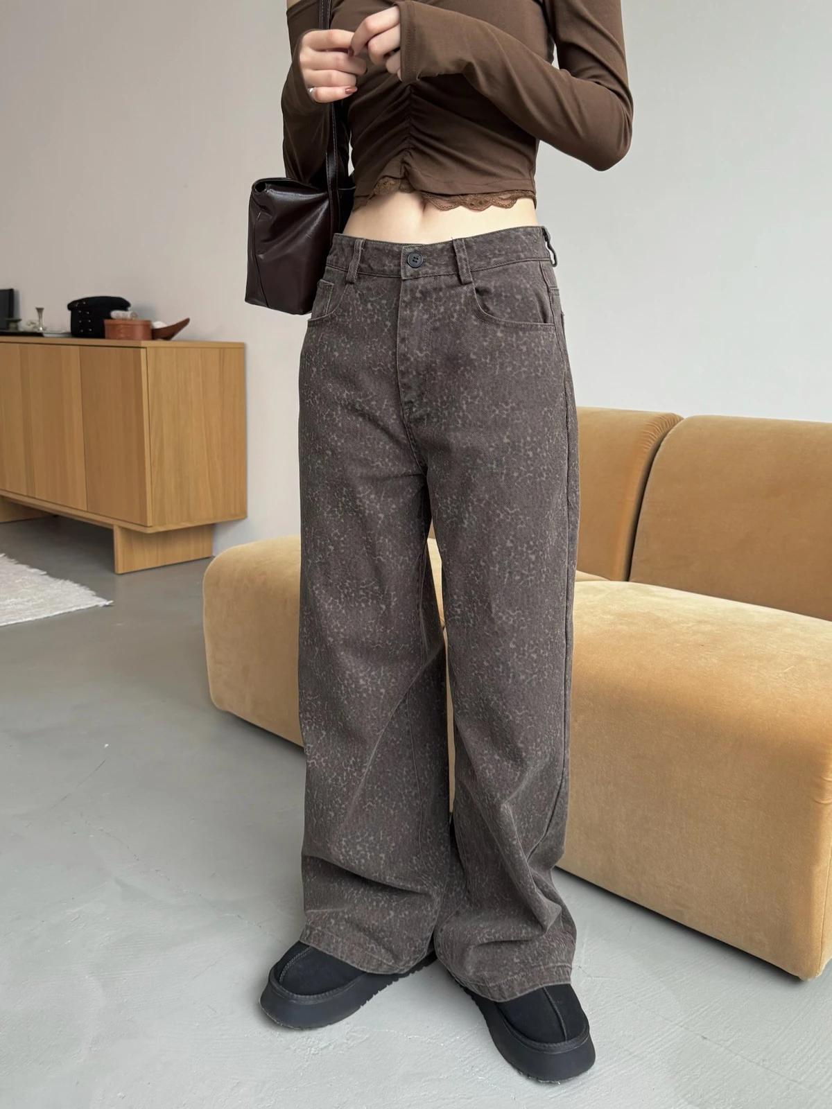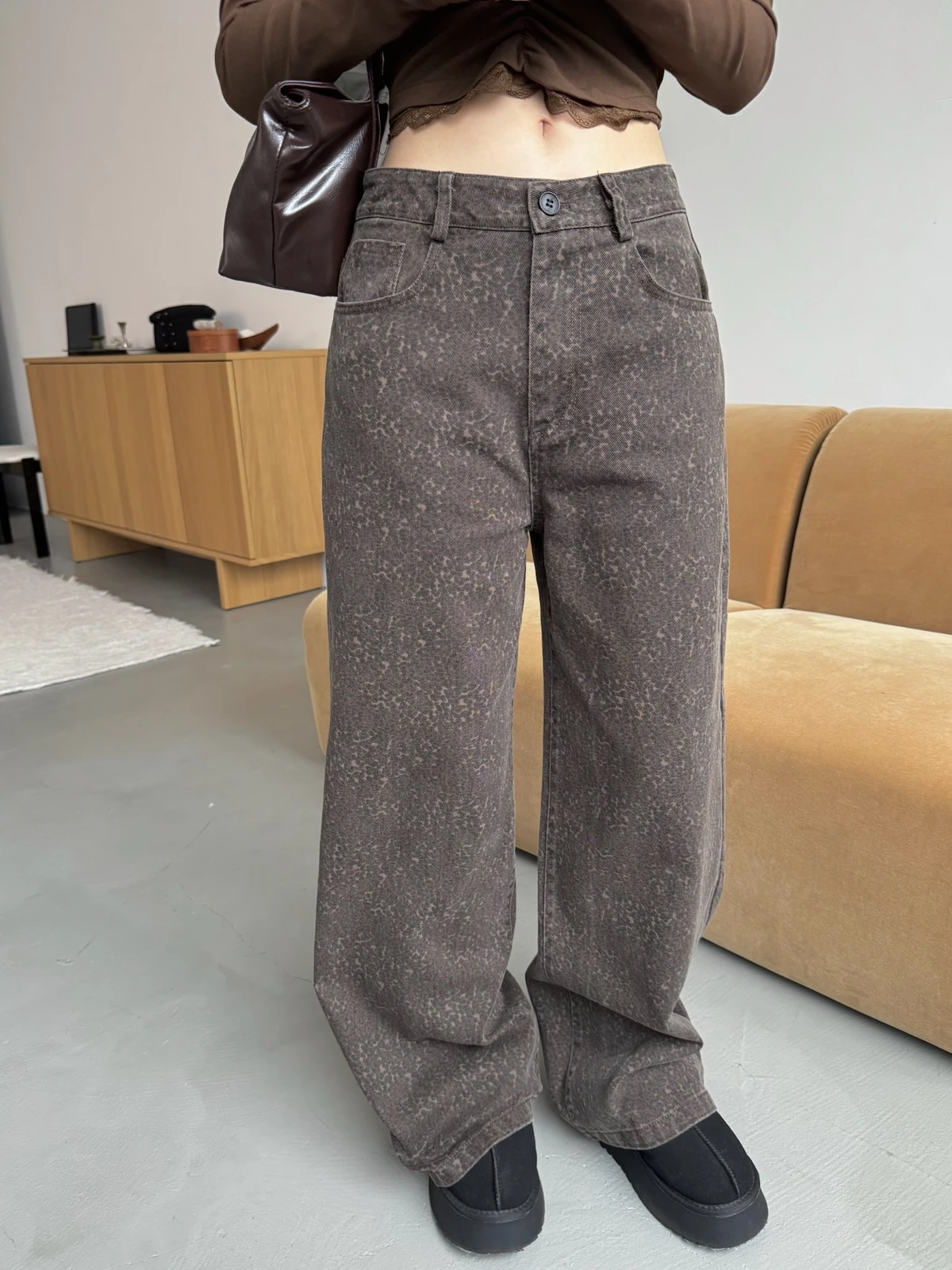 低調豹紋牛仔長褲