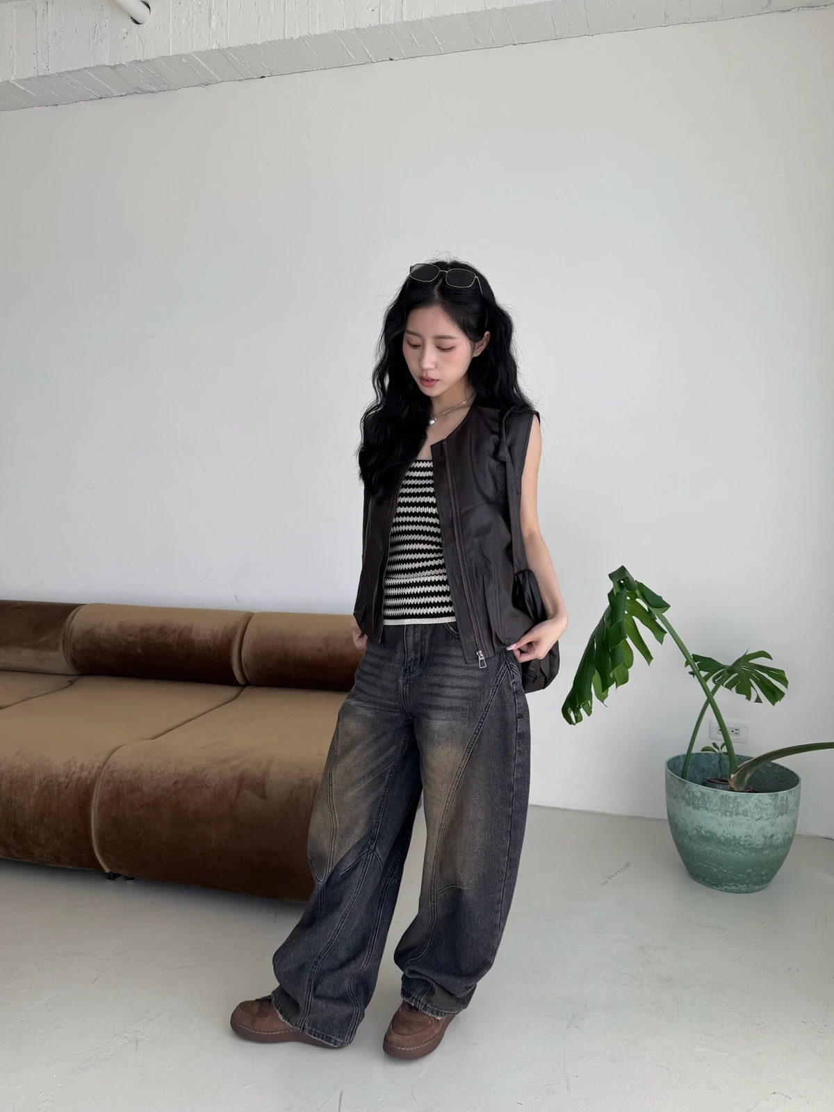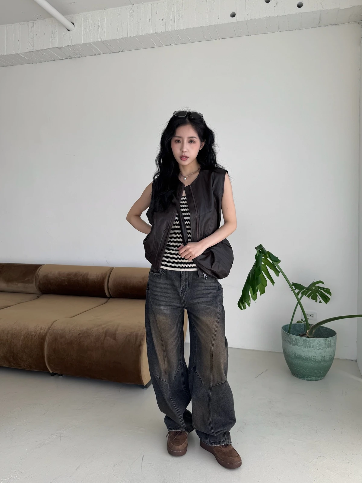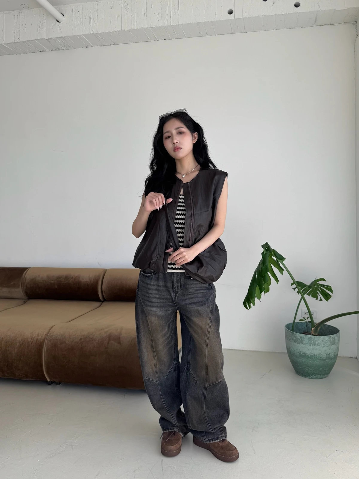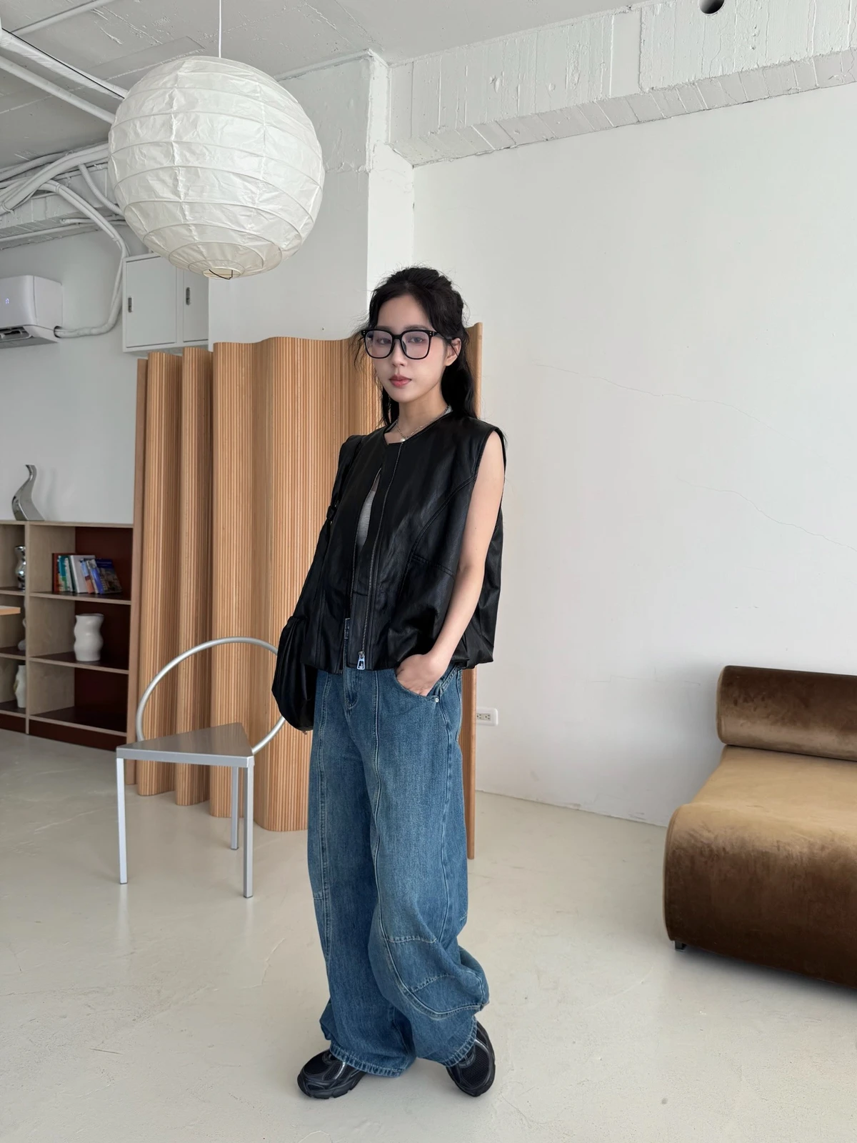 附包包無領拉鍊軟皮革背心/2colors