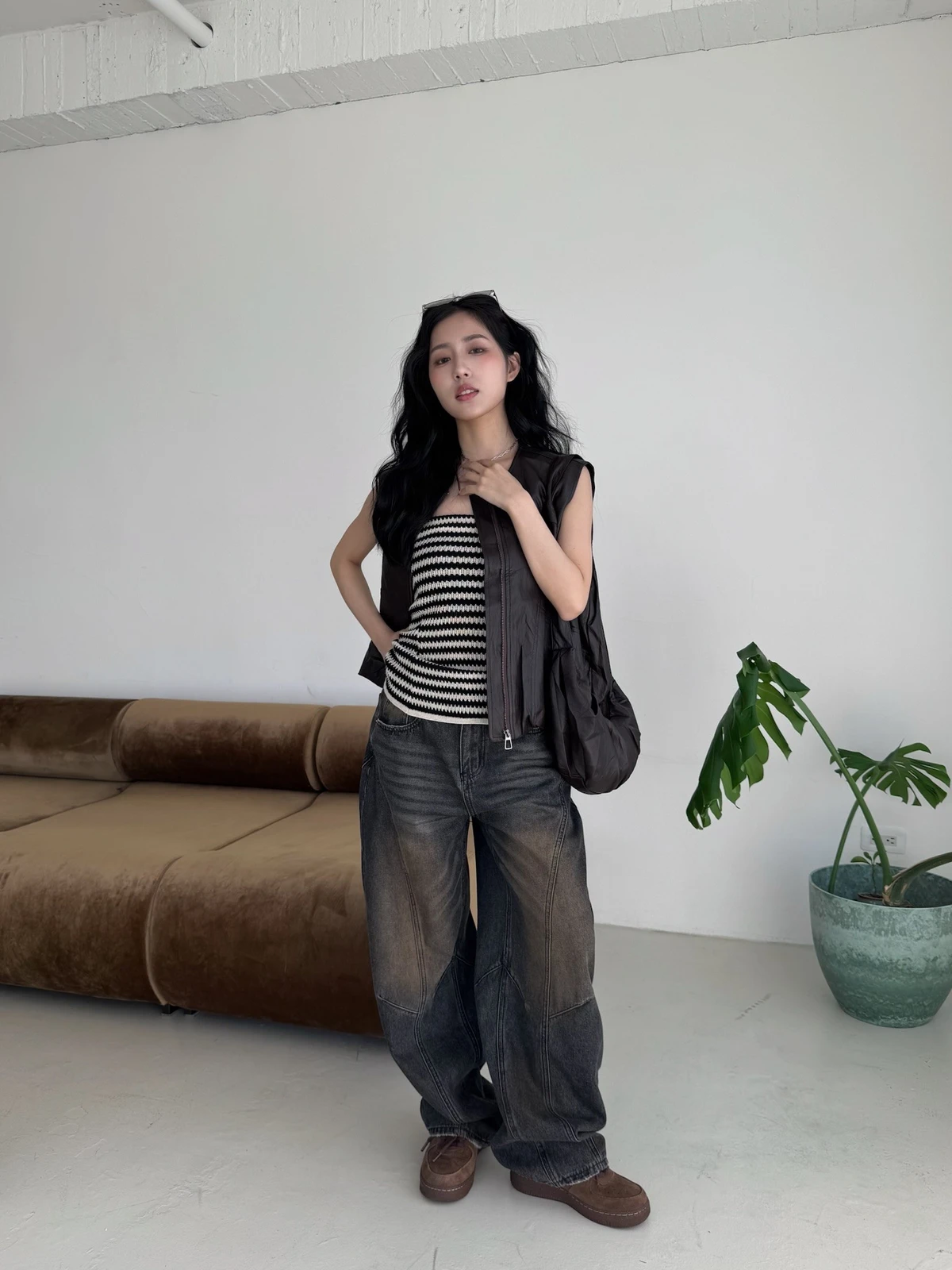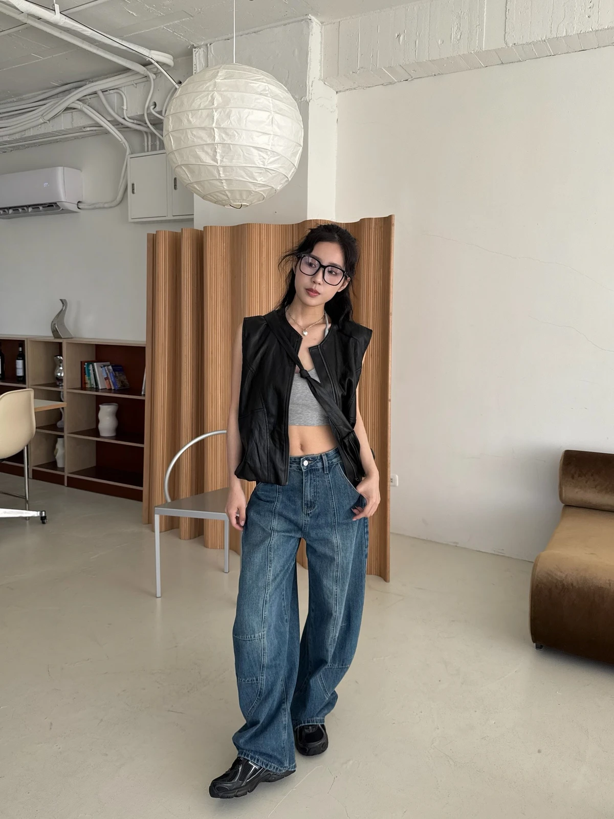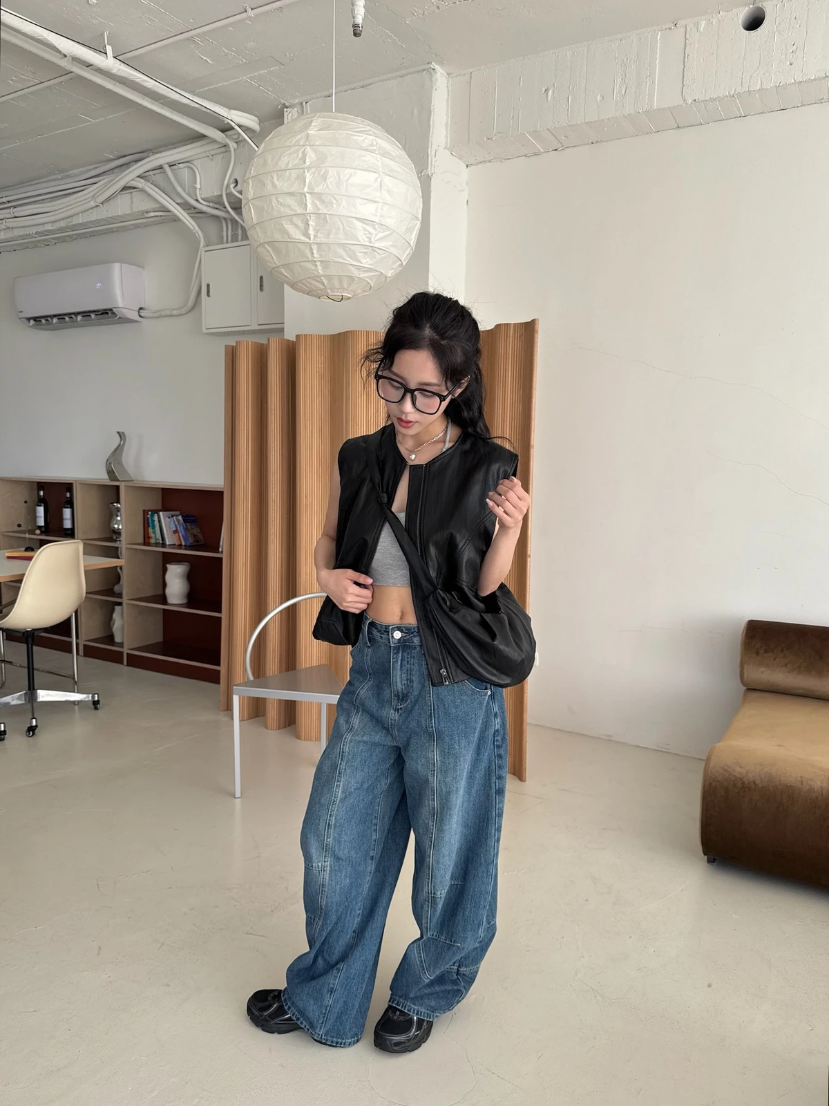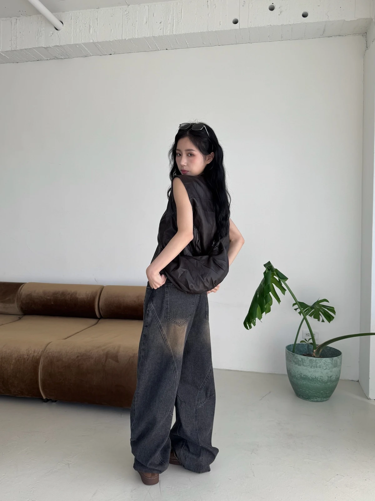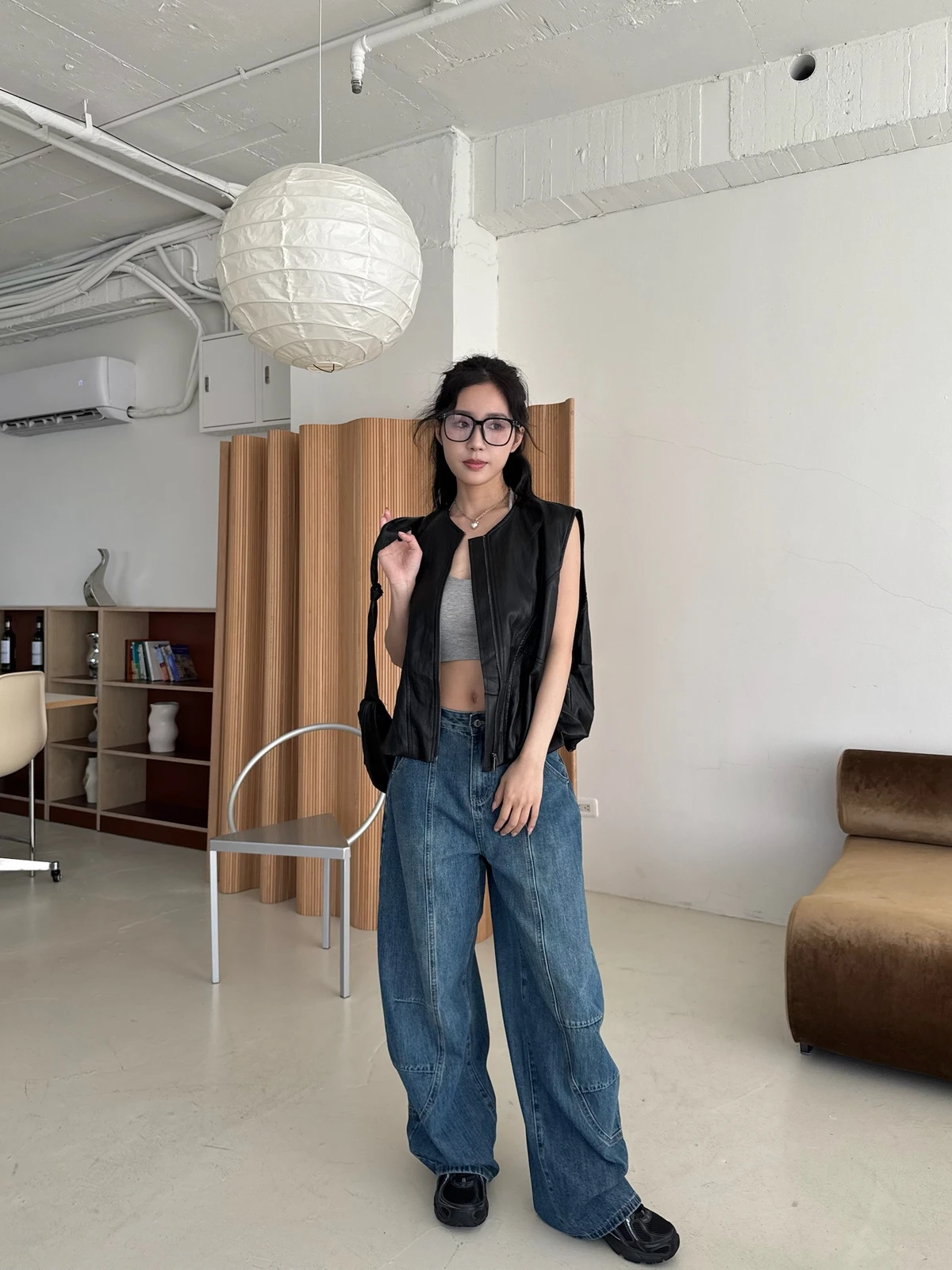 附包包無領拉鍊軟皮革背心/2colors