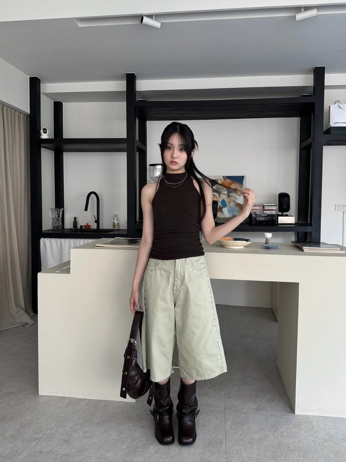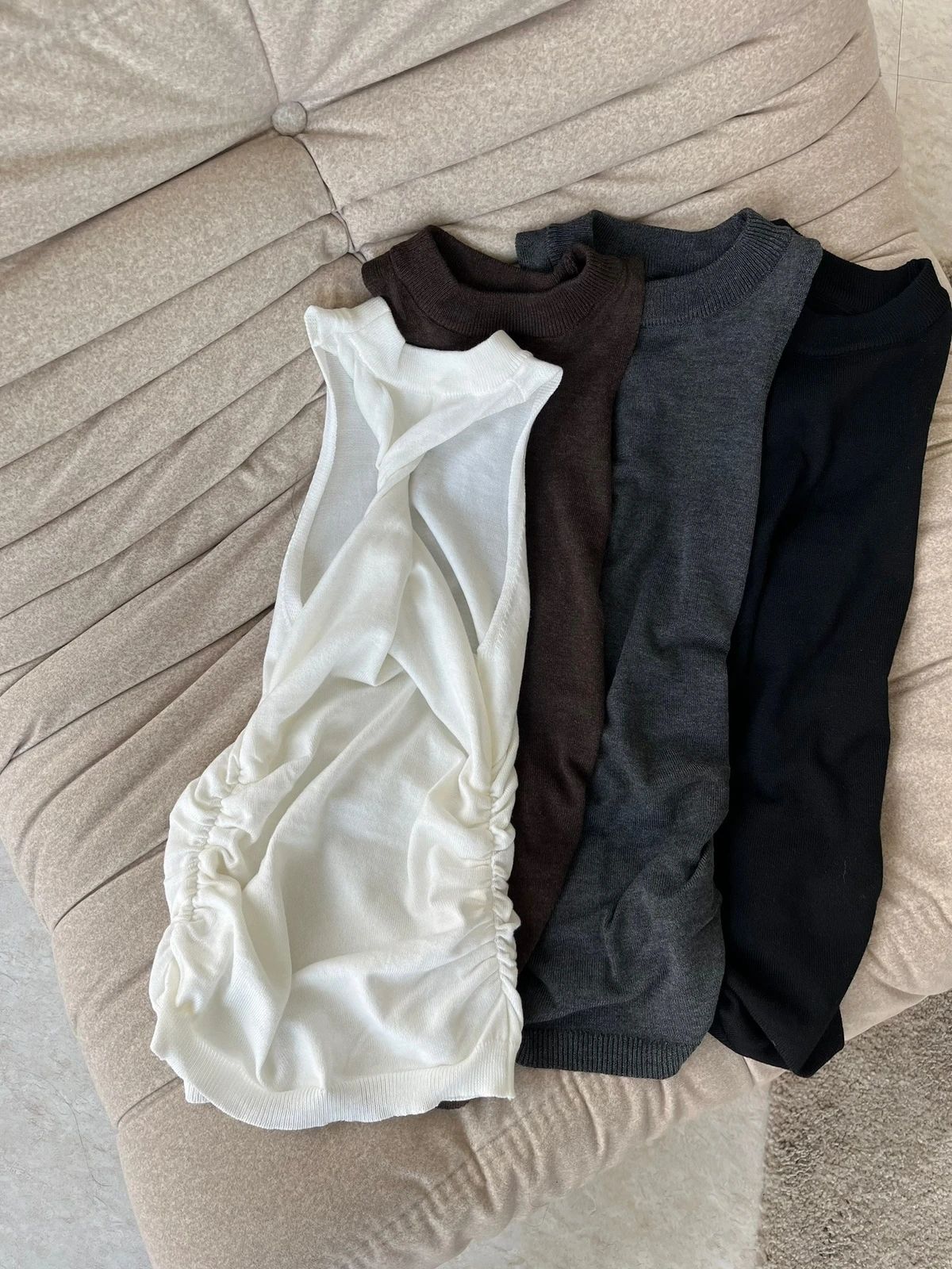 背後扭結針織背心/4colors