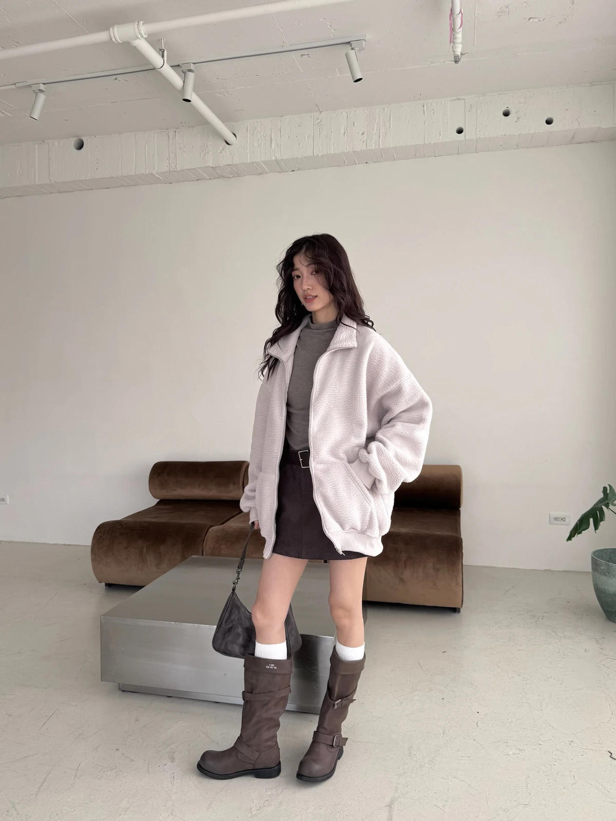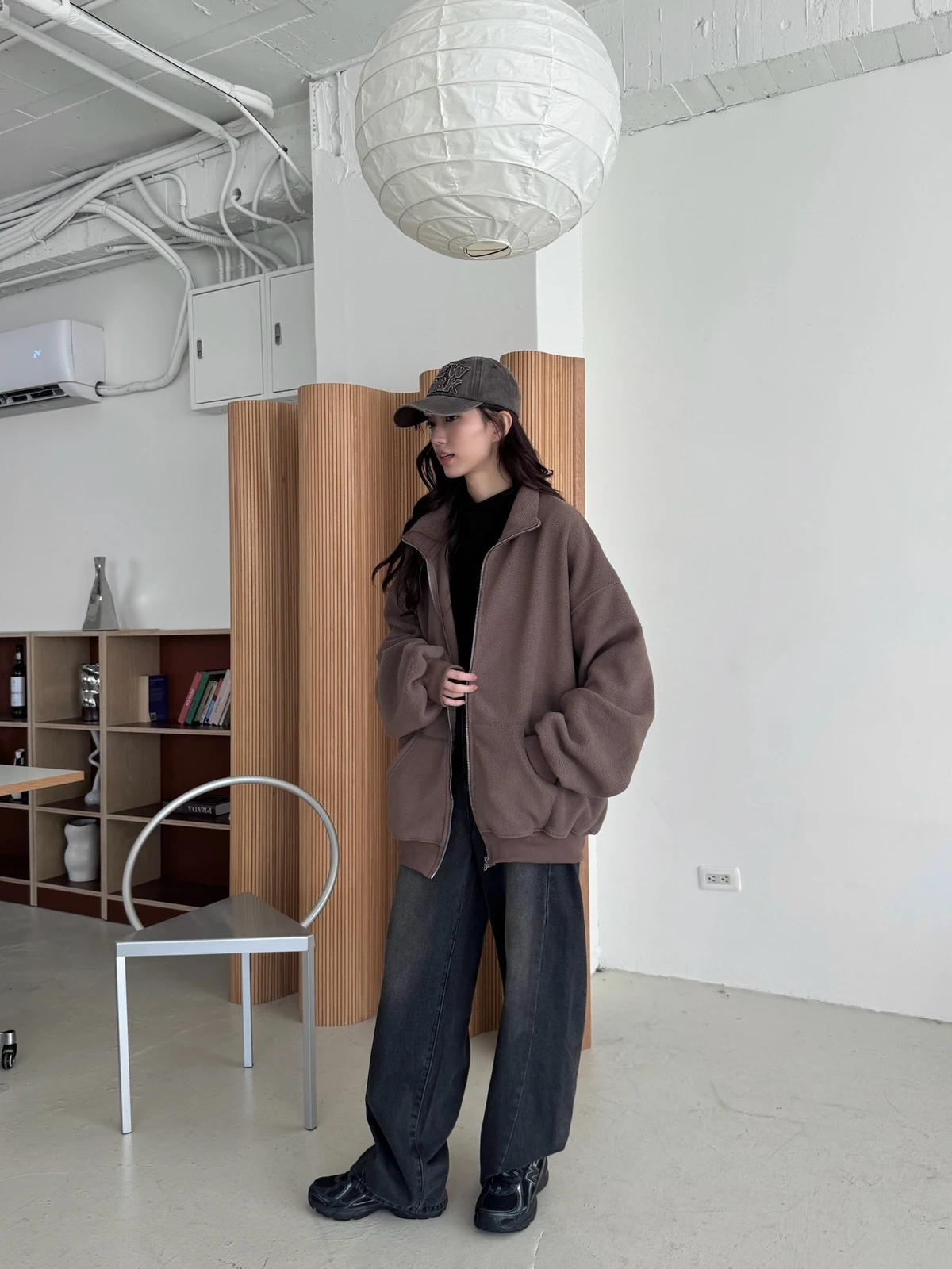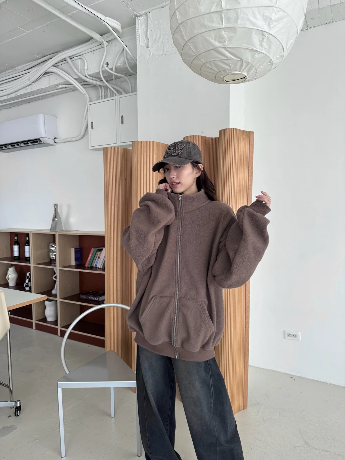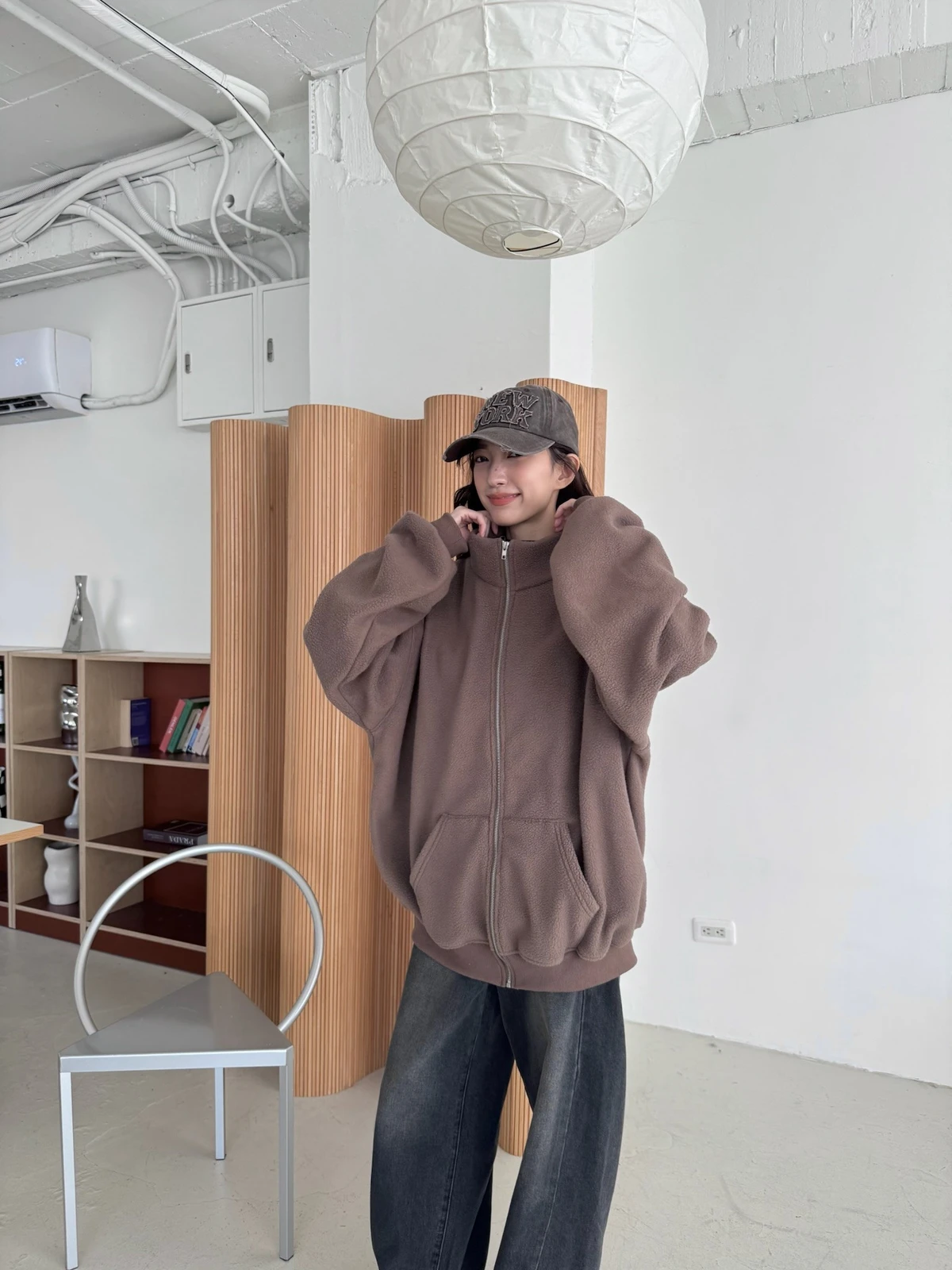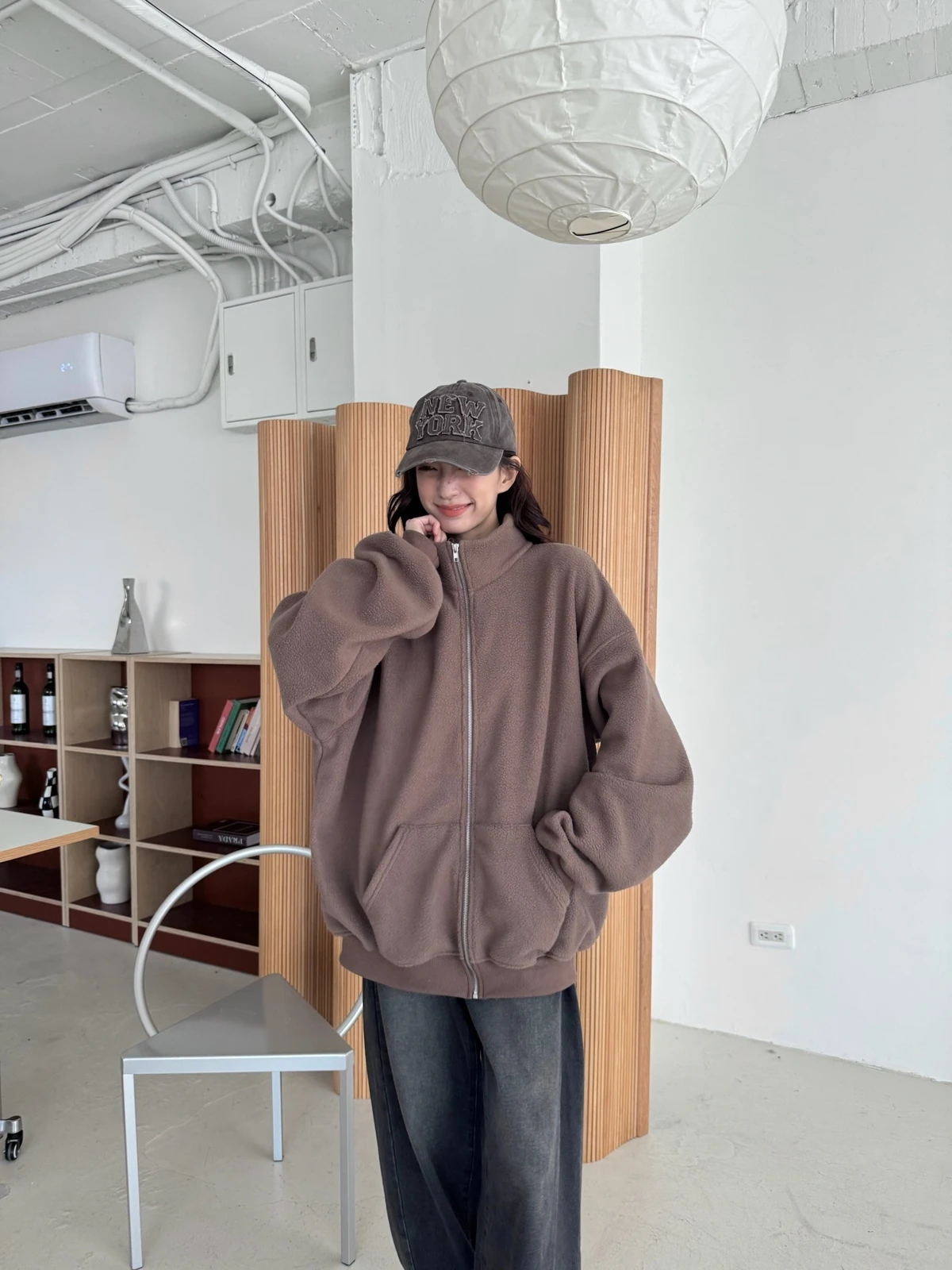 泰迪熊絨毛拉鍊寬鬆外套/3colors