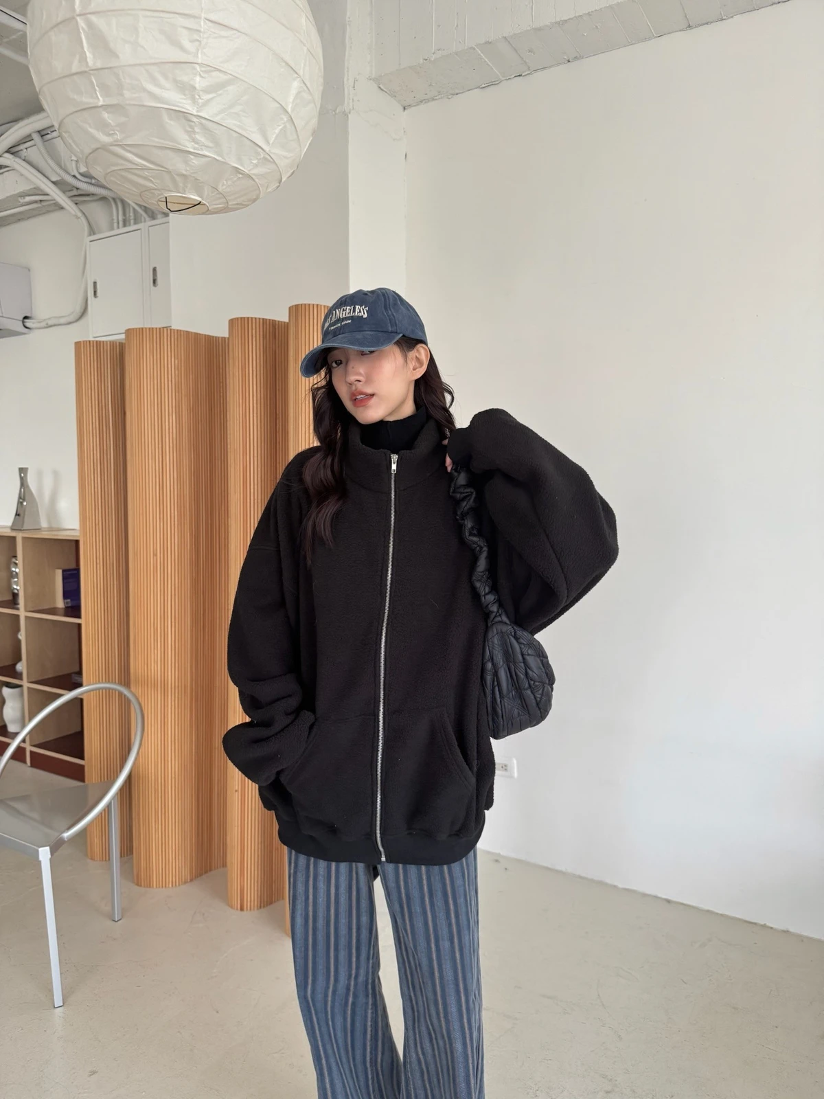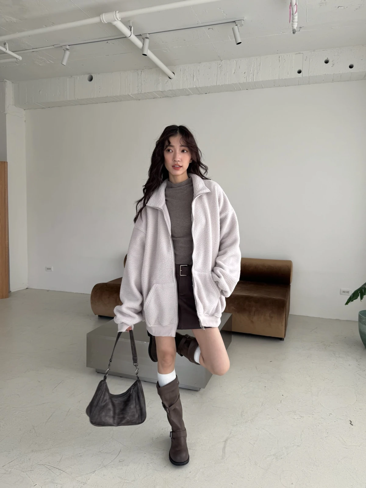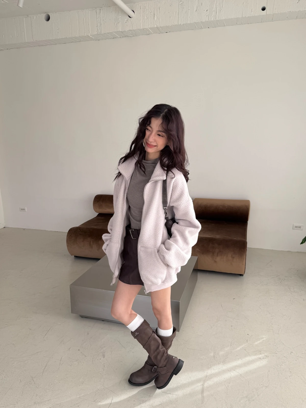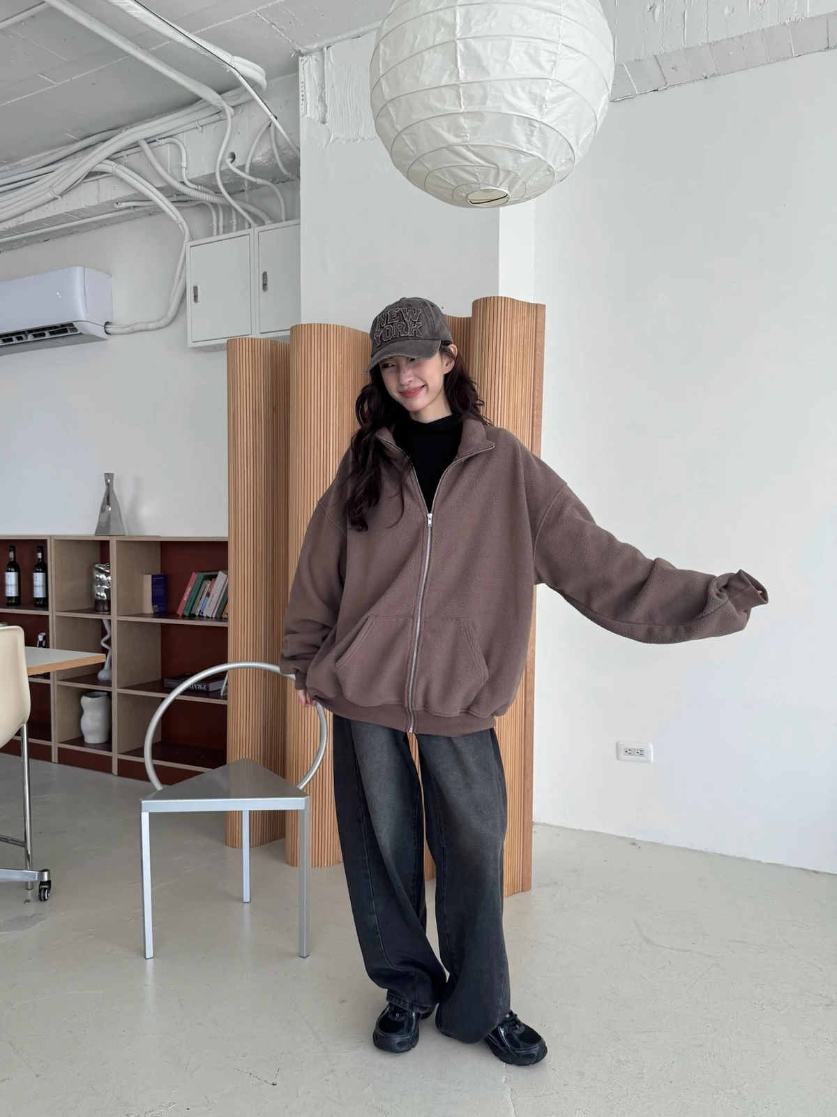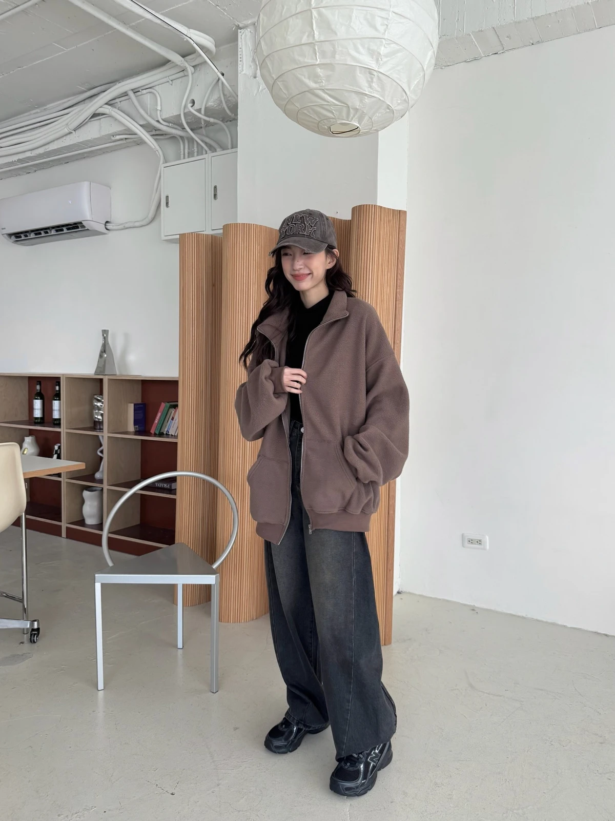 泰迪熊絨毛拉鍊寬鬆外套/3colors