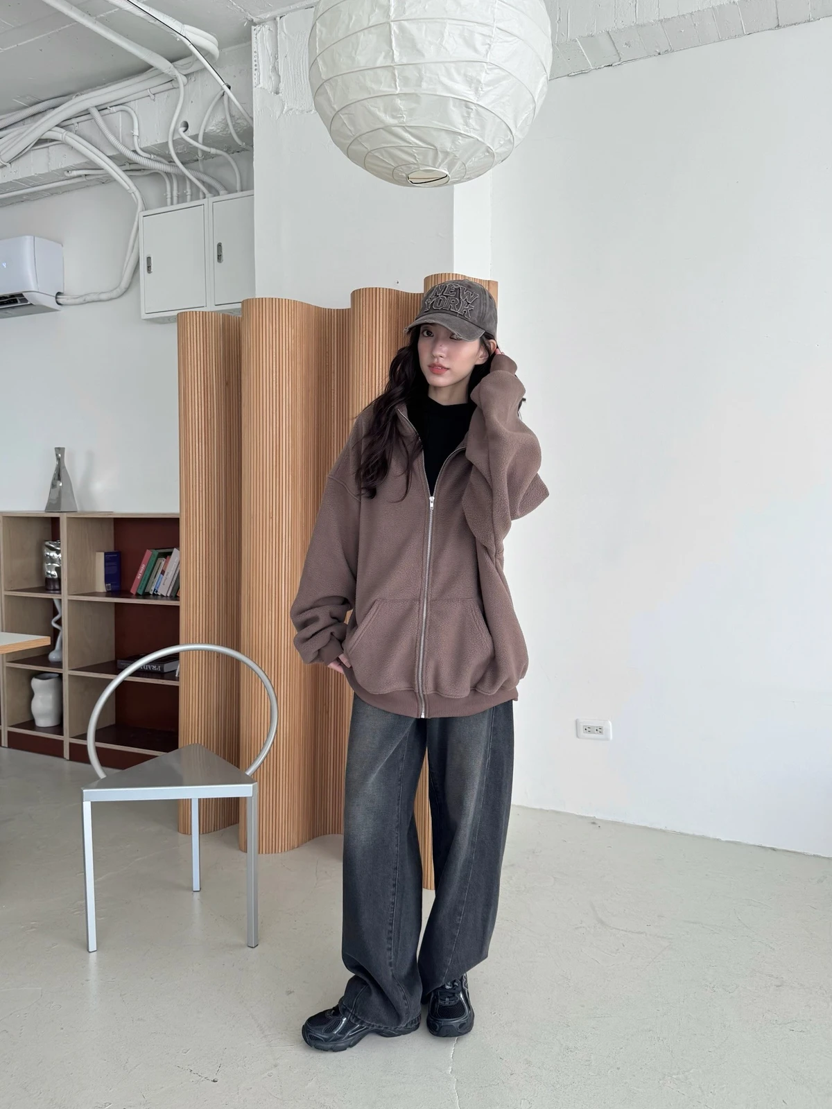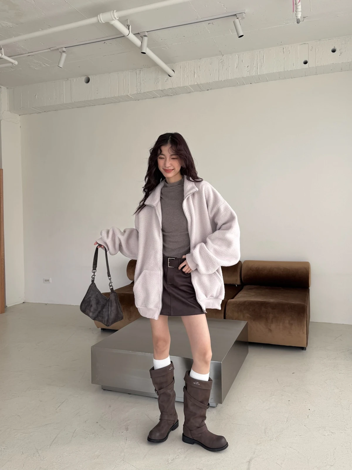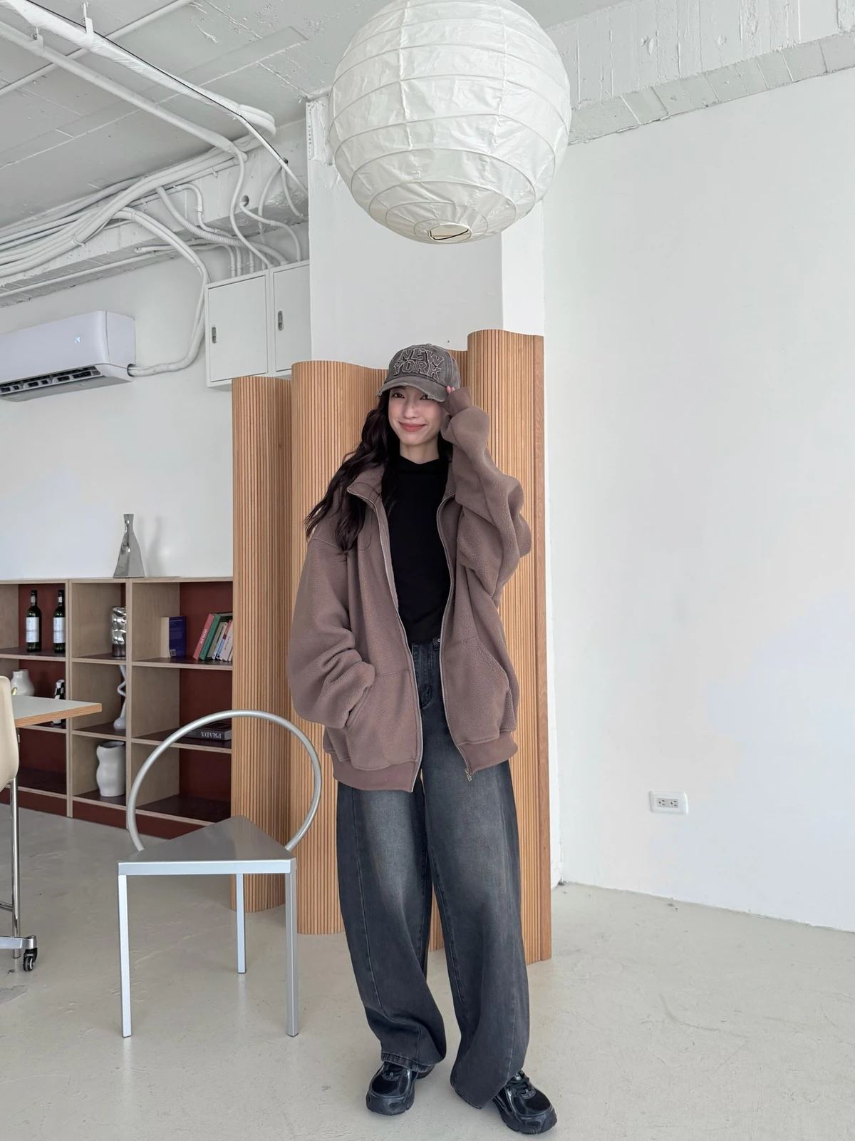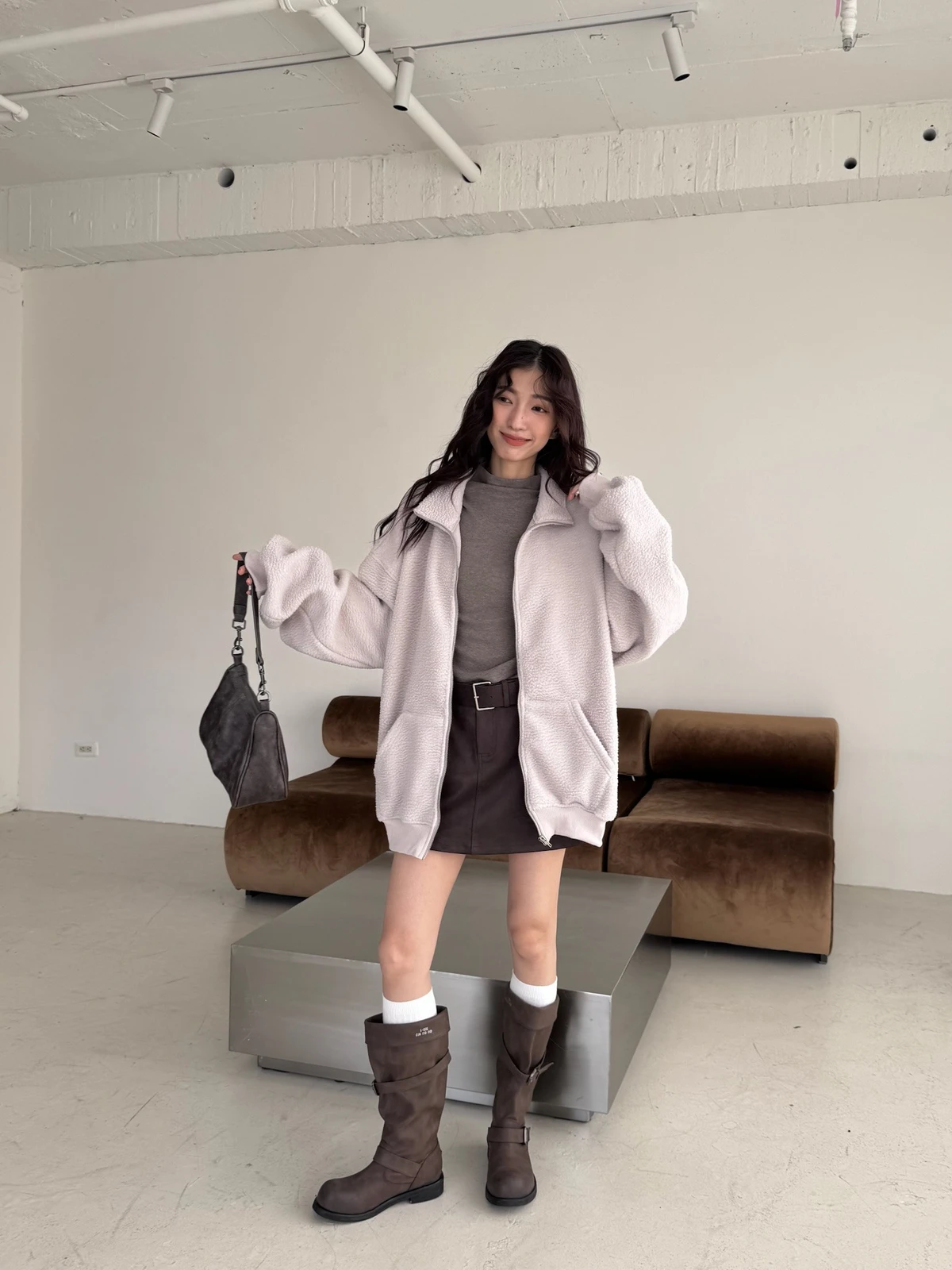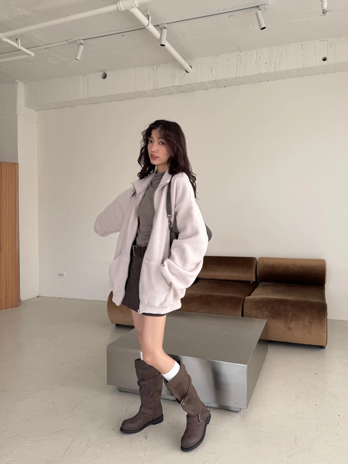 泰迪熊絨毛拉鍊寬鬆外套/3colors