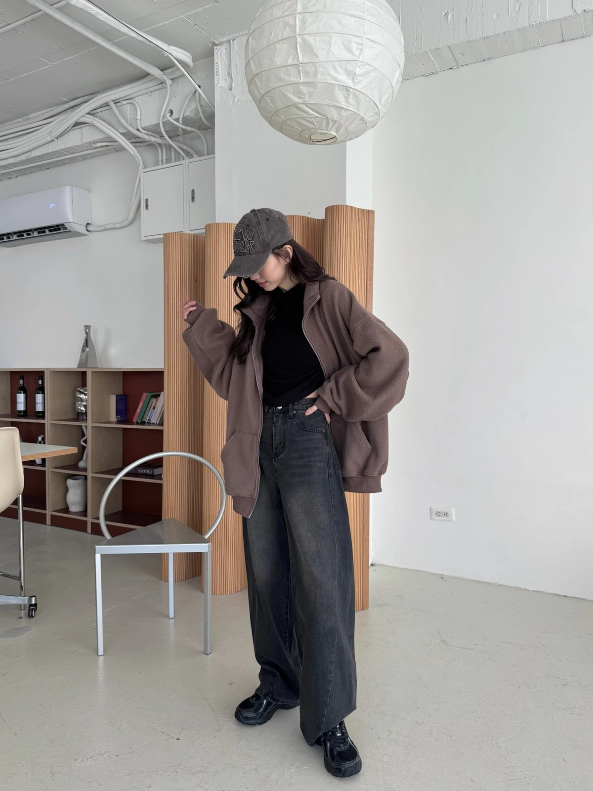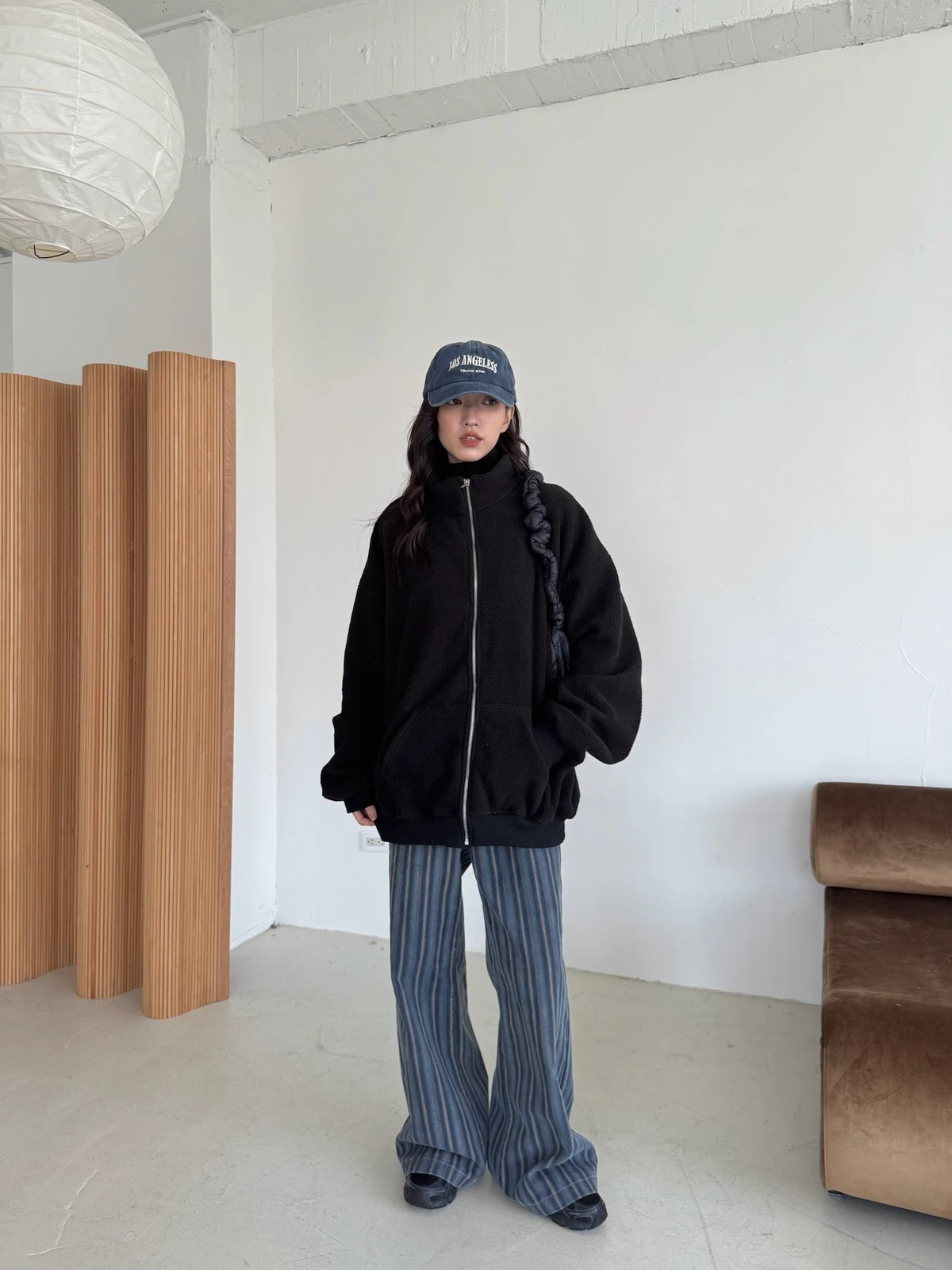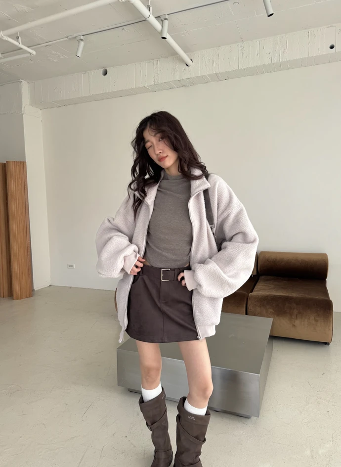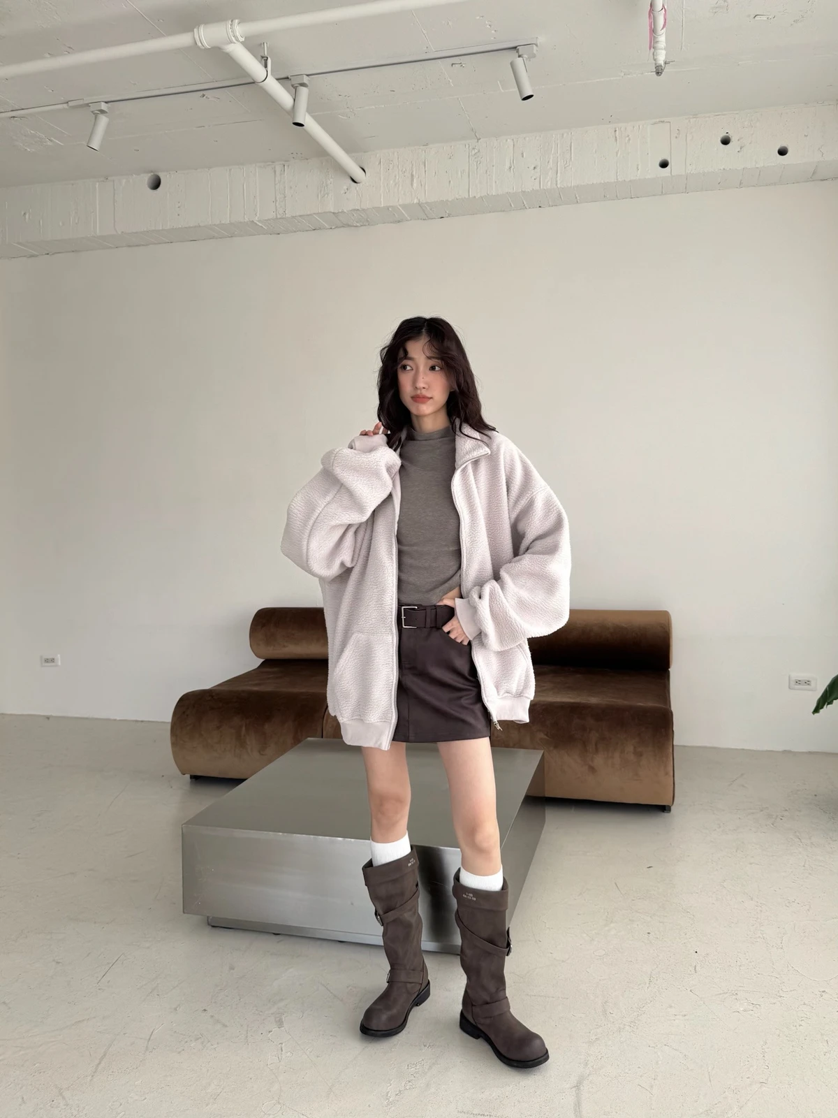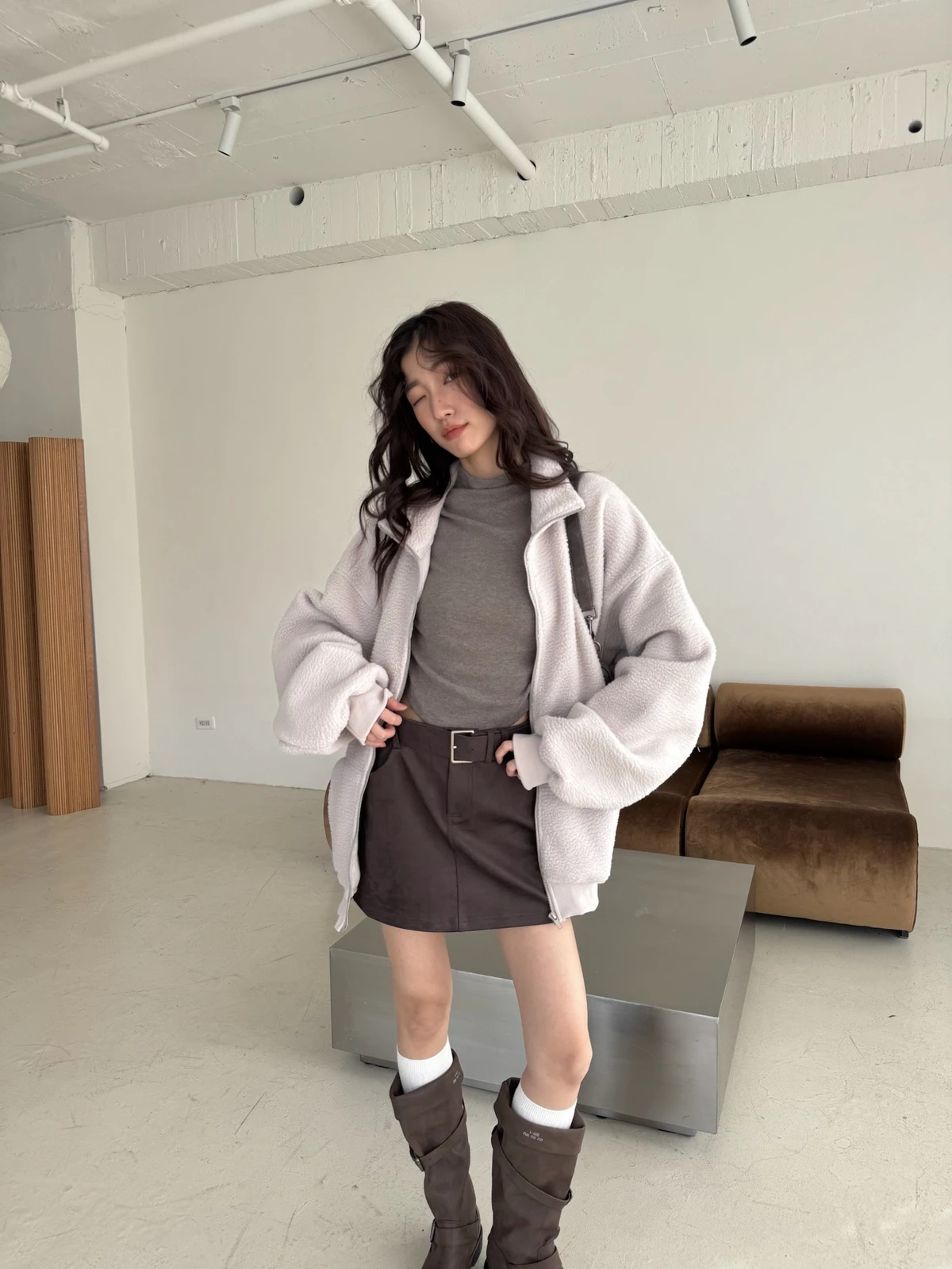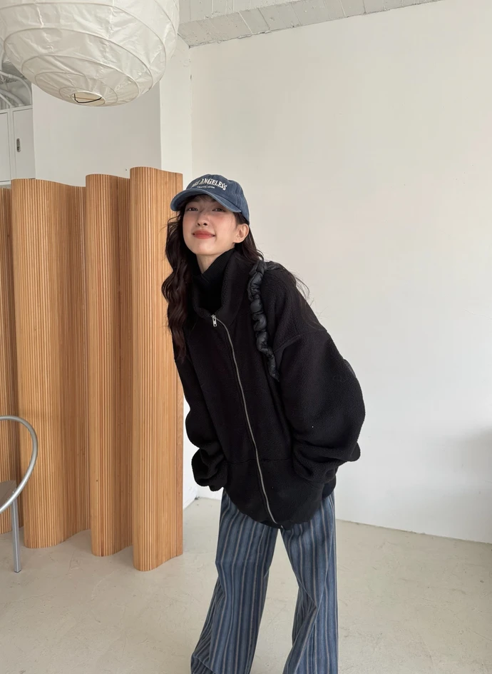 泰迪熊絨毛拉鍊寬鬆外套/3colors