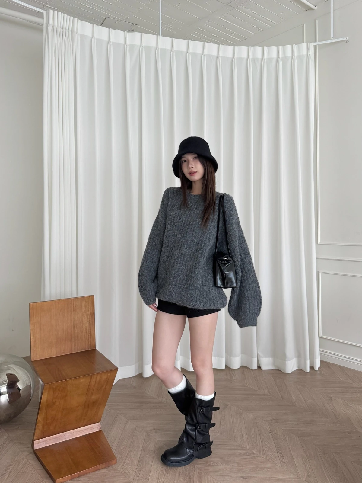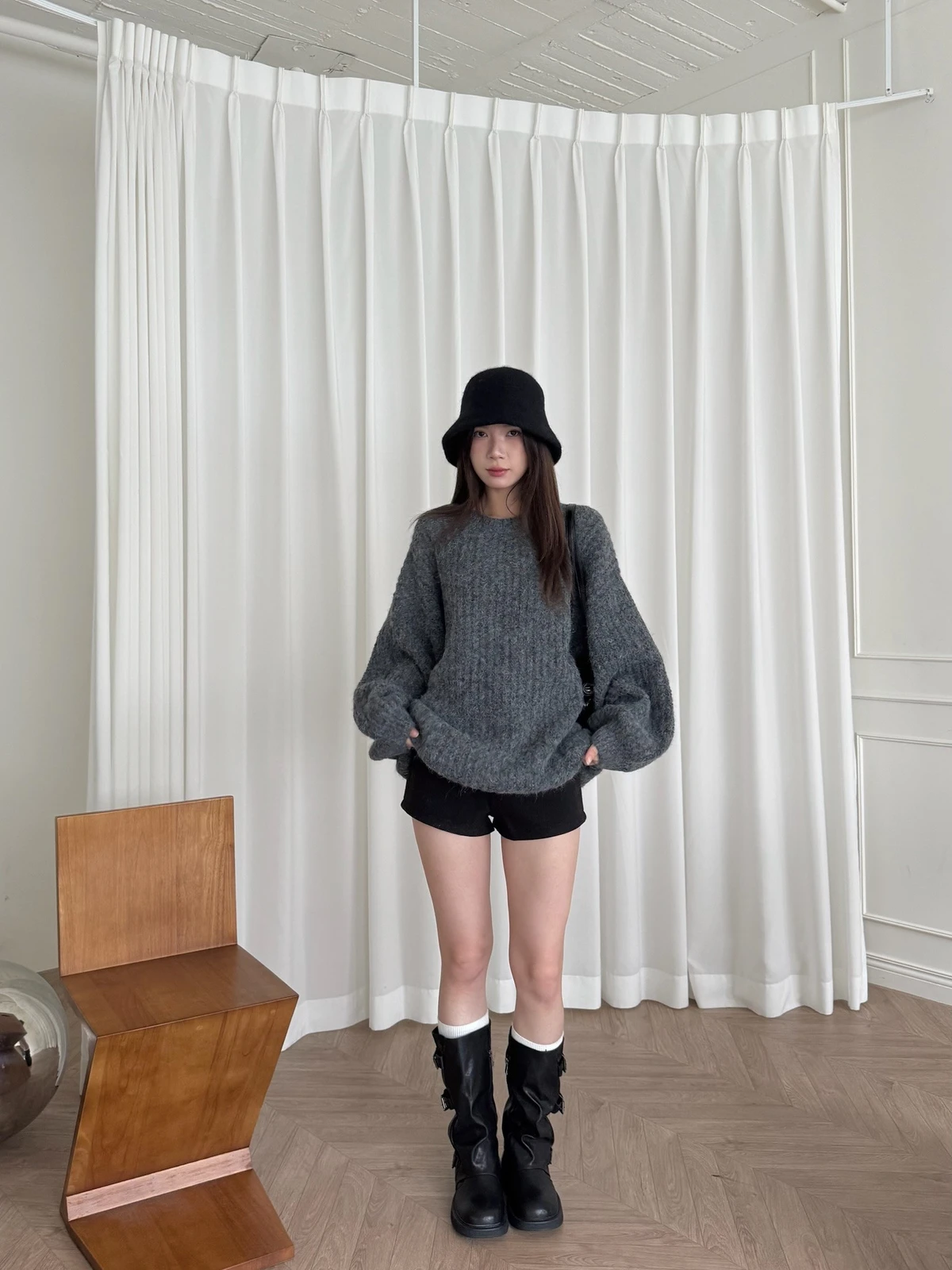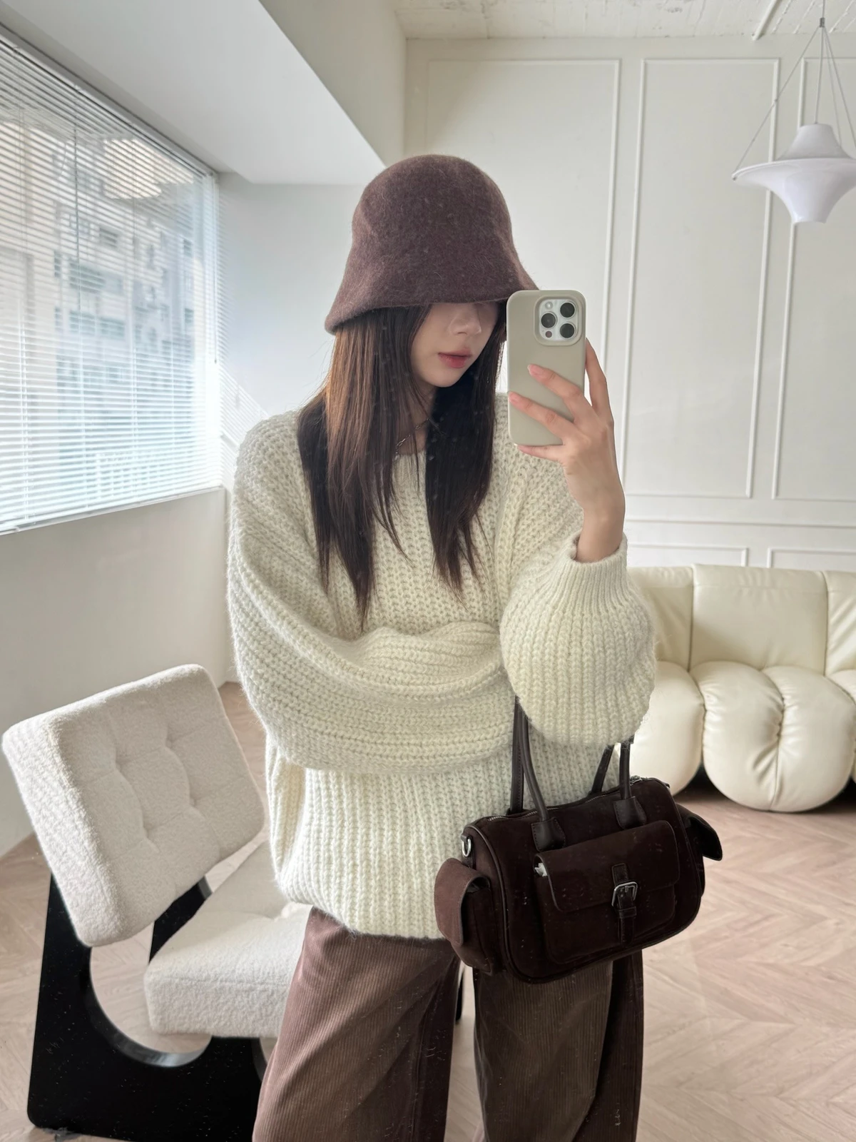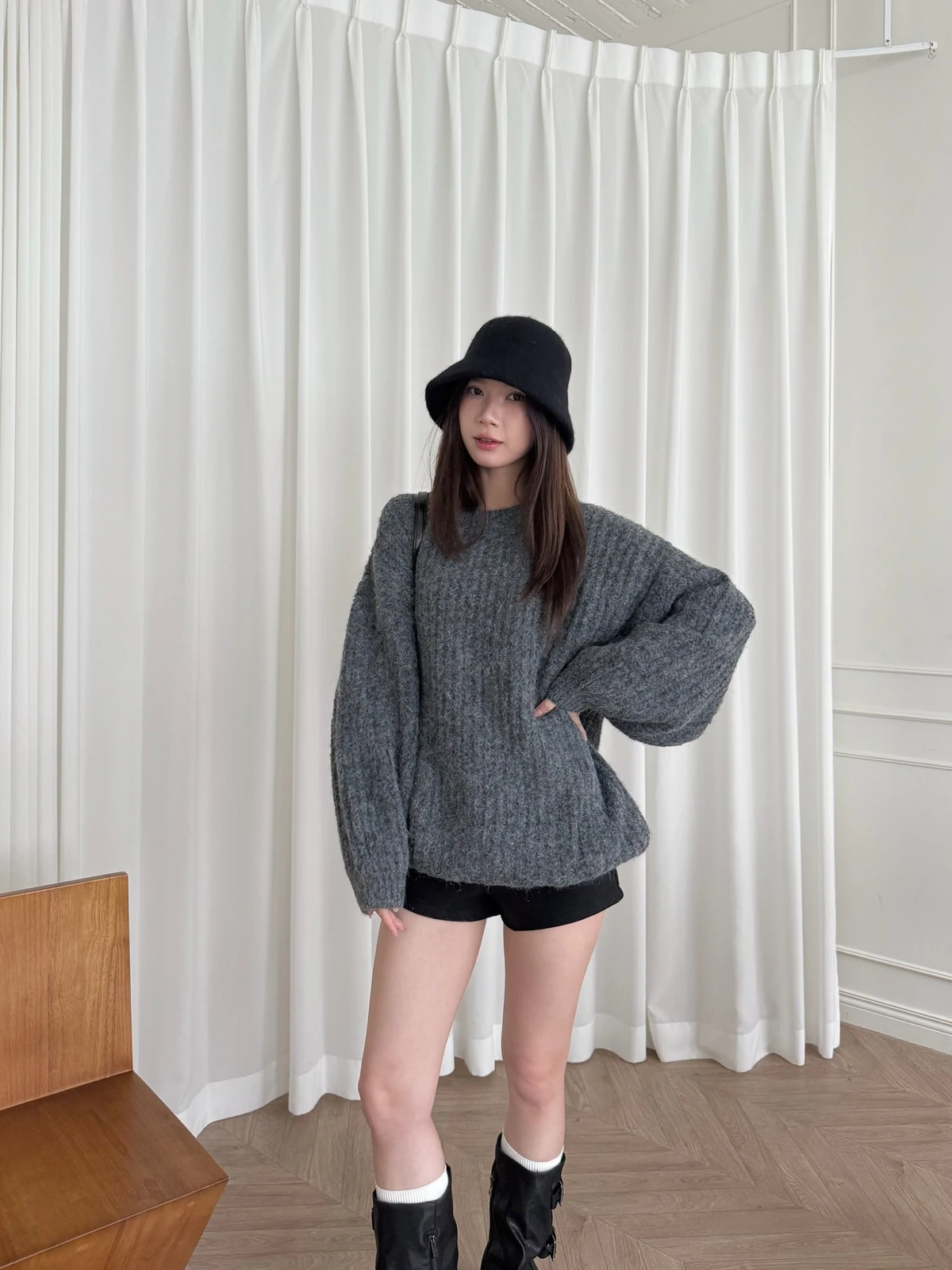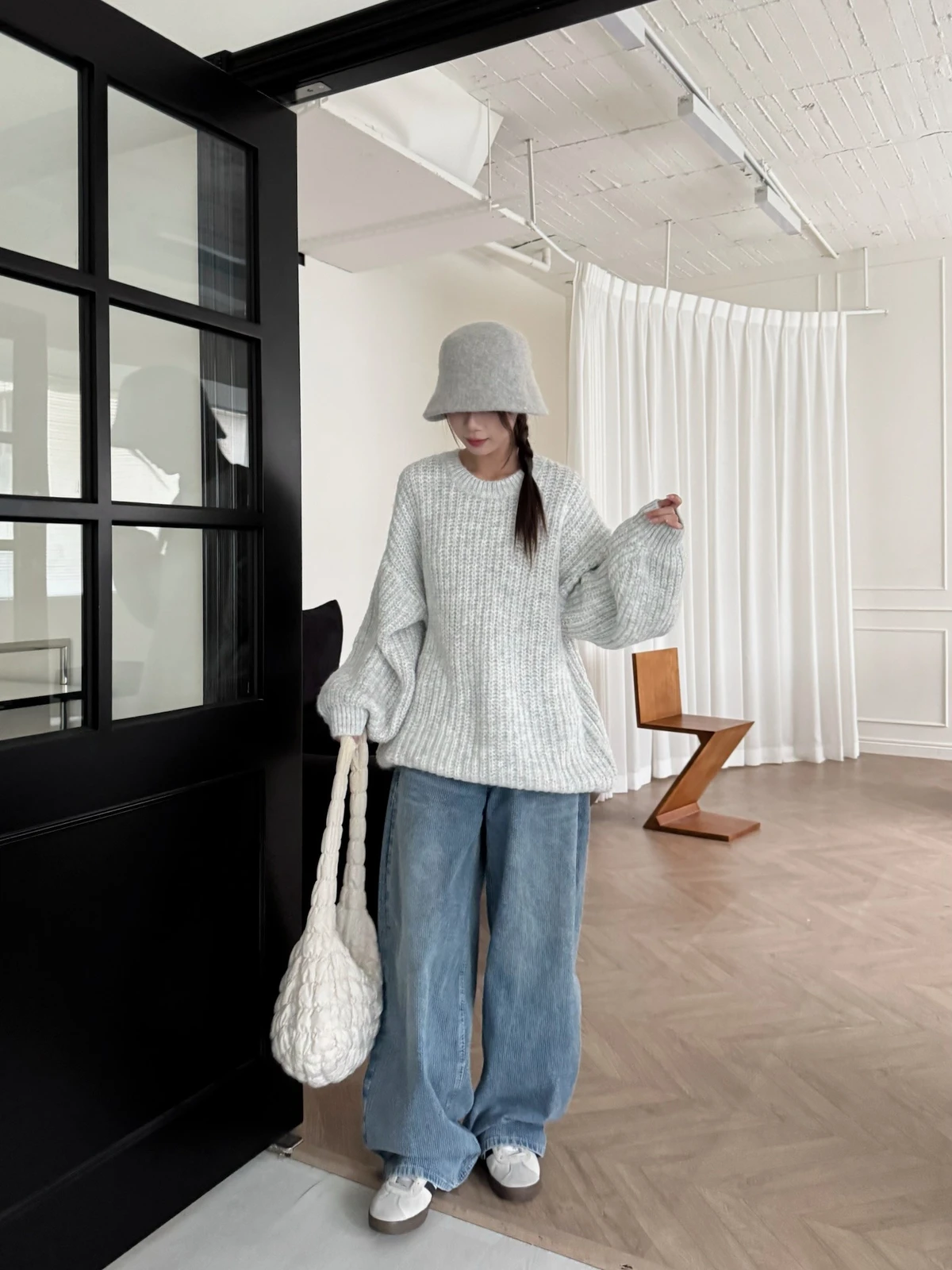 本期推薦!棉花糖泡泡袖粗針織毛衣/4colors