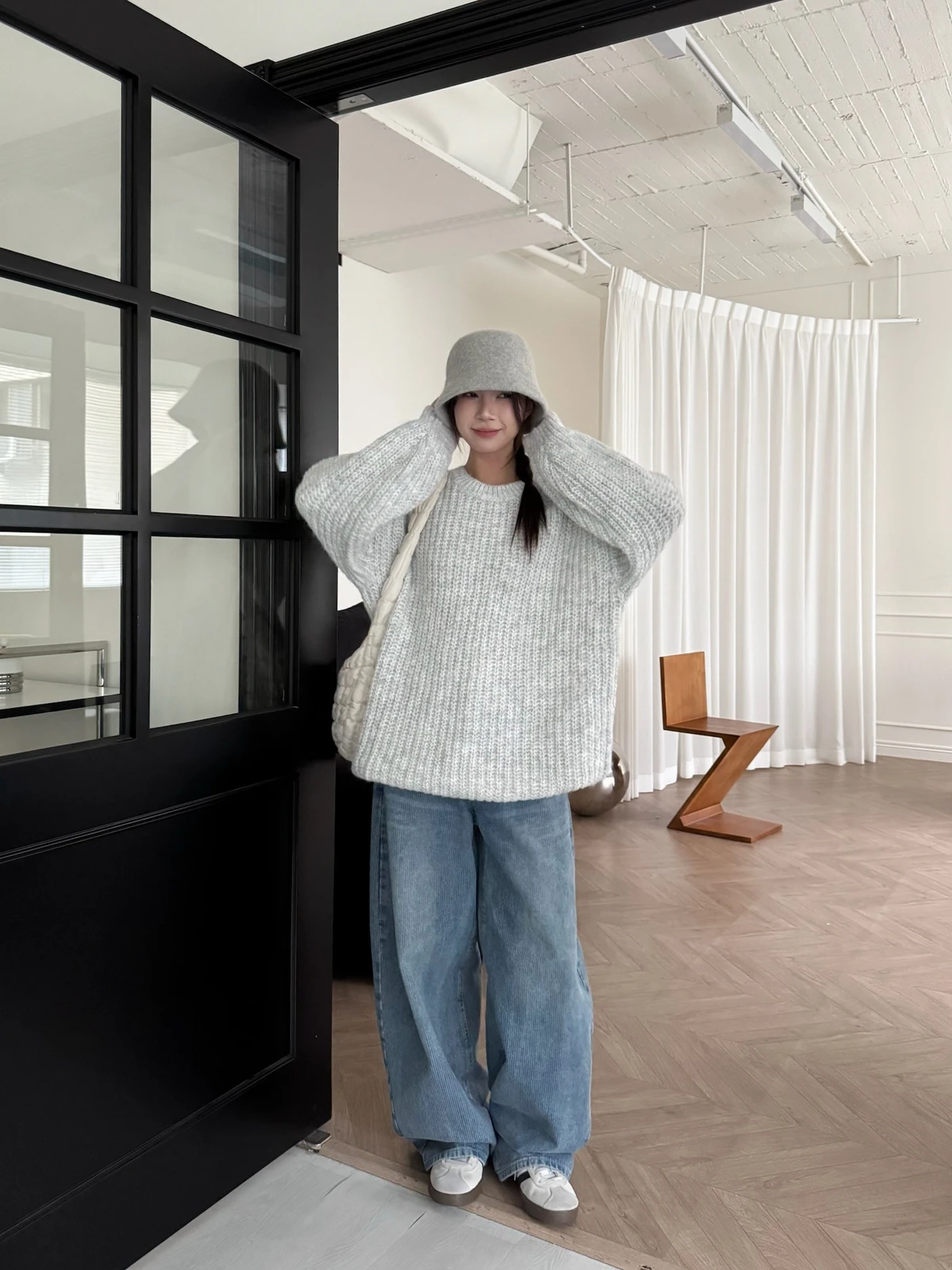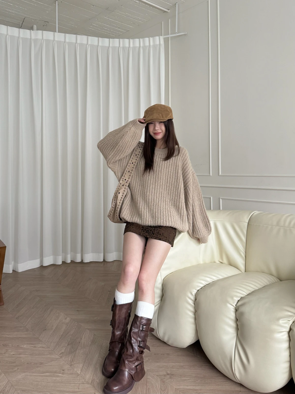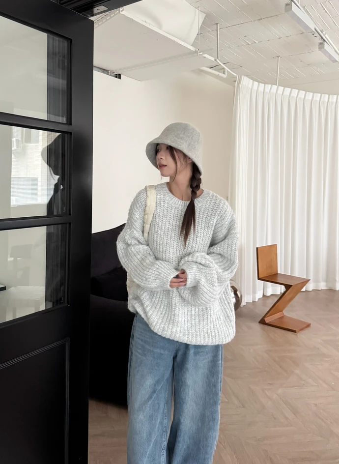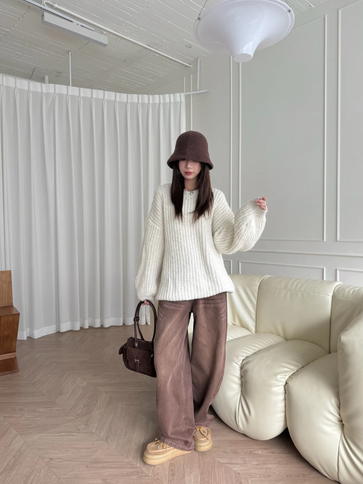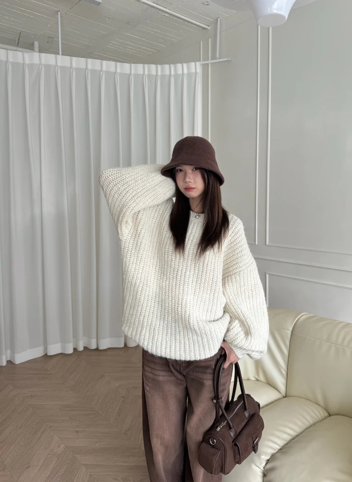 本期推薦!棉花糖泡泡袖粗針織毛衣/4colors