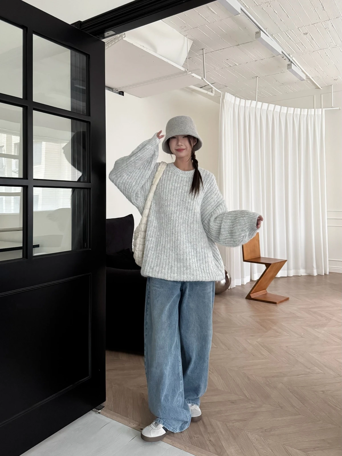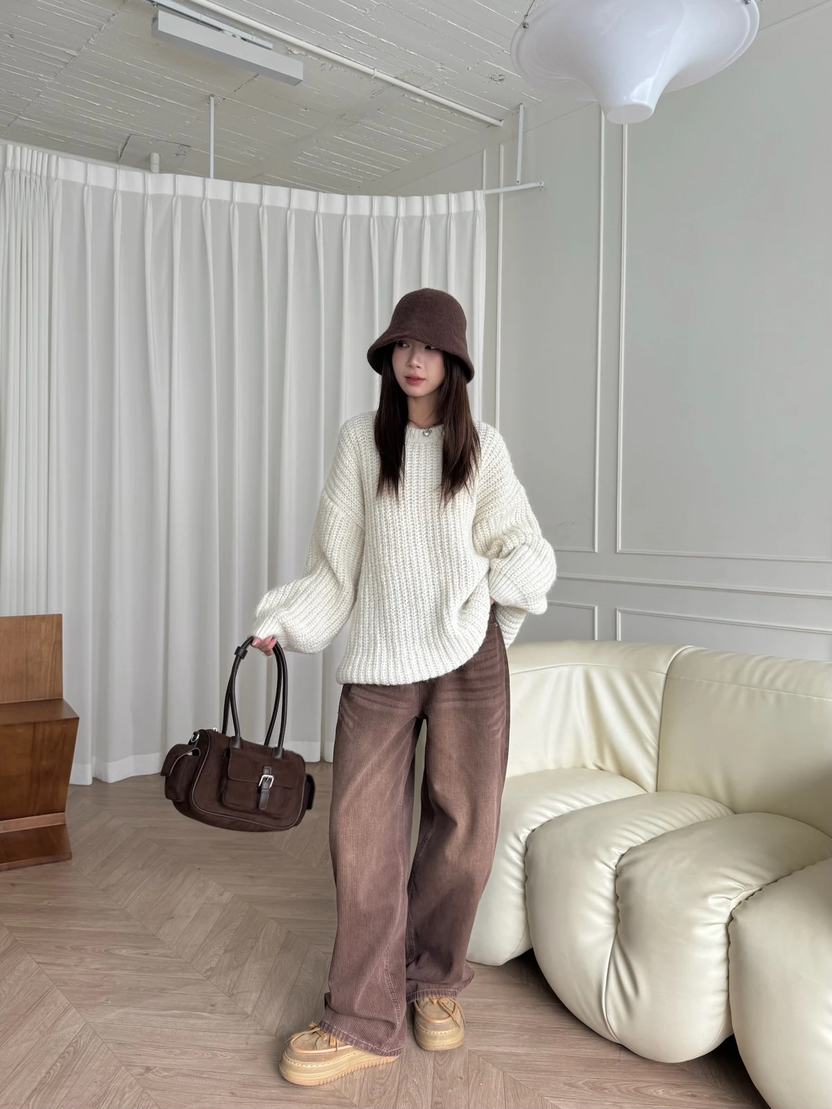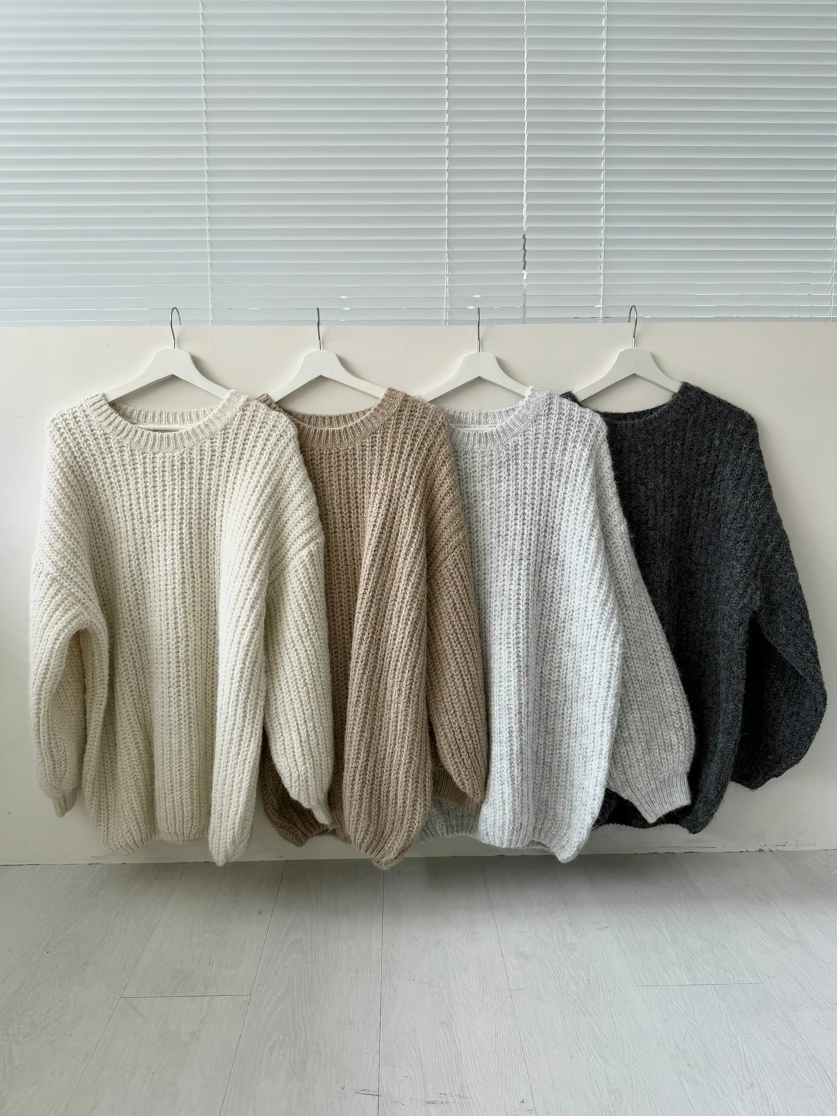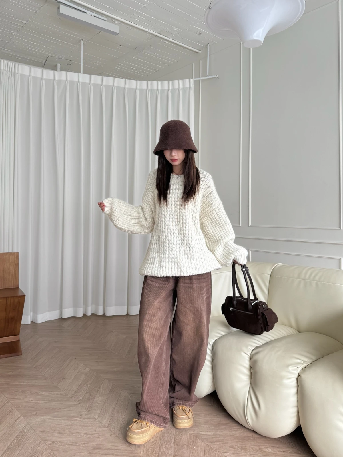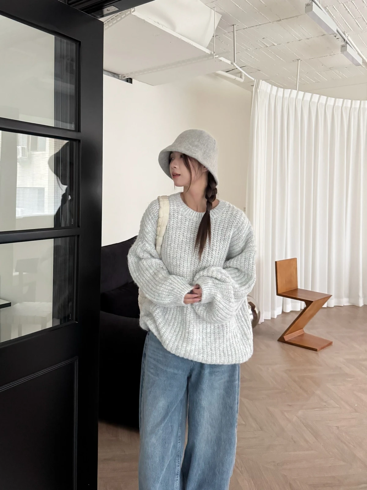本期推薦!棉花糖泡泡袖粗針織毛衣/4colors