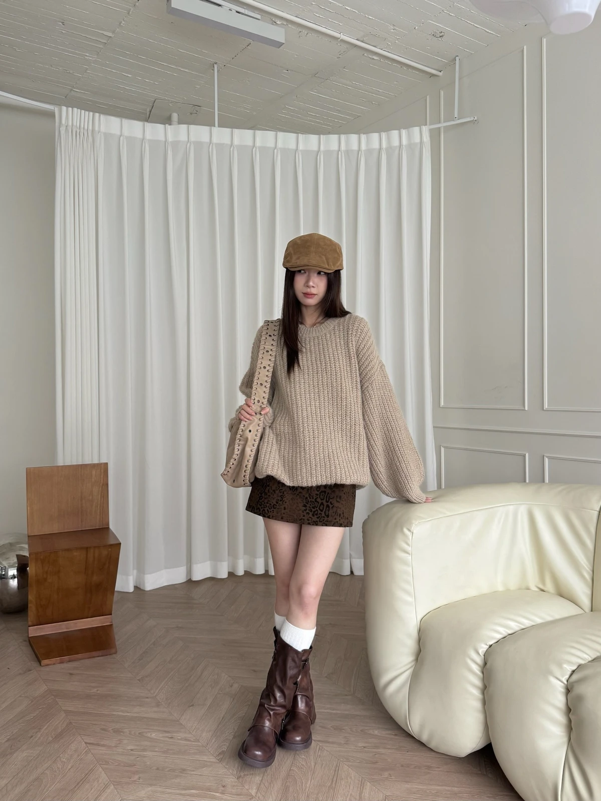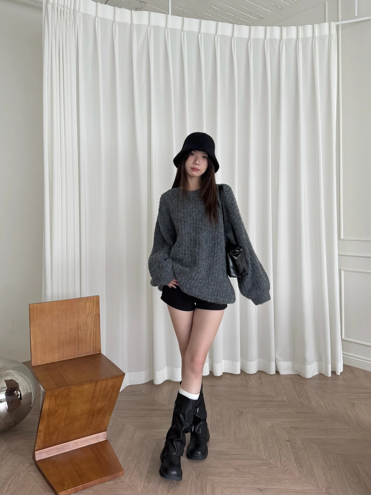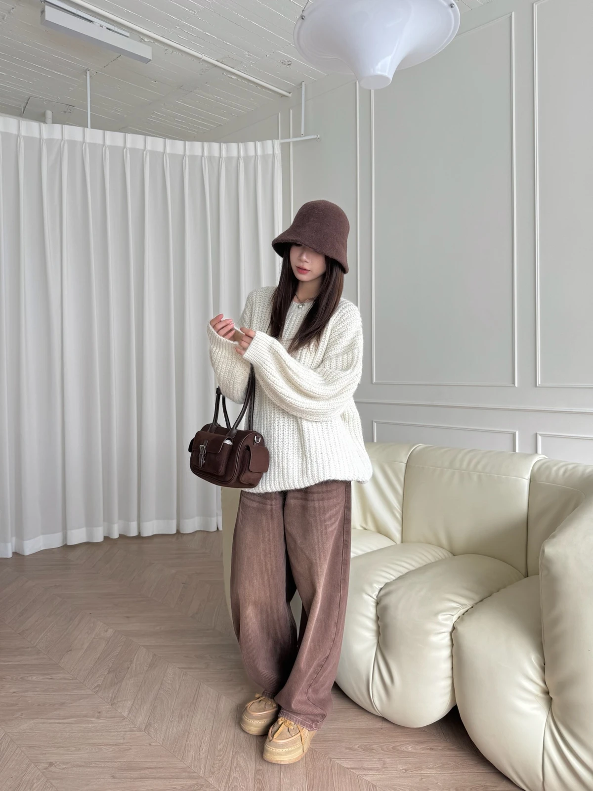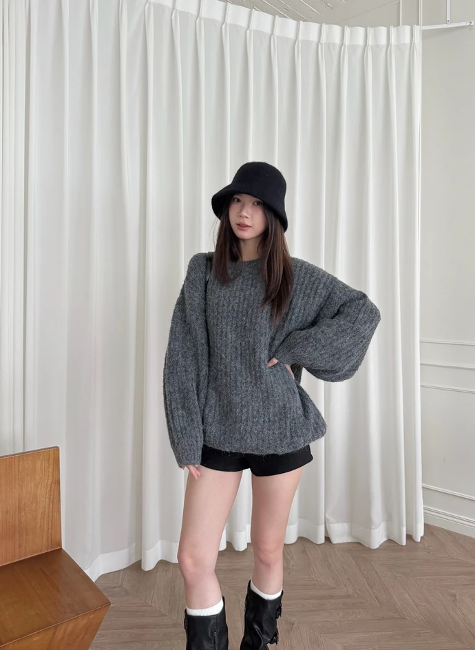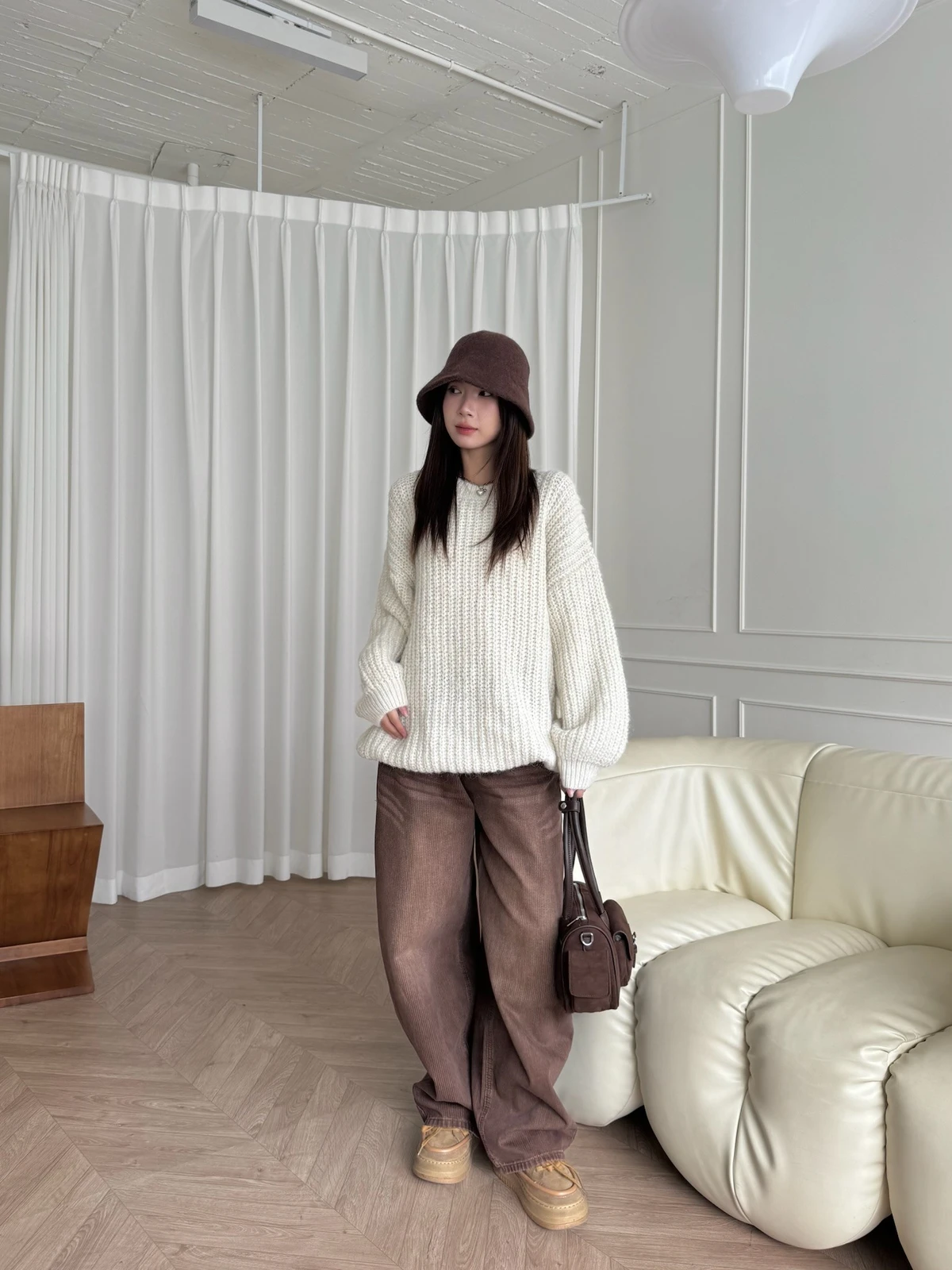 本期推薦!棉花糖泡泡袖粗針織毛衣/4colors