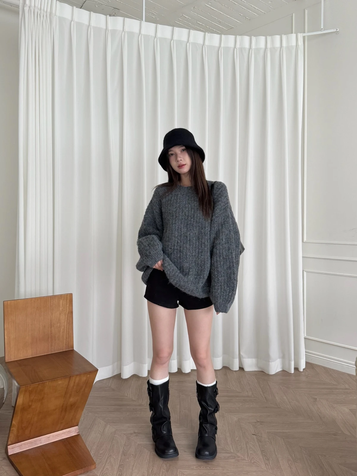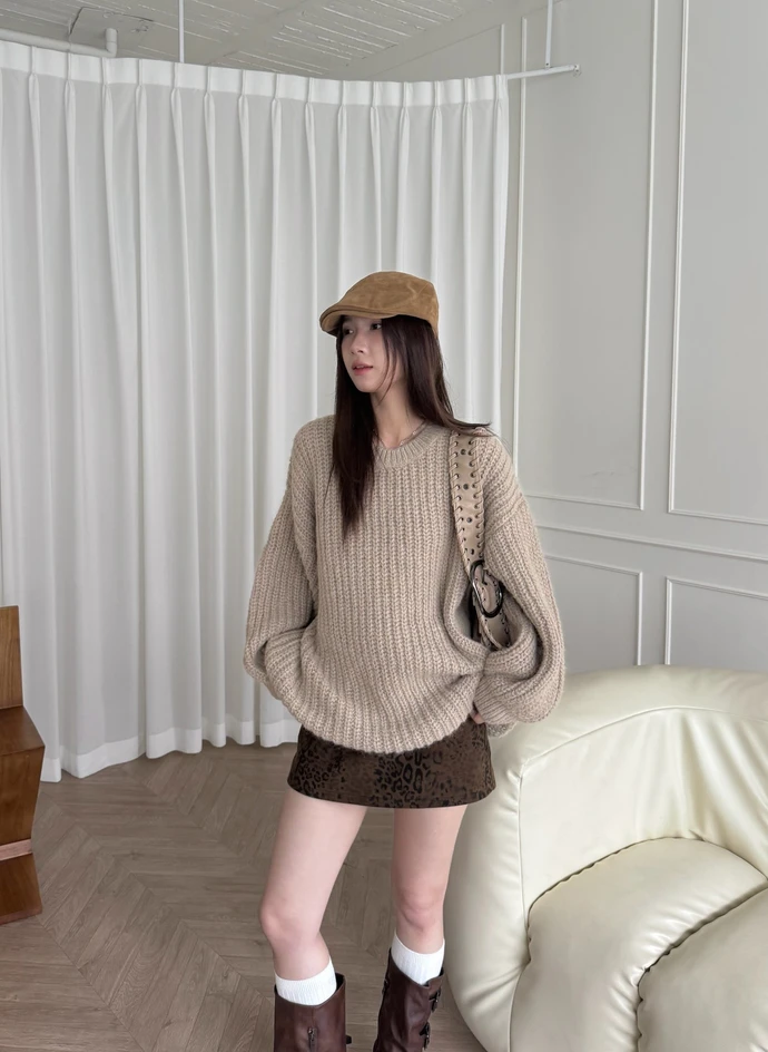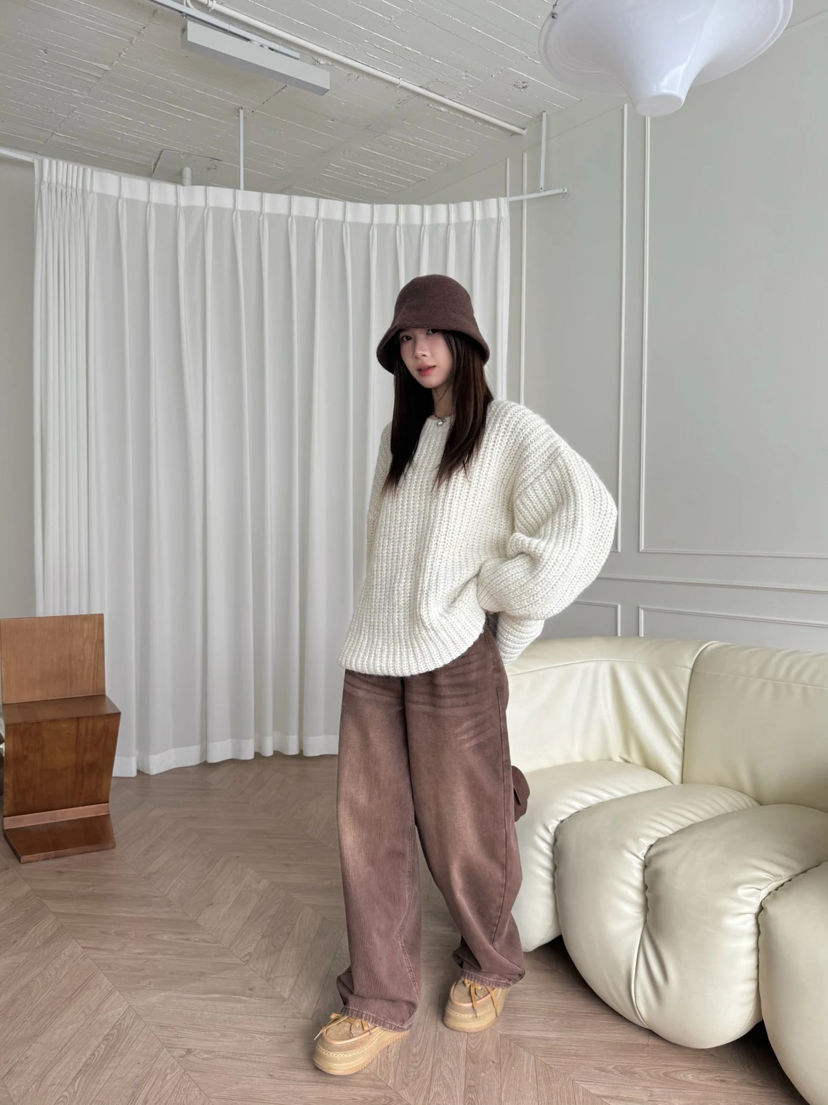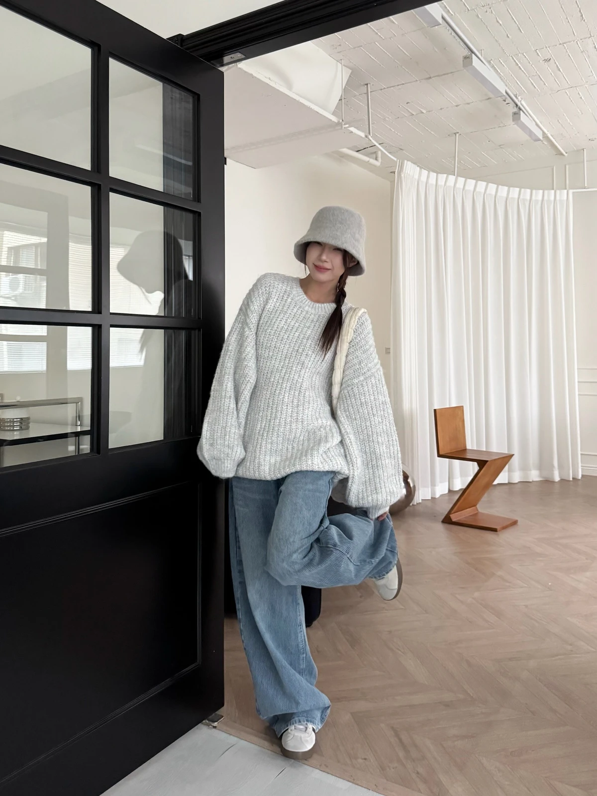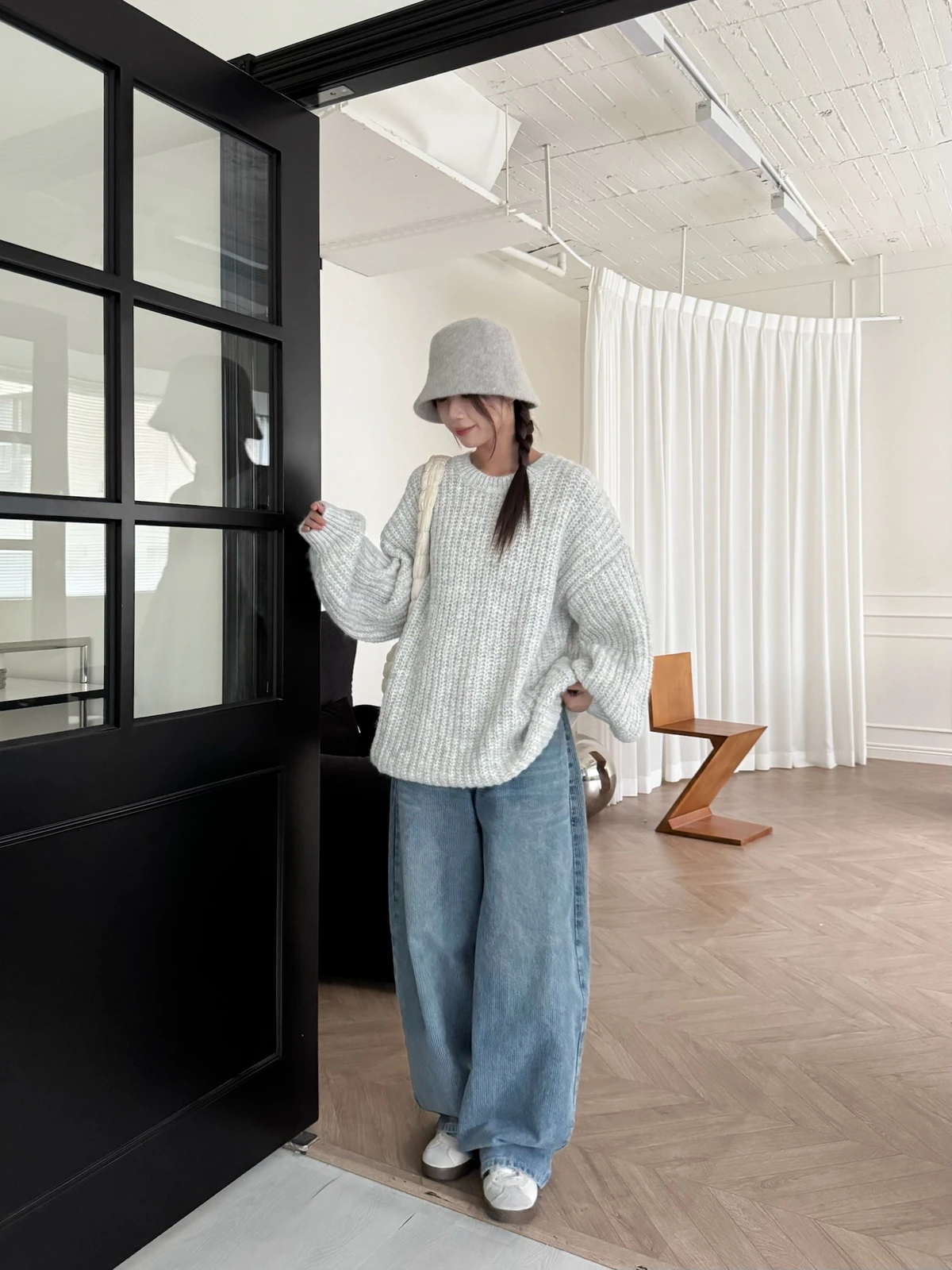 本期推薦!棉花糖泡泡袖粗針織毛衣/4colors