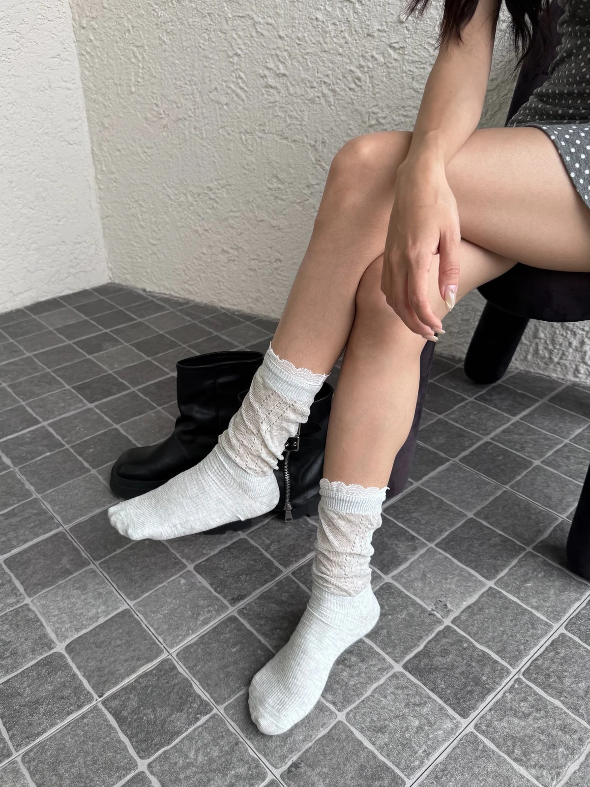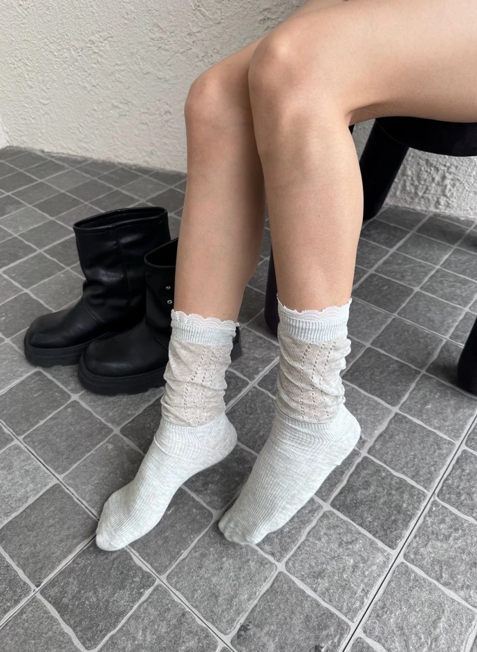 拼接蕾絲長襪/2colors