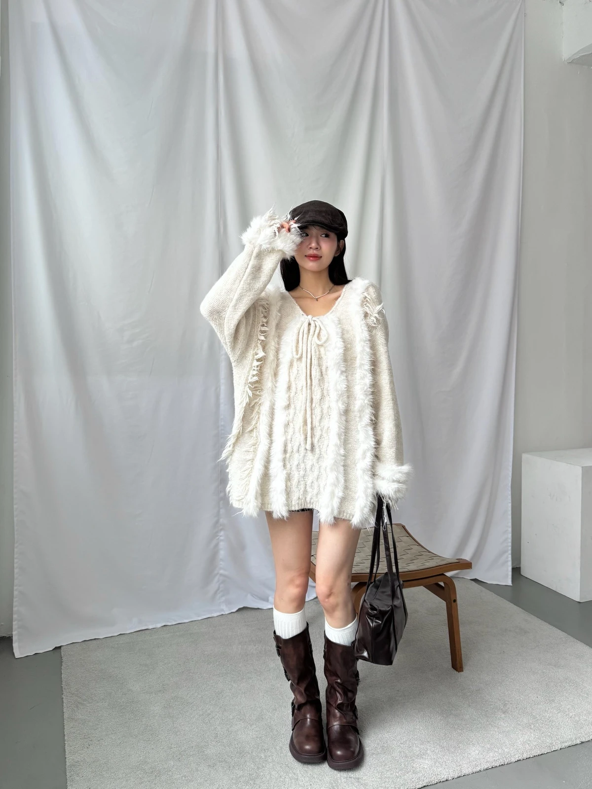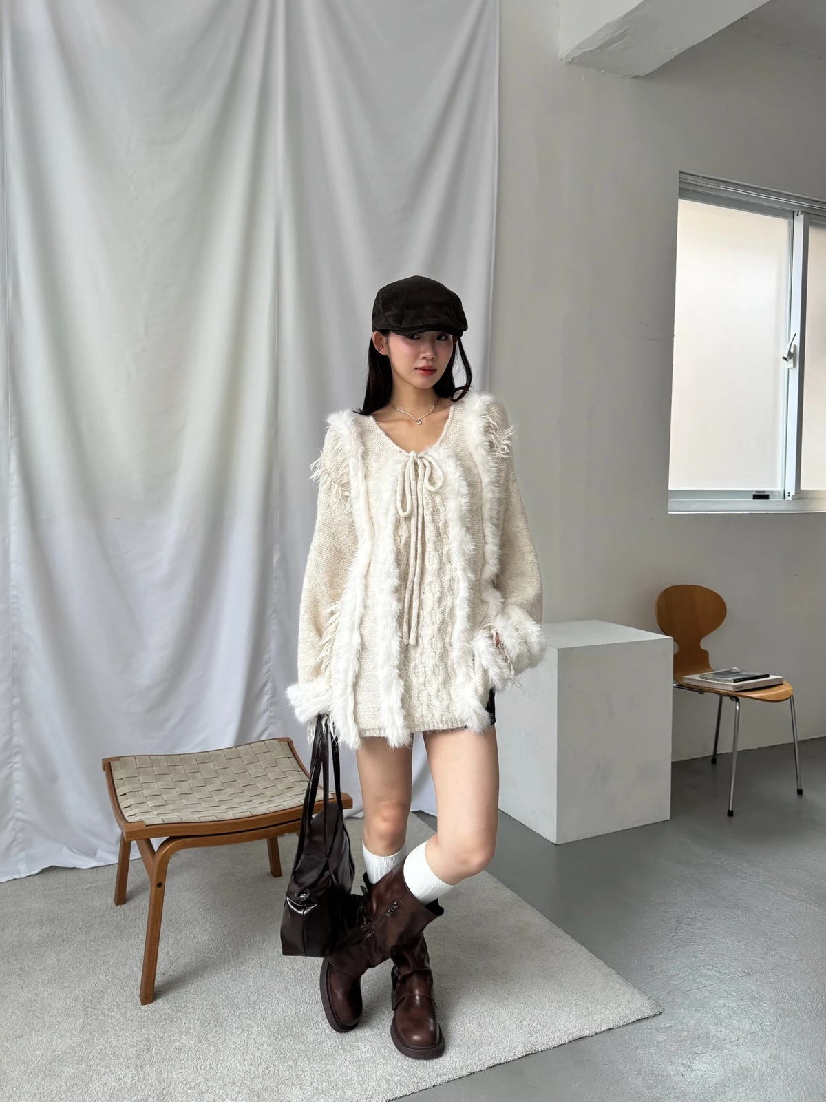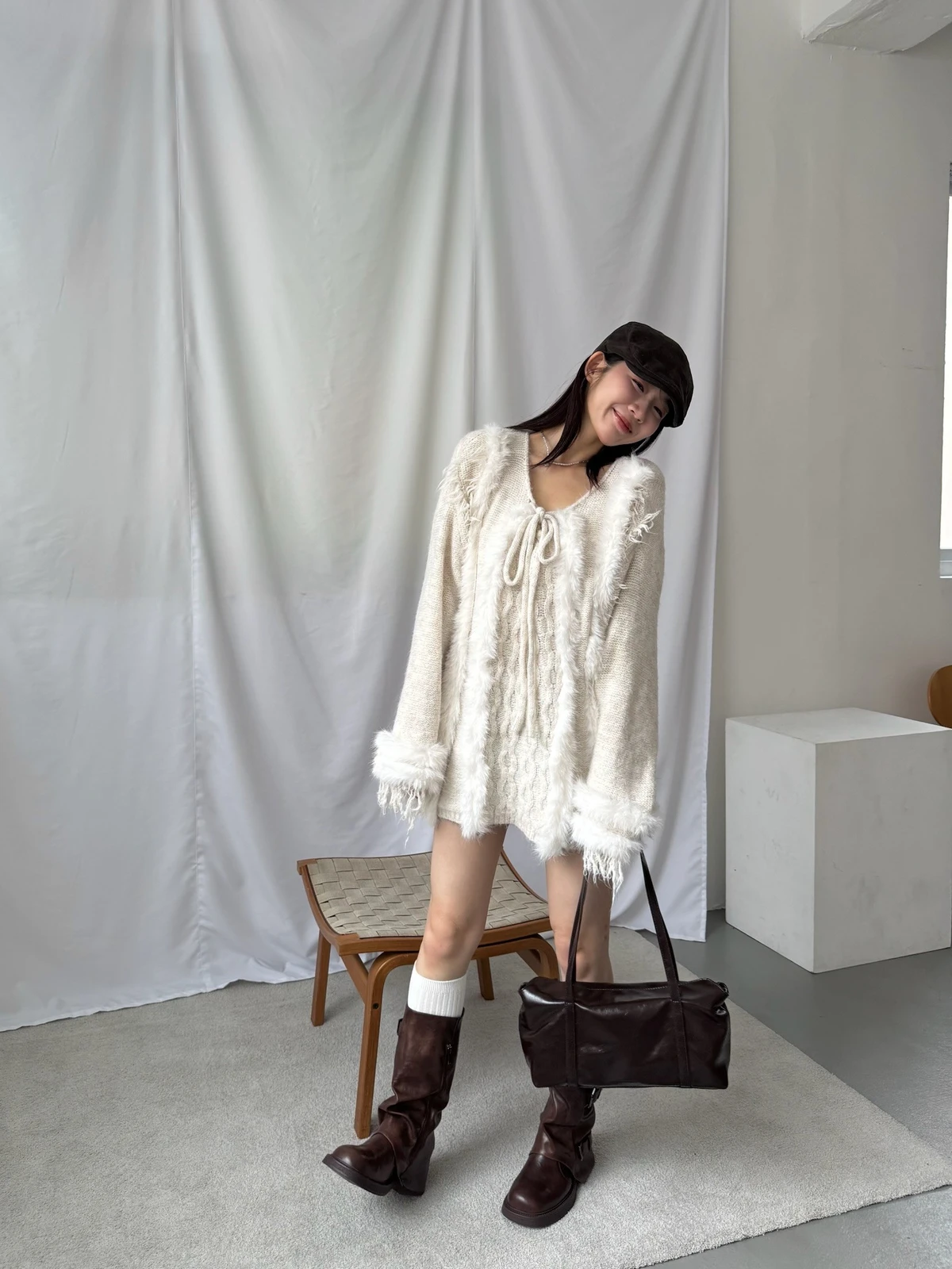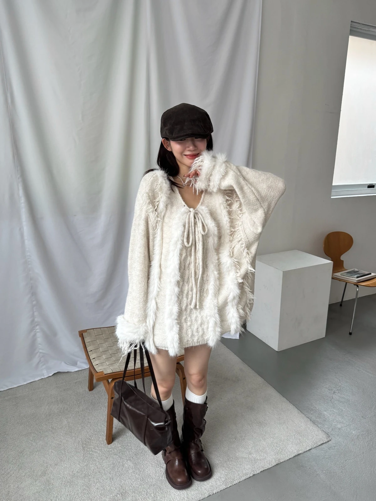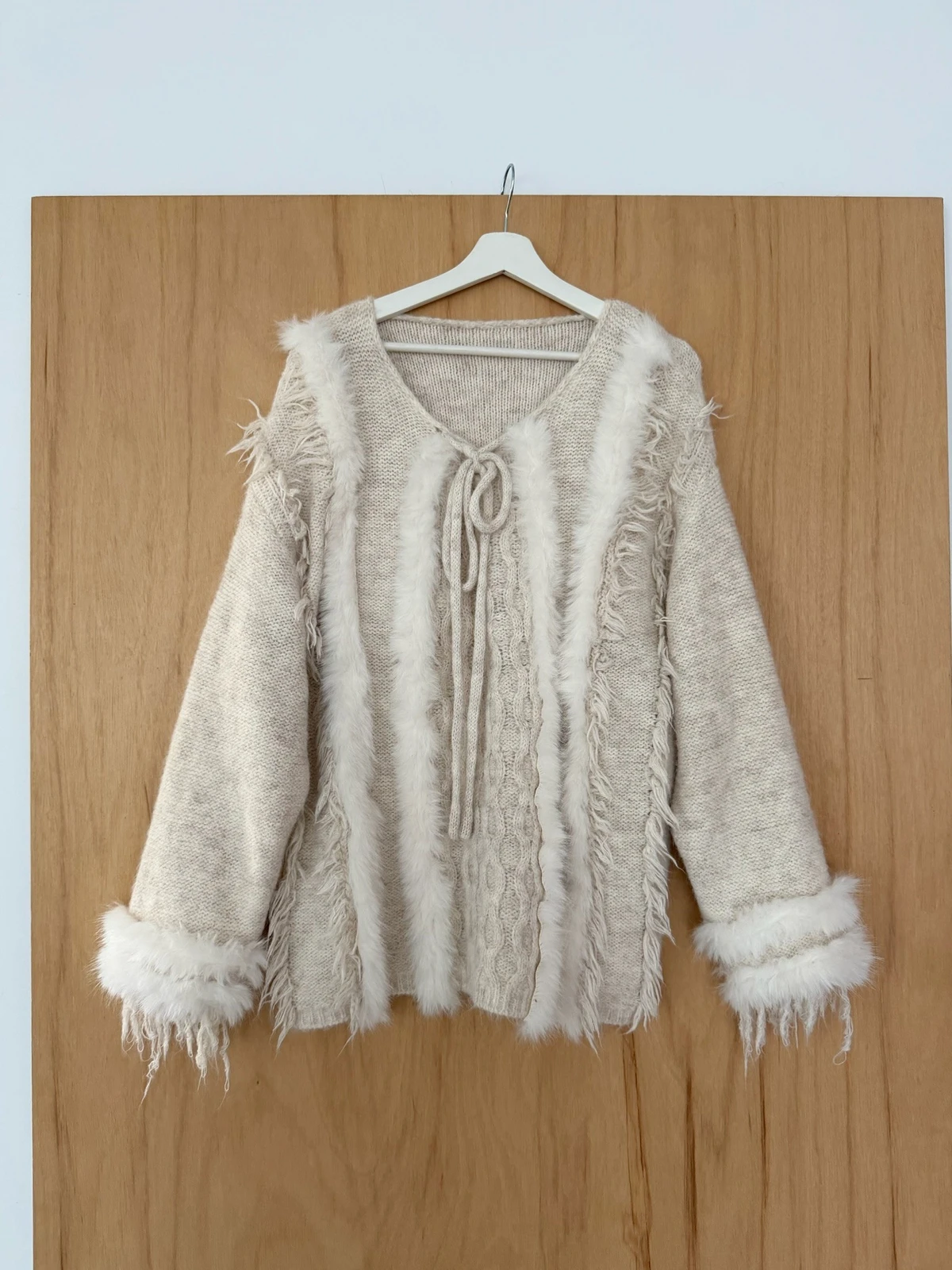 本期推薦!毛毛拼接針織設計綁繩毛衣
