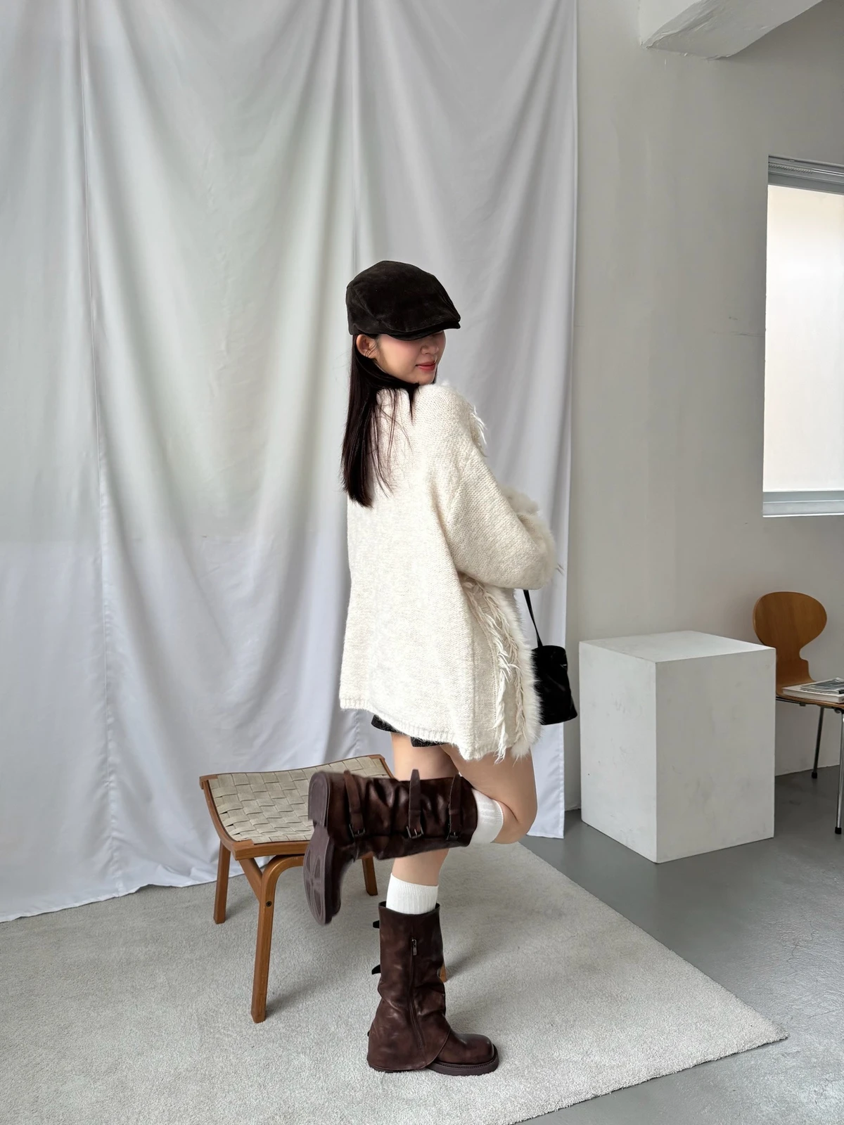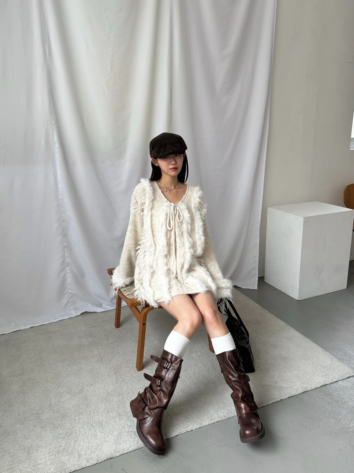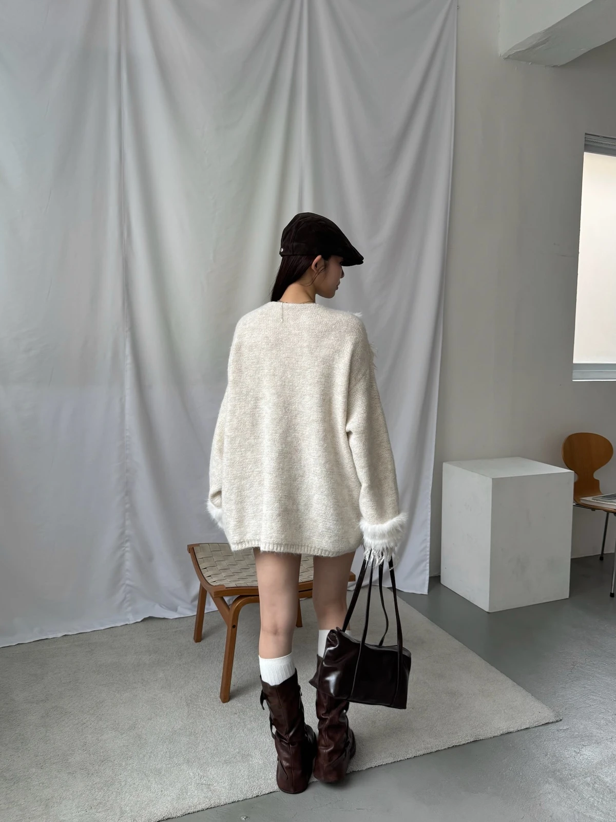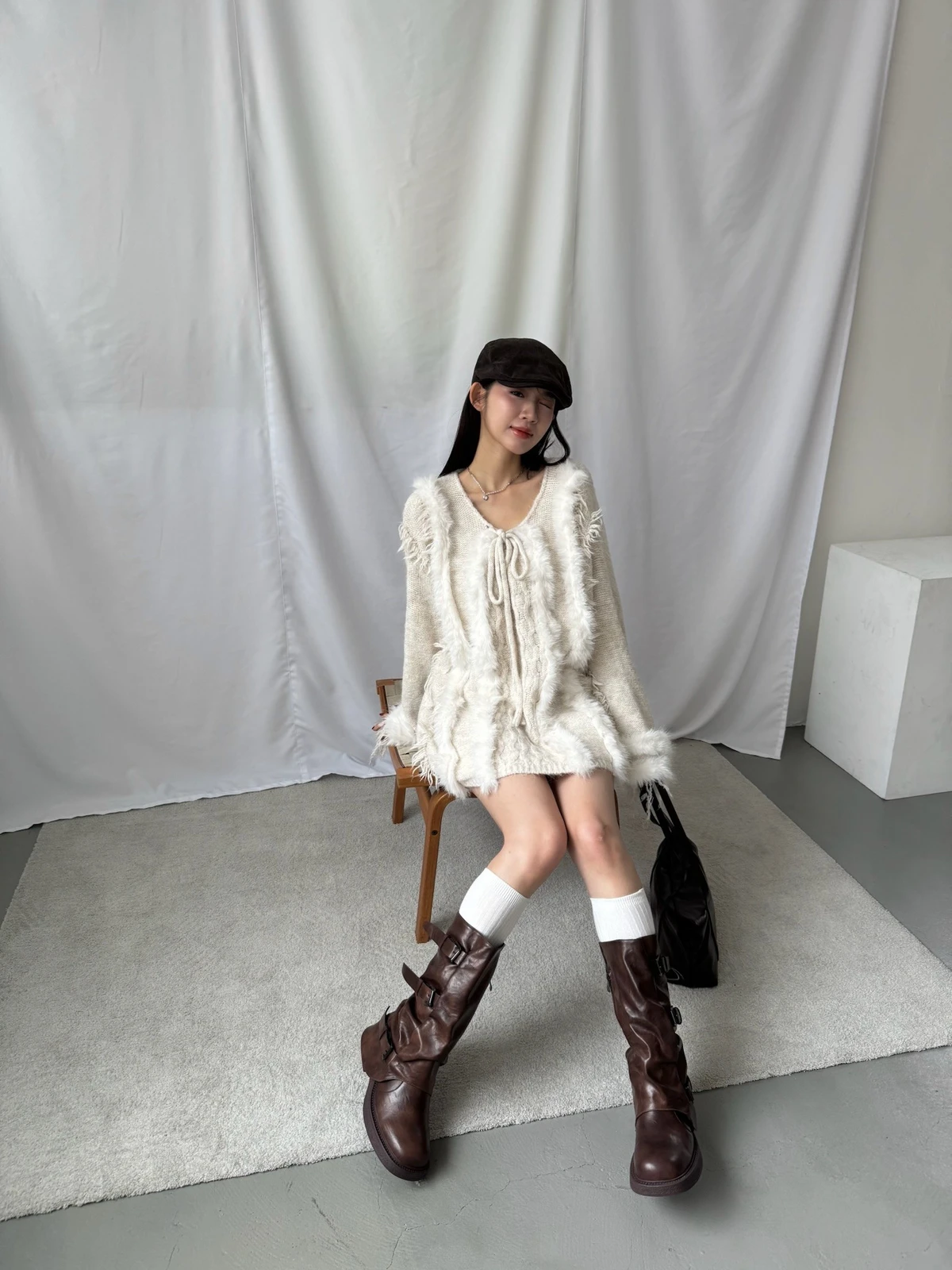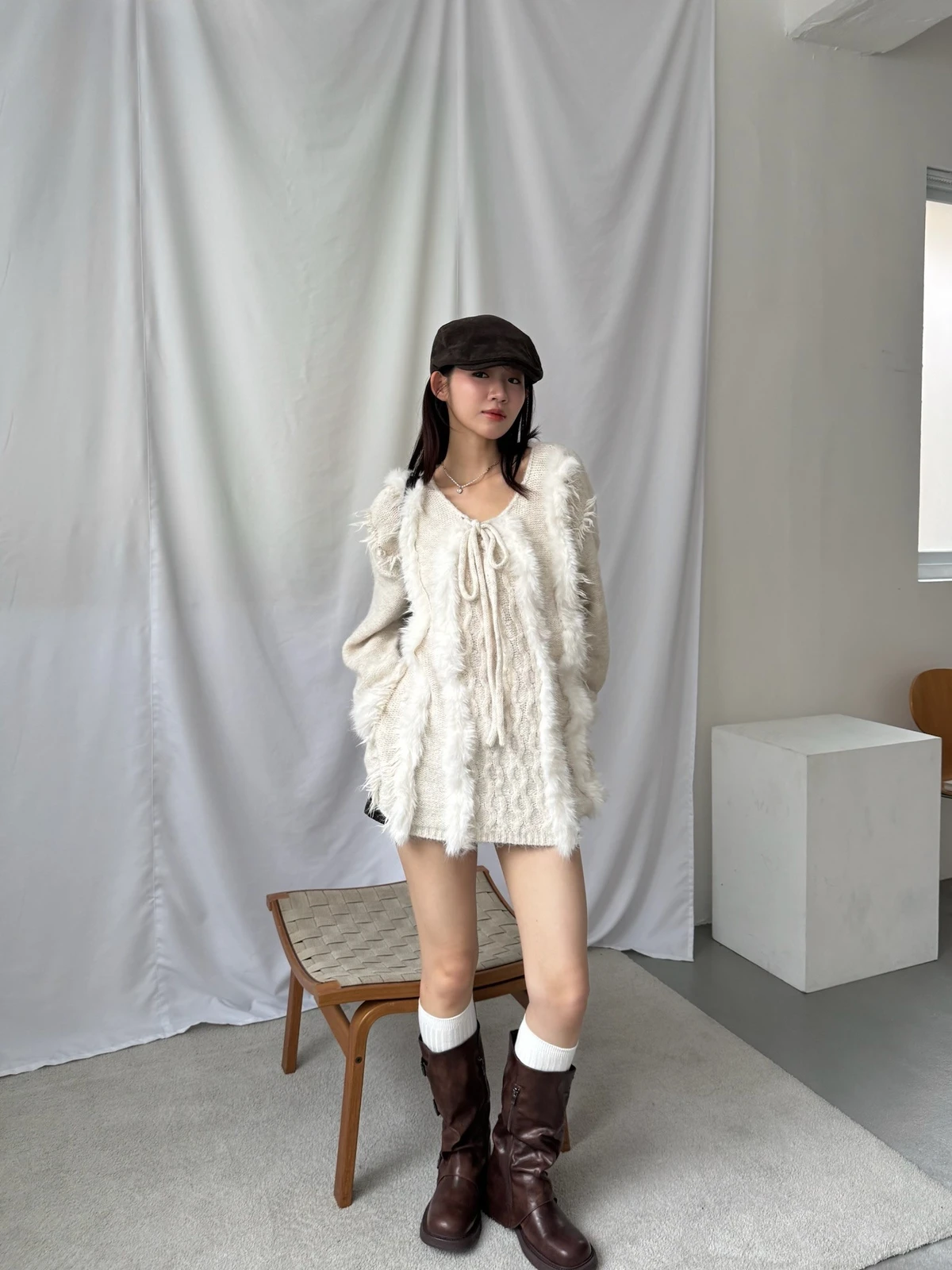 本期推薦!毛毛拼接針織設計綁繩毛衣