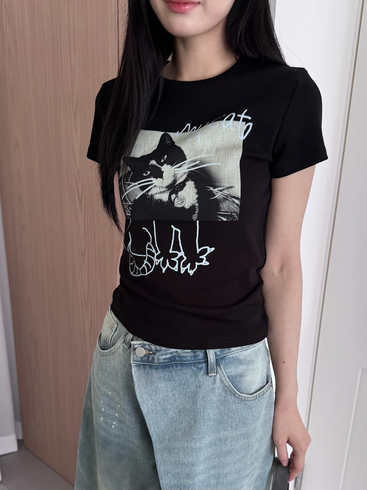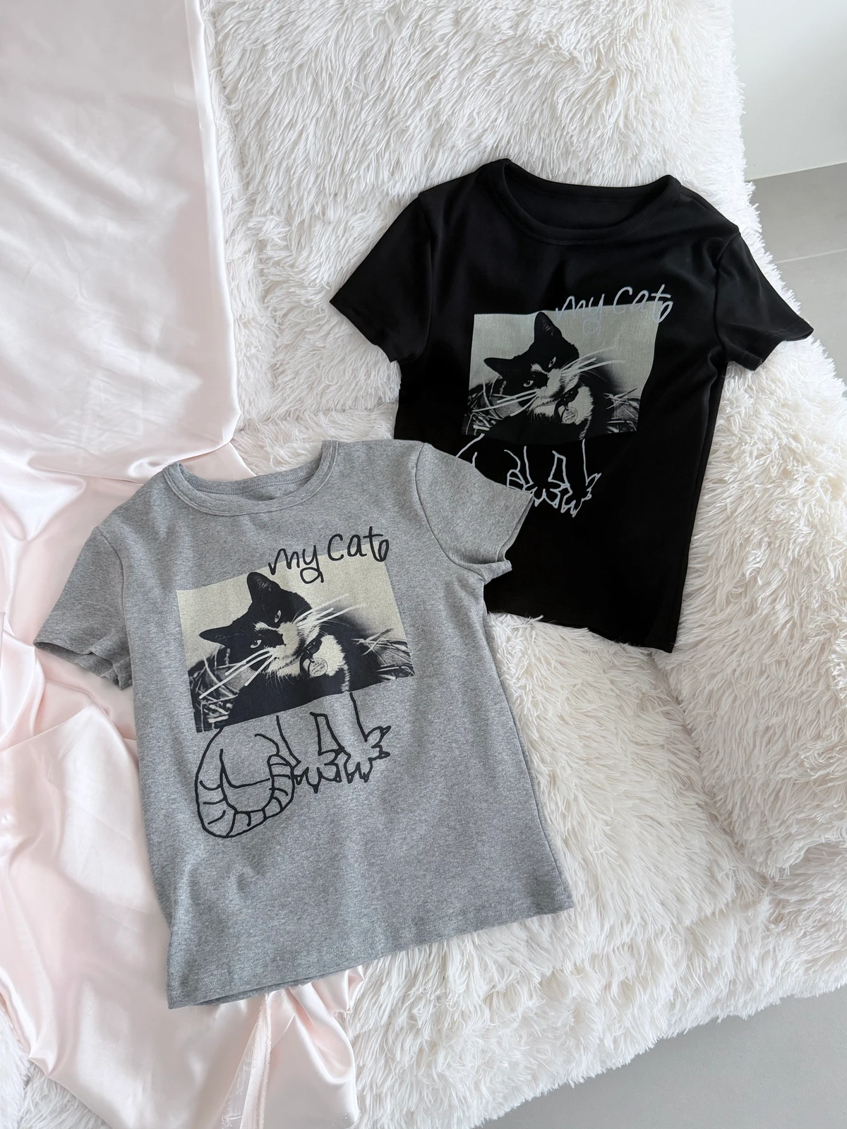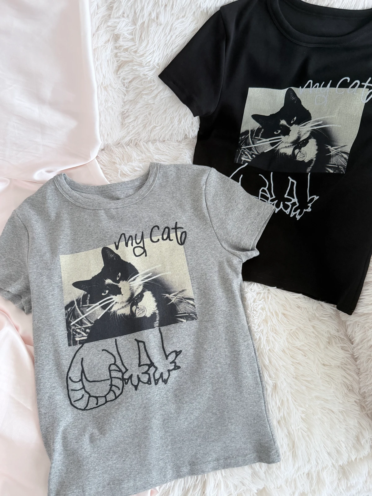 搞怪塗鴉貓咪短T/2colors
