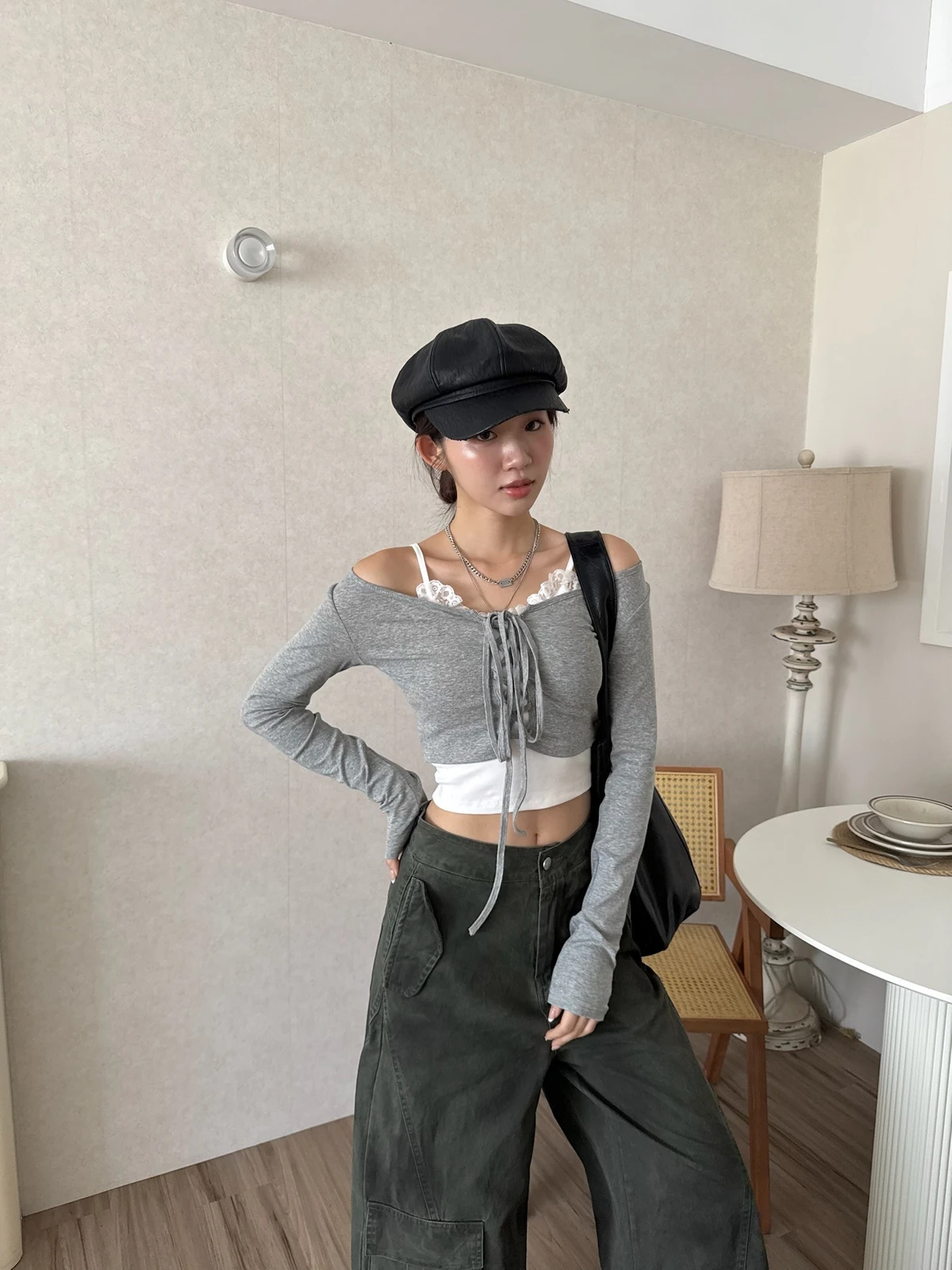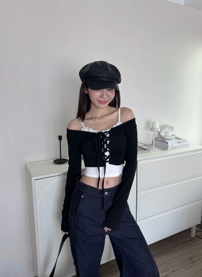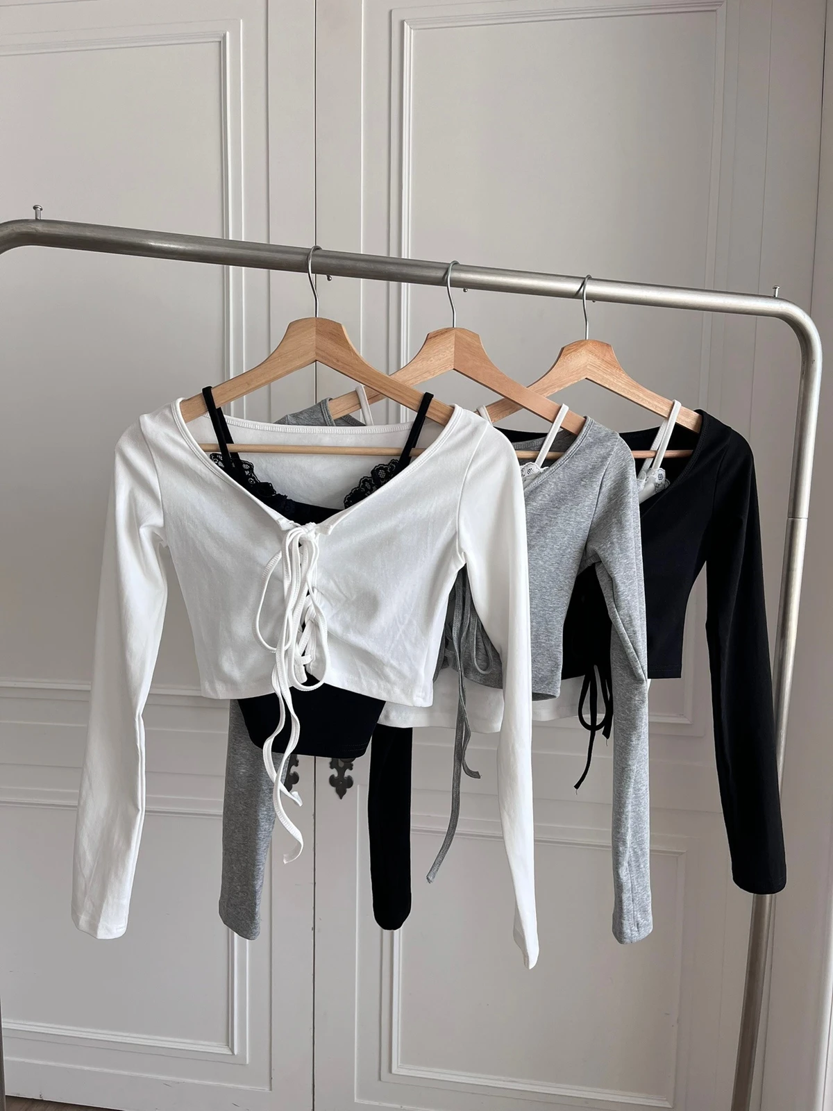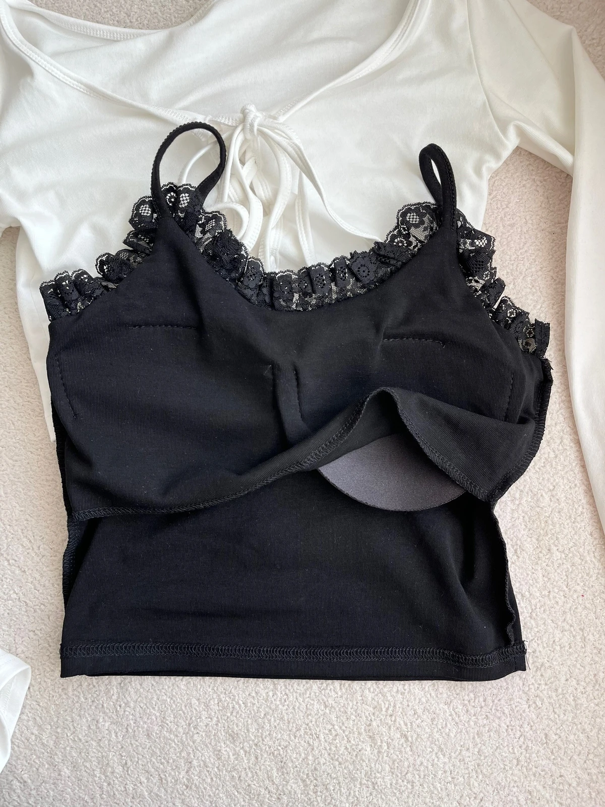 綁帶上衣+蕾絲滾邊Bra背心兩件式/3colors