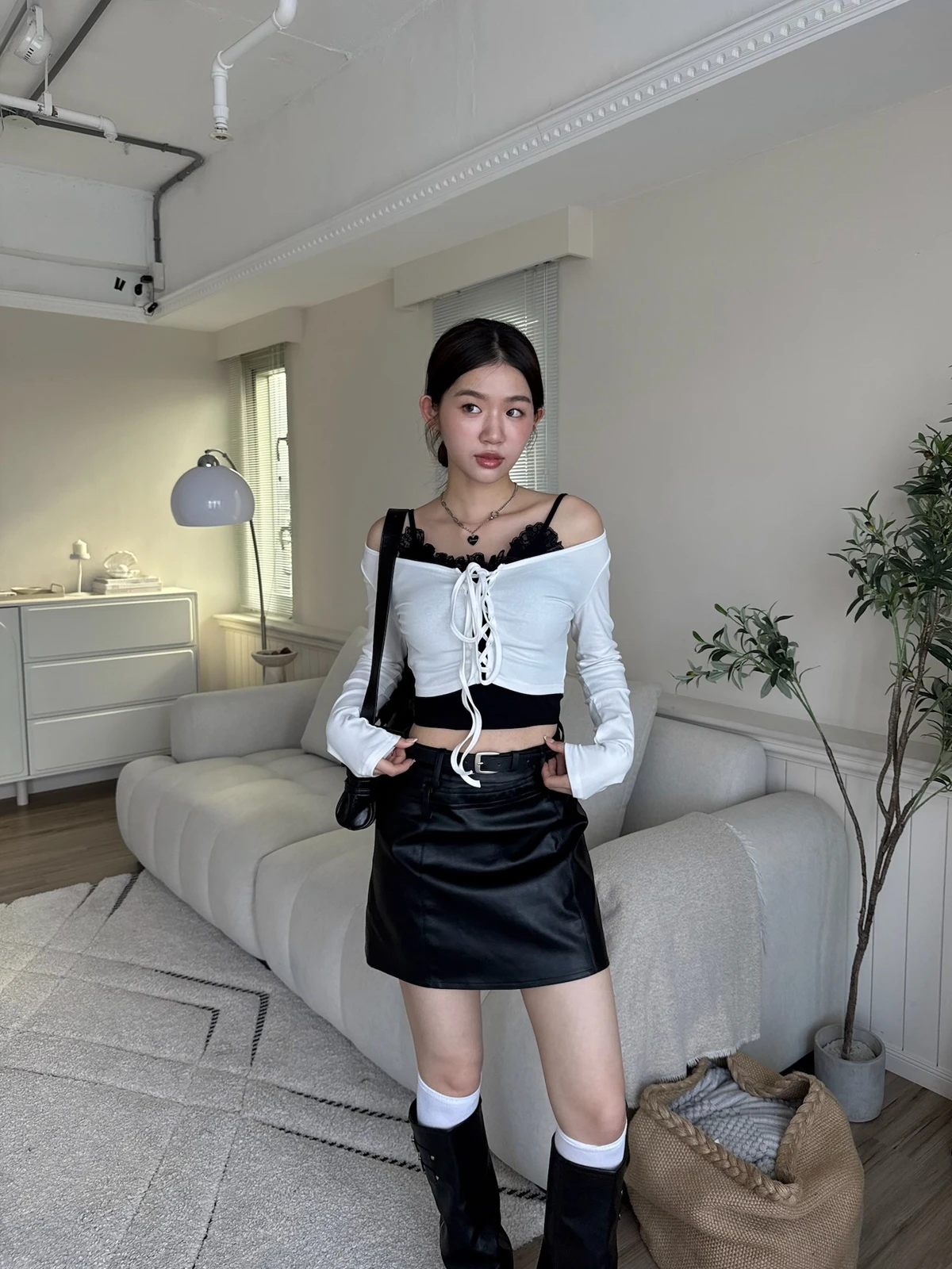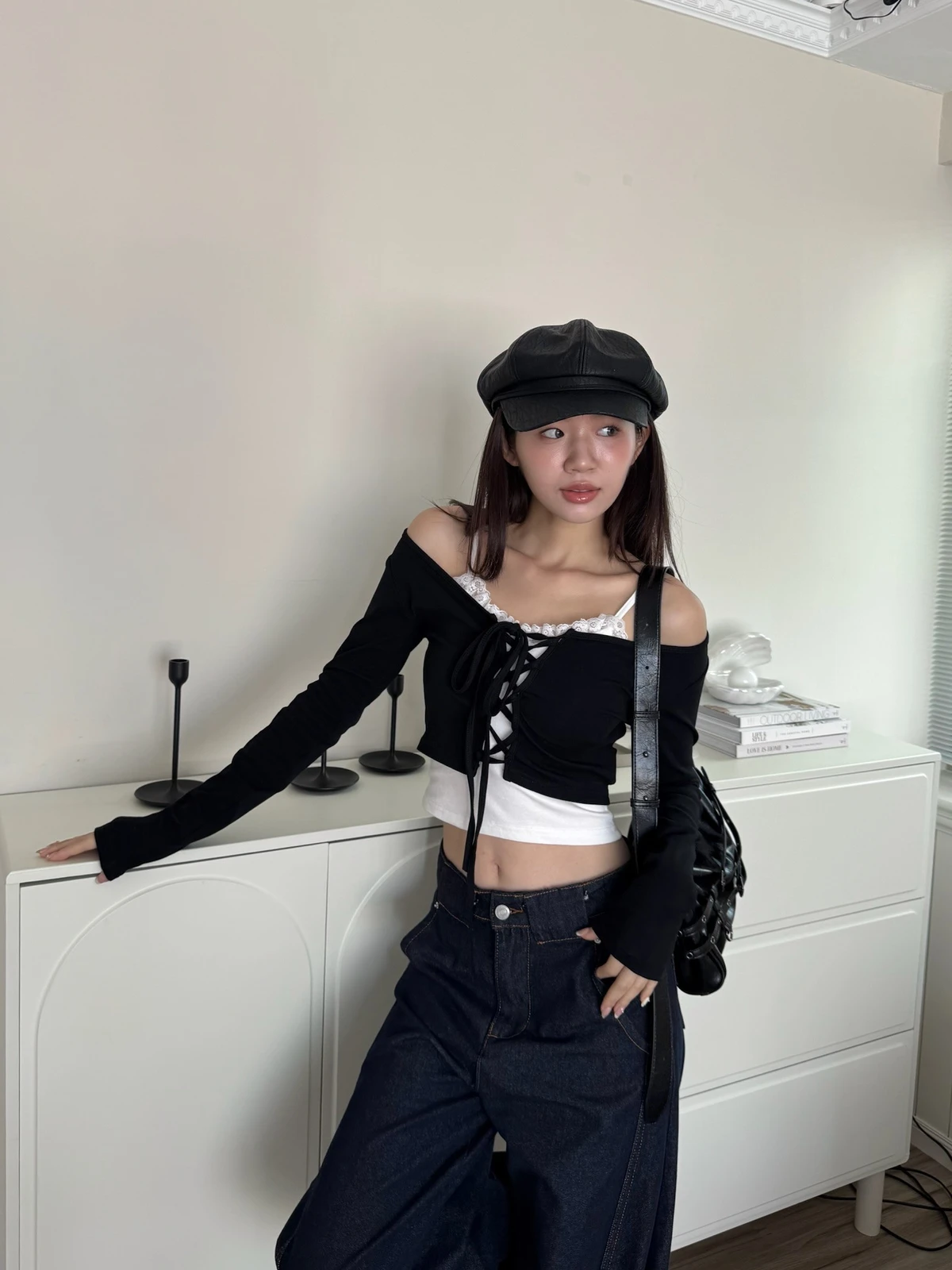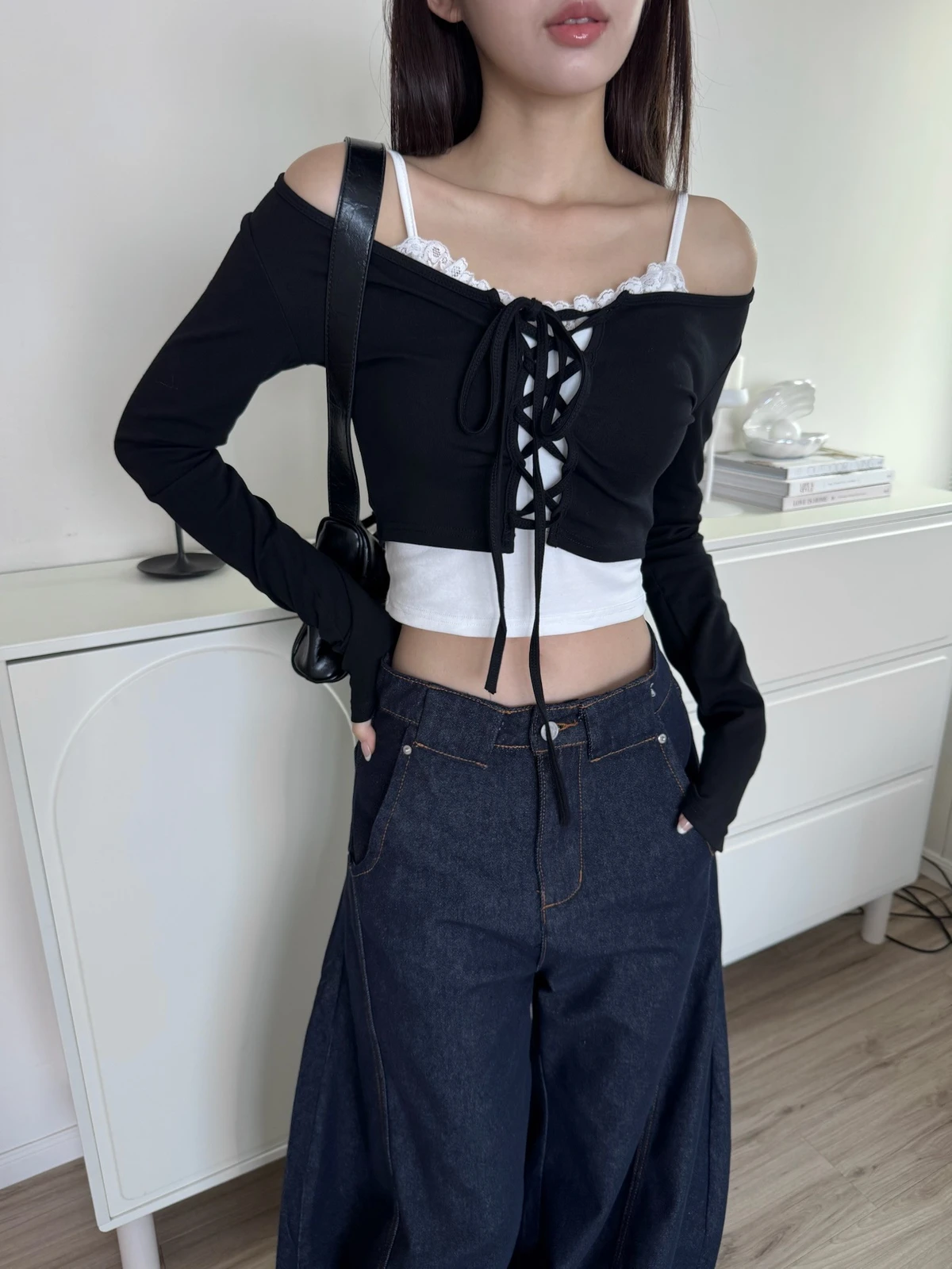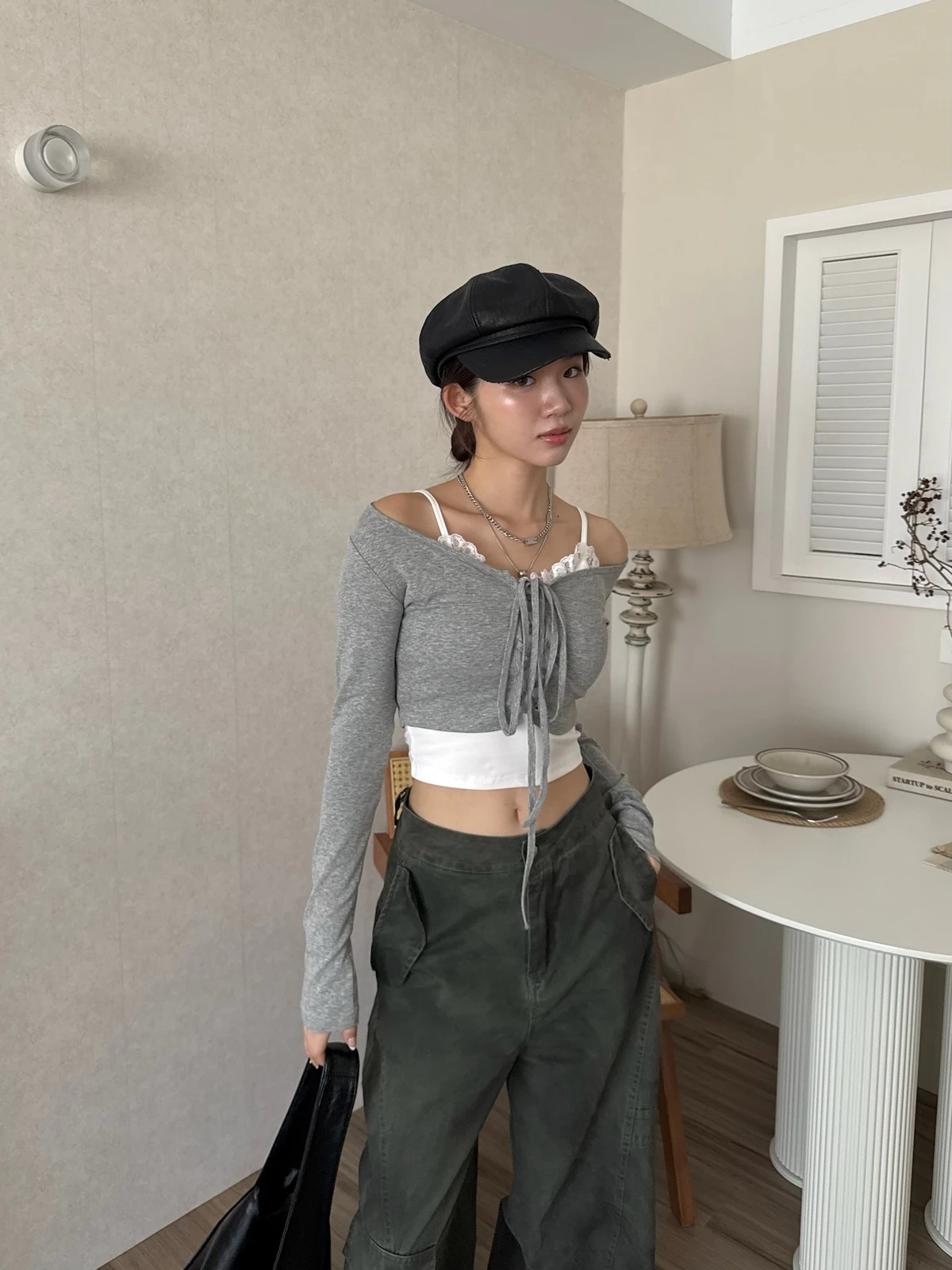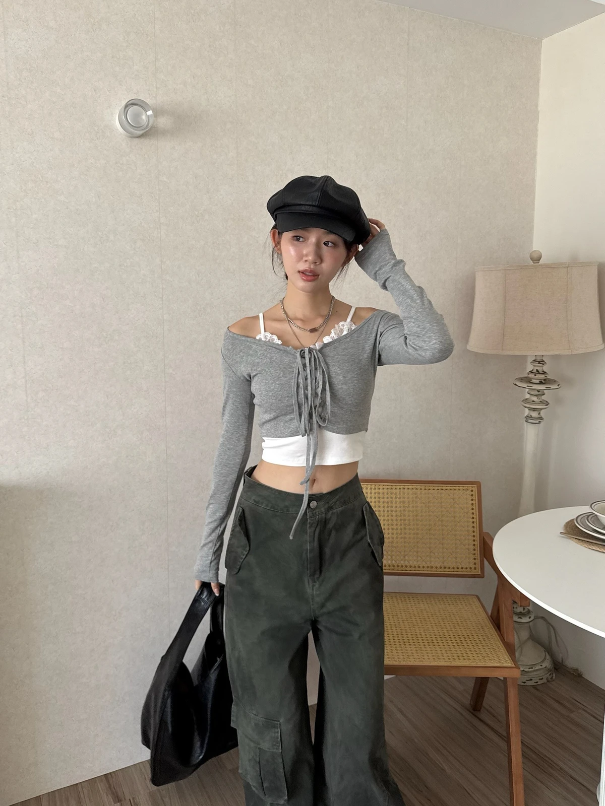 綁帶上衣+蕾絲滾邊Bra背心兩件式/3colors