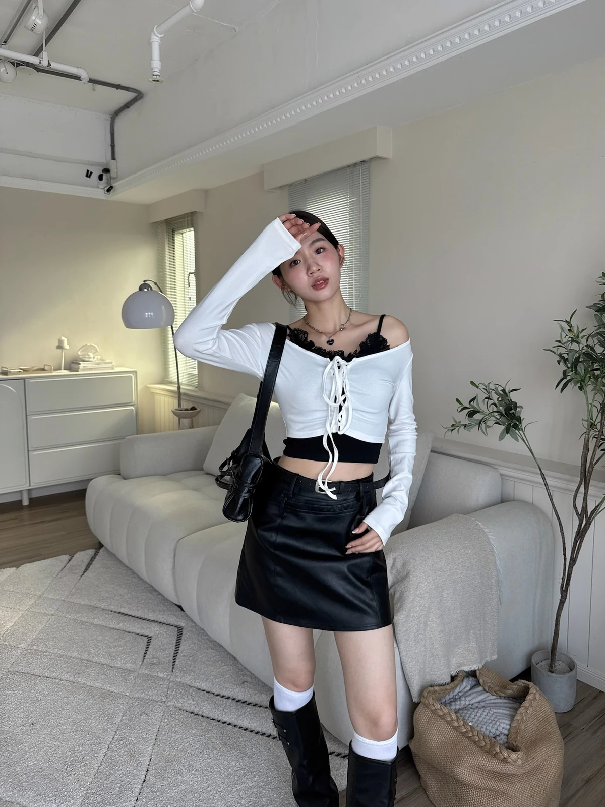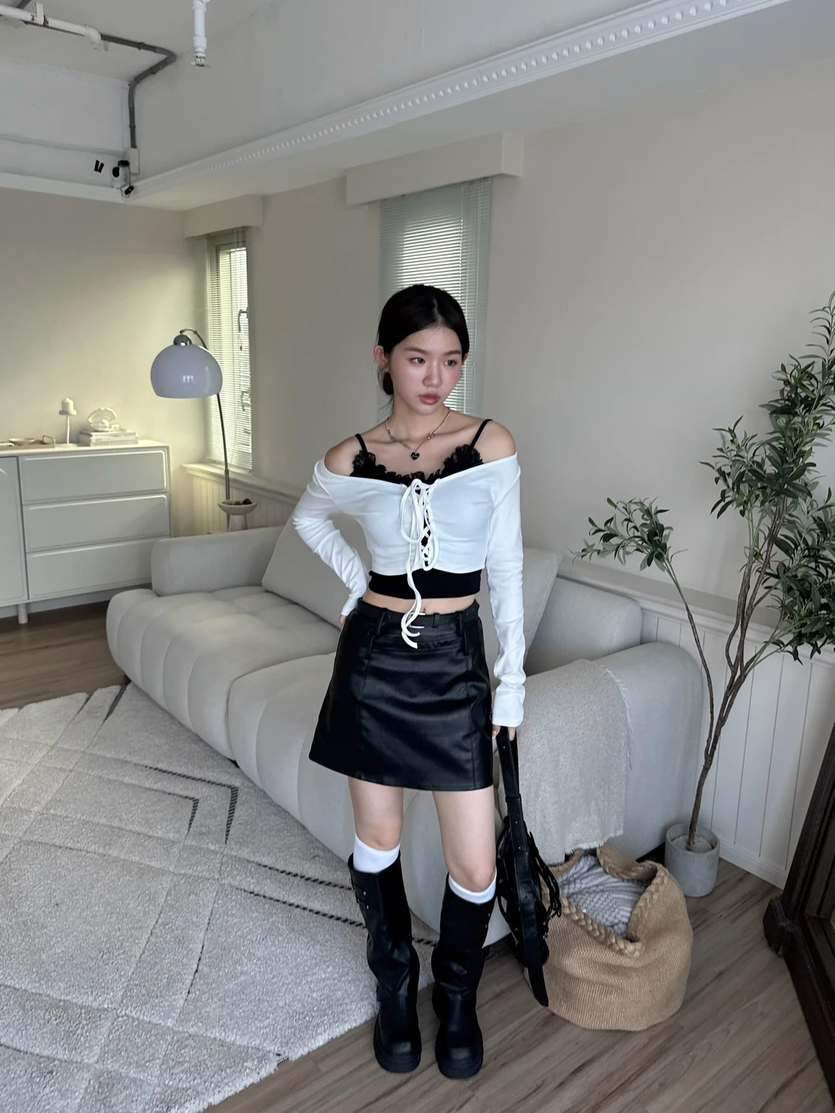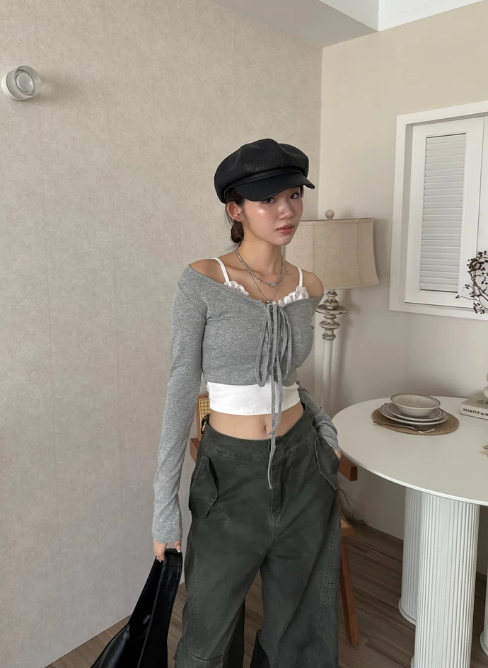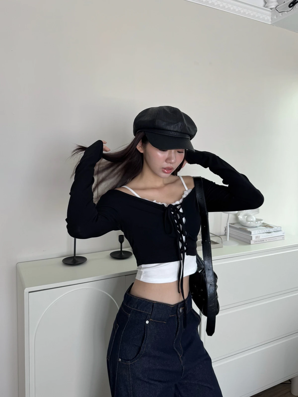 綁帶上衣+蕾絲滾邊Bra背心兩件式/3colors