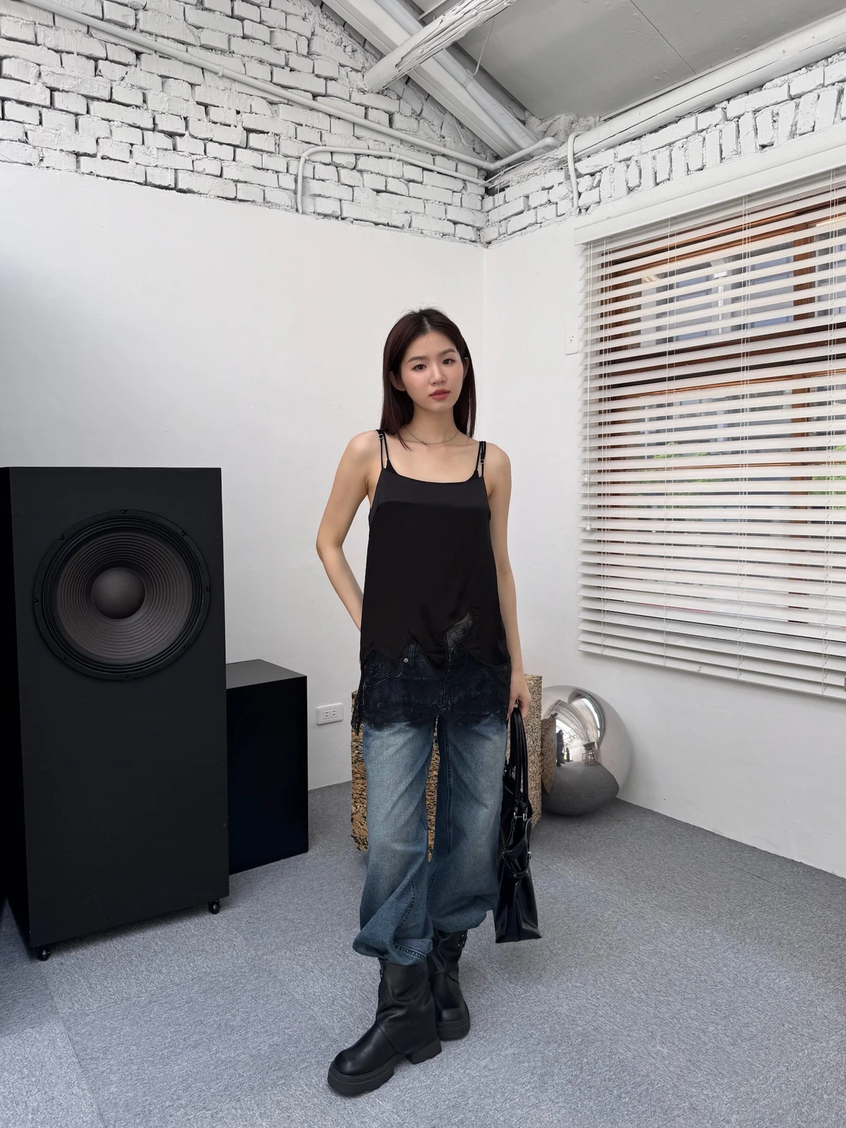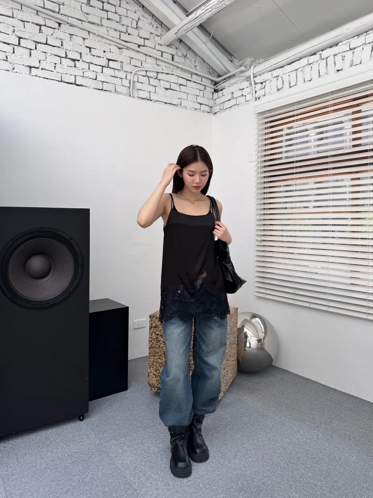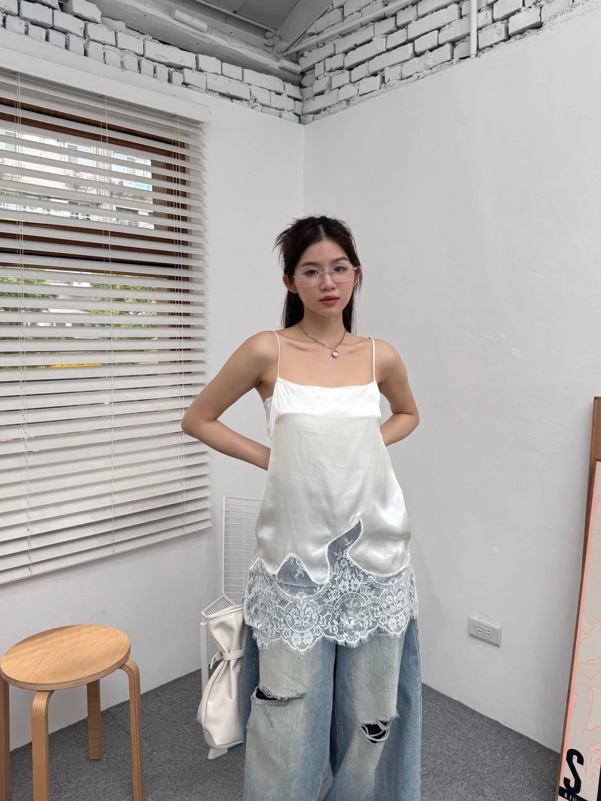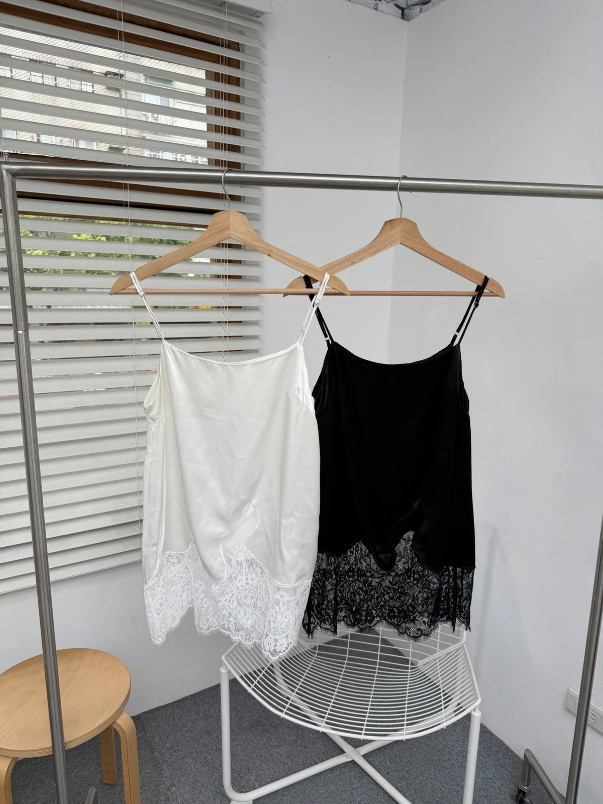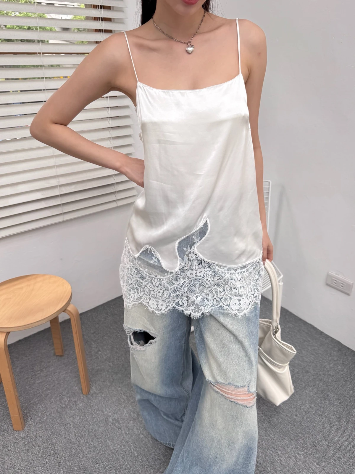 緞面拼接蕾絲細肩背心/2colors