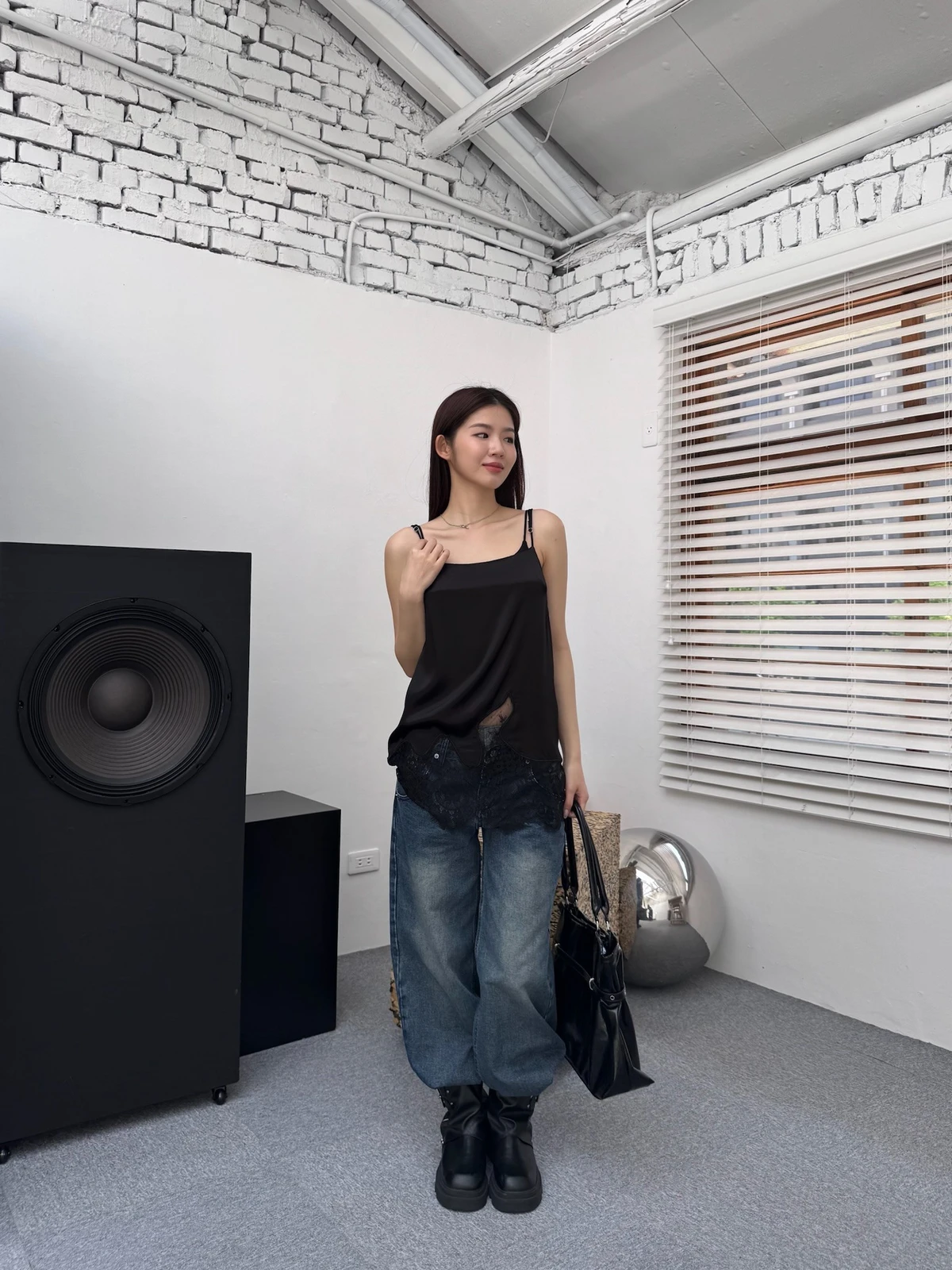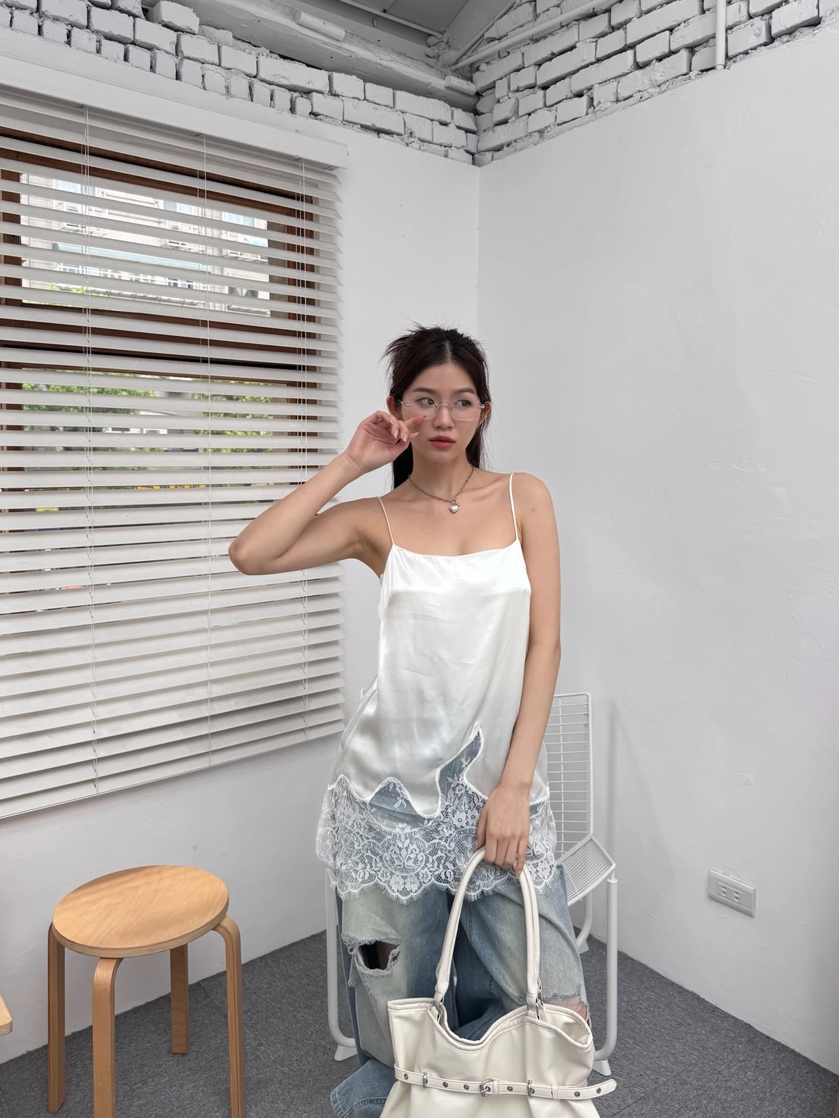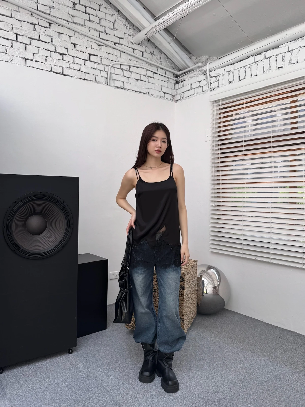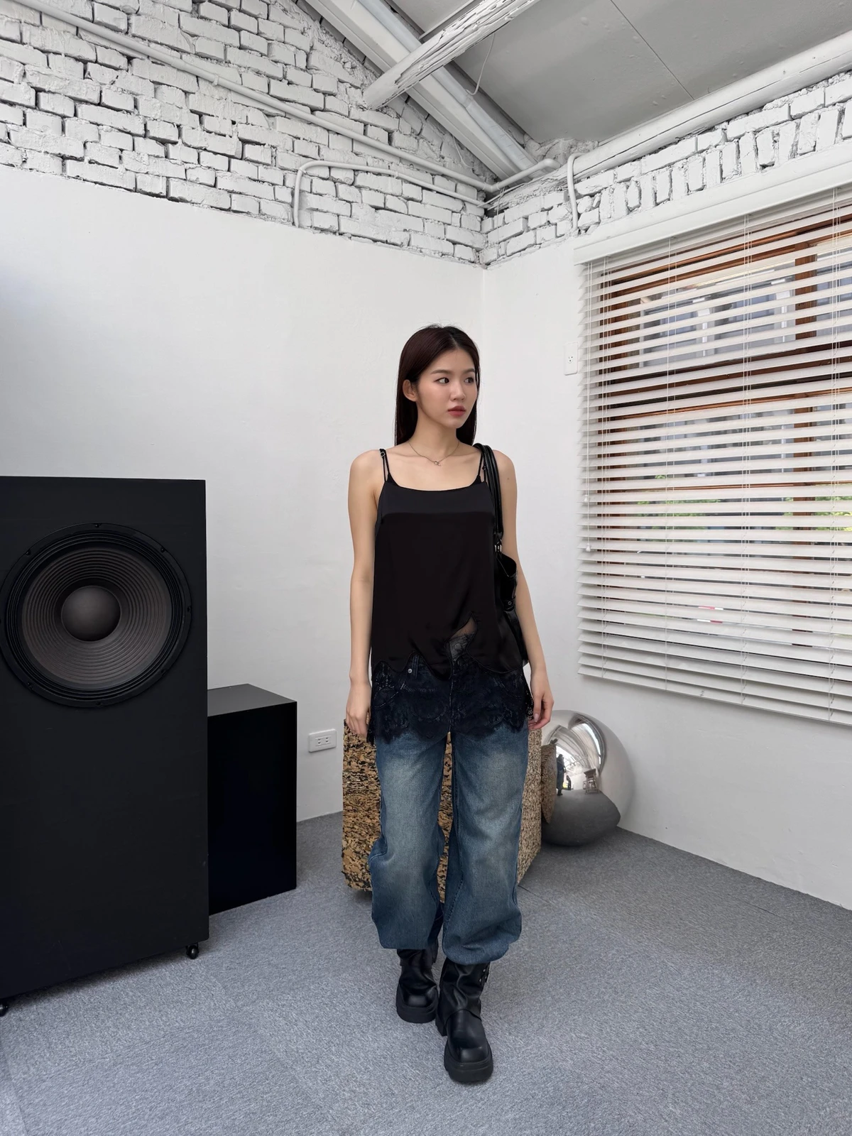 緞面拼接蕾絲細肩背心/2colors