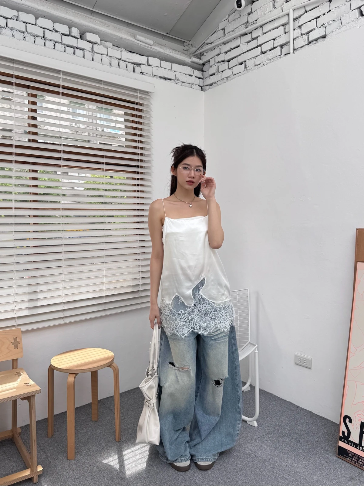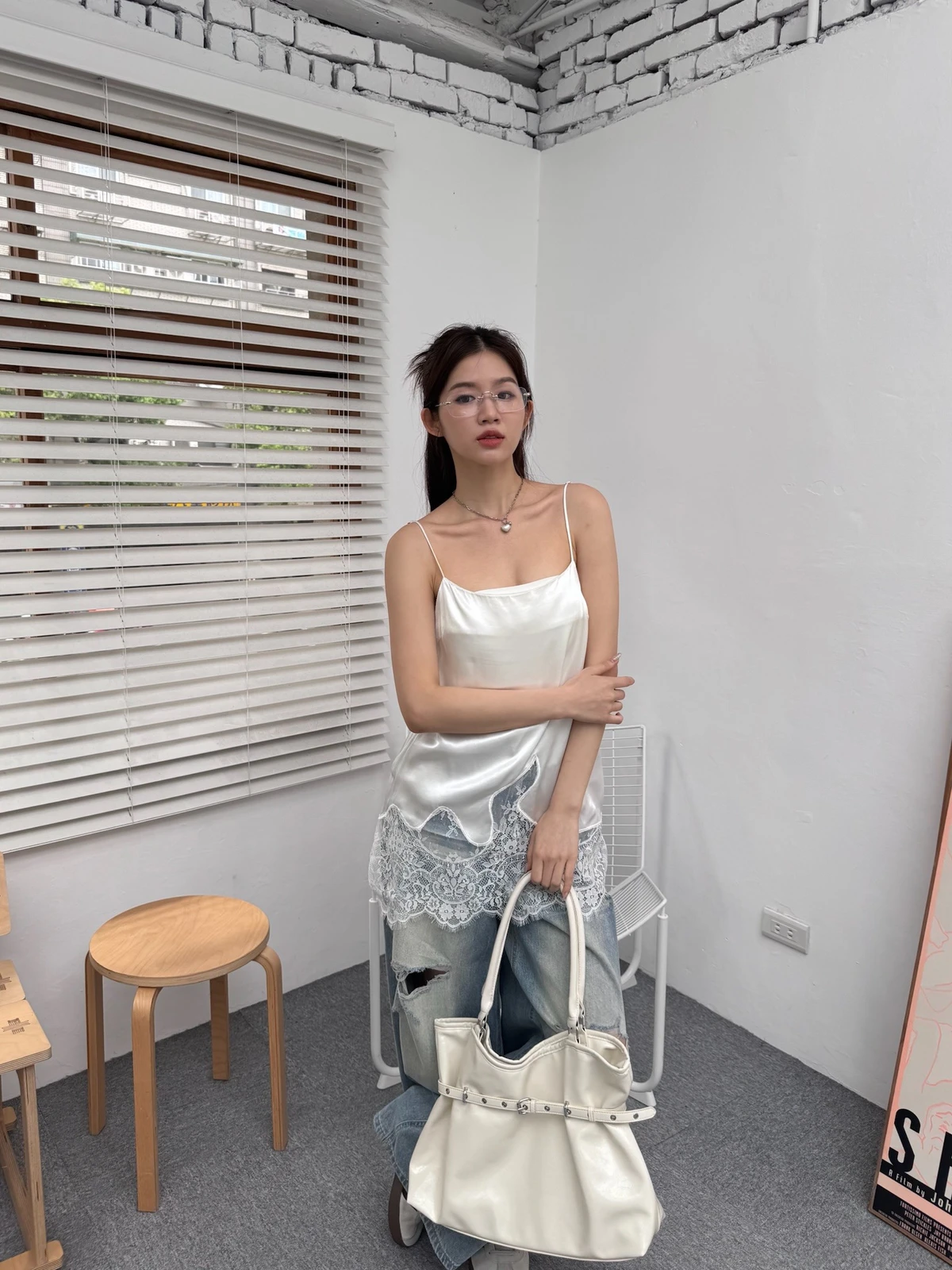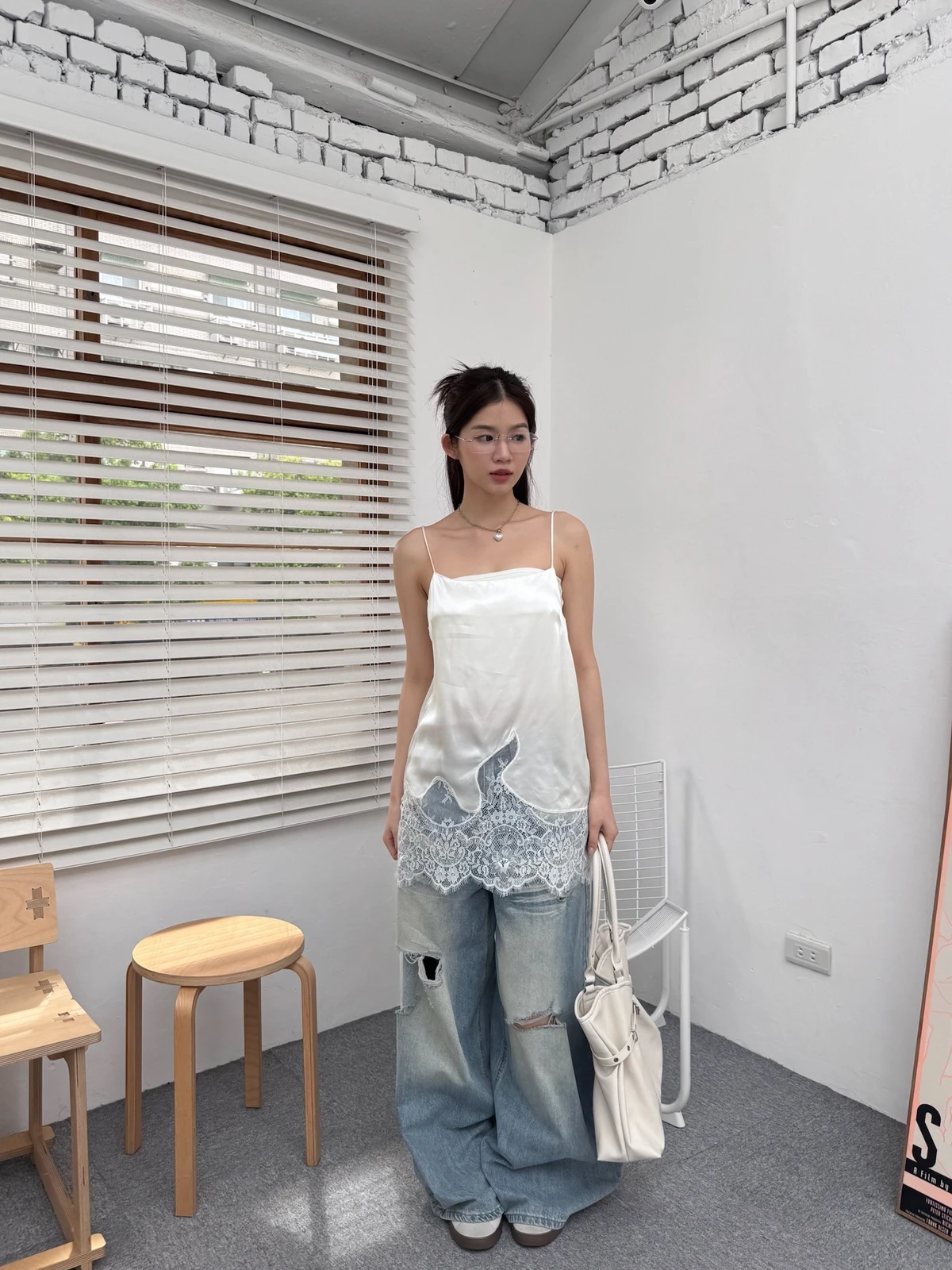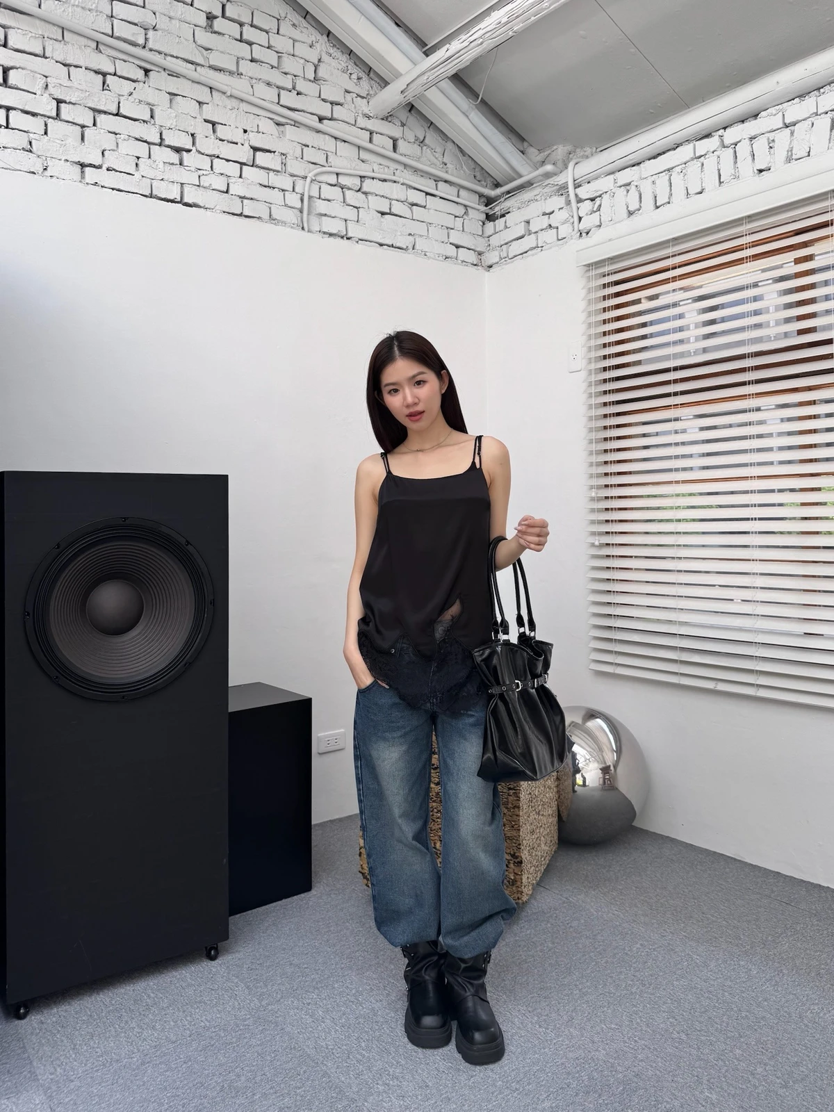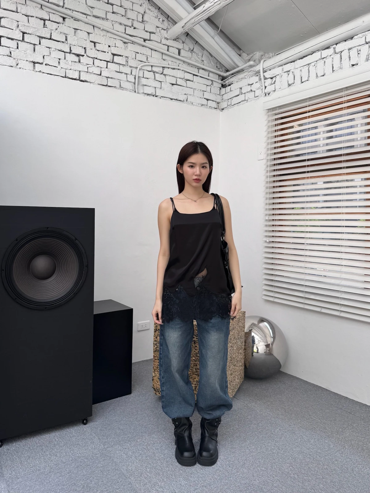 緞面拼接蕾絲細肩背心/2colors