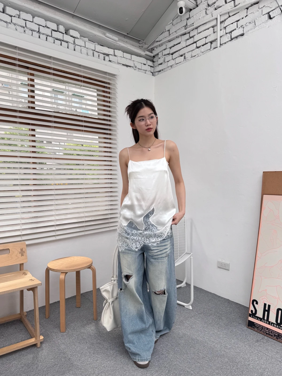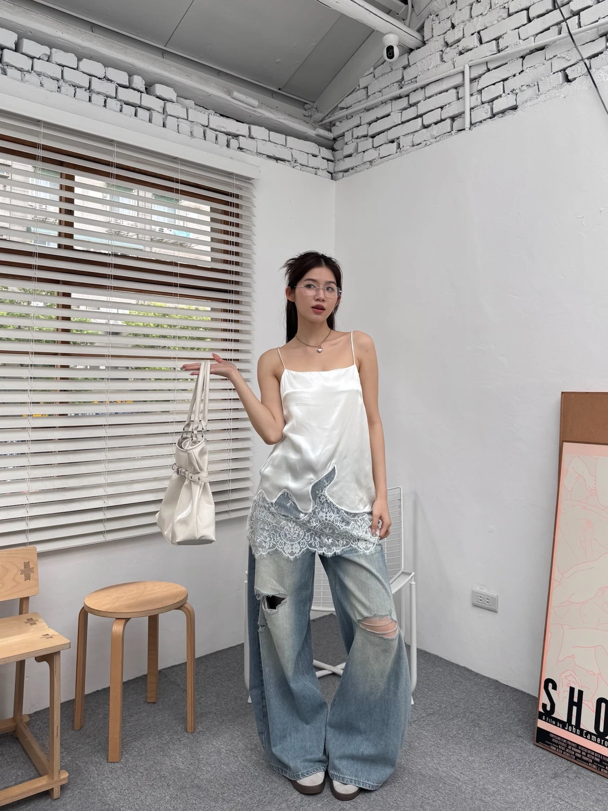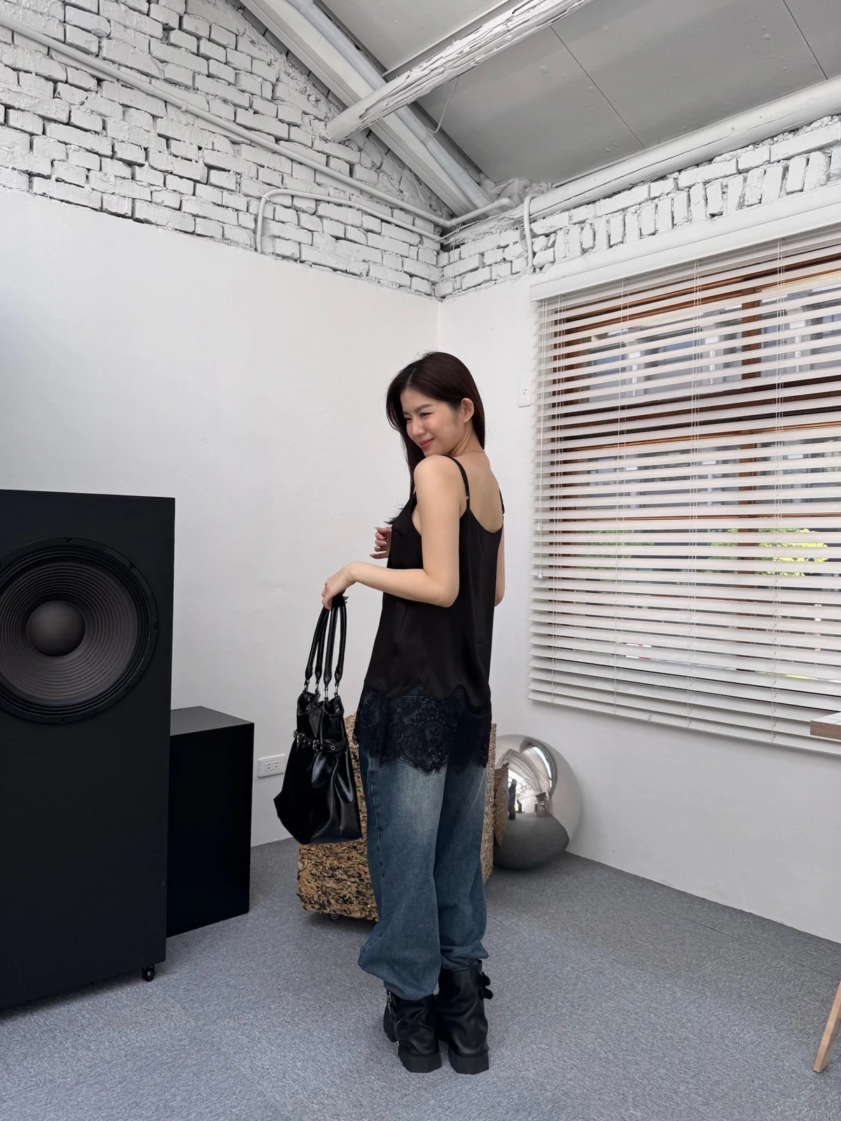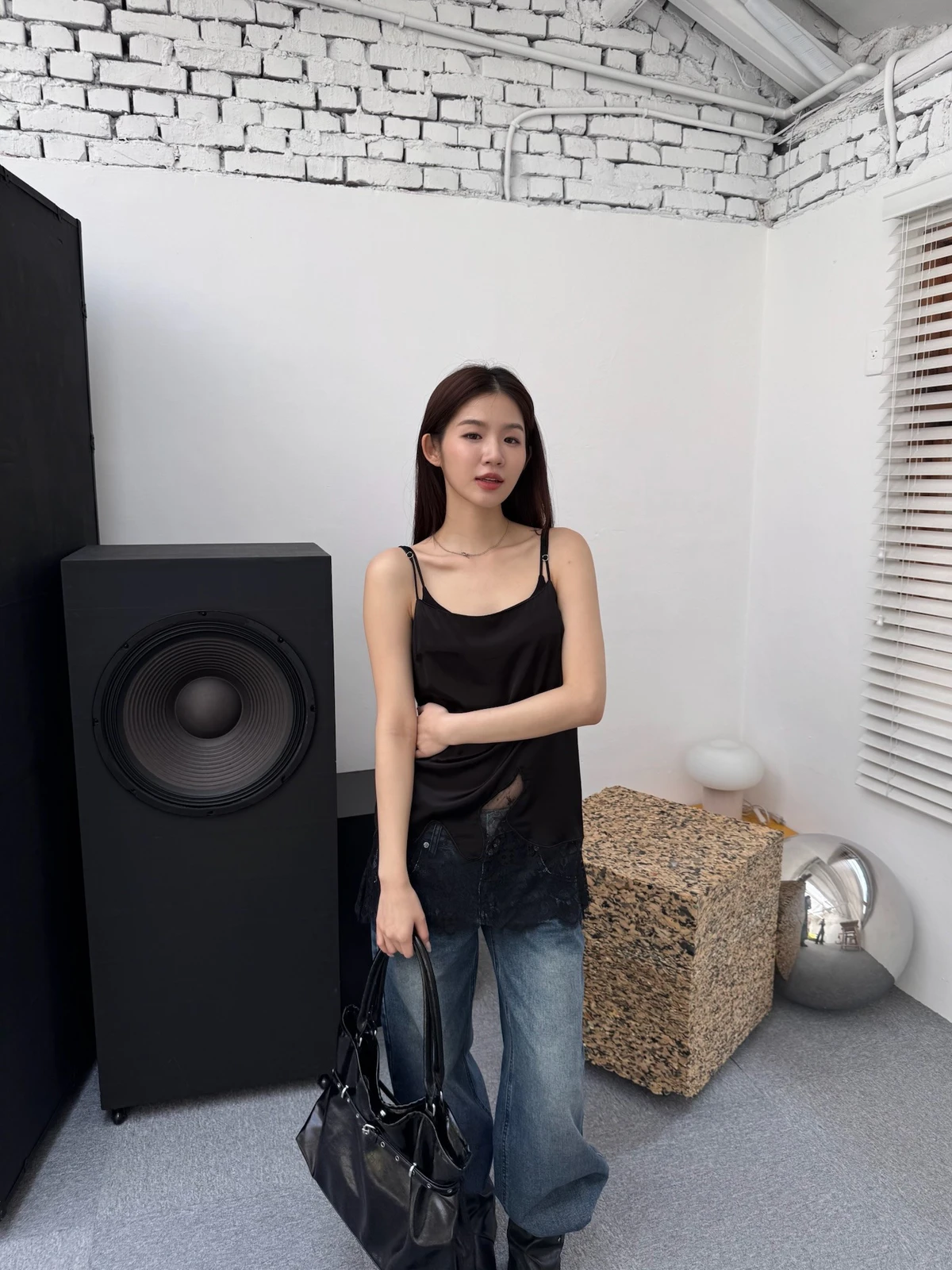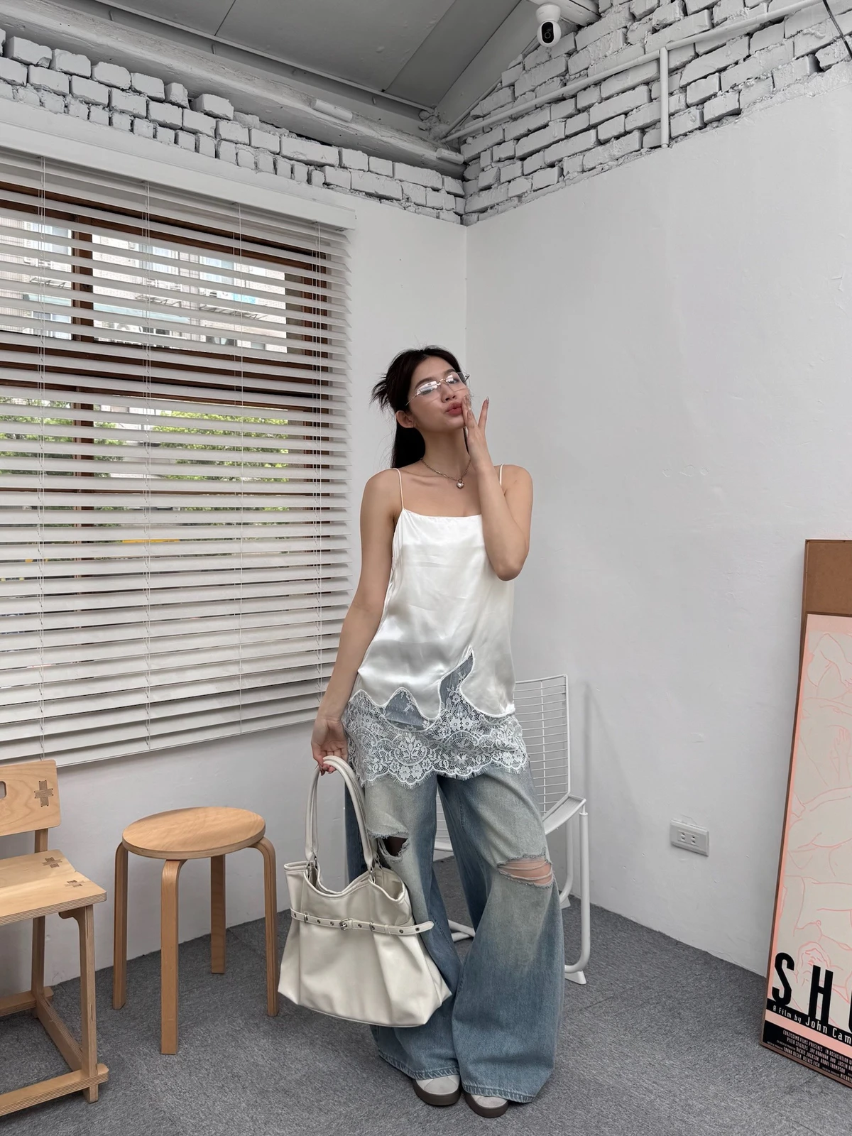 緞面拼接蕾絲細肩背心/2colors
