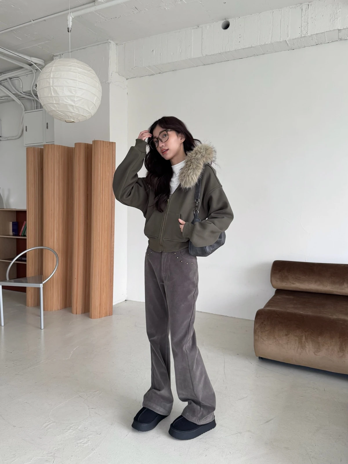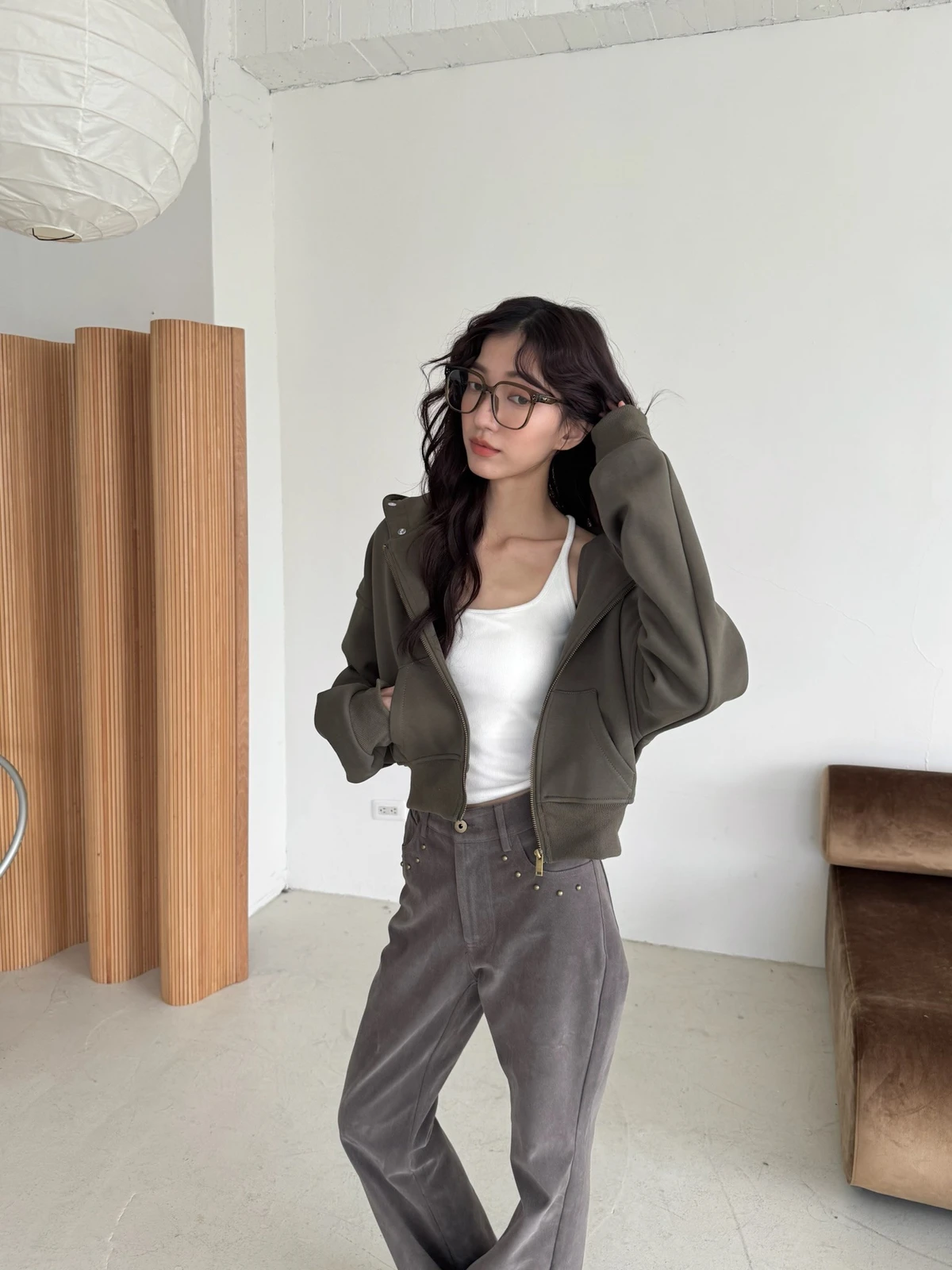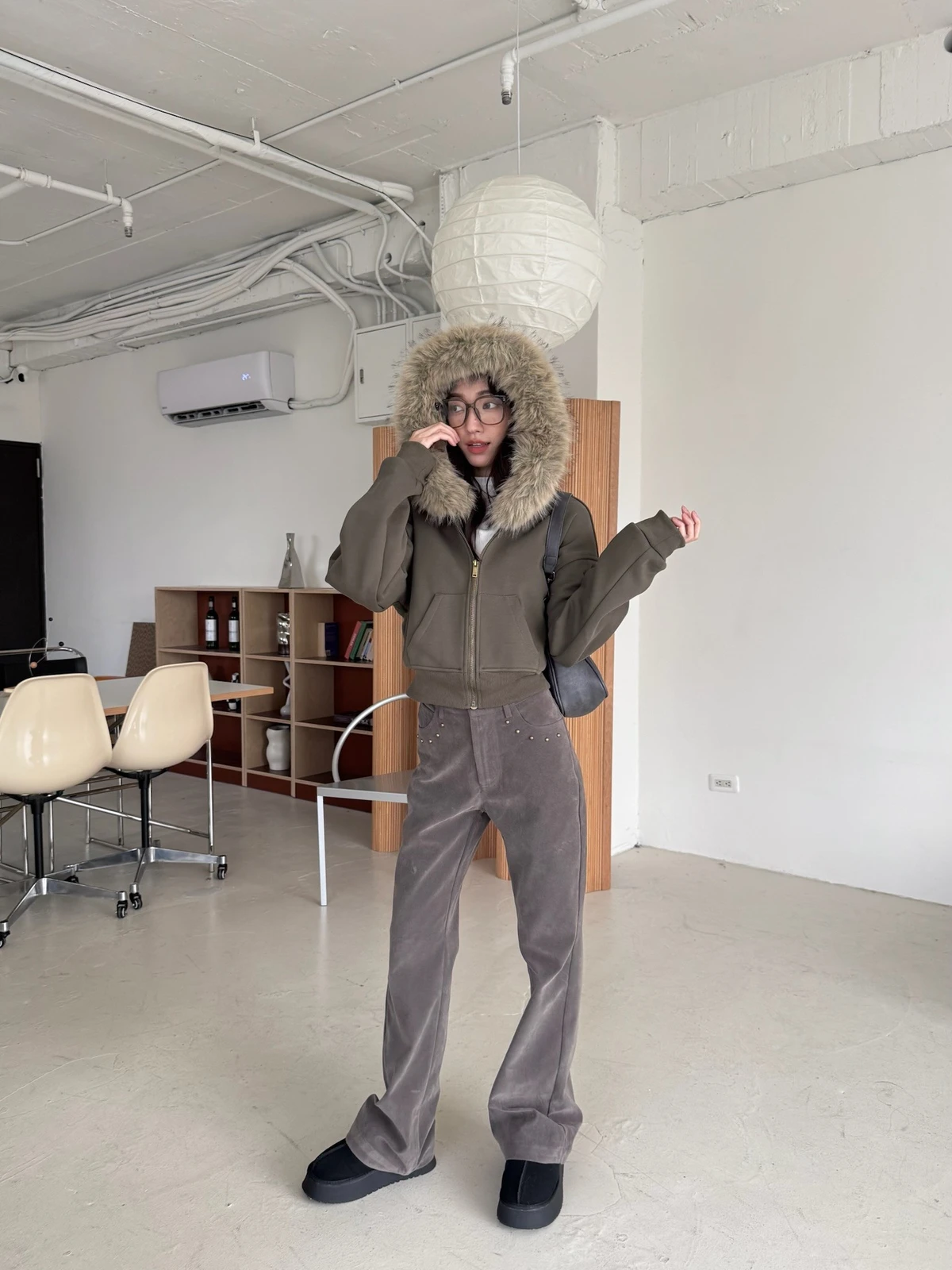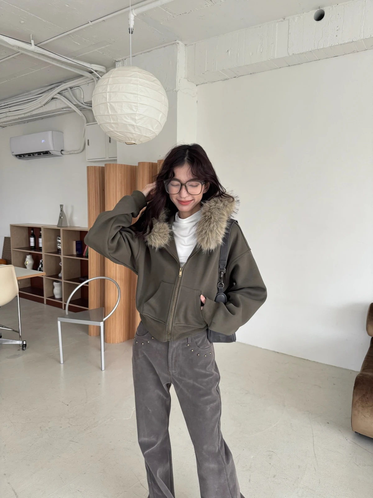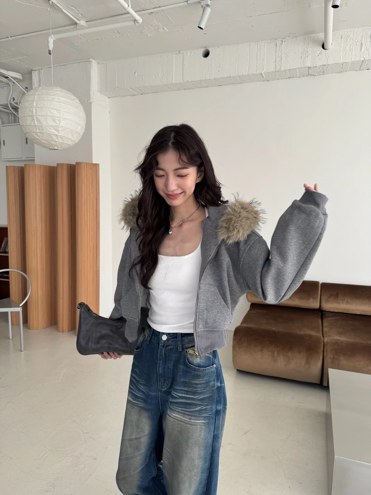 可拆式毛毛帽內磨毛拉鍊短版外套/2colors