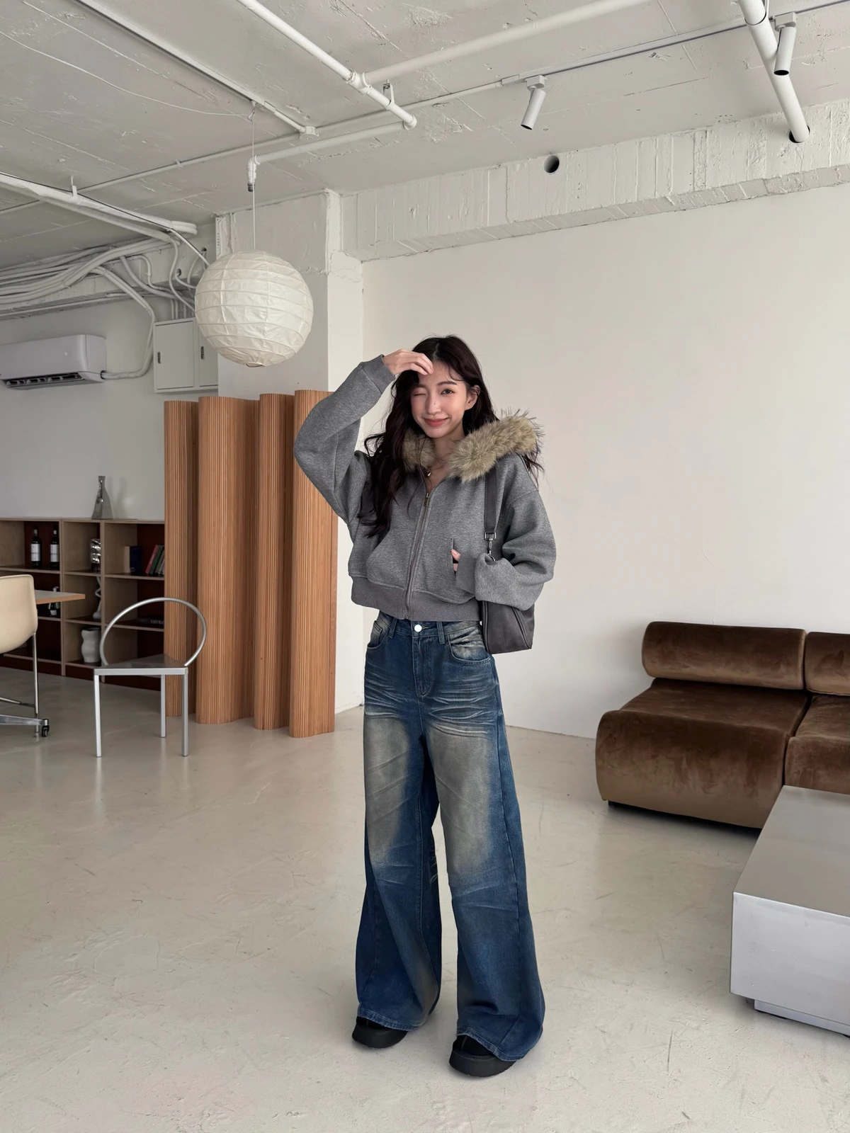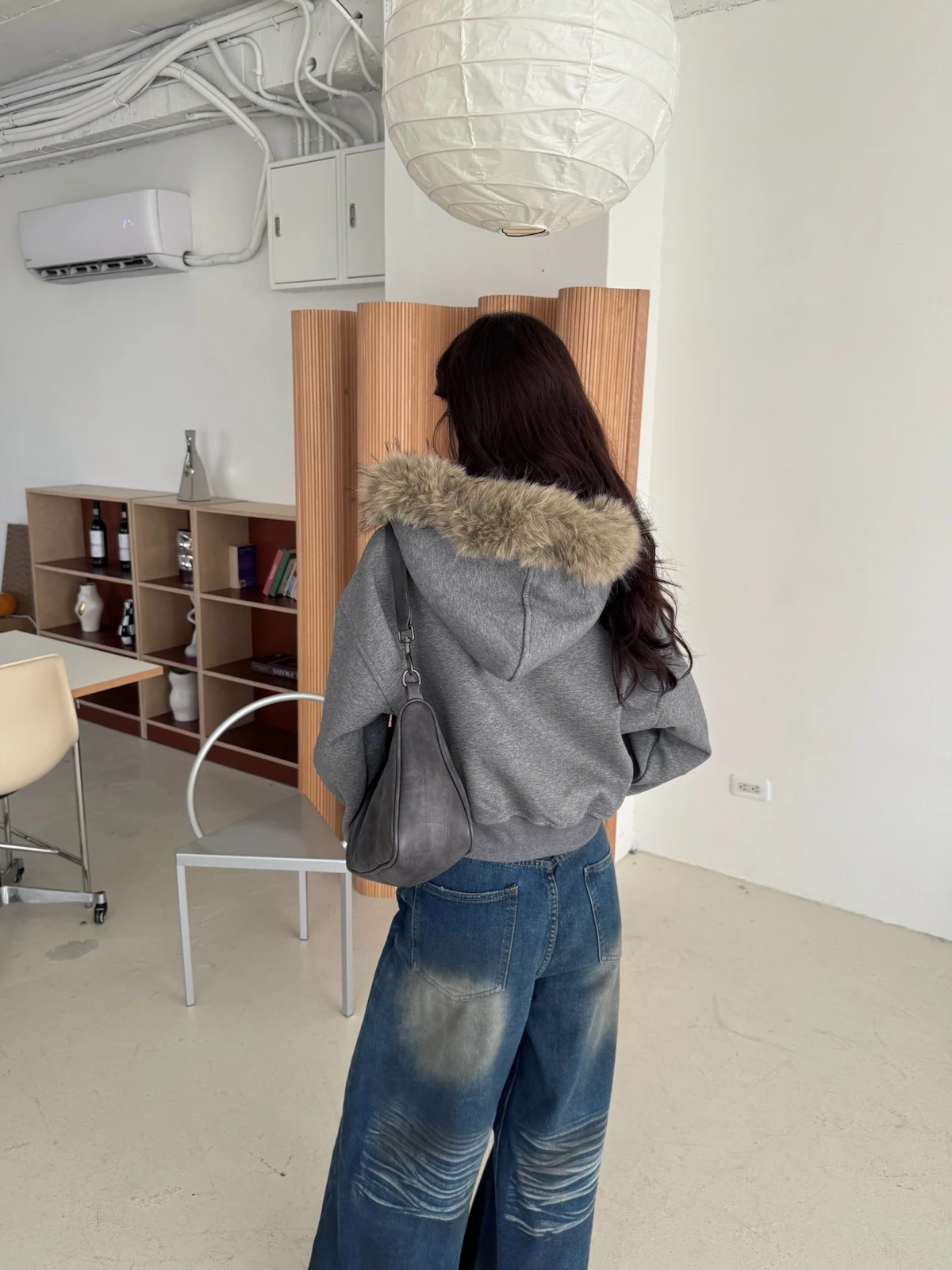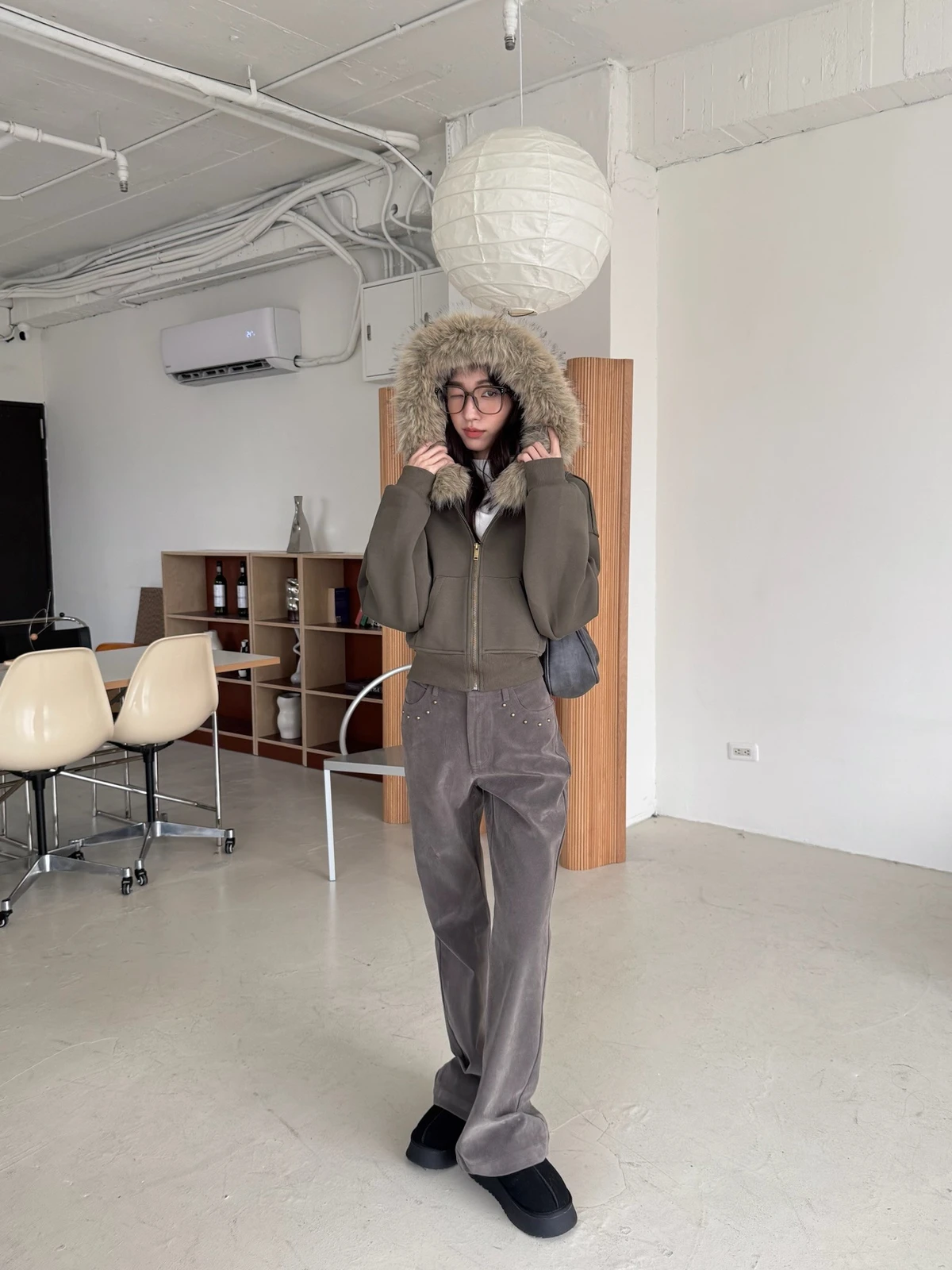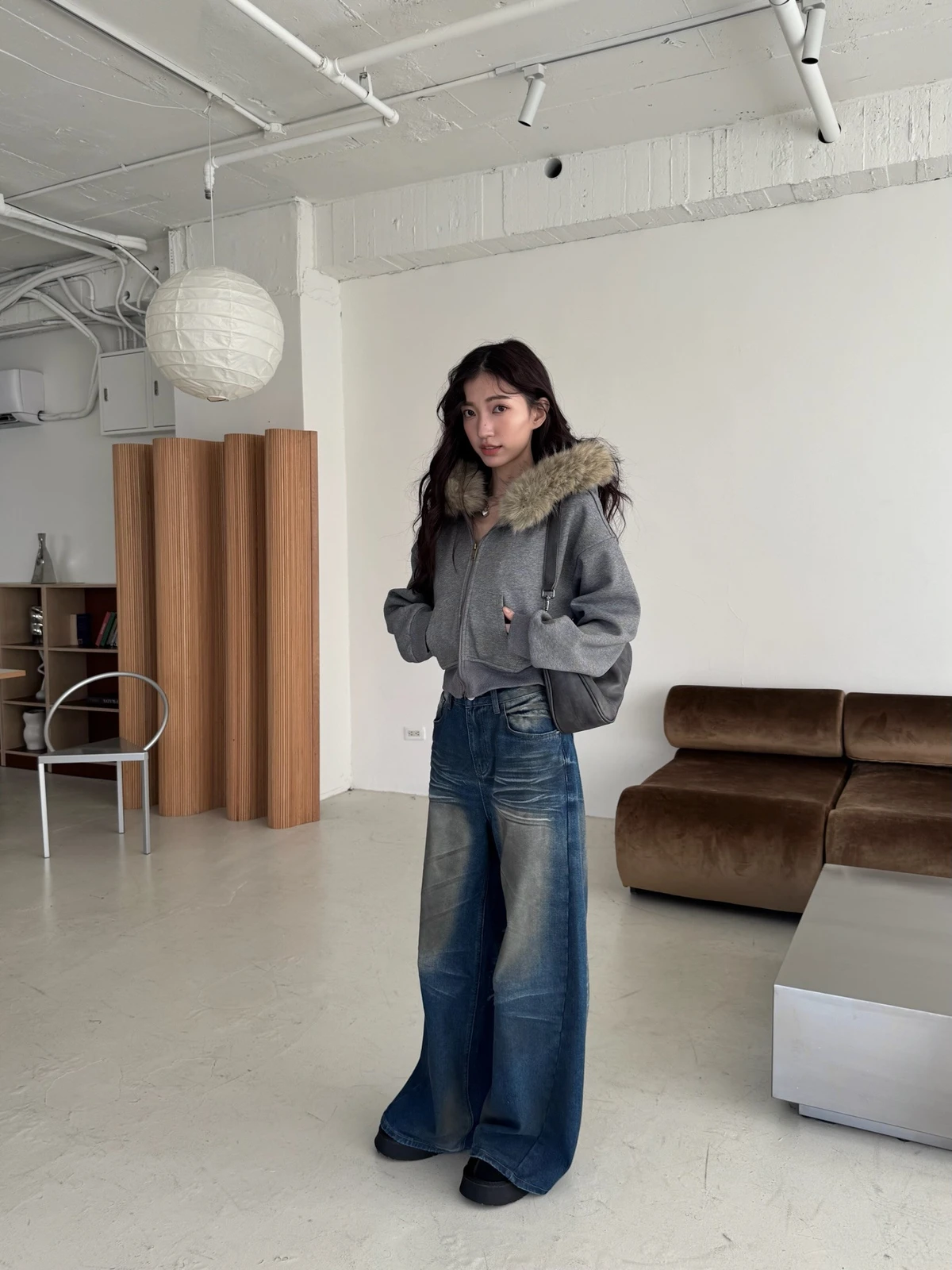 可拆式毛毛帽內磨毛拉鍊短版外套/2colors