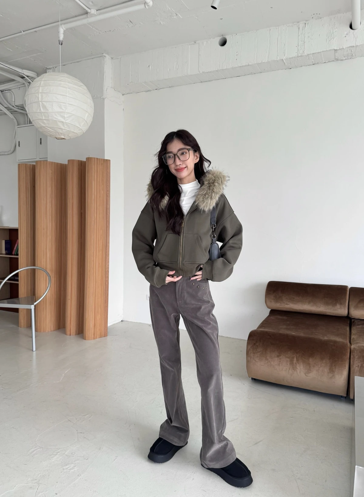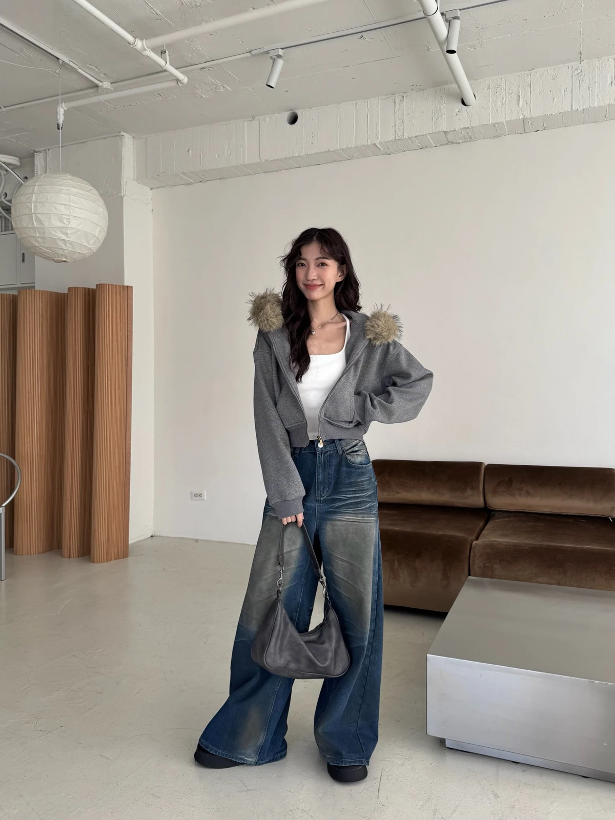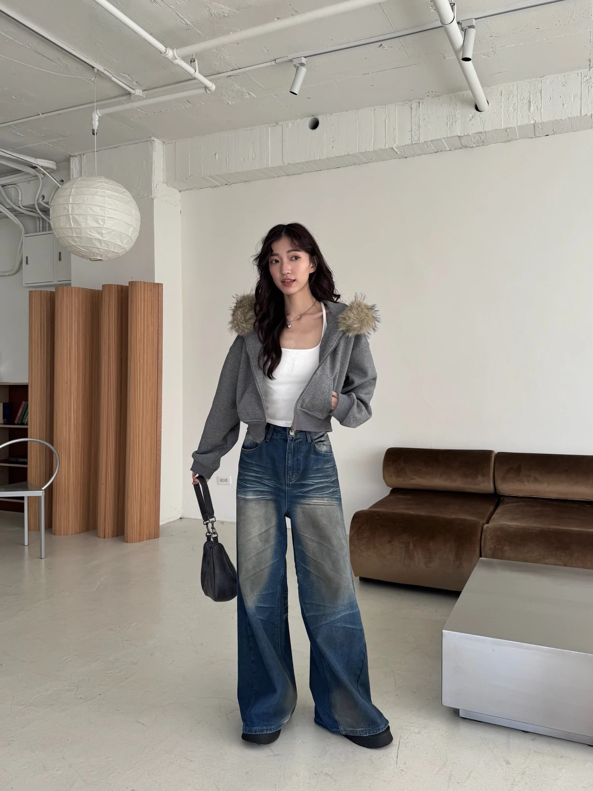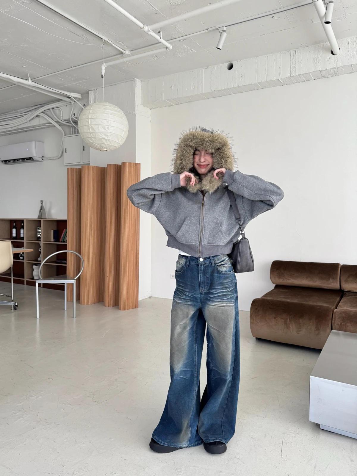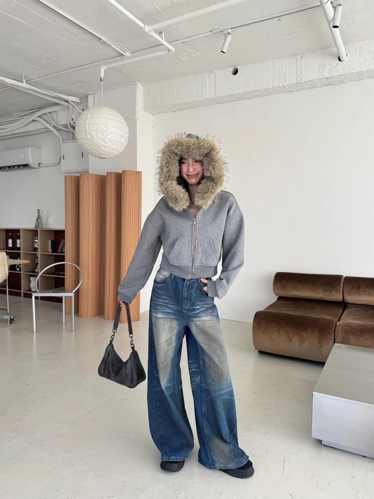 可拆式毛毛帽內磨毛拉鍊短版外套/2colors