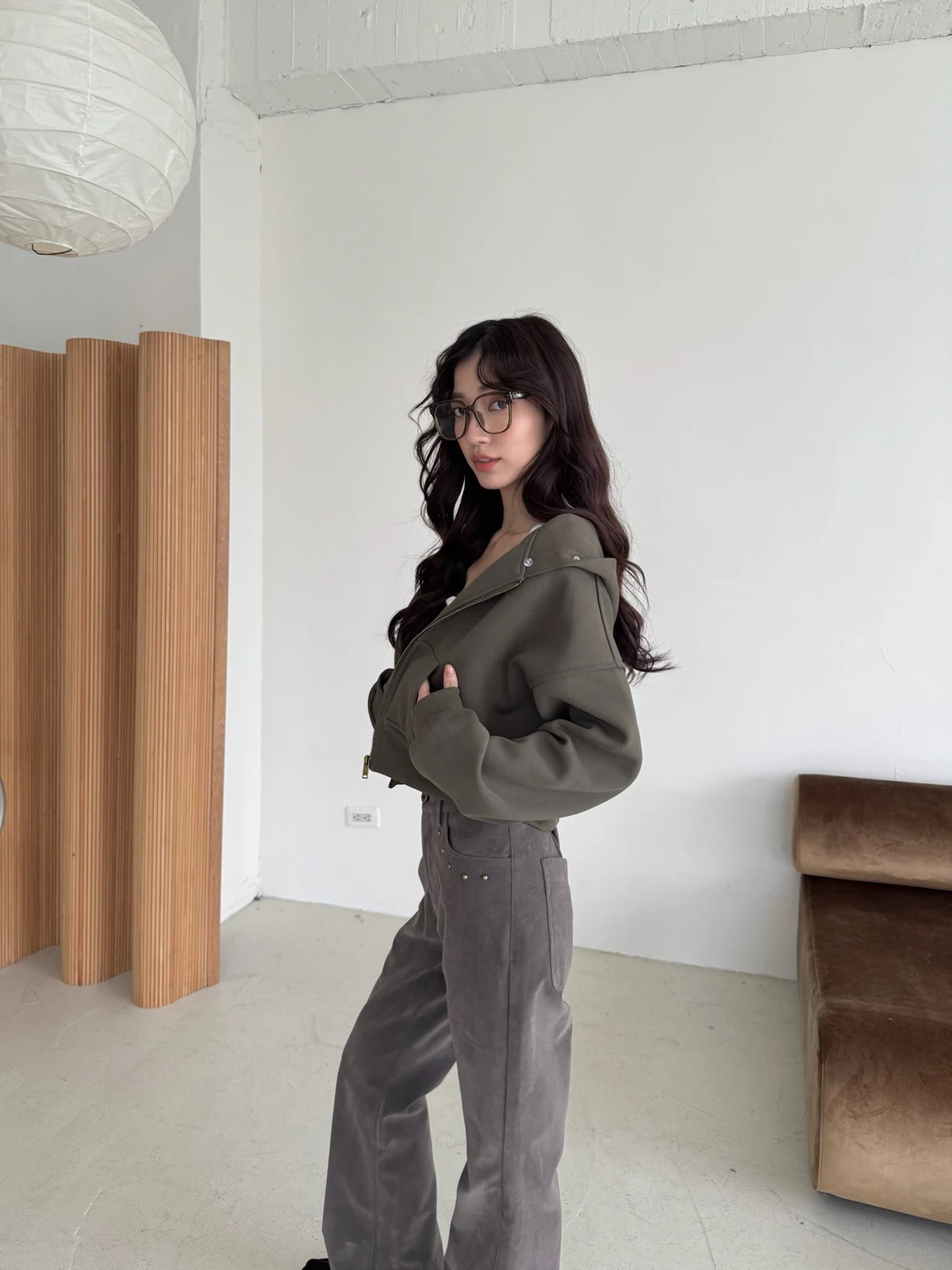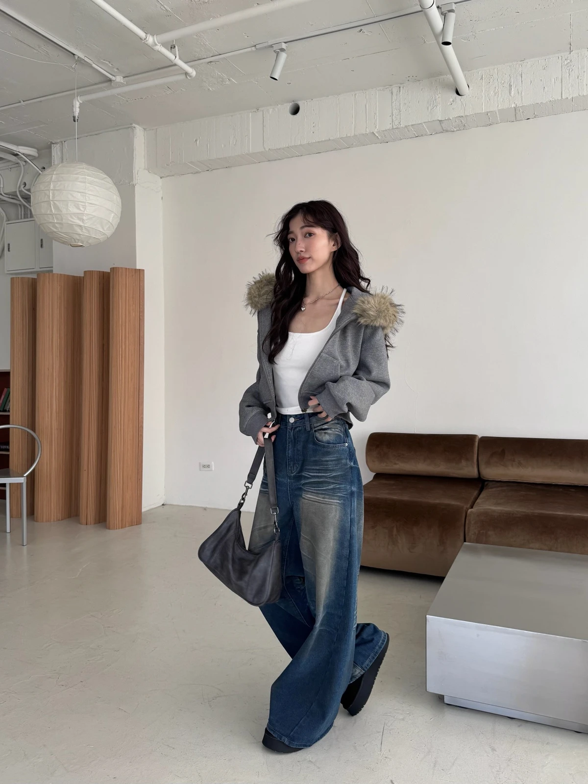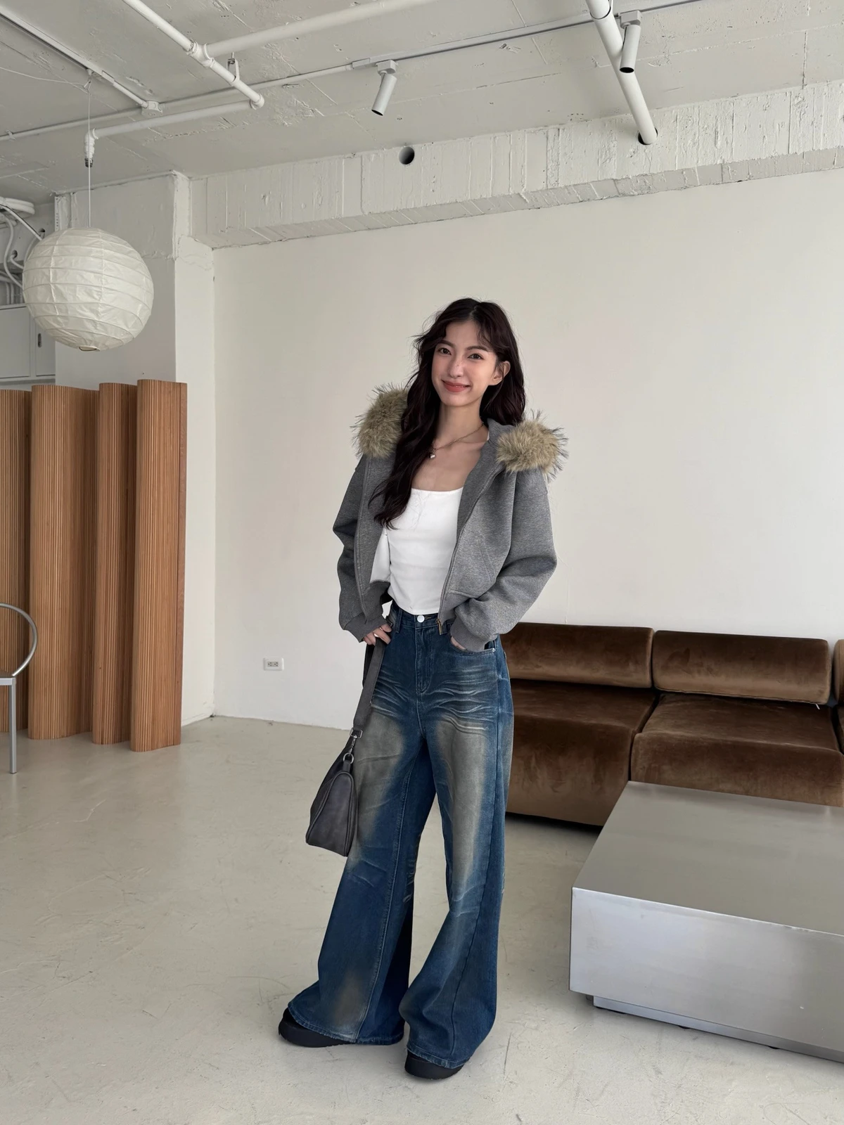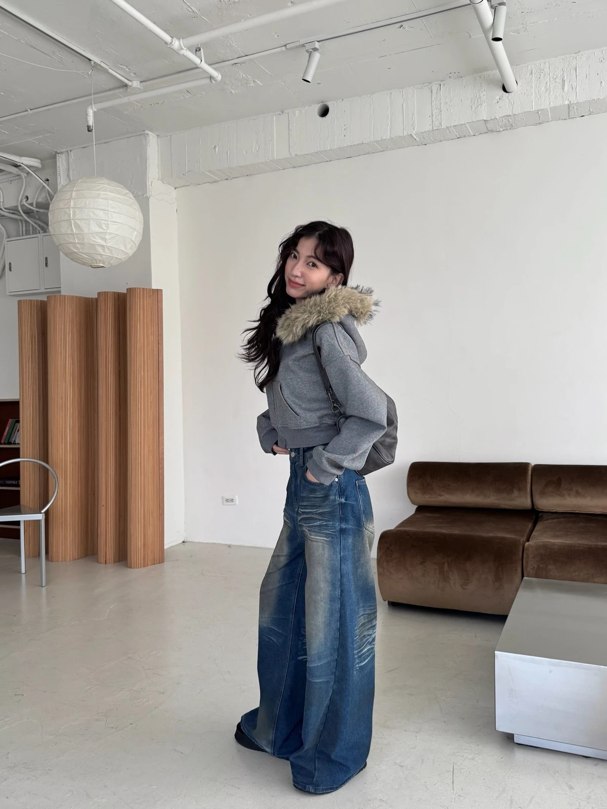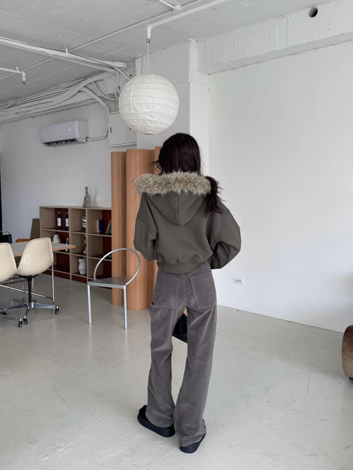 可拆式毛毛帽內磨毛拉鍊短版外套/2colors