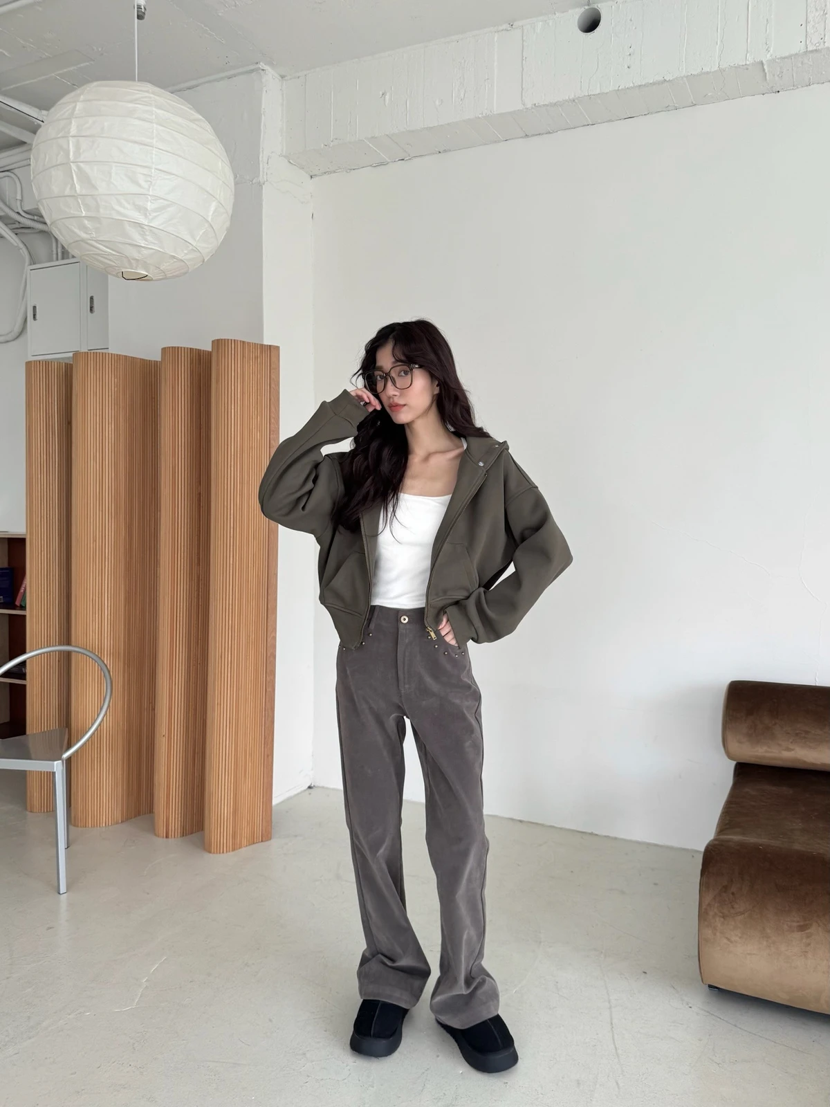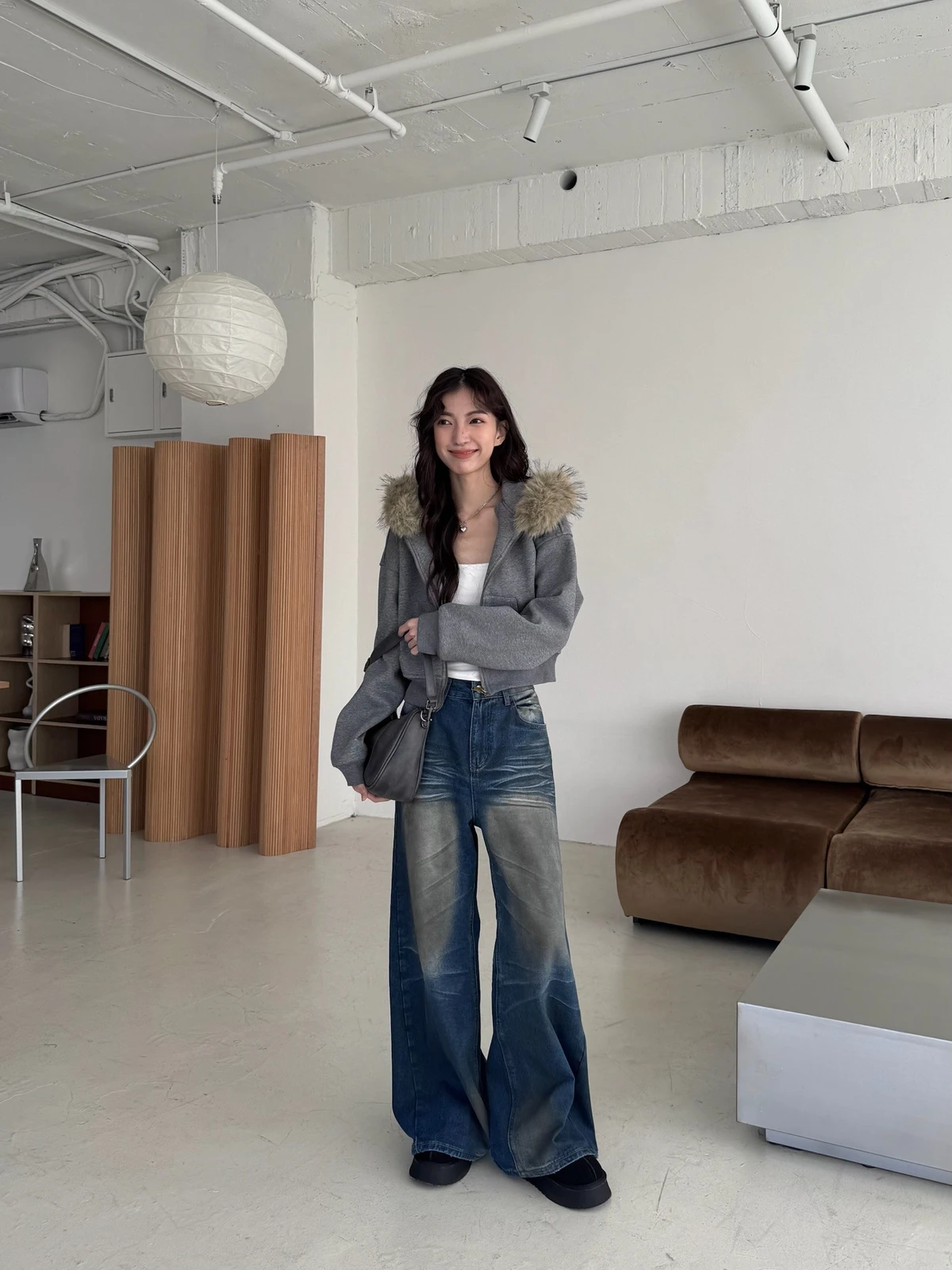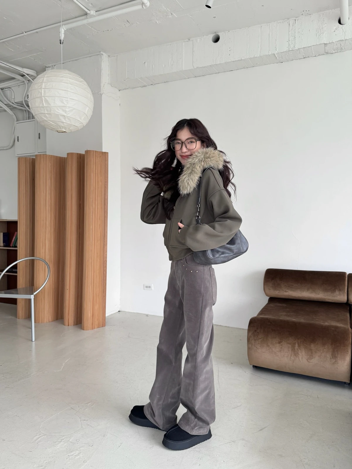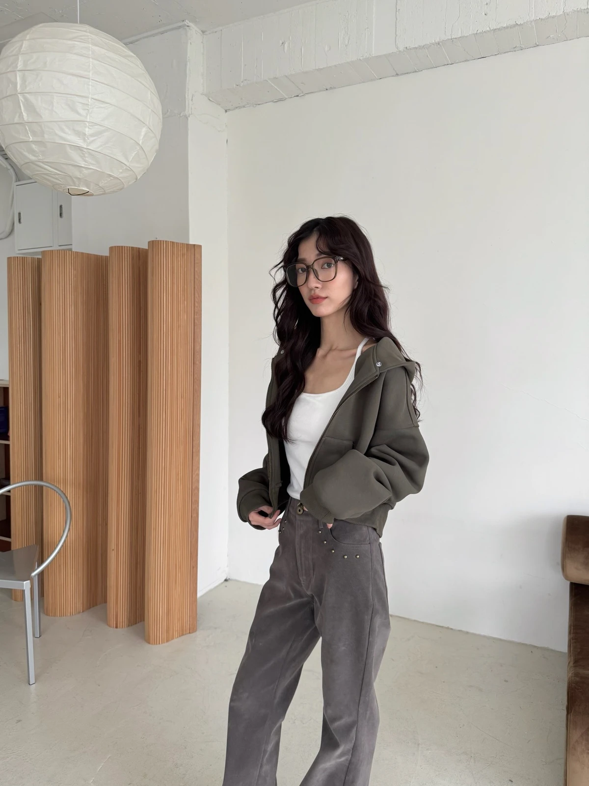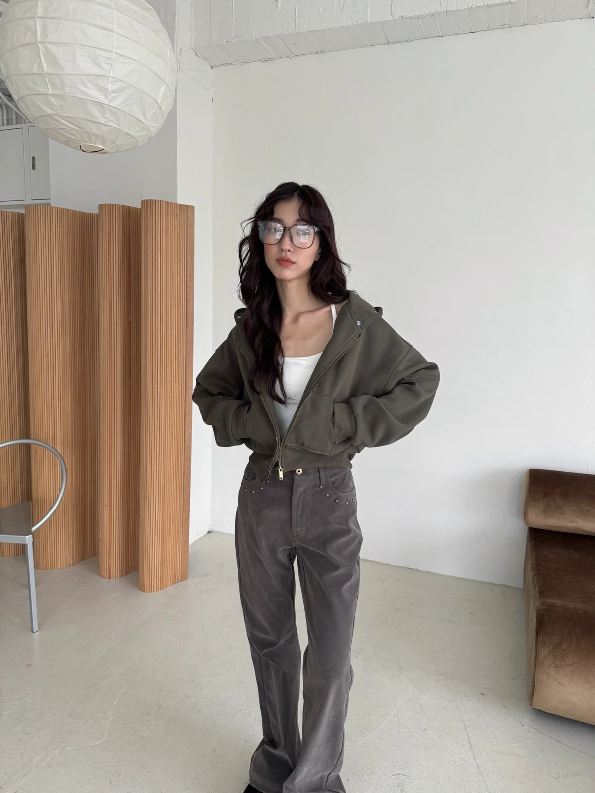 可拆式毛毛帽內磨毛拉鍊短版外套/2colors