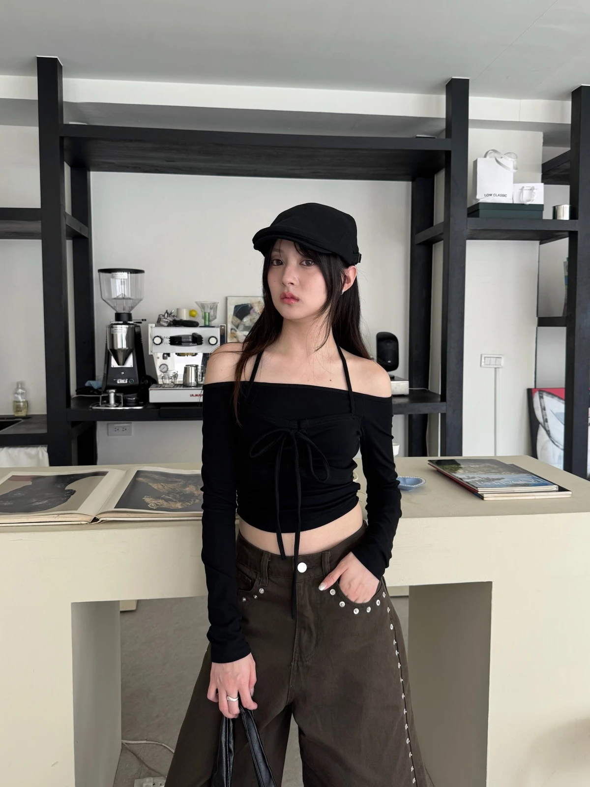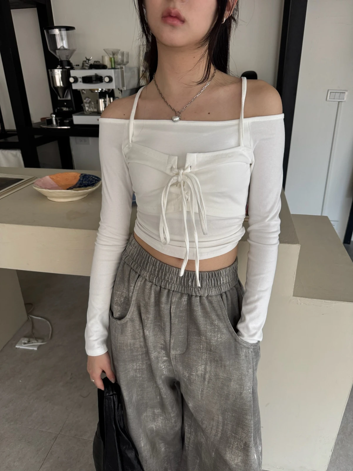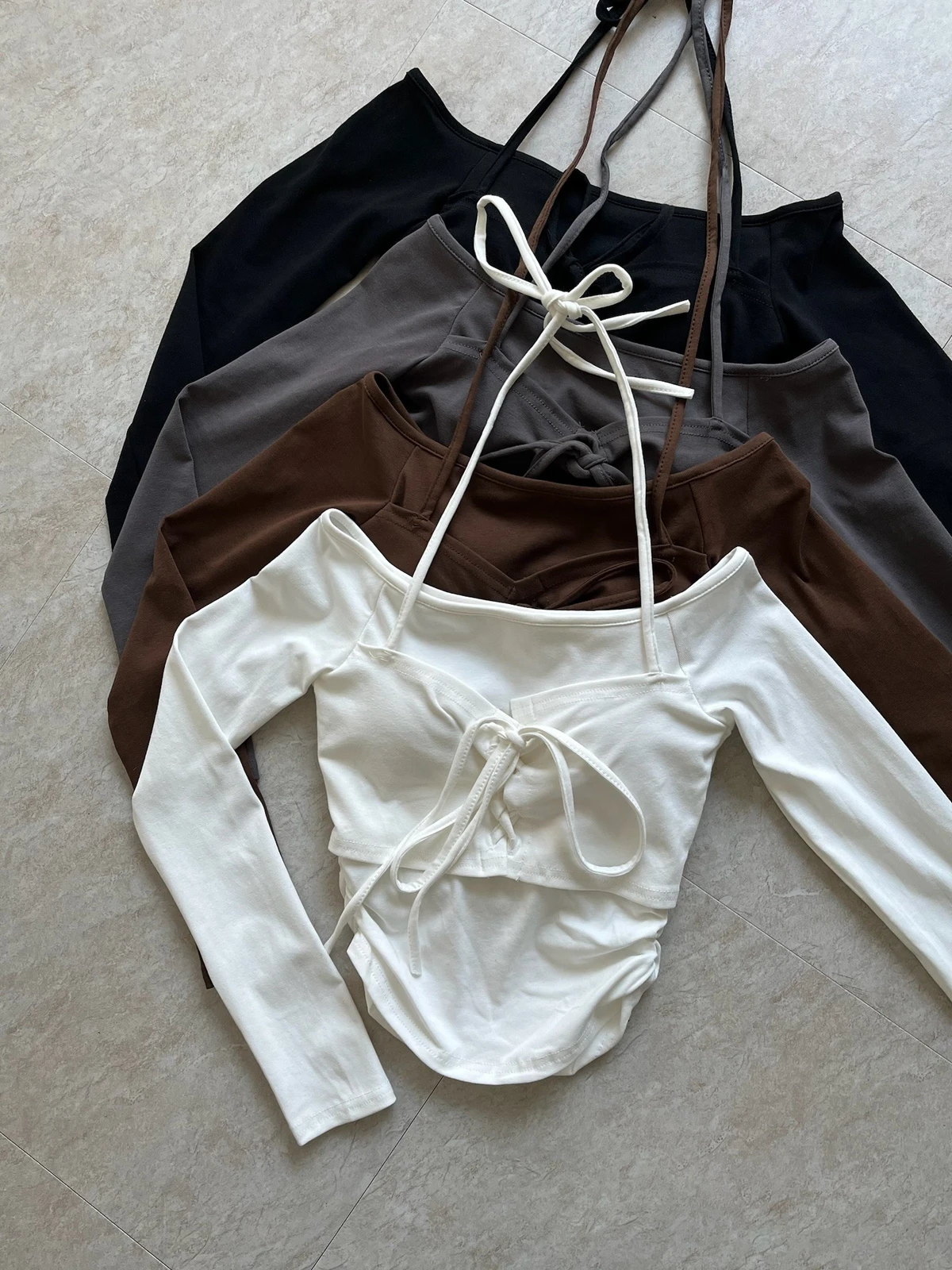 推薦!假兩件繞脖蝴蝶結綁帶Bra上衣/4colors