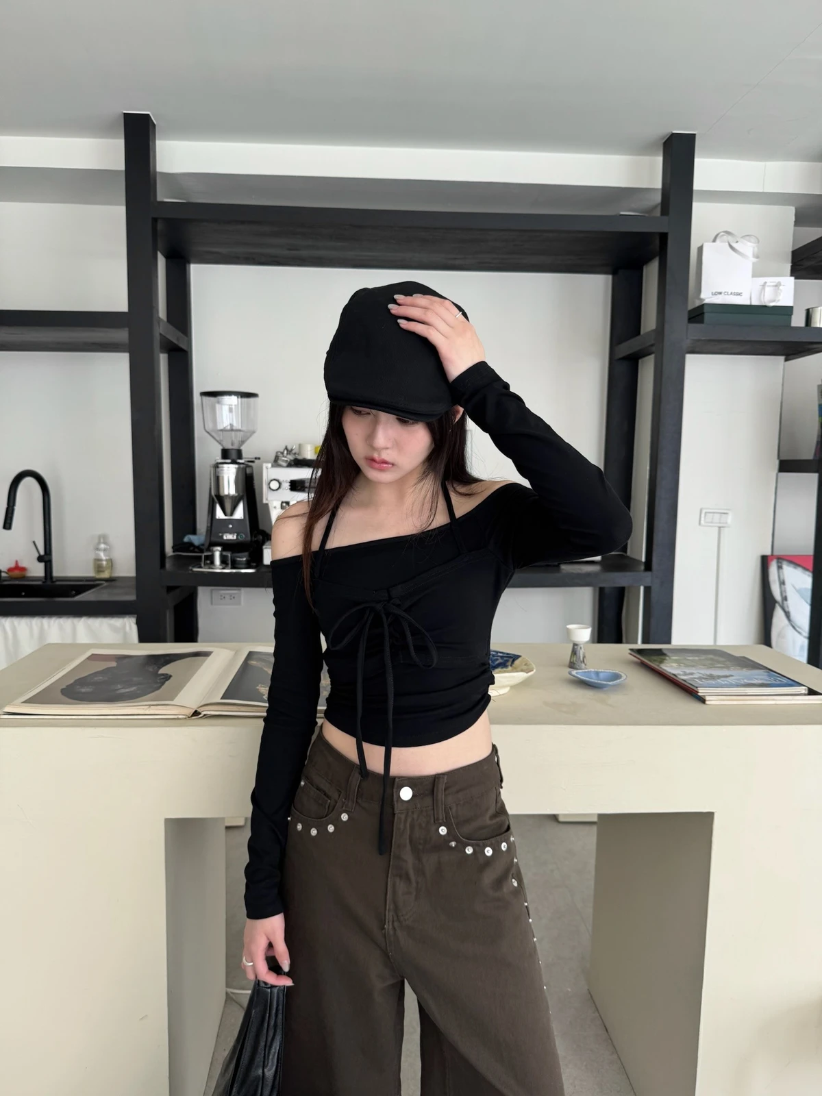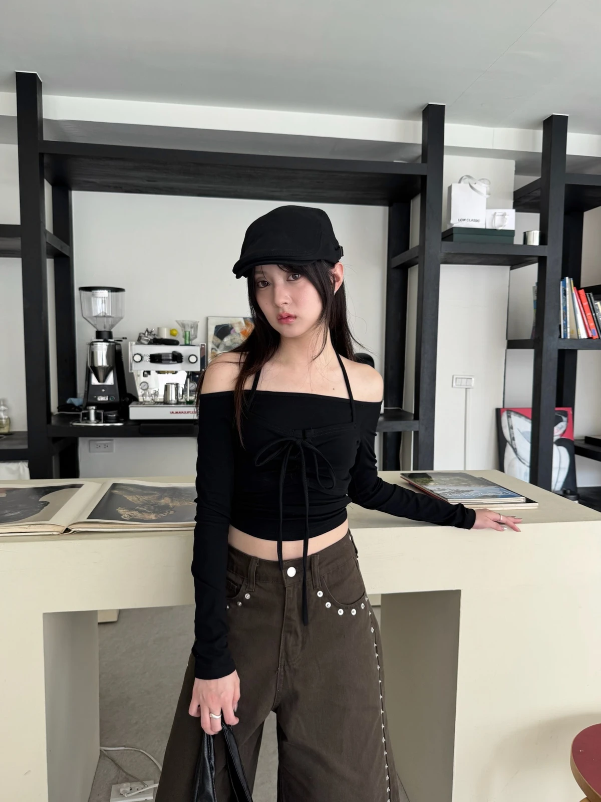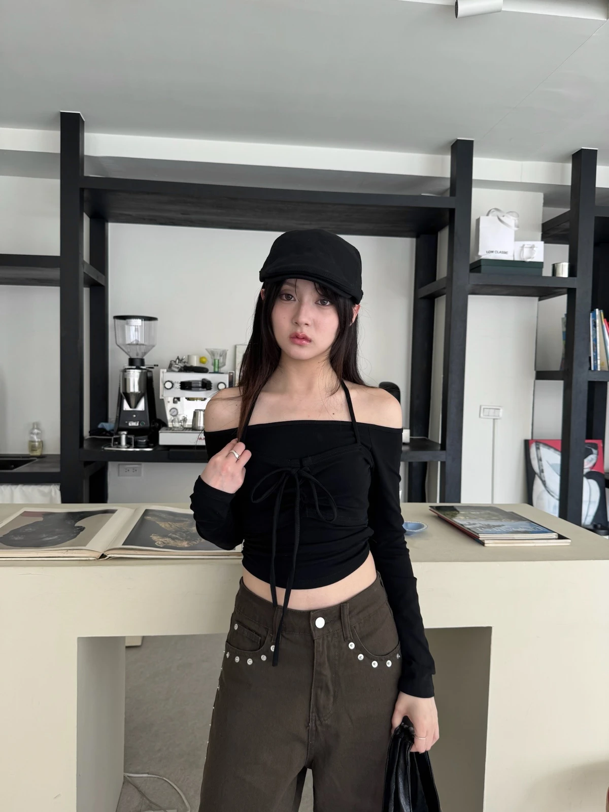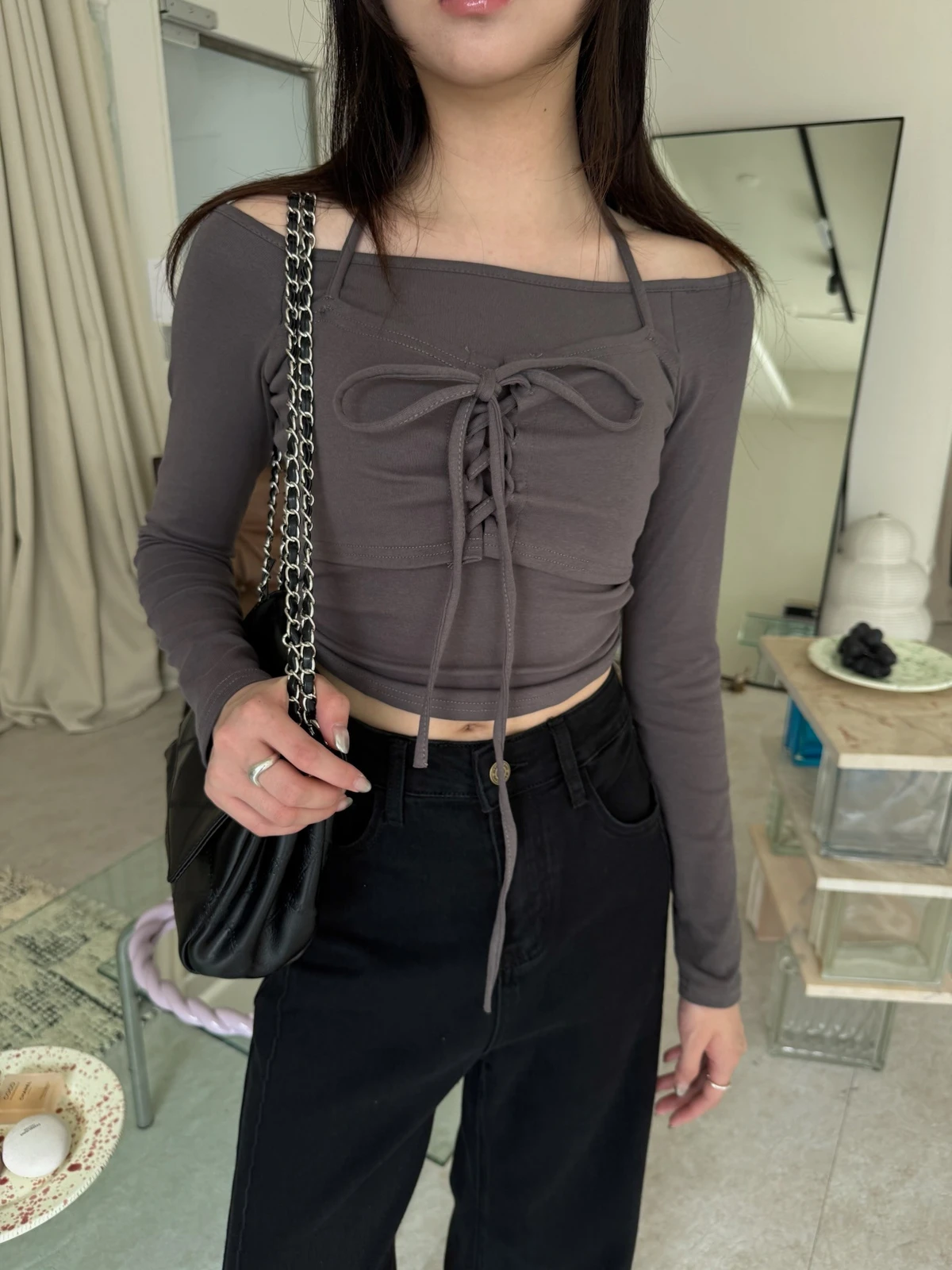 推薦!假兩件繞脖蝴蝶結綁帶Bra上衣/4colors