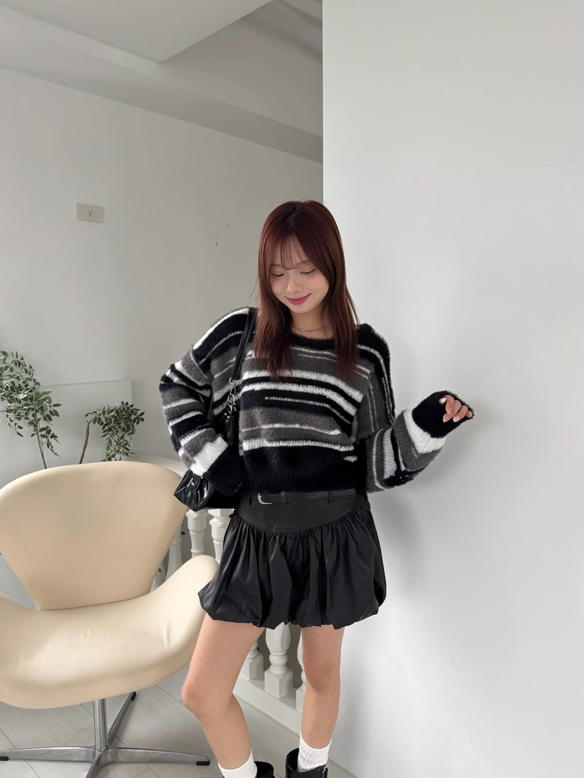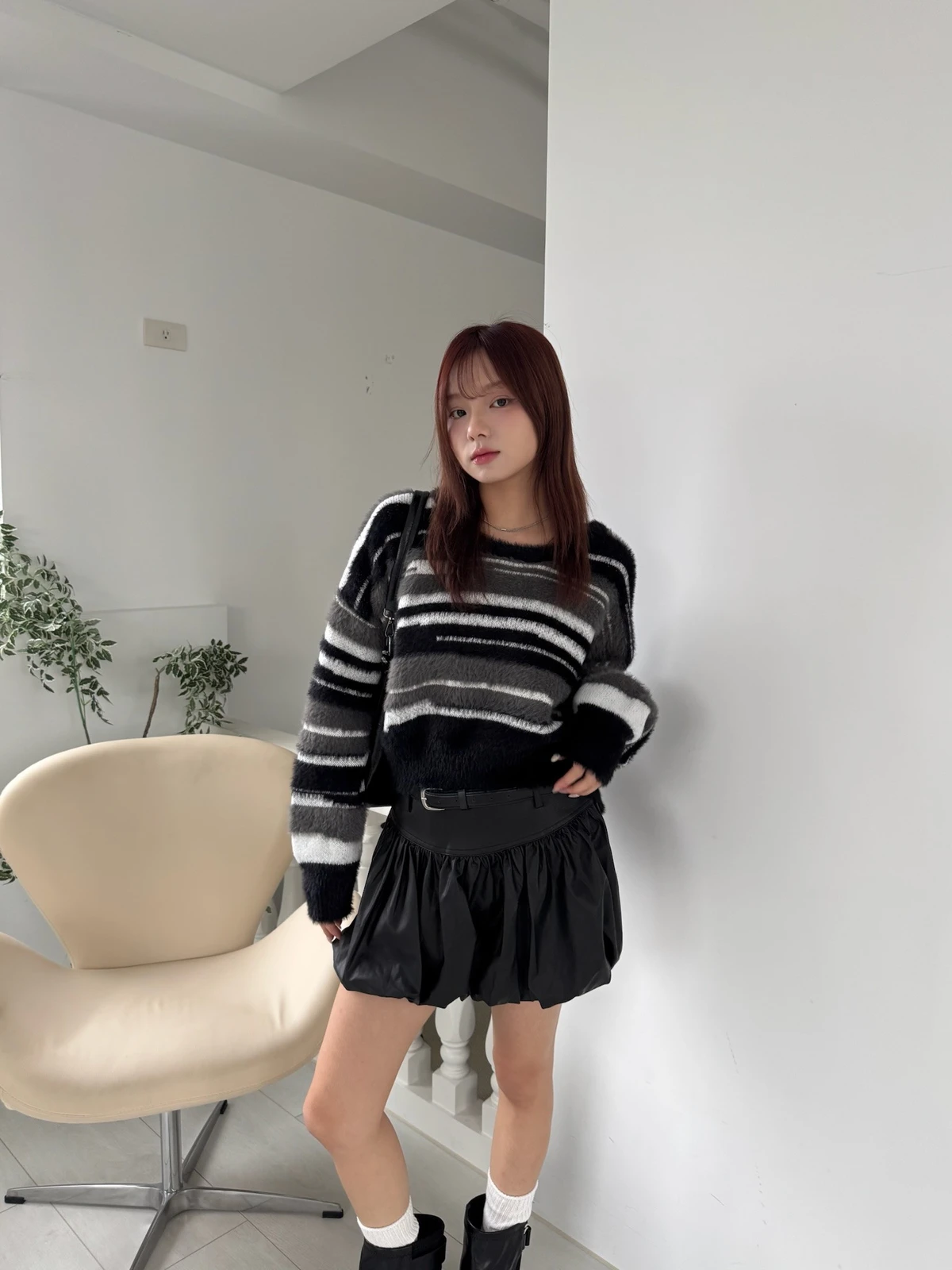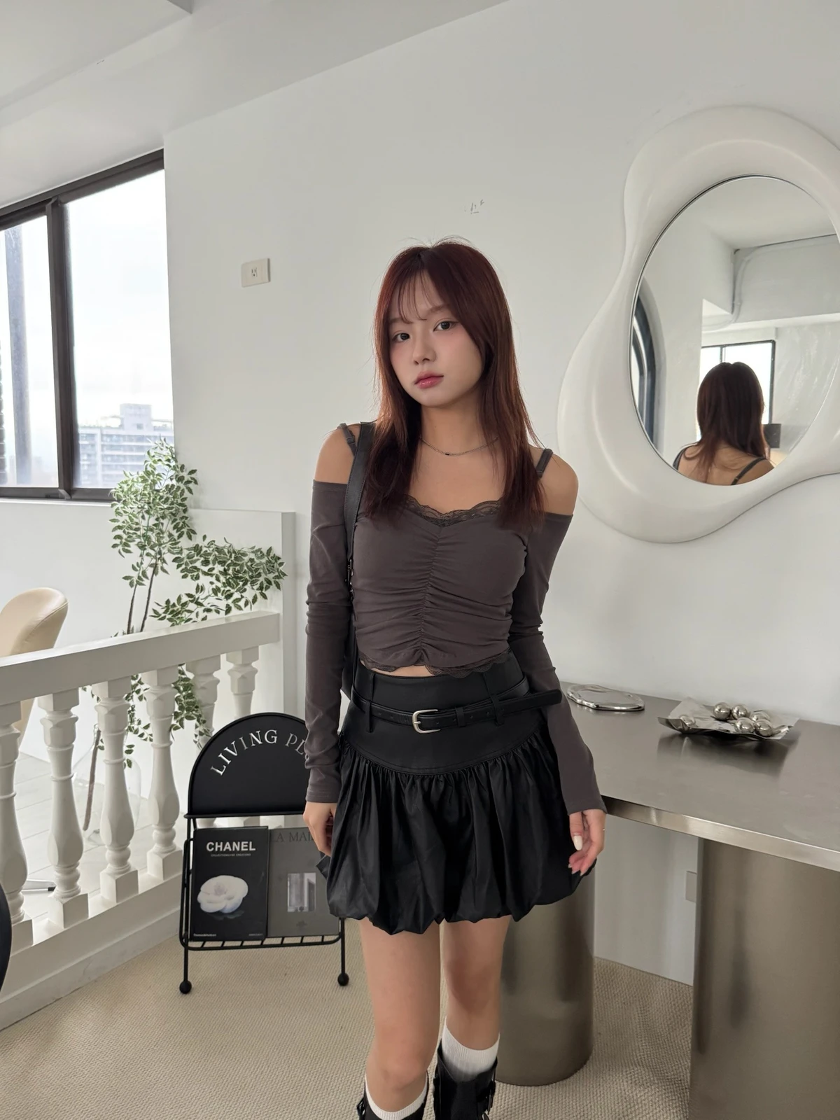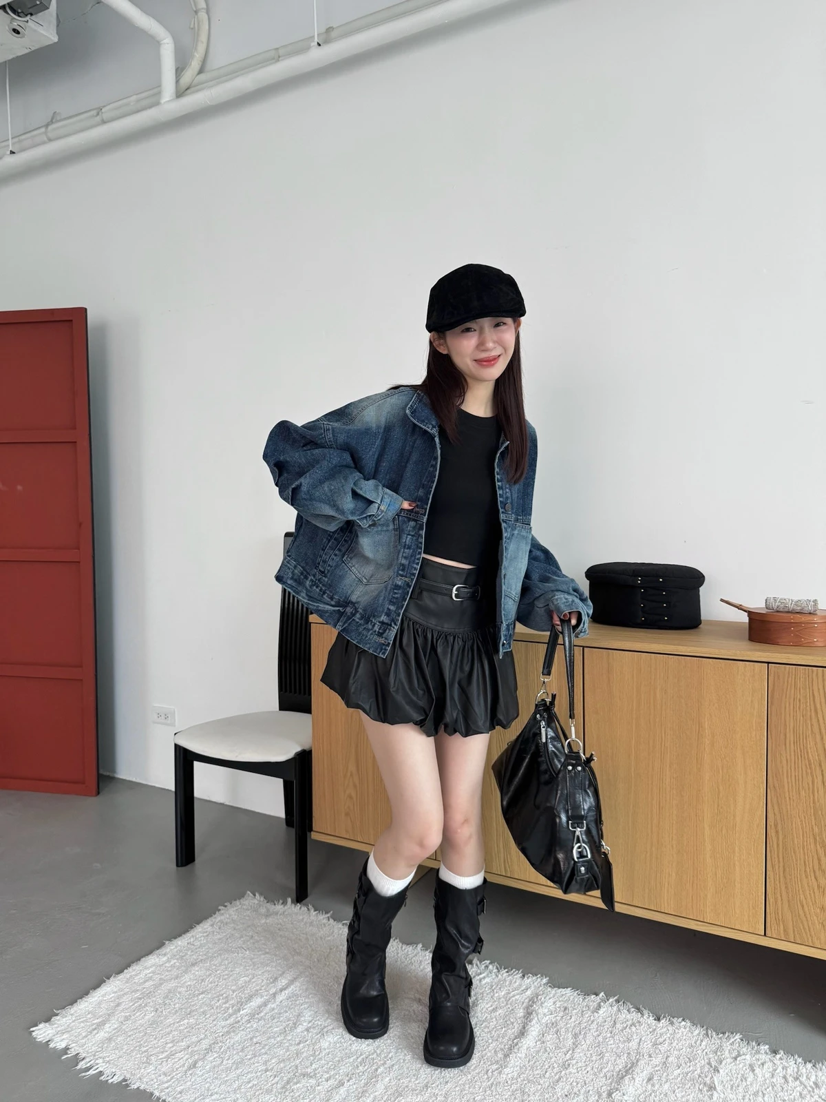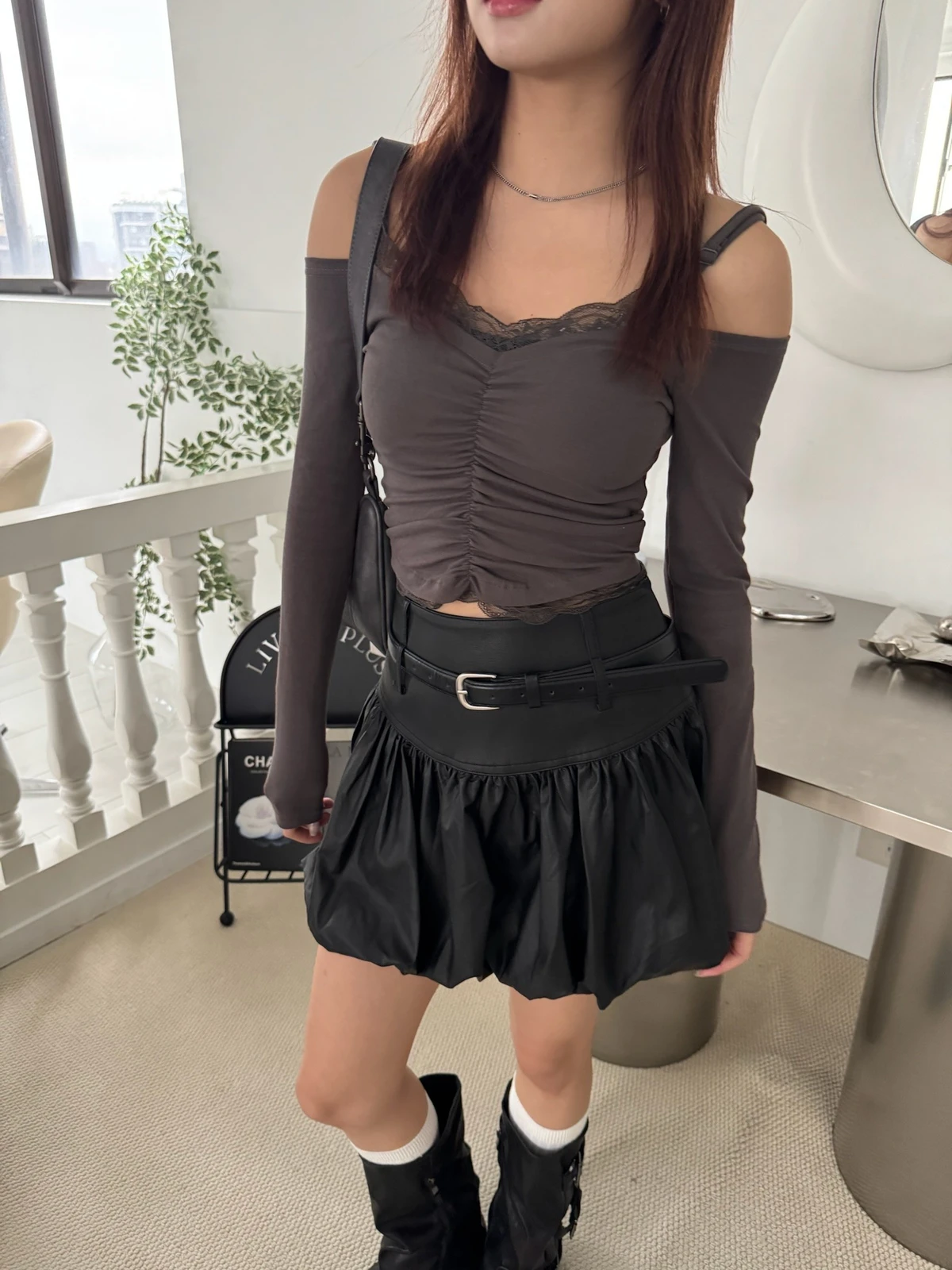 霧感皮革花苞短褲裙-附皮帶/2colors