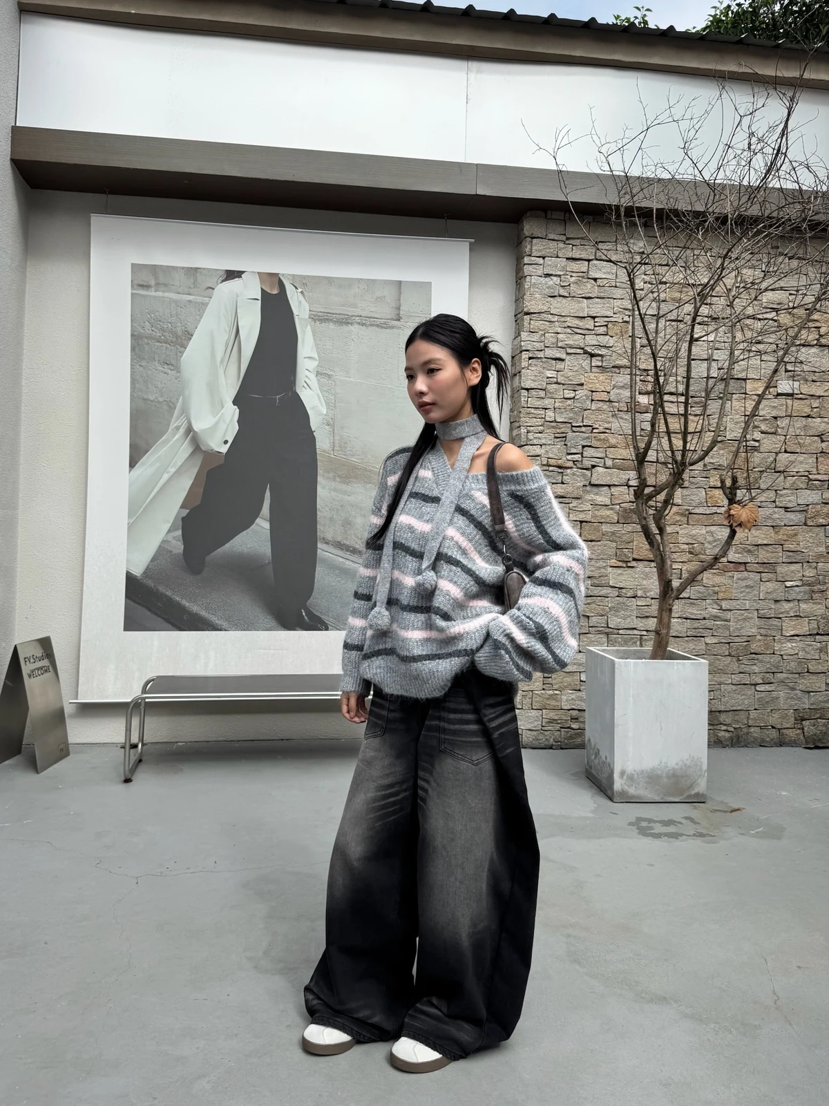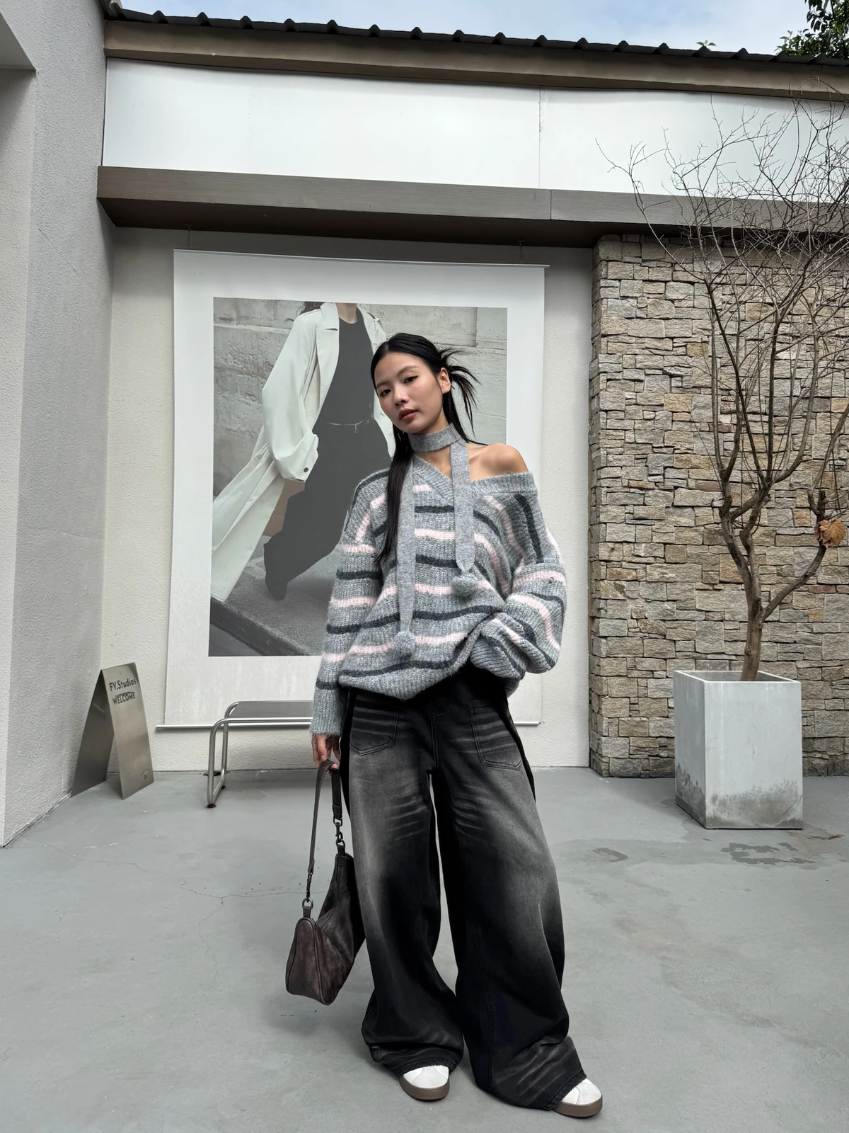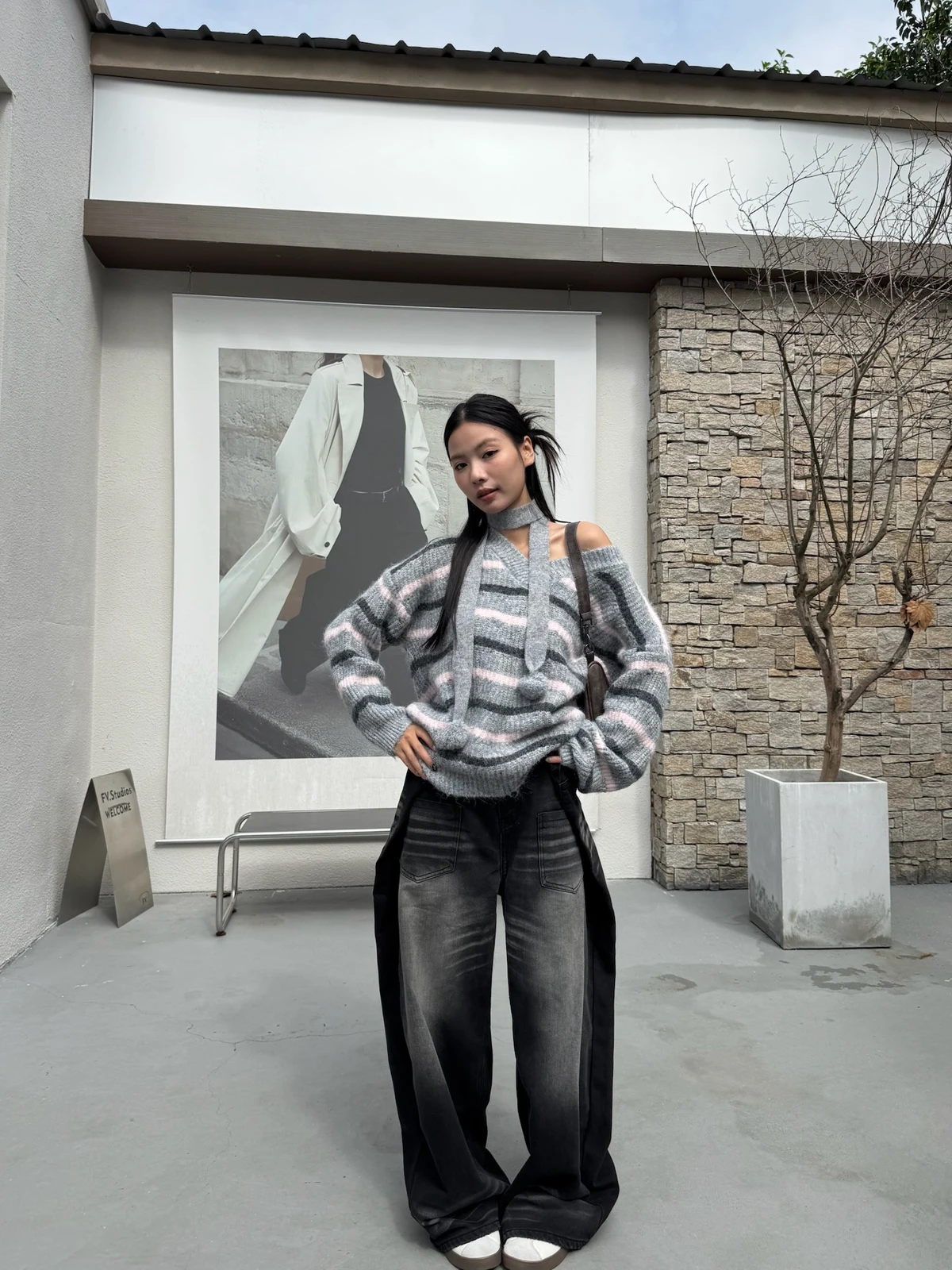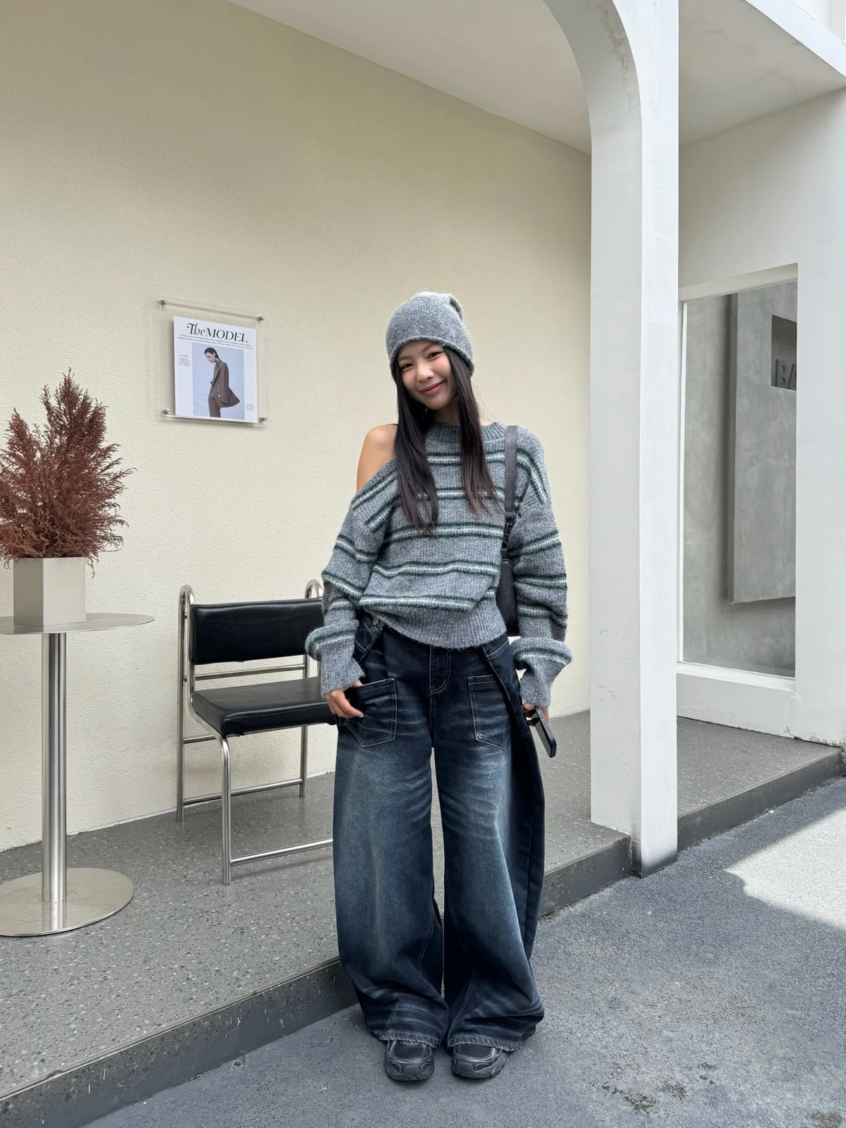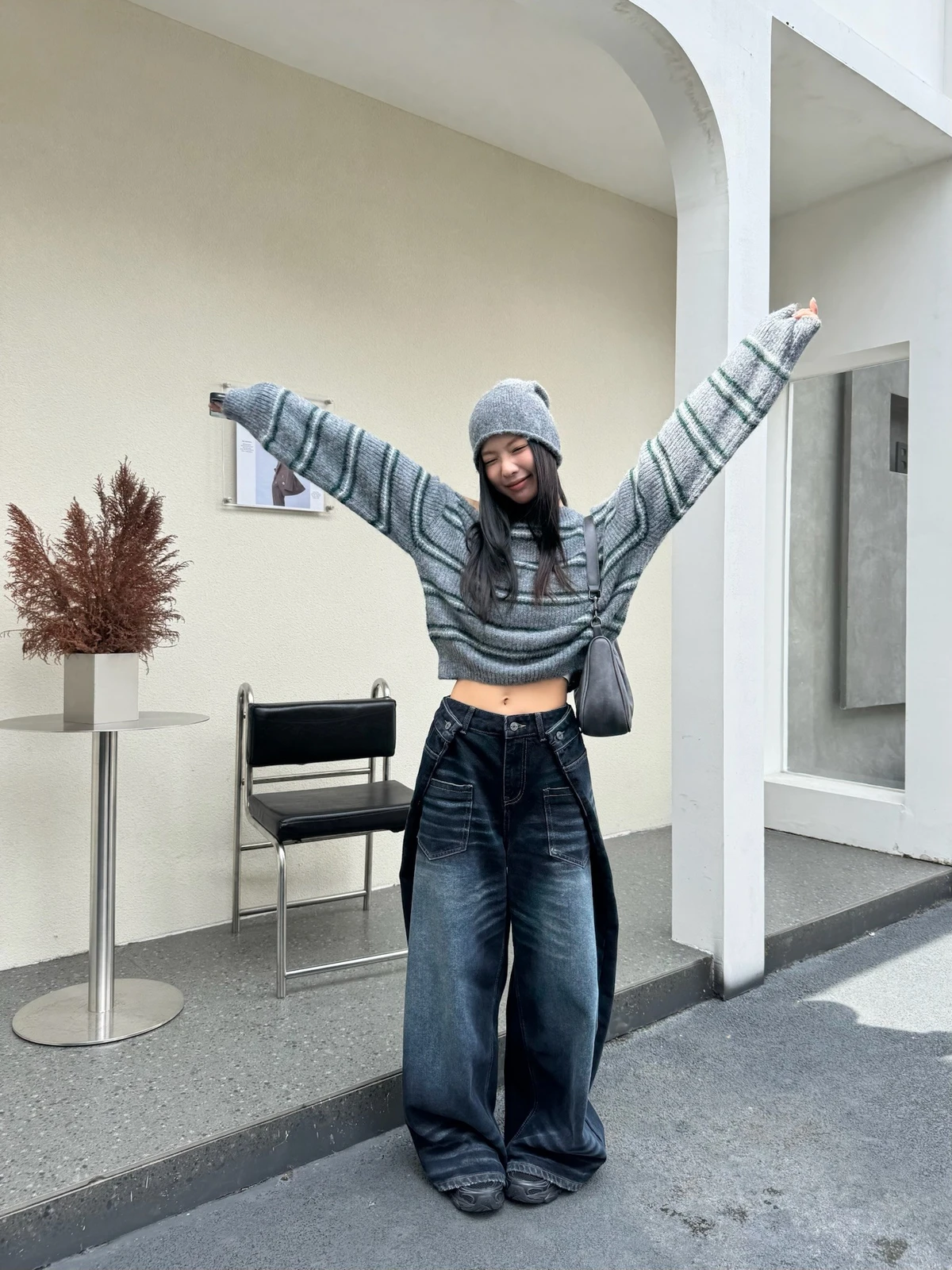 疊腰兩穿寬鬆彎刀牛仔長褲/2colors