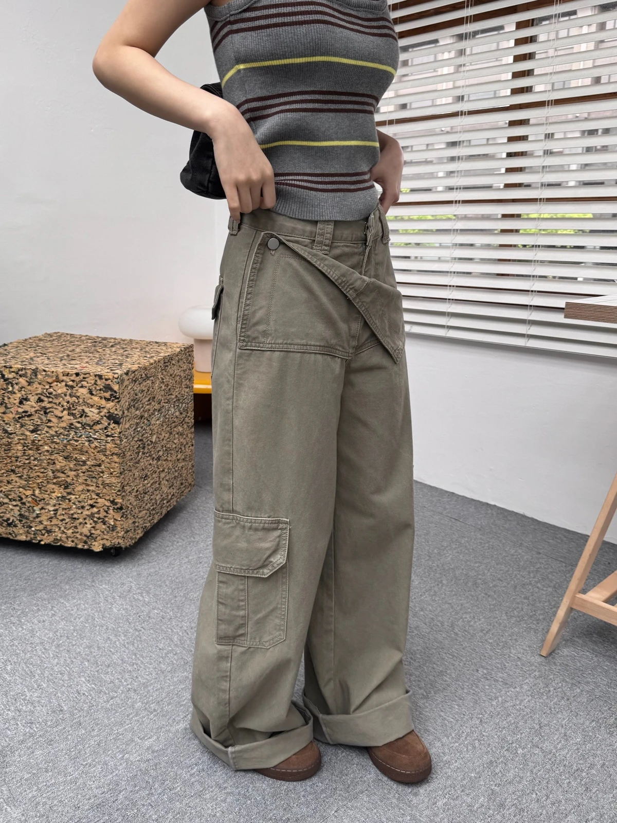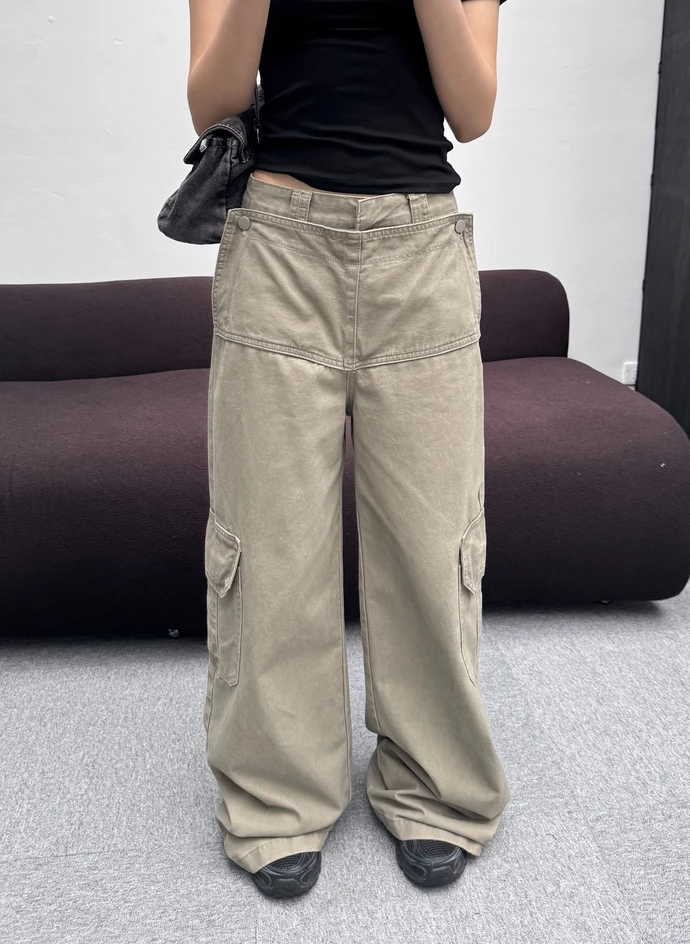 本期推薦!兩穿造型翻領水洗落地長褲
