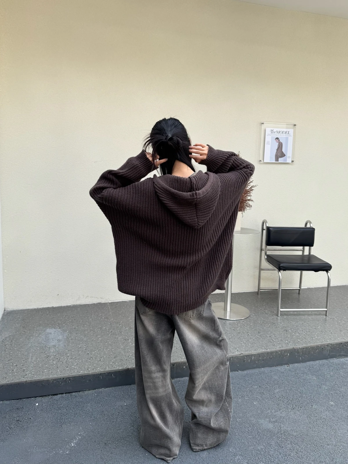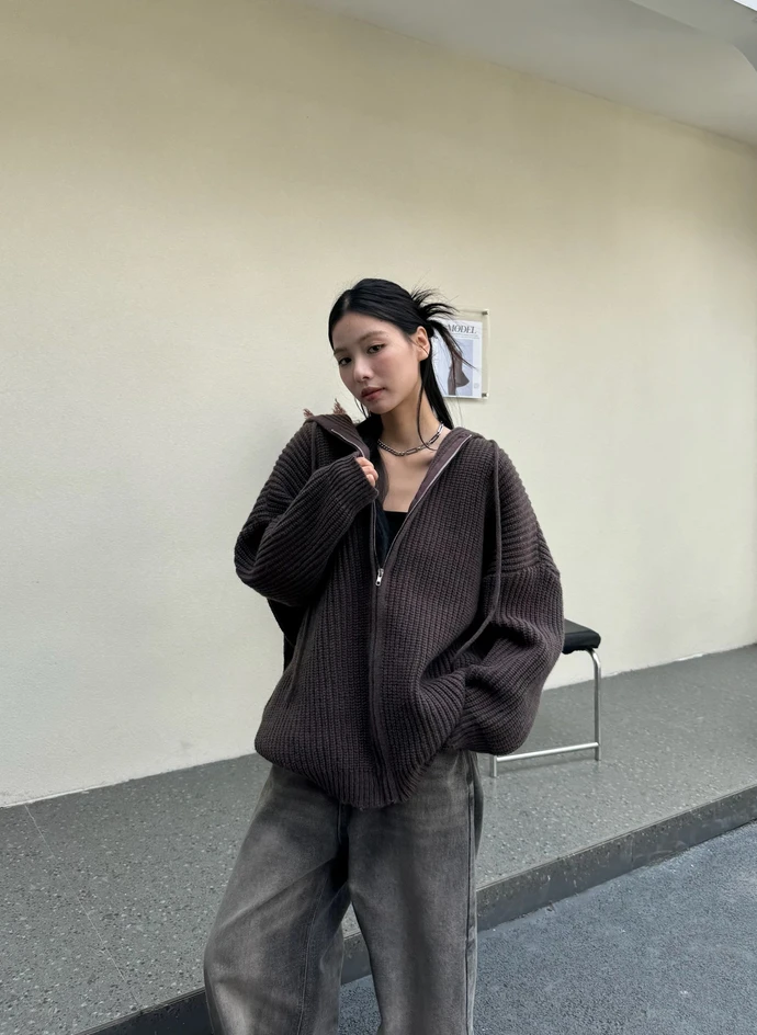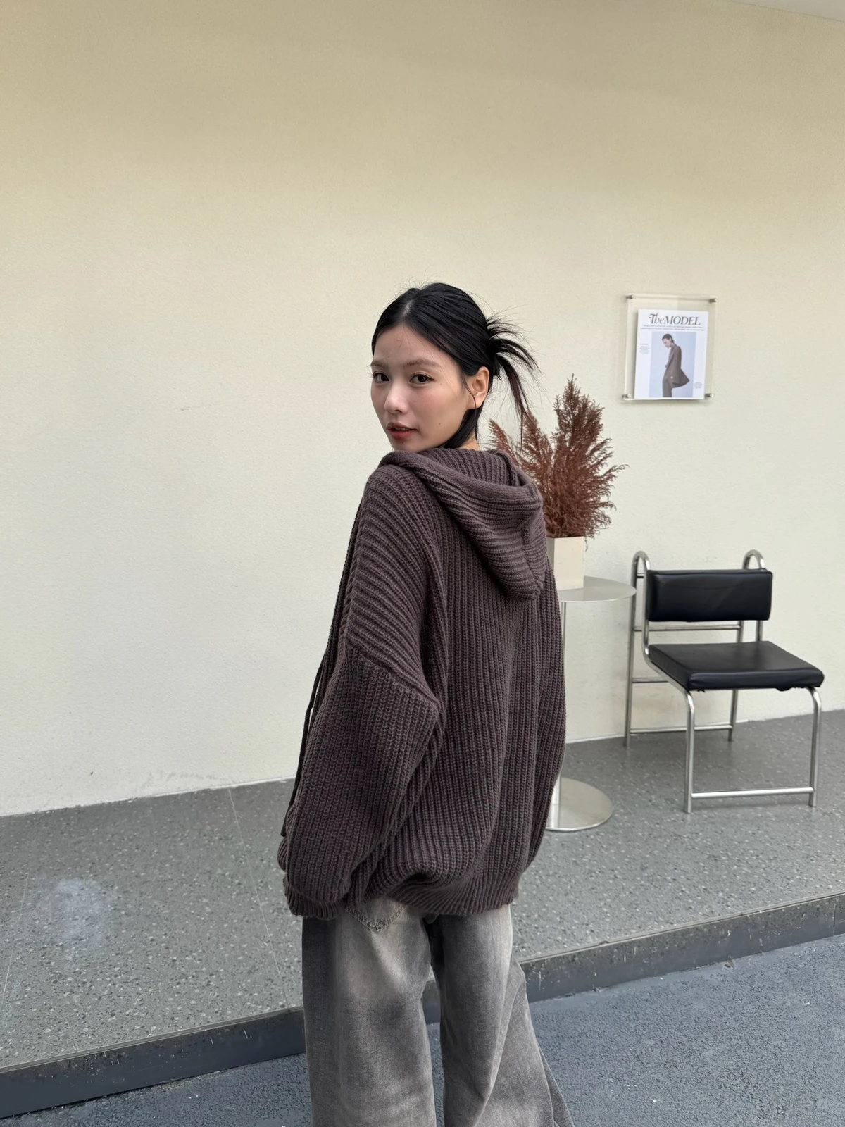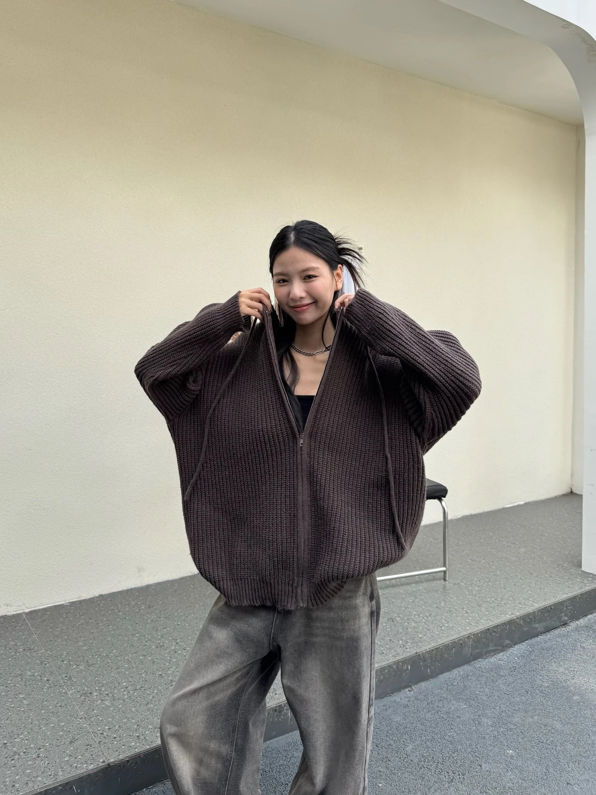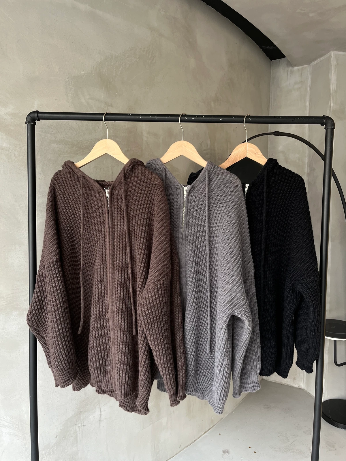 推薦!韓劇主角慵懶針織帶帽拉鏈外套/3colors