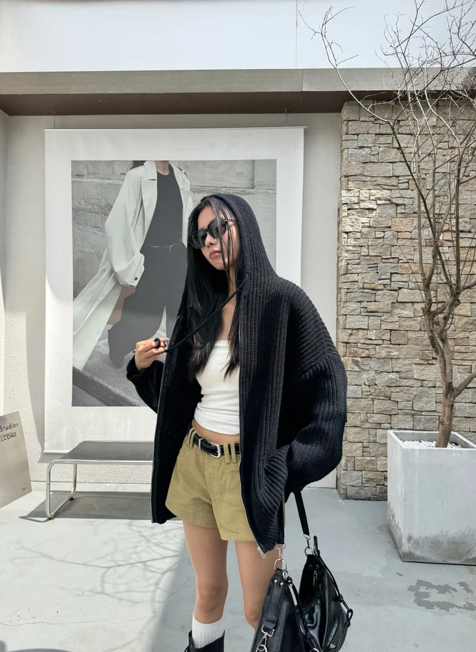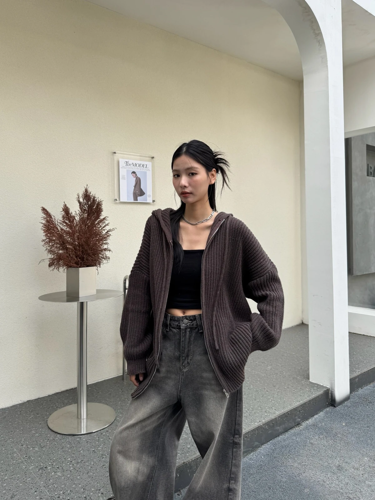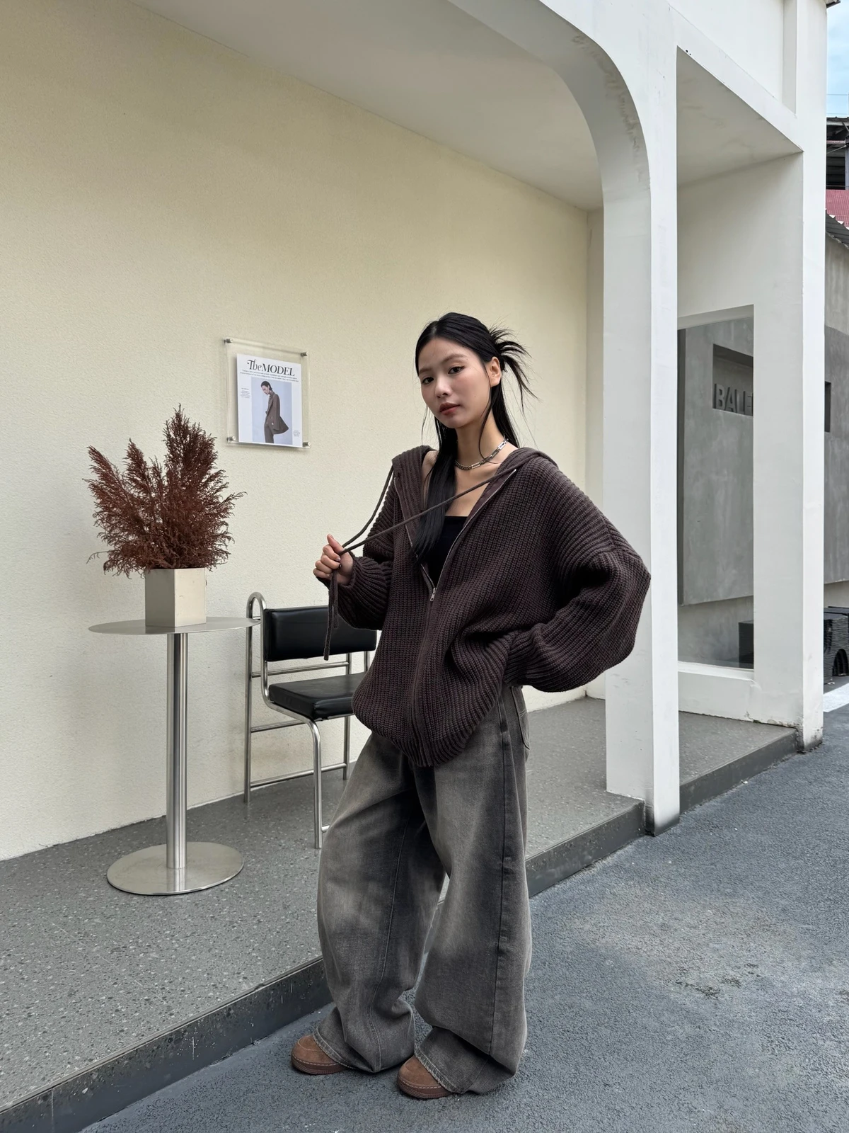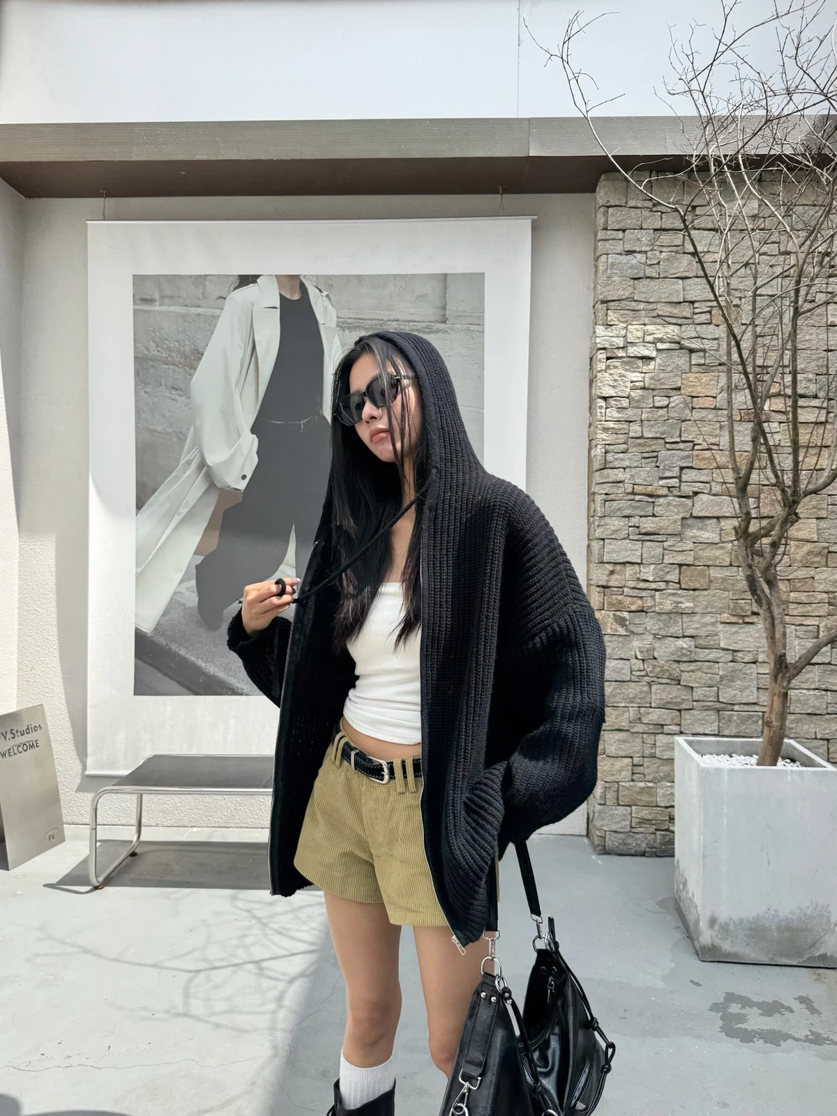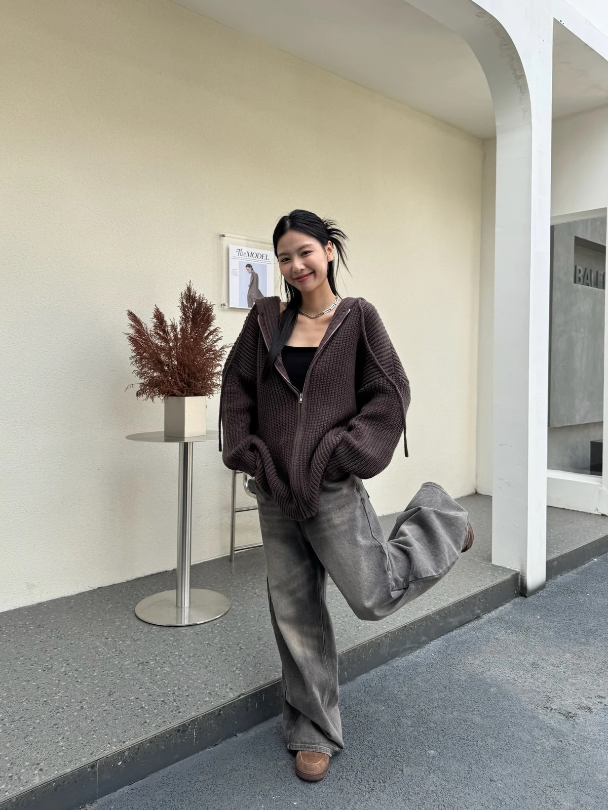 推薦!韓劇主角慵懶針織帶帽拉鏈外套/3colors