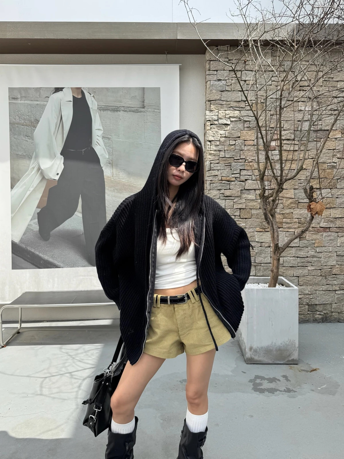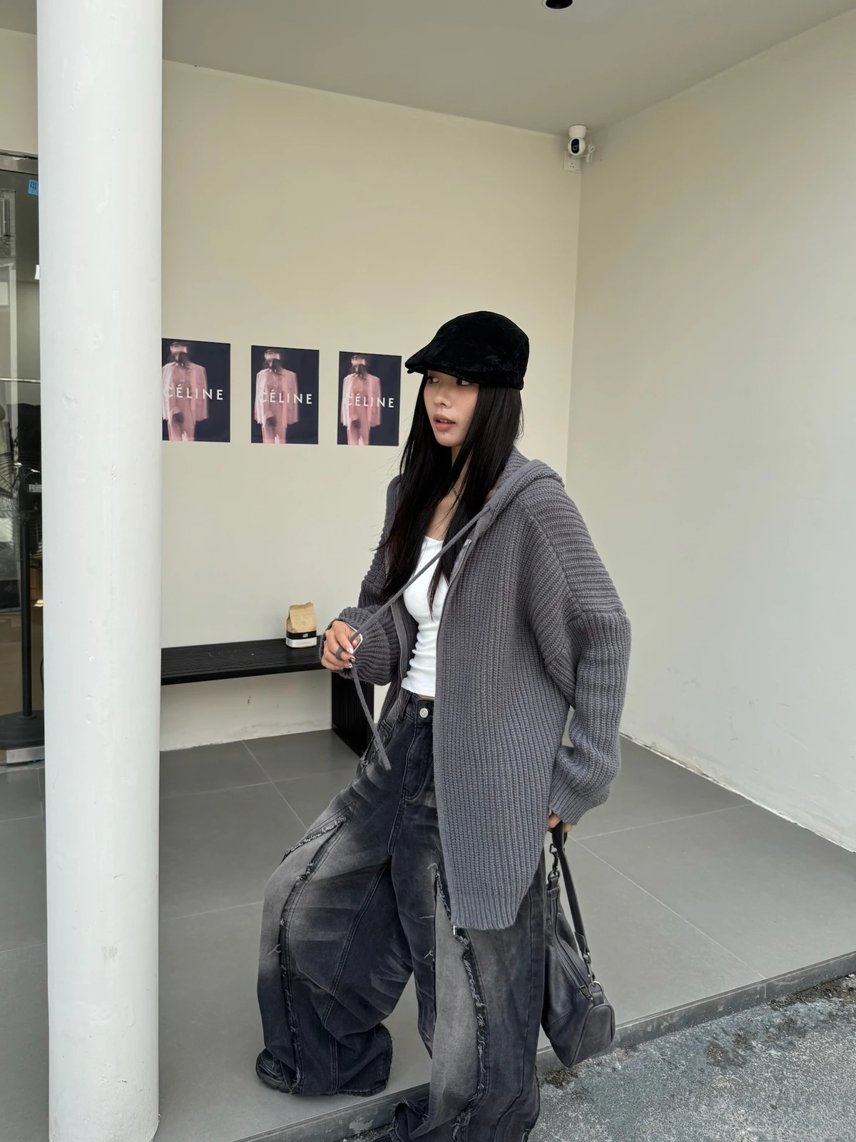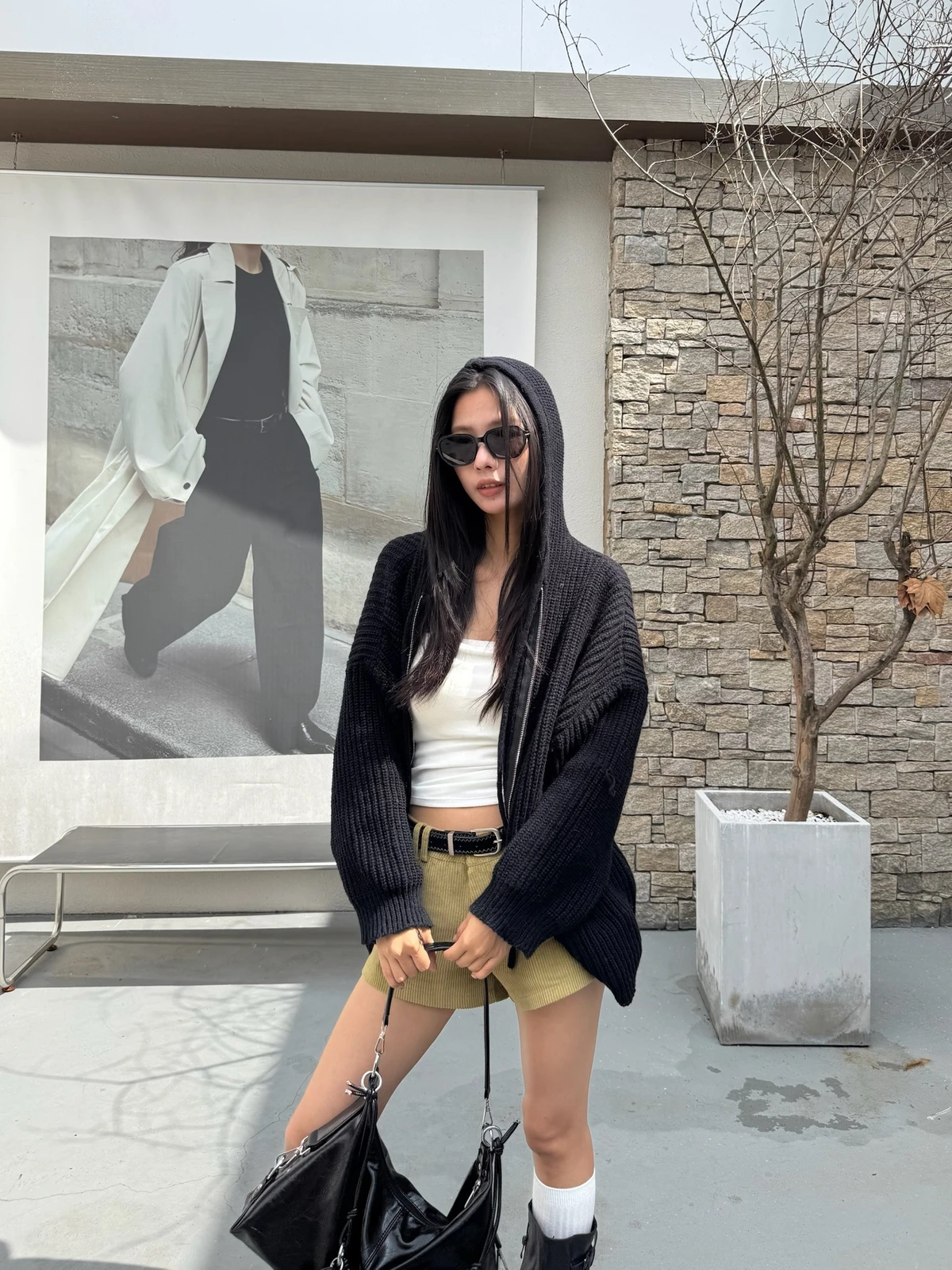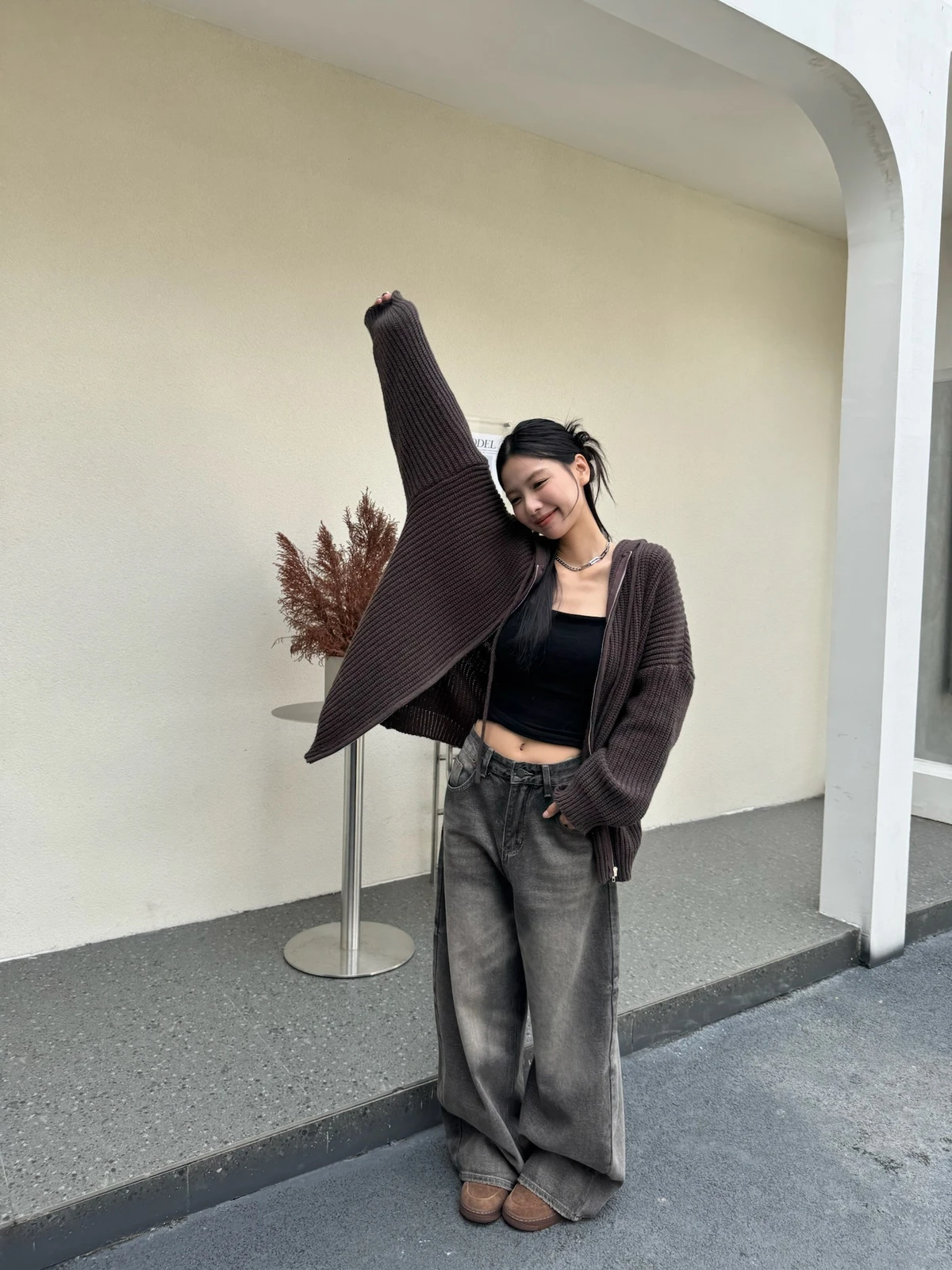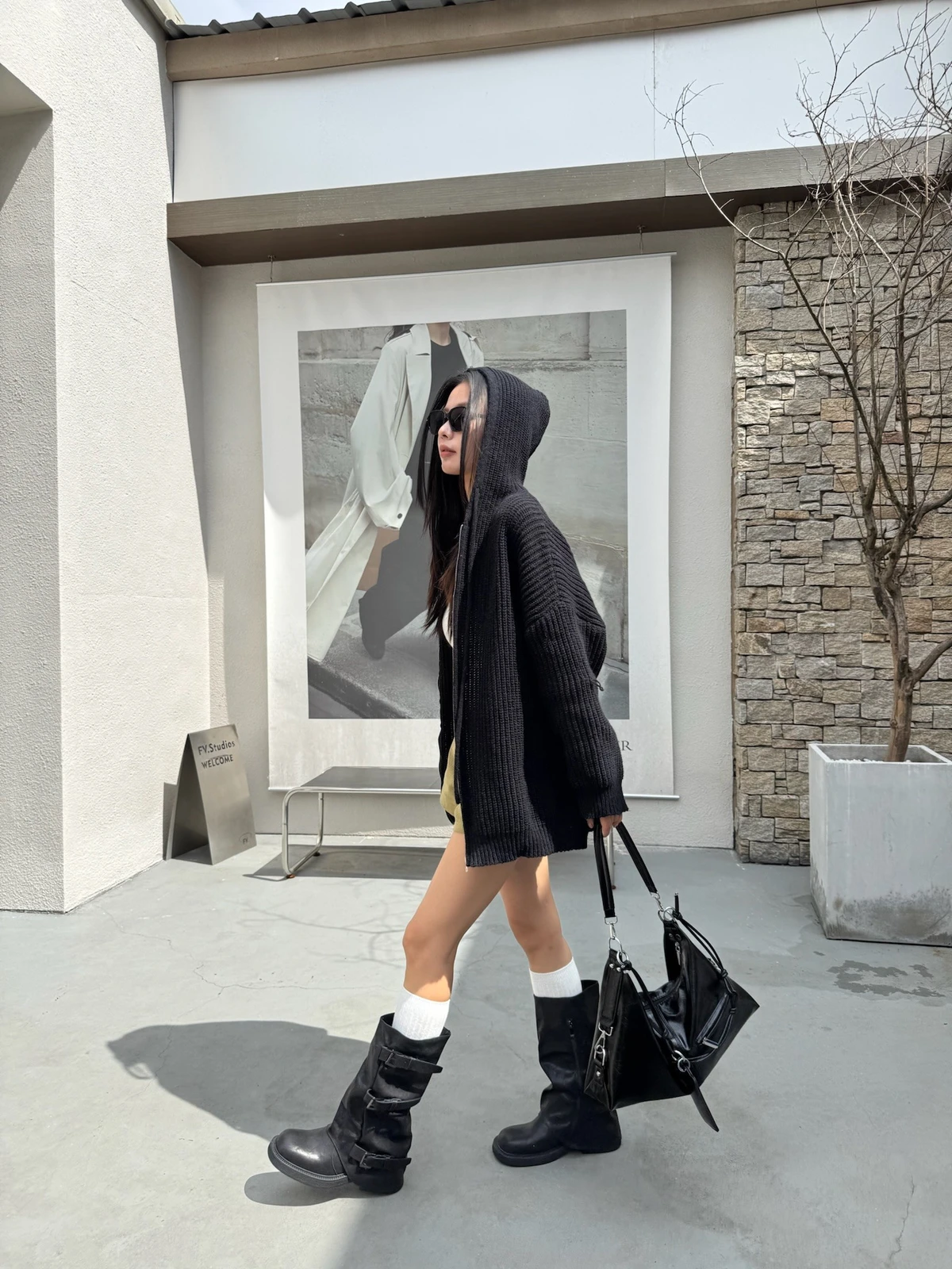 推薦!韓劇主角慵懶針織帶帽拉鏈外套/3colors
