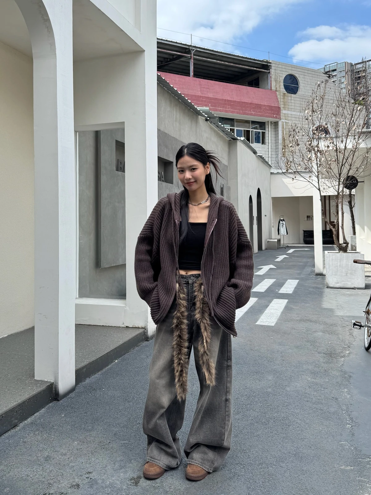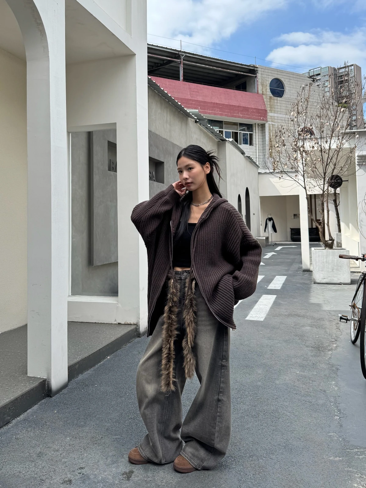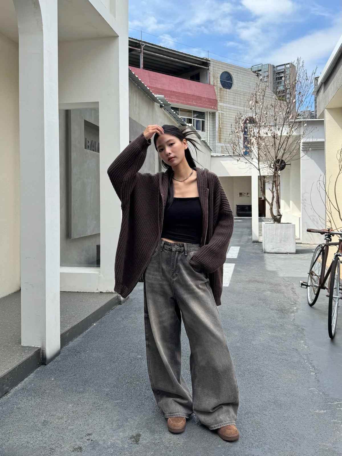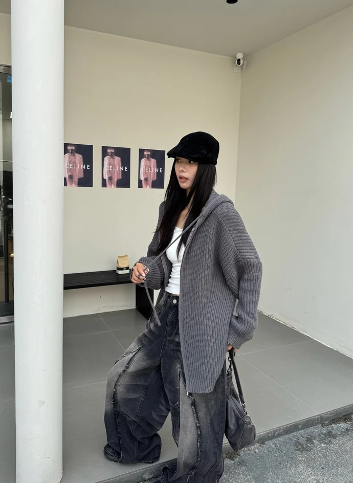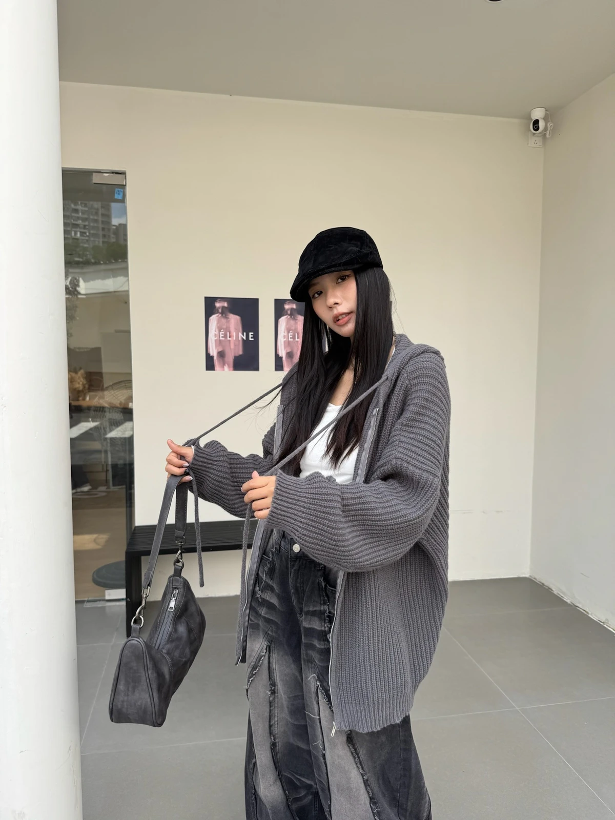 推薦!韓劇主角慵懶針織帶帽拉鏈外套/3colors