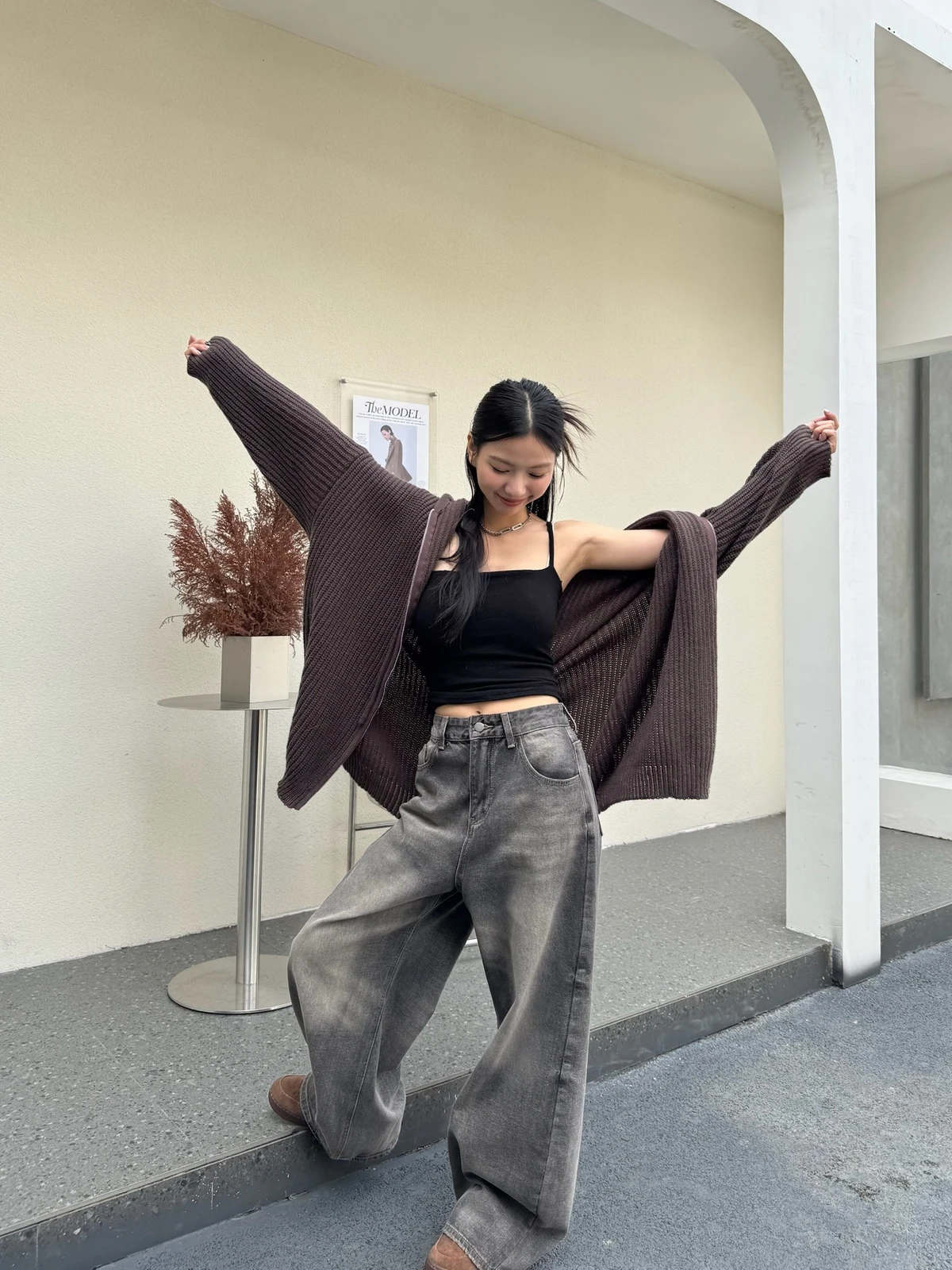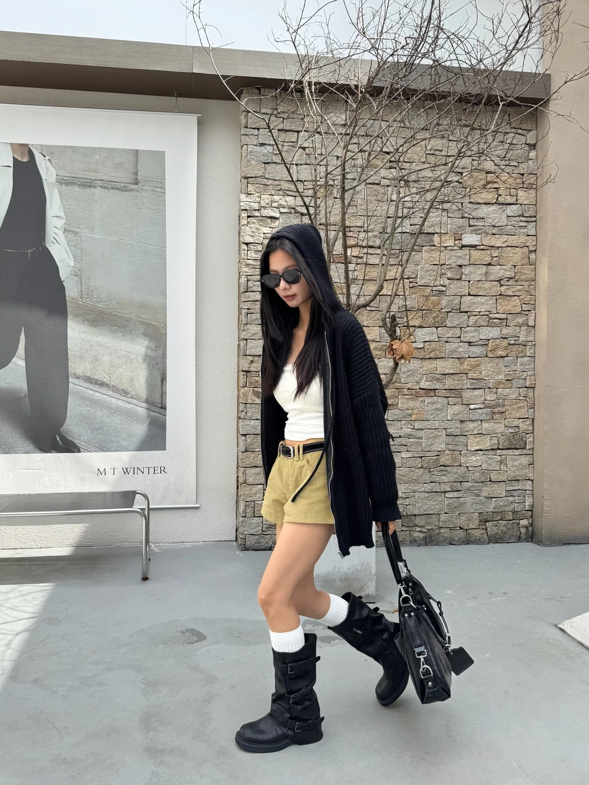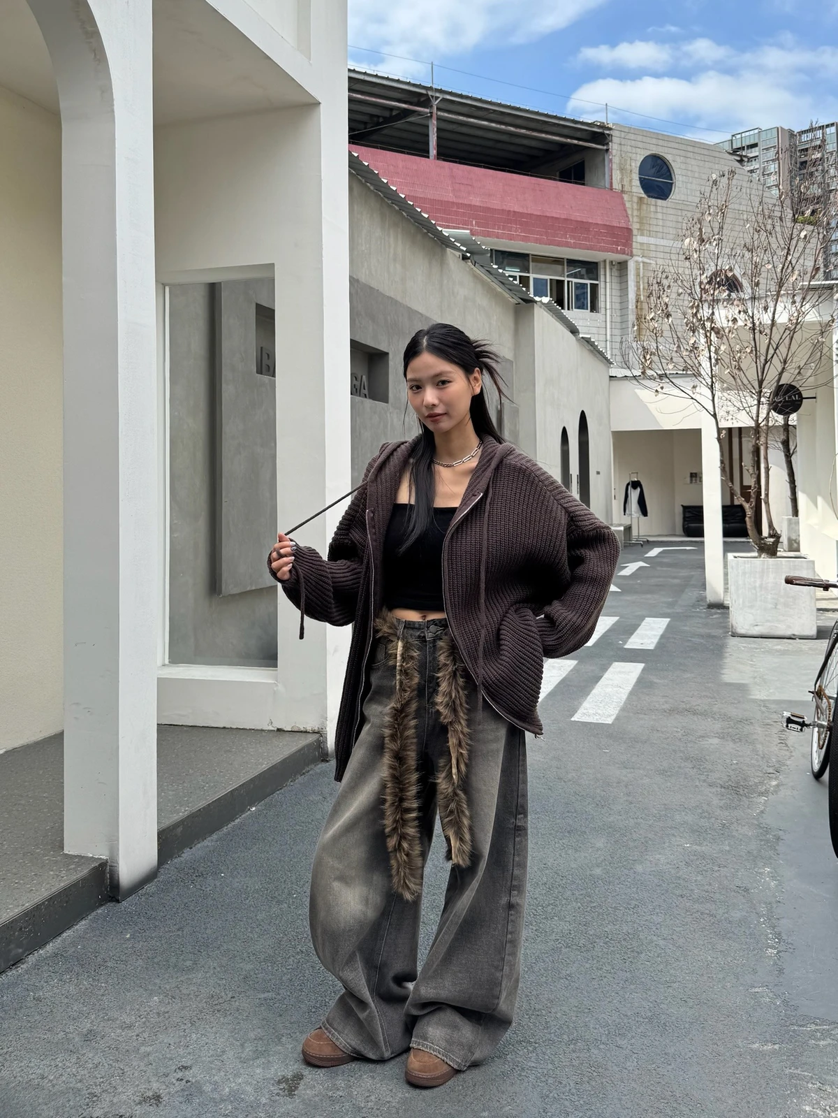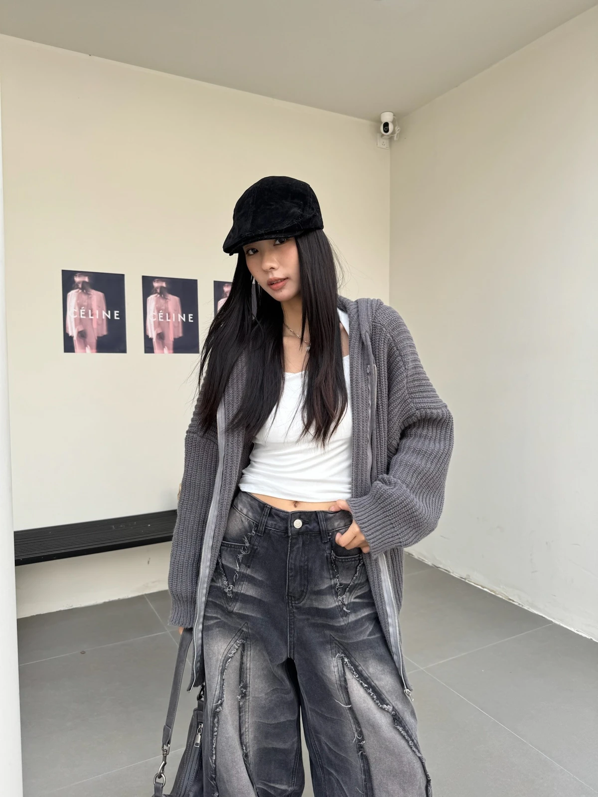 推薦!韓劇主角慵懶針織帶帽拉鏈外套/3colors