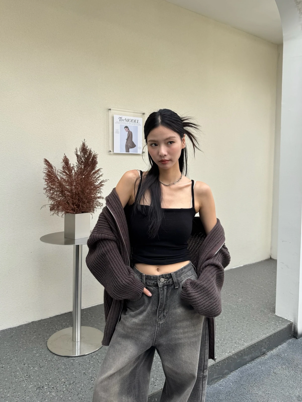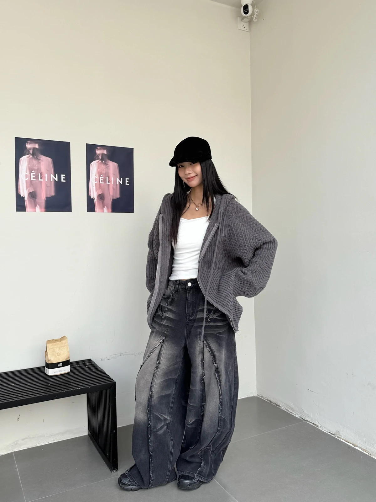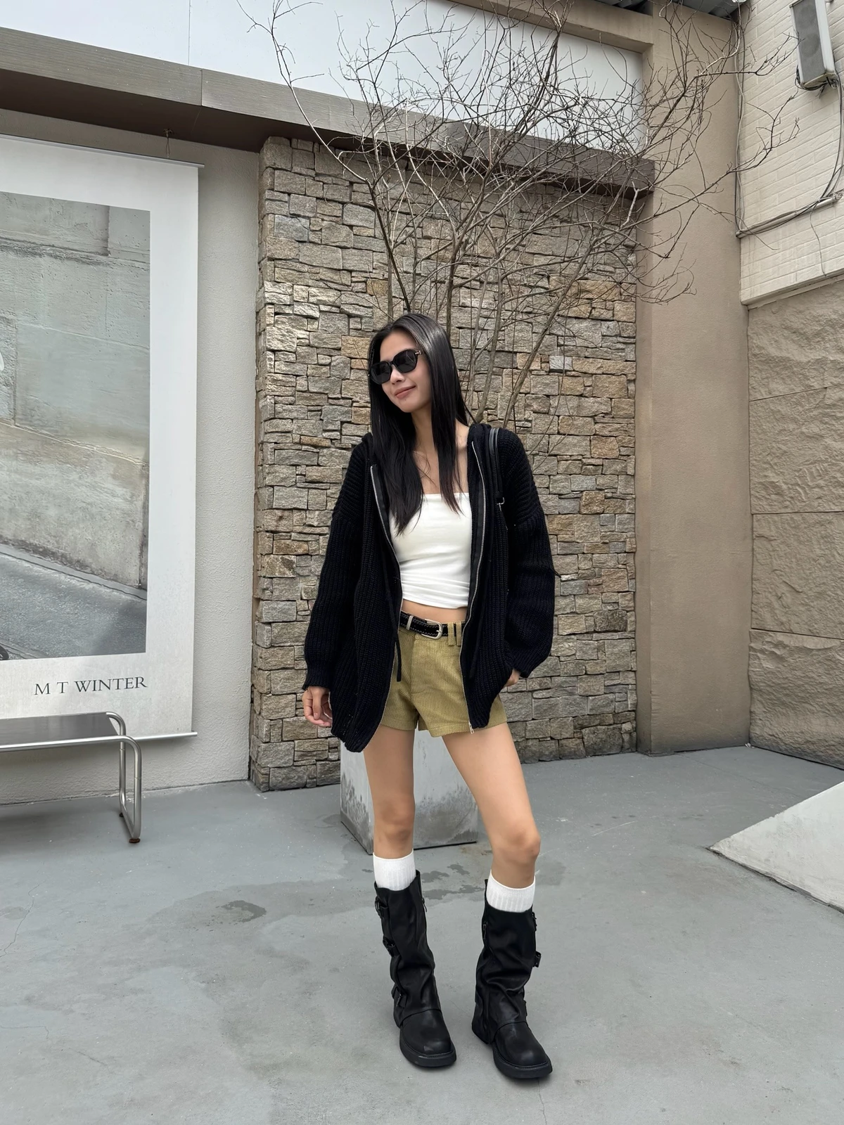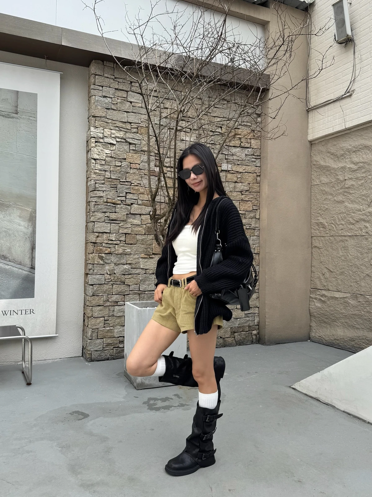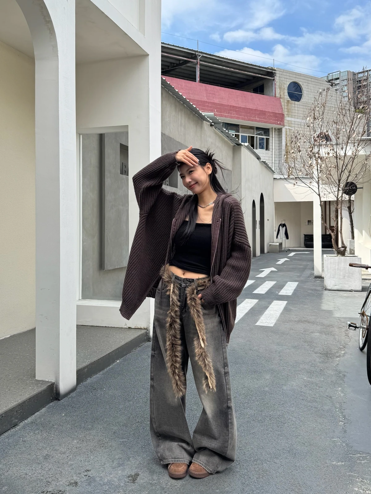 推薦!韓劇主角慵懶針織帶帽拉鏈外套/3colors